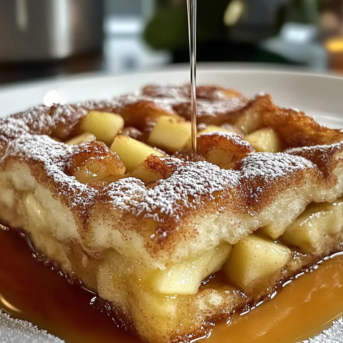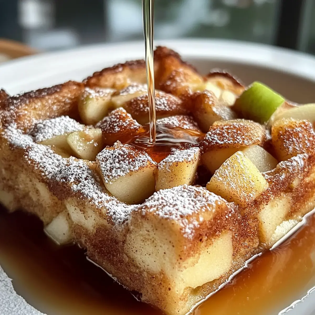 Der Duft von frisch gebackenem Apfel-Zimt-Französischen-Toasts-Auflauf zieht mich stets in die Küche, als würde er der perfekte Begleiter für gemütliche Sonntagmorgen sein. Diese köstliche Auflauf-Variation verwandelt gewöhnliches Frühstück in ein wahres Festmahl, das mit warmen Aromen und der Süße von saftigen Äpfeln begeistert. Ich liebe, wie einfach dieses Rezept ist – es ist nicht nur ein echter Publikumsmagnet, sondern lässt sich auch wunderbar im Voraus zubereiten. Ob für ein entspanntes Familienfrühstück oder ein besonderes Brunch mit Freunden, dieser Auflauf wird garantiert ein Hit sein. Wer könnte da widerstehen? Lass uns gemeinsam herausfinden, wie du diesen zauberhaften Auflauf zaubern kannst! Warum ist dieser Auflauf so beliebt? Einfachheit: Die Zubereitung ist denkbar unkompliziert und benötigt nur grundlegende Kochkünste, perfekt für Küchenneulinge. Wärmender Genuss: Die Kombination aus Äpfeln und Zimt bringt die Gemütlichkeit eines Sonntagsfrühstücks in dein Zuhause. Ideal zum Vorbereiten: Du kannst diesen Auflauf am Vorabend zubereiten und bekommst morgens mehr Zeit für dich. Vielseitigkeit: Variiere mit verschiedenen Brotsorten oder Früchten, um deinen eigenen Twist hinzuzufügen. Beliebter Publikumsmagnet: Ob für die Familie oder Gäste, dieser Auflauf wird mit Sicherheit alle glücklich machen. Genieße diesen köstlichen Apfel-Zimt-Französischer-Toasts-Auflauf Rezept und verwandle dein Frühstück in ein Fest der Aromen! Apfel-Zimt-Französischer-Toasts-Auflauf Zutaten • Das perfekte Rezept für ein einfaches und köstliches Frühstück. Für den Auflauf Brot – Ideal für diesen Auflauf ist Brioche, du kannst aber auch mit anderen Brotsorten wie Challah oder altbackenem Weißbrot experimentieren. Eier – Sie sind das Bindemittel für die cremige Füllung und geben dem Auflauf Struktur. Milch – Sorgt für eine reichhaltige, cremige Konsistenz; du kannst auch pflanzliche Alternativen wie Mandel- oder Hafermilch verwenden. Zucker – Süßt die Mischung; die Verwendung von braunem Zucker verstärkt den Geschmack. Vanilleextrakt – Erhöht den Geschmacksreichtum des Auflaufs. Zimt – Gibt dem Gericht seine unverwechselbare, wärmende Note und ist der Schlüssel zu dem klassischen Apfel-Zimt Geschmack. Äpfel – Sie bringen die süße und fruchtige Komponente ins Spiel; empfehlenswert sind Granny Smith oder Honeycrisp, die sich gut schneiden lassen. Butter – Wird zum Einfetten der Form verwendet und sorgt für eine schöne goldene Kruste. Puderzucker – Zum Bestäuben vor dem Servieren für einen süßen Abschluss. Entdecke das köstliche Apfel-Zimt-Französischer-Toasts-Auflauf Rezept und verwandle deine Frühstücksroutine in ein geschmackvolles Erlebnis! Schritt-für-Schritt-Anleitung für Apfel-Zimt-Französischer-Toasts-Auflauf Rezept Step 1: Ofen vorheizen Heize deinen Ofen auf 180 Grad Celsius vor, damit er die richtige Temperatur erreicht, während du dich um die Vorbereitung kümmerst. Ein vorgeheizter Ofen sorgt dafür, dass der Apfel-Zimt-Französischer-Toasts-Auflauf gleichmäßig gebacken wird und die goldene Kruste entsteht, die wir alle lieben. Step 2: Eiermischung zubereiten In einer großen Schüssel verquirle die Eier, Milch, Zucker, Vanilleextrakt und Zimt gründlich miteinander. Achte darauf, dass keine Klumpen in der Mischung zurückbleiben, da sie die Grundlage für unseren köstlichen Auflauf bildet. Die gleichmäßige Versorgung mit cremigem Geschmack ist der Schlüssel zu einem gelungenen Apfel-Zimt-Französischer-Toasts-Auflauf. Step 3: Brot vorbereiten Schneide das Brot in etwa 2 cm große Würfel und tauche diese nacheinander in die Eiermischung, bis sie gut durchtränkt sind. Achte darauf, dass die Brotwürfel gleichmäßig zugeschnitten sind, damit sie gleichmäßig in der Auflaufform verteilt werden können. Diese wichtige Vorbereitungsarbeit stellt sicher, dass jeder Bissen beim Backen weich und lecker wird. Step 4: Äpfel hinzufügen Nachdem das Brot gut durchtränkt ist, hebe die gewürfelten Äpfel vorsichtig unter die Mischung. Die Äpfel bringen eine fruchtige Süße und eine schöne Textur in den Apfel-Zimt-Französischer-Toasts-Auflauf. Achte darauf, die Äpfel gleichmäßig zu verteilen, damit ihr Aroma sich beim Backen entfalten kann. Step 5: Auflaufform vorbereiten Fette eine Auflaufform leicht mit Butter ein, um zu verhindern, dass der Auflauf kleben bleibt und eine schöne goldene Kruste erhält. Gib dann die gesamte Mischung aus Brotwürfeln und Äpfeln in die vorbereitete Form und verteile sie gleichmäßig. Dies ist entscheidend, um jedem Stück eine gleichmäßige Backqualität zu garantieren. Step 6: Backen Backe den Apfel-Zimt-Französischer-Toasts-Auflauf für 30 bis 40 Minuten im vorgeheizten Ofen, bis die Oberseite goldbraun und fest ist. Achte darauf, durch das Glasfenster des Ofens zu schauen, anstatt die Tür zu öffnen, um zu verhindern, dass die Temperatur fällt. Ein gut gebackener Auflauf ist von außen knusprig und innen wunderbar weich. Step 7: Abkühlen und Servieren Lasse den Auflauf vor dem Servieren für etwa 5 bis 10 Minuten abkühlen, damit sich die Aromen setzen können. Bestäube ihn kurz vor dem Servieren mit Puderzucker und genieße den warmen Apfel-Zimt-Französischer-Toasts-Auflauf vielleicht mit einem Spritzer Ahornsirup. Geteilt unter Freunden oder der Familie wird dieser Auflauf sicherlich ein Hit! Apfel-Zimt-Französischer-Toasts-Auflauf Variationen Lass deiner Kreativität beim Zubereiten dieses köstlichen Auflaufs freien Lauf und passe ihn an deinen Geschmack an! Obstwechsel: Ersetze die Äpfel durch Birnen oder Himbeeren für neuen Schwung. Jede Frucht hat ihren eigenen, einzigartigen Geschmack, der den Auflauf bereichert. Nüsse: Füge gehackte Pekannüsse oder Walnüsse in die Schichten ein, um zusätzlichen Crunch zu erhalten. Die Nüsse bringen eine schöne Textur und stärken das Wohlfühlgefühl beim Essen. Aufpeppen der Gewürze: Experimenti