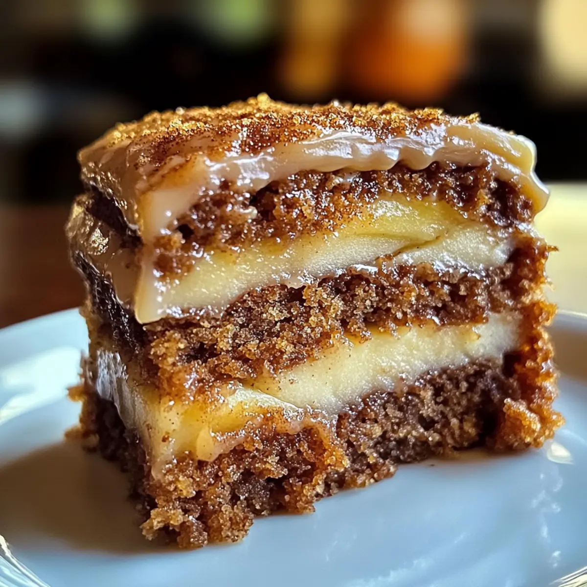 Wenn der Herbst vor der Tür steht und die Blätter sich in lebhaften Farben verfärben, ist es Zeit, die Küche nach köstlichen Aromen zu durchforsten. Ich erinnere mich an die naheliegenden Momente, in denen mein Zuhause von dem verführerischen Duft eines frisch gebackenen Apfelgewürzkuchens erfüllt war – genau das ist das Herzstück meines Apfelgewürzkuchen Rezepts. Dieser saftige Kuchen ist nicht nur einfach zuzubereiten, sondern bringt auch die ganze Familie zusammen. Die perfekte Balance von Apfel, Zimt und Muskatnuss macht ihn zu einem echten Komfortessen, das sowohl bei Freunden als auch bei Feierlichkeiten ein Hit ist. Und mit einer himmlischen, braunen Zuckerglasur obendrauf wird er im Handumdrehen zum Liebling aller. Bereit für ein bisschen Herbstzauber? Lassen Sie uns gemeinsam in die Zubereitung eintauchen! Warum ist dieser Apfelgewürzkuchen einzigartig? Einfachheit: Die Zubereitung ist unkompliziert und benötigt nur grundlegende Backfähigkeiten. Saisonale Aromen: Mit warmen Gewürzen wie Zimt und Muskatnuss fängt dieser Kuchen den Herbst perfekt ein. Saftigkeit: Dank des Apfelmuses wird dieser Kuchen besonders feucht und zart. Vielfalt: Sie können ihn nach Belieben mit Nüssen oder Rosinen anpassen, um zusätzliche Texturen zu schaffen. Familienfreundlich: Dieser Kuchen bringt Generationen zusammen, sei es bei einem gemütlichen Familienessen oder einem festlichen Anlass. Himmlische Glasur: Die cremige braune Zuckerglasur sorgt für den perfekten süßen Abschluss und macht ihn unwiderstehlich. Probieren Sie diese Rezeptur aus, um das perfekte Stück Komfort in Ihr Zuhause zu bringen! Apfelgewürzkuchen Zutaten • Dieser Apfelgewürzkuchen ist nicht nur lecker, sondern auch einfach zuzubereiten – hier sind die nötigen Zutaten: Für den Teig • Apfelmus – sorgt für Feuchtigkeit und einen fruchtigen Geschmack. • Zucker – süßt den Kuchen und hebt die Aromen hervor. • Brauner Zucker – fügt eine karamellige Note hinzu und trägt zur Saftigkeit bei. • Pflanzenöl – macht den Kuchen besonders zart; verwenden Sie bei Bedarf ein neutrales Öl. • Eier – geben Struktur und Stabilität. • Mehl – bildet die Basis; kann durch eine glutenfreie Mischung ersetzt werden. • Backpulver – sorgt für das Aufgehen des Kuchens. • Backnatron – hilft zusätzlich beim Aufgehen und sorgt für eine fluffige Textur. • Zimt – bringt einen warmen, herbstlichen Geschmack. • Muskatnuss – verleiht eine zusätzliche aromatische Tiefe. • Salz – balanciert die Süße und verstärkt die Aromen. Für die optionale Ergänzung • Gehackte Nüsse – sorgen für einen knackigen Biss. • Rosinen – fügen eine süße, fruchtige Dimension hinzu. Genießen Sie dieses Apfelgewürzkuchen Rezept für eine perfekte herbstliche Nascherei, die Ihre Geschmacksknospen verwöhnt! Schritt-für-Schritt-Anleitung für das Apfelgewürzkuchen Rezept Step 1: Ofen vorheizen Heizen Sie den Backofen auf 180 Grad Celsius vor. Diese Temperatur sorgt dafür, dass der Apfelgewürzkuchen gleichmäßig gebacken wird und eine perfekte Konsistenz erhält. Während der Ofen aufheizt, können Sie die Kuchenform vorbereiten, indem Sie sie gut einfetten oder mit Backpapier auslegen. Step 2: Zutaten vermengen In einer großen Schüssel kombinieren Sie das Apfelmus, den Zucker, den braunen Zucker und das Pflanzenöl gründlich. Rühren Sie die Mischung so lange, bis alle Zutaten gut miteinander verbunden sind und eine einheitliche Masse entsteht. Dieser Schritt sorgt für eine saftige Grundlage für Ihren Apfelgewürzkuchen. Step 3: Eier hinzufügen Fügen Sie nacheinander die drei Eier zur Apfelmus-Mischung hinzu und verrühren Sie jedes Ei gründlich, bevor das nächste hinzukommt. Dies gewährleistet, dass die Eier gut in den Teig eingearbeitet werden, was für die Struktur des Kuchens entscheidend ist. Die Mischung sollte schön cremig und glatt aussehen. Step 4: Trockene Zutaten mischen In einer separaten Schüssel mischen Sie das Mehl, Backpulver, Backnatron, Zimt, Muskatnuss und Salz. Diese Kombination aus trockenen Zutaten bringt die gewünschten Gewürznoten und sorgt für die nötige Lockerheit des Kuchens. Vergewissern Sie sich, dass sich keine Klumpen bilden und alles gut vermischt ist. Step 5: Trockene Zutaten hinzufügen Fügen Sie die trockenen Zutaten langsam zu der Apfelmus-Mischung hinzu. Rühren Sie die Mischung vorsichtig mit einem Holzlöffel oder einem Teigschaber, bis alles gerade so vermischt ist. Achten Sie darauf, den Teig nicht zu übermischen, da dies zu einem dichten Kuchen führen könnte. Step 6: Nüsse und Rosinen unterrühren Wenn Sie sich entschieden haben, gehackte Nüsse oder Rosinen hinzuzufügen, ist jetzt der perfekte Zeitpunkt. Fügen Sie diese Zutaten vorsichtig unter den Teig, bis sie gleichmäßig verteilt sind. Diese zusätzlichen Elemente sorgen für einen geschmacklichen und texturalen Kontrast in Ihrem Apfelgewürzkuchen. Step 7: Teig in die Form gießen Gießen Sie die fertige Teigmischung in die vorbereitete Kuchenform und glätten Sie die Oberfläche mit dem Rücken eines Löffels. Dies sorgt dafür, dass der Kuchen gleichmäßig aufgeht und eine schöne Form erhält. Bereiten Sie sich darauf vor, den Kuchen in den vorgeheizten Ofen zu schieben. Step 8: Backzeit einhalten Backen Sie den Apfelgewürzkuchen für etwa 40–50 Minuten. Der Kuchen ist fertig, wenn ein in die Mitte gesteckter Zahnstocher sauber herauskommt oder nur mit ein paar feuchten Krümeln bedeckt ist. Achten Sie darauf, den Kuchen nicht zu lange zu backen, um seine Saftigkeit zu erhalten. Step 9: Kuchen abkühlen lassen Nehmen Sie den Kuchen aus dem Ofen und lassen Sie ihn in der Form etwa 10 Minuten abkühlen. Danach können Sie ihn vorsichtig auf ein Kuchengitter stürzen, damit er komplett abkühlen kann. Dieser Schritt ist wichtig, damit sich der Geschmack des Apfelgewürzkuchens voll entfalten kann, bevor er serviert wird. Was serviere ich zu Apfelgewürzkuchen? 