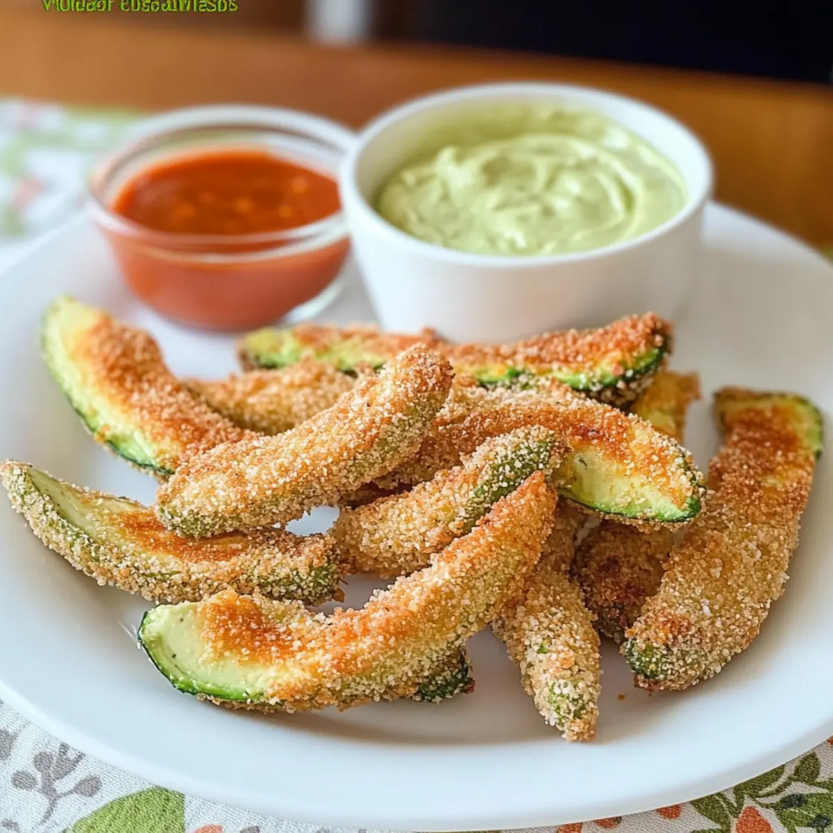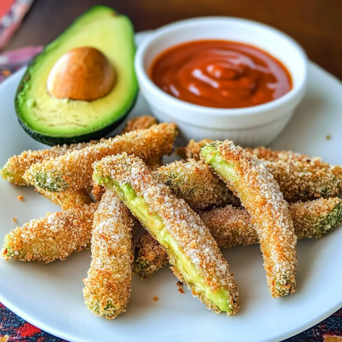 Vor kurzem stieß ich auf eine geniale Idee für einen Snack, der die Freunde beim nächsten Treffen umhauen wird: Avocado-Pommes mit cremiger Sriracha-Dip-Sauce! Diese köstlichen Pommes kombinieren die cremige Textur der Avocado mit einem knusprigen Überzug und bringen so frischen Wind in die Welt der Appetizer. Sie sind nicht nur schnell zubereitet, sondern auch eine gesündere Alternative zu herkömmlichen Pommes – perfekt für alle, die bei Snacks auf Genuss und Gesundheit Wert legen. Mit dem zesty Sriracha-Dip wird jedes Stück zum geschmacklichen Highlight. Neugierig, wie man diese wunderbaren Avocado-Pommes zubereitet? Lass uns gleich loslegen! Warum sind diese Avocado-Pommes so besonders? Gesunde Alternative: Diese Avocado-Pommes sind eine köstliche, glutenfreie Wahl, die den Heißhunger stillt, ohne auf ungesunde Frittiermethoden zurückzugreifen. Einfach zuzubereiten: Mit nur wenigen Zutaten und klaren Anweisungen gelingt dir dieses Rezept im Handumdrehen. Verführerische Kombination: Der Kontrast zwischen der cremigen Avocado und der knusprigen Hülle macht jeden Bissen zu einem Genuss! Vielseitig: Perfekt als Snack, Beilage oder Appetizer – sie passen zu jeder Gelegenheit, auch zu einem entspannten taco night. Zesty Dip: Die cremige Sriracha-Dip-Sauce bringt eine herrliche Schärfe in dieses Gericht und macht die Pommes noch unwiderstehlicher! Probier es aus und lass dich von den Aromen verzaubern! Avocado-Pommes Zutaten • Für die Pommes: Avocados – stellen die cremige Grundlage dar, wähle reife, aber feste Avocados für besten Geschmack. Limettensaft – bringt Frische und hindert die Avocados am Braunen; frisch gepresst ist ideal. Weißmehl – sorgt für Knusprigkeit; kann durch glutenfreies Mehl ersetzt werden. Cayennepfeffer – fügt eine angenehme Schärfe hinzu; nach Geschmack dosieren. Knoblauchpulver, Salz, Pfeffer – würzen die Pommes; Salz nach Belieben anpassen. Eier – helfen, die Panade an den Avocados zu binden; gut verquirlen für eine gleichmäßige Beschichtung. Panko-Brösel – sorgen für eine extra knusprige Textur; glutenfreies Panko verwenden, wenn nötig. Parmesan (optional) – verstärkt den Geschmack, kann jedoch für eine vegane Variante weggelassen werden. Kochspray – zur leichten Ölung; verwende Avocadoöl für eine gesunde Option. • Für die Dip-Sauce: Naturjoghurt – Basis für die Dip-Sauce, bietet eine cremige und leicht säuerliche Note. Sriracha-Sauce – Hauptbestandteil der Sauce, sorgt für die nötige Schärfe; nach Geschmack anpassen. Zusätzlicher Limettensaft, Salz, Pfeffer (für die Sauce) – verbessern die Geschmacksbalance; nach Bedarf würzen. Diese Avocado-Pommes mit cremiger Sriracha-Dip-Sauce sind nicht nur ein geschmacklicher Hochgenuss, sondern auch eine gesunde Snack-Option! Schritt-für-Schritt-Anleitung für Avocado-Pommes mit cremiger Sriracha-Dip-Sauce Schritt 1: Ofen vorheizen Heize deinen Ofen auf 200 °C vor. Dies ist wichtig, damit die Avocado-Pommes gleichmäßig knusprig werden. Bereite ein Backblech vor, indem du es mit einem Gitterrost belegst, so dass die Luft zirkulieren kann und die Pommes nicht durchweichen. Schritt 2: Dredging-Stationen vorbereiten Richte vier Schalen ein: eine mit frisch gepresstem Limettensaft, die zweite mit Mehl, gemischt mit Cayennepfeffer, Knoblauchpulver, Salz und Pfeffer. In die dritte Schüssel kommen die gut verquirlten Eier, und die vierte enthält die Panko-Brösel. Diese Stationen sind wichtig, um die Avocado-Pommes gleichmäßig zu beschichten. Schritt 3: Avocado in Stücke schneiden Halbiere die reifen Avocados und entferne den Kern. Schneide jede Hälfte in Spalten oder „Pommes“-Formen. Achte darauf, dass die Stücke nicht zu dünn sind, damit sie beim Panieren gut zusammenhalten und nicht zerfallen. Schritt 4: Avocado-Pommes panieren Nimm ein Avocado-Stück, tauche es zuerst in den Limettensaft, dann in die Mehlmischung, um es gleichmäßig zu beschichten. Klopfe überschüssiges Mehl ab, tauche es anschließend in das Ei und bedecke es zuletzt mit den Panko-Bröseln. Diese Schritte sind entscheidend, um eine knusprige Textur zu erhalten. Schritt 5: Pommes auf das Backblech legen Lege die panierten Avocado-Pommes auf das Gitterrost auf dem Backblech. Achte darauf, dass sie sich nicht berühren, um eine gleichmäßige Bräunung und Knusprigkeit zu erreichen. Sprühe leicht Kochspray über die Pommes, um den Backprozess zu unterstützen. Schritt 6: Avocado-Pommes backen Backe die Avocado-Pommes für 15 bis 20 Minuten im vorgeheizten Ofen. Halte während des Backens einen Blick darauf; die Pommes sollten goldbraun und knusprig sein. Wende sie ggf. in der Mitte der Backzeit, um eine gleichmäßige Bräune zu gewährleisten. Schritt 7: Dip-Sauce zubereiten Während die Pommes backen, bereite die cremige Sriracha-Dip-Sauce vor. Vermische in einer Schüssel den Naturjoghurt mit Sriracha, einem Spritzer Limettensaft sowie einer Prise Salz und Pfeffer. Probiere die Sauce und passe die Schärfe nach deinem Geschmack an. Schritt 8: Avocado-Pommes servieren Nimm die fertigen Avocado-Pommes aus dem Ofen und lasse sie kurz abkühlen. Serviere sie warm zusammen mit der cremigen Sriracha-Dip-Sauce. Diese Kombination aus knusprigen Pommes und würzigem Dip wird deine Gäste begeistern! Avocado-Pommes Variationen & Substitutionen Kreiere deine ganz persönlichen Avocado-Pommes mit diesen charmanten Anpassungsmöglichkeiten, die für jeden Geschmack etwas bieten! Zitruswechsel: Tausche Limettensaft gegen Zitronensaft für eine andere, erfrischende Note. Der leichte Wechsel belebt die Aromen wunderbar! Gewürzmischung: Füge beim Panieren geräucherten Paprika oder Zwiebelpulver hinzu und verleihe so deinen Pommes eine herzhaftere Geschmacksrichtung. Die Vielfalt in den Gewürzen gibt dem Rezept einen interessanten Twist. Vegane Option: Ersetze die Eier durch Leinsamen- oder Chia-Ei für eine vegane Variante, die ebenso gut haftet. So genießen alle das Rezept ohne