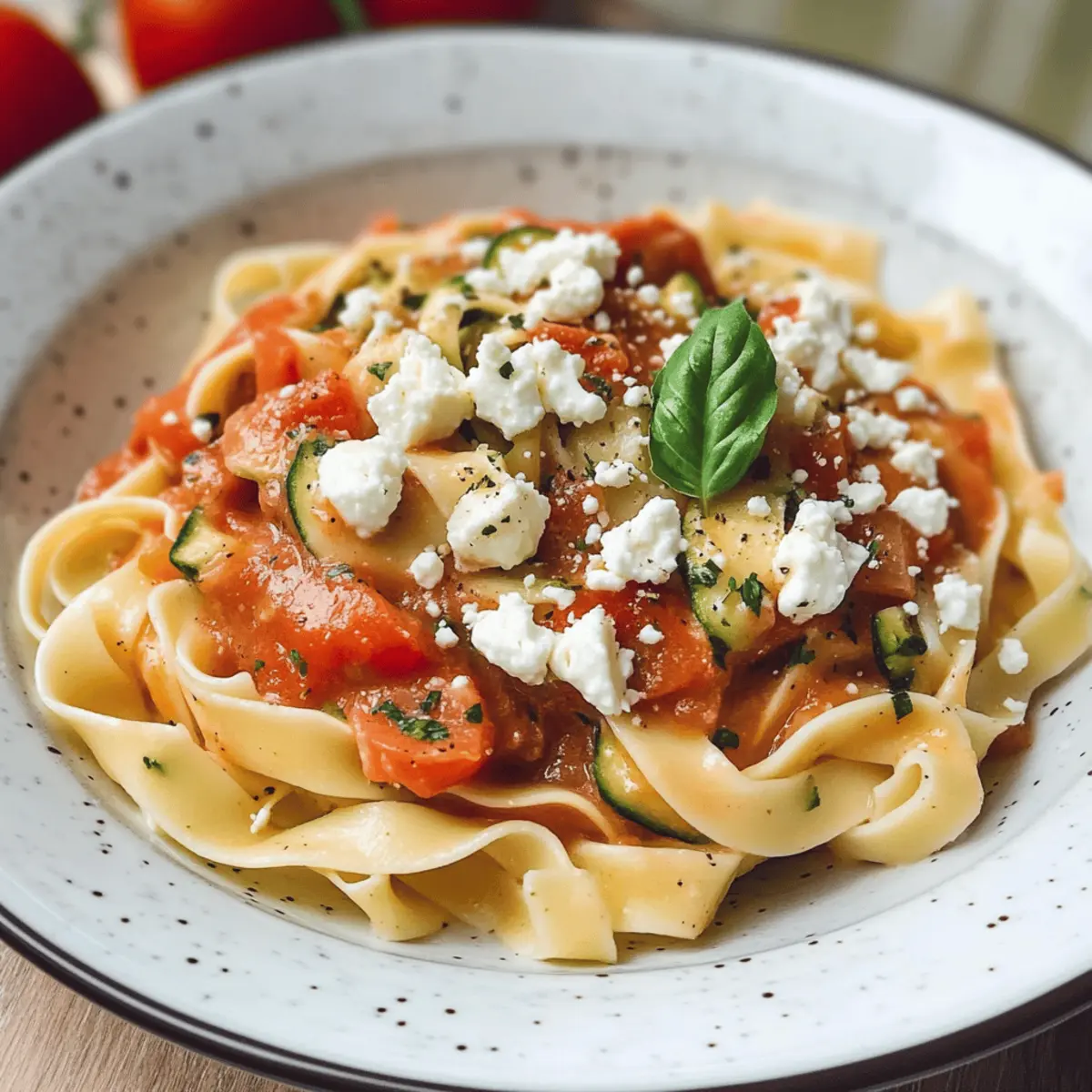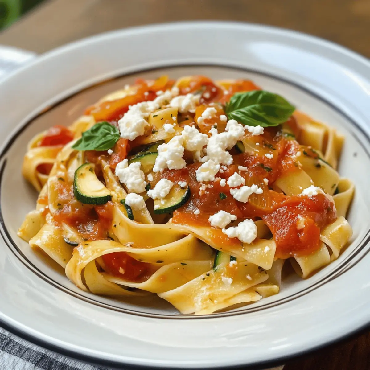 Ein einfaches und schnelles Rezept für Bandnudeln mit Zucchini-Tomaten-Sauce, perfekt für die Familie.