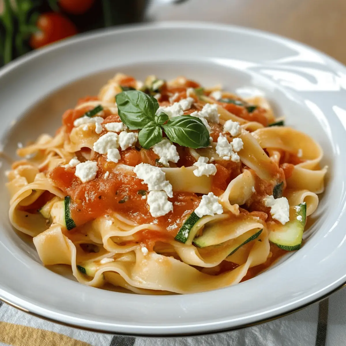 Entdecken Sie mit diesen Zutaten das Vergnügen der Bandnudeln mit Zucchini-Tomaten-Sauce und bringen Sie frischen Geschmack in Ihre Küche!