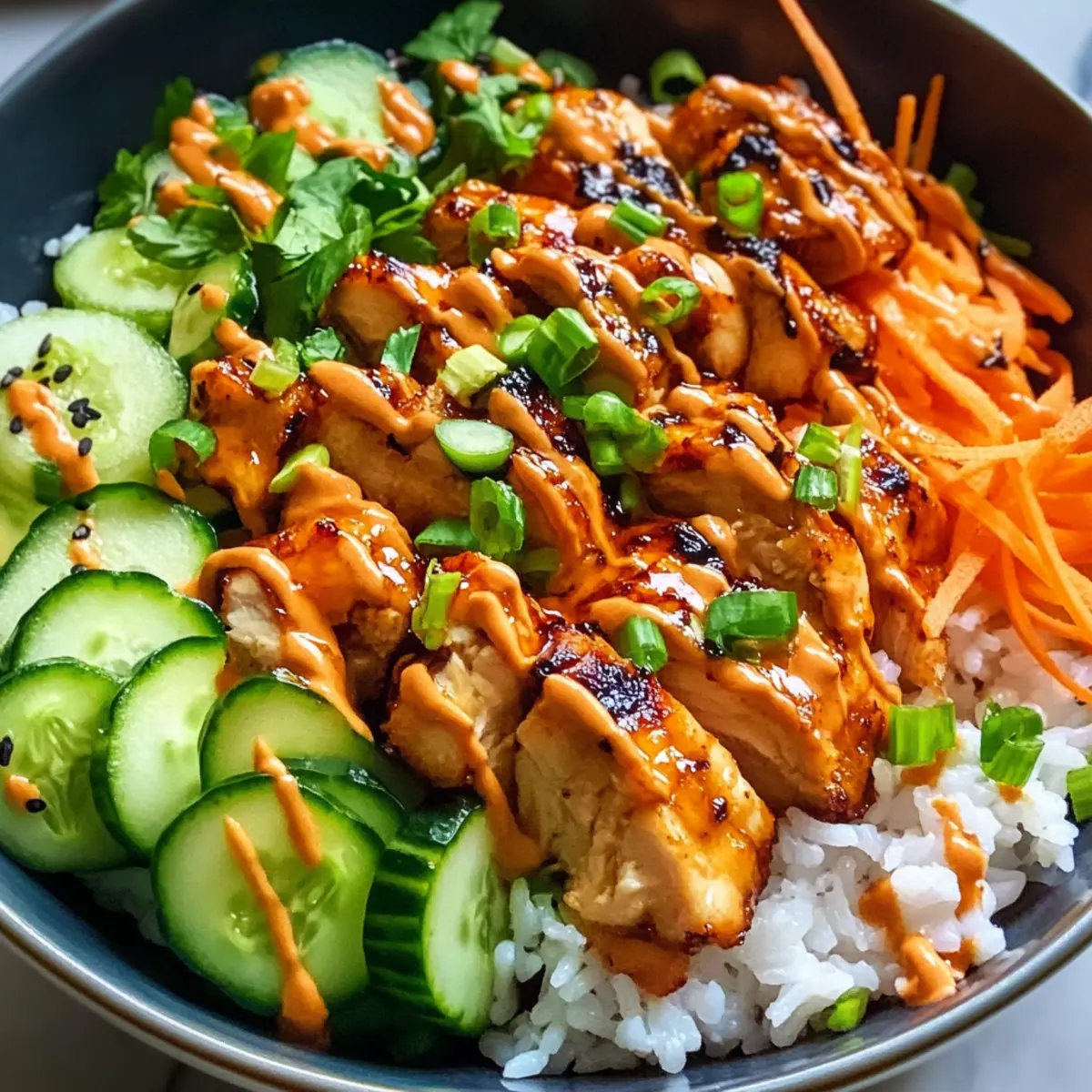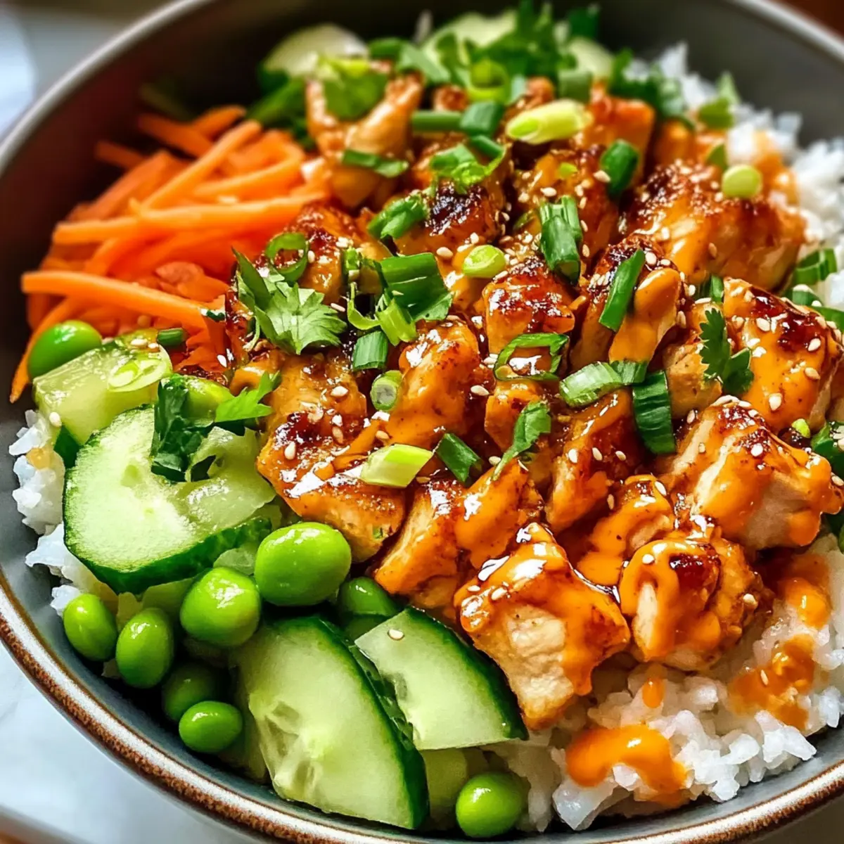 Es gibt Momente in der Küche, die einem den Atem rauben – besonders wenn man etwas zubereitet, das nicht nur gut aussieht, sondern auch verführerisch schmeckt. Der Bang Bang Chicken Bowl ist genau so ein Gericht! Dieses proteinreiche und knackige Mahl ist perfekt für geschäftige Wochentage, denn in nur 40 Minuten zauberst du ein buntes Fest aus zartem Hähnchen, frischem Gemüse und einer cremigen, süß-scharfen Sauce, die auch die wählerischsten Esser begeistert. Die einfache Zubereitung und die großartige Möglichkeit zur Anpassung machen ihn zum perfekten Partner für dein Meal Prep! Lass uns gemeinsam dieses großartige Rezept erkunden und herausfinden, wie du deinem Alltag mit dieser köstlichen Schüssel einen Hauch von asiatischem Flair verleihen kannst. Bist du bereit für ein Geschmackserlebnis? Warum wirst du diesen Bang Bang Chicken Bowl lieben? Vielseitigkeit: Dieser Bang Bang Chicken Bowl kann ganz nach deinem Geschmack angepasst werden. Ob mit Lachs statt Hähnchen oder mit Blumenkohlreis für eine Low-Carb-Option – deiner Kreativität sind keine Grenzen gesetzt. Einfachheit: Die Zubereitung ist kinderleicht und benötigt nur 40 Minuten. Perfekt für die geschäftige Woche, wenn du etwas Schnelles und Leckeres kreieren möchtest. Proteinreich: Mit 35-40 Gramm Protein pro Schüssel ist dies eine sättigende und nährstoffreiche Option für gesundheitsbewusste Esser. Frische Aromen: Die Kombination aus knackigem Gemüse, zartem Hähnchen und der cremigen, süß-scharfen Sauce sorgt für ein unvergleichliches Geschmackserlebnis. Optische Freude: Bunte Zutaten machen diesen Bowl nicht nur geschmacklich, sondern auch visuell ansprechend – perfekt, um Familie und Freunde zu beeindrucken. Probiere dazu auch etwas miso-suppe als köstliche Ergänzung! Bang Bang Chicken Bowl Zutaten • Stelle sicher, dass alle Zutaten frisch sind, um das Beste aus deinem Bang Bang Chicken Bowl herauszuholen! Für das Hähnchen Hähnchenbrustfilets – Die Hauptproteinquelle; verwende frisches oder Bio-Hähnchen für die besten Ergebnisse. Olivenöl – Fügt Feuchtigkeit hinzu und hilft, die Gewürze haften zu lassen. Salz und Pfeffer – Unverzichtbar zum Würzen des Hähnchens. Für die Bang Bang Sauce Mayonnaise – Bildet die cremige Basis der Bang Bang Sauce; verwende echte Mayonnaise für die beste Textur. Süße Chilisauce – Verleiht Süße, um die Schärfe der Sauce auszugleichen. Sriracha – Bietet Schärfe; nach Geschmack anpassen. Honig – Fügt Süße hinzu und mildert die Schärfe der Sauce. Knoblauch – Sorgt für Tiefe im Geschmack; frisch ist vorzuziehen. Limettensaft – Frisch gepresst für zusätzliche Frische und Säure. Für die Bowl Gekochter Reis – Die Grundlage der Schüssel; verwende jeden Reis, den du bevorzugst (weißer, brauner oder Blumenkohlreis). Geraspelte Karotten – Bieten Knackigkeit und Farbe. Gurke – Erfrischend und knusprig; in Streifen schneiden für bessere Textur. Edamame – Fügt Protein und eine grüne Farbe hinzu. Frühlingszwiebeln – Für frischen Geschmack und Garnitur. Koriander – Fügt Frische hinzu und ergänzt das Gericht. Sesamsamen – Für die Garnitur, geben nussigen Geschmack und Knusprigkeit. Mit diesen Zutaten bist du bereit, einen köstlichen und proteinreichen Bang Bang Chicken Bowl zuzubereiten, der deiner Familie und deinen Freunden das Wasser im Mund zusammenlaufen lässt! Schritt-für-Schritt-Anleitung zum Bang Bang Chicken Bowl Step 1: Ofen vorheizen Heize den Ofen auf 200 °C vor und lege ein Backblech mit Backpapier aus. Diese Vorheizungsphase sorgt dafür, dass dein Hähnchen gleichmäßig gegart wird und goldbraun herauskommt. Achte darauf, dass der Ofen die richtige Temperatur erreicht, bevor du das Hähnchen hineingibst. Step 2: Hähnchen vorbereiten Würze die Hähnchenbrustfilets großzügig mit Salz und Pfeffer, bevor du sie mit etwas Olivenöl beträufelst. Lege die gewürzten Filets auf das Backblech und backe sie für 20-25 Minuten. Achte darauf, dass sie goldbraun sind und die Innentemperatur 74 °C erreicht – so bleibt dein Bang Bang Chicken saftig und lecker. Step 3: Bang Bang Sauce zubereiten Während das Hähnchen im Ofen ist, bereite die Bang Bang Sauce vor. In einer Schüssel vermische Mayonnaise, süße Chilisauce, Sriracha, Honig, frisch gepressten Knoblauch und Limettensaft. Rühre gut um, bis eine cremige Konsistenz erreicht ist. Schmecke die Sauce ab und passe die Schärfe je nach Vorliebe an – sie sollte süß und leicht scharf sein. Step 4: Hähnchen schneiden und marinieren Nehme das Hähnchen nach der Backzeit aus dem Ofen und lasse es einige Minuten ruhen. Dies hilft, die Säfte zu bewahren. Schneide das Hähnchen in mundgerechte Stücke und vermische es mit der Hälfte der Bang Bang Sauce. So wird jede Portion Hähnchen gleichmäßig gewürzt und cremig. Step 5: Bowl zusammenstellen Nehme vier Schalen und verteil den gekochten Reis gleichmäßig auf den Boden. Darauf kommt das marinierte Hähnchen. Bestreue die Schüsseln dann mit geraspelten Karotten, Gurkenstreifen, Edamame, Frühlingszwiebeln und Koriander. Diese bunten Zutaten sorgen für eine ansprechende Präsentation und gesunde Frische. Step 6: Fertigstellen und servieren Mit der restlichen Bang Bang Sauce beträufeln und zum Schluss mit Sesamsamen garnieren. Diese letzte Note verleiht deinem Bang Bang Chicken Bowl nicht nur zusätzlichen Geschmack, sondern auch eine ansprechende Optik. Jetzt kannst du das Gericht servieren und deine Freunde und Familie mit diesem leckeren, farbenfrohen Essen beeindrucken. Bang Bang Chicken Bowl Variationen Lass deiner Kreativität freien Lauf und passe den Bang Bang Chicken Bowl ganz nach deinen Vorlieben an! Lachs statt Hähnchen: Ersetze das Hähnchen durch zarten, gebackenen Lachs und genieße einen neuen Geschmack. Diese Variante ist nicht nur lecker, sondern auch reich an Omega-3-Fettsäuren. Blumenkohlreis: Verwende anstelle von normalem Reis Blumenkohlreis für eine kohlenhyd