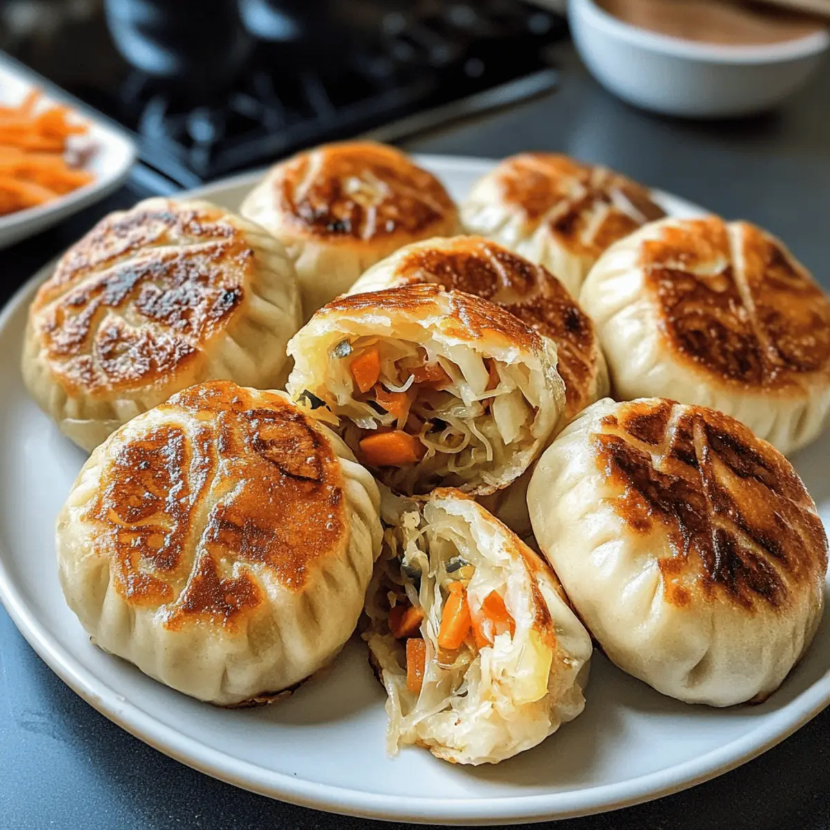 Während ich durch die lebhaften Gassen Shanghais schlenderte, wurde ich von dem verlockenden Duft frischer Dumplings angezogen. Dieses unverwechselbare Aroma, das nach gebratenem Teig und aromatisch gedämpften Füllungen duftet, weckte in mir den Wunsch, meine eigene Version dieser Tradition zu kreieren. So entstand das Rezept für meine veganen Bratgedämpften Kohl- und Nudelbrötchen – eine köstliche Abwandlung des klassischen Sheng Jian Bao. Diese Buns sind nicht nur ein schneller Genuss, der berufstätige Genießer erfreut, sondern auch eine gesunde Alternative zu schnellem Essen, die das Herz jedes Feinschmeckers höher schlagen lässt. Wenn du bereit bist, in die Welt der Aromen einzutauchen, lass uns gemeinsam entdecken, wie diese kleinen Wunder jede Mahlzeit zu etwas Besonderem machen können. Bist du bereit, den Kochlöffel zu schwingen? Warum wirst du diese Brötchen lieben? Einfachheit: Die Zubereitung ist kinderleicht und benötigt nur grundlegende Kochfertigkeiten. Veganer Genuss: Diese Brötchen sind völlig pflanzlich und bieten eine köstliche Alternative für alle, die herkömmliche Dumplings vermissen. Köstliche Füllung: Die Kombination aus knackigem Kohl, zarten Vermicelli und frischem Gemüse sorgt für ein schmackhaftes Geschmackserlebnis. Vielseitigkeit: Du kannst die Füllung nach Belieben anpassen und beispielsweise Tofu oder andere Gemüsesorten hinzufügen – perfekt für jeden Gaumen! Perfekte Textur: Außen knusprig und innen weich – diese Brötchen bieten das ultimative Genusserlebnis, das deine Geschmacksknospen begeistern wird. Schnell zubereitet: In nur wenigen Schritten zauberst du ein Gericht, das schnell und einfach zubereitet werden kann und dabei perfekt für ein schnelles Abendessen geeignet ist. Bratgedämpfter Kohl- und Nudelbrötchen Zutaten Hinweis: Diese Zutaten sorgen für die perfekte Basis, um die leckeren Bratgedämpften Kohl- und Nudelbrötchen zu kreieren! Für den Teig • 3 Tassen Allzweckmehl – sorgt für Struktur und Körper im Teig; kann durch glutenfreies Mehl ersetzt werden. • 2 TL Instant-Trockenhefe – lässt den Teig schön aufgehen; kann im Gefrierschrank für spätere Verwendung aufbewahrt werden. • 2 EL Zucker – bringt eine süße Note und fördert die Hefeaktivität; Maple Sirup ist eine natürliche Alternative. • 1/2 TL Salz – sorgt für einen ausgewogenen Geschmack des Teigs. • 1 EL geröstete Sesamsamen – fügt dem Teig nussigen Geschmack und Textur hinzu. • 1 Tasse warme Sojamilch (oder andere pflanzliche Milch) – hydriert den Teig und aktiviert die Hefe; Mandelmilch kann ebenfalls verwendet werden. • 1 EL geröstetes Sesamöl (oder neutrales Öl) – verleiht dem Teig Reichtum und Geschmack. Für die Füllung • 6 Tassen roher, gehobelter Kohl (von 1/2 großer Kohl) – die Hauptfüllung, die für Crunch und Nährstoffgehalt sorgt. • 3,5 oz ungekochte Vermicelli-Nudeln (gesamt 100 g) – sorgt für Biss in der Füllung; kann durch Reisnudeln ersetzt werden. • 1 Tasse fein geriebene oder gehobelte Karotten – bringt Süße und Farbe ins Spiel. • 1/2 Tasse gehackte Frühlingszwiebeln oder Schnittlauch – fügt eine frische, kräuterige Note hinzu. • 1 EL Sojasauce – verstärkt die Umami-Note in der Füllung. • 2 TL Salz (oder nach Geschmack) – verbessert den Geschmack; nach persönlichem Wunsch anpassen. • 1 EL geröstete Sesamsamen – verstärkt den Geschmack und sorgt für einen zusätzlichen Crunch. • 2 EL geröstetes Sesamöl – fügt der Füllung einen reichen Geschmack hinzu. Schritt-für-Schritt-Anleitung für Bratgedämpfter Kohl- und Nudelbrötchen Step 1: Teig vorbereiten In einer großen Schüssel vermengst du das Allzweckmehl, die Trockenhefe, den Zucker, das Salz und die gerösteten Sesamsamen. Mache eine Mulde in der Mitte und gieße die warme Sojamilch und das Sesamöl hinein. Mische alles gut, bis ein homogener Teig entsteht. Knete den Teig für etwa 5-7 Minuten, bis er glatt und elastisch ist. Forme ihn zu einer Kugel, decke ihn mit einem Tuch ab und lasse ihn 1-2 Stunden an einem warmen Ort aufgehen, bis er sich verdoppelt hat. Step 2: Füllung zubereiten Während der Teig aufgeht, kannst du die Füllung zubereiten. Weiche die Vermicelli-Nudeln in kochendem Wasser für 7-8 Minuten ein, bis sie weich sind, und lasse sie dann abtropfen und grob hacken. Erhitze etwas Öl in einer Pfanne bei mittlerer Hitze und füge den gehobelten Kohl, die Karotten und die Frühlingszwiebeln hinzu. Sautiere die Mischung für etwa 4-5 Minuten, bis das Gemüse weich ist. Füge die gehackten Nudeln, die Sojasauce und das Salz hinzu und koche alles für weitere 2-3 Minuten. Lasse die Füllung abkühlen. Step 3: Wrapper vorbereiten Sobald der Teig aufgegangen ist, teile ihn in 12-16 gleich große Stücke. Rolle jedes Stück auf einer bemehlten Arbeitsfläche zu einer flachen Scheibe mit einem Durchmesser von 8-12 cm aus. Achte darauf, dass der Rand dünner bleibt als die Mitte. Lege die ausgerollten Wrapper auf eine bemehlte Fläche, um ein Ankleben zu verhindern, während du die bunten Brötchen formst. Step 4: Brötchen formen Setze in die Mitte jedes Wrapper 2-3 Esslöffel der vorbereiteten Füllung. Falten und verbinde die Ränder, indem du sie kreisförmig zusammendrückst und drehst, um die Füllung zu versiegeln. Achte darauf, dass keine Luftblasen im Inneren sind. Lege die geformten Brötchen auf ein mit Backpapier ausgelegtes Blech und lasse sie kurz ruhen. Step 5: Brötchen kochen Erhitze in einer großen Pfanne bei mittlerer Hitze etwas Öl. Lege die Brötchen mit der Nahtseite nach unten hinein und brate sie für etwa 4-5 Minuten, bis sie eine goldbraune Kruste haben. Gieße anschließend für jedes Brötchen einen Esslöffel Wasser in die Pfanne, decke sie ab und lasse sie 5-6 Minuten dämpfen, bis das Wasser verdampft ist und die Brötchen durchgegart sind. Vorbereitung für Bratgedämpfter Kohl- und Nudelbrötchen Diese Bratgedämpften Kohl- und Nudelbrötche