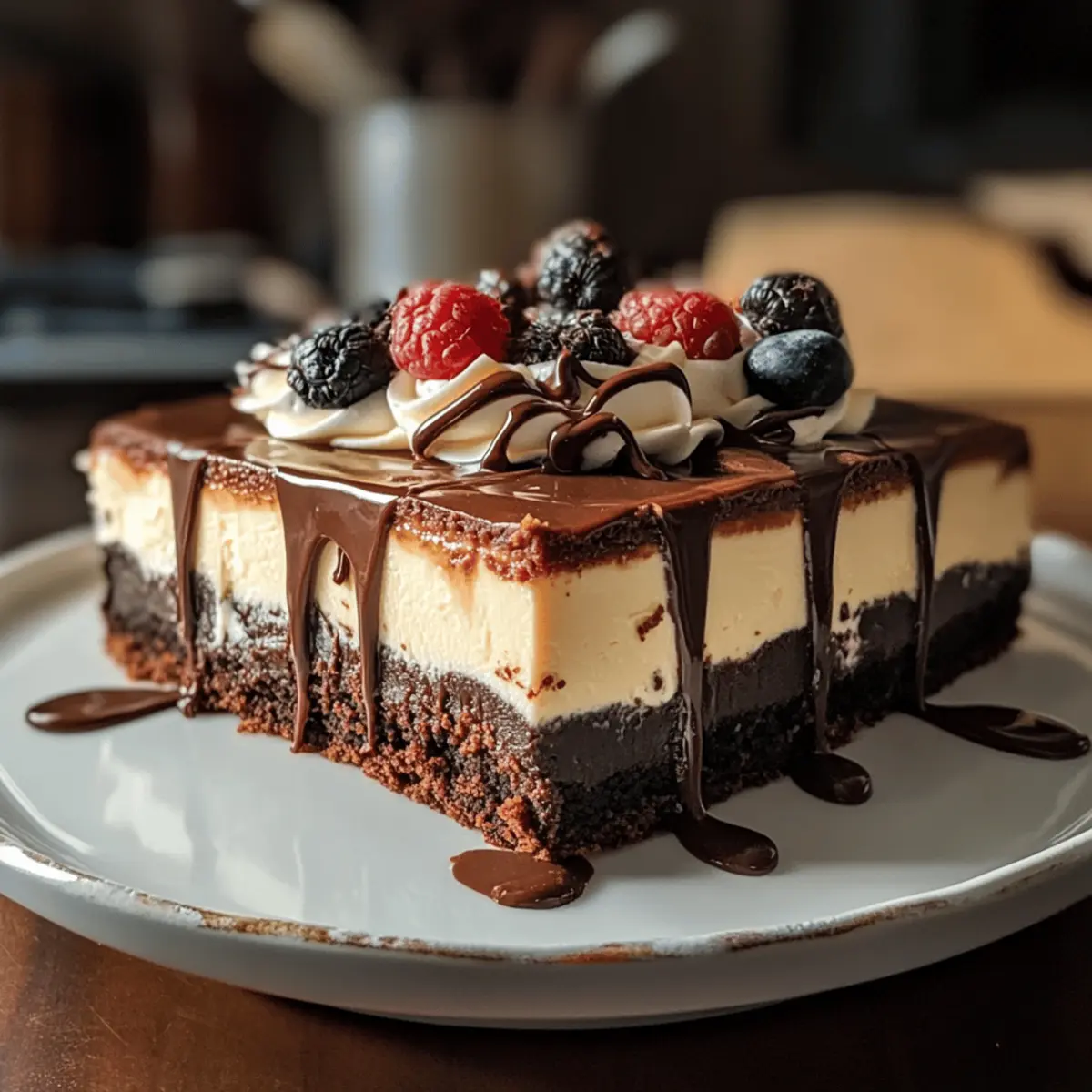 Wenn ich heute an Zeit mit meinen Liebsten denke, kommt sofort der Geruch von frisch gebackenem Brownie Käsekuchen in den Sinn. Die harmonische Vereinigung von saftigen, schokoladigen Brownies und einer cremigen, velvety Cheesecake-Schicht begeistert einfach jeden! Dieses Rezept ist nicht nur eine wahre Gaumenfreude, sondern auch vollkommen unkompliziert und perfekt für jede Gelegenheit – sei es ein gemütlicher Abend zu Hause oder eine festliche Feier. Mit der Möglichkeit, ihn ganz nach Ihrem Geschmack mit frischen Früchten oder knusprigen Nüssen zu verfeinern, wird dieser Brownie Käsekuchen schnell zu Ihrem neuen Lieblingsdessert. Sind Sie bereit, diesen köstlichen Genuss zu entdecken? Warum werden Sie dieses Rezept lieben? Unvergleichlicher Geschmack: Die Kombination aus schokoladigen Brownies und cremigem Käsekuchen sorgt für ein Geschmackserlebnis, das jeden begeistert. Einfache Zubereitung: Mit nur wenigen Zutaten und einer klaren Anleitung ist dieses Rezept ideal für Kochanfänger und Profis. Vielseitigkeit: Verleihen Sie Ihrem Dessert eine persönliche Note, indem Sie frische Früchte oder knusprige Nüsse hinzufügen. Perfekte Konsistenz: Die harmonische Textur verbindet den dichten Brownie mit der samtigen Käsekuchen-Schicht. Kreativ kombinierbar: Ob mit einem schwülen Karamell-Topping oder einer frischen Beerenschicht – Ihr Brownie Käsekuchen bleibt immer besonders! Wenn Sie an weiteren Rezepten interessiert sind, schauen Sie sich auch meinen Schokoladen Lava Kuchen und die Käsekuchengefüllten Schokoladenkekse an. Brownie Käsekuchen Zutaten • Entdecken Sie alles, was Sie für diesen köstlichen Brownie Käsekuchen benötigen! Für den Brownie-Boden Butter – sorgt für Reichtum und Feuchtigkeit im Brownie. Alternativ können Sie Margarine oder eine milchfreie Alternative verwenden. Zucker – süßt sowohl die Brownie- als auch die Käsekuchen-Schicht. Sie können braunen Zucker für ein intensiveres Aroma verwenden. Kakaopulver – verleiht dem Brownie einen intensiven Schokoladengeschmack; verwenden Sie ungesüßtes oder niederländisches Kakaopulver für beste Ergebnisse. Backpulver – lässt den Brownie aufgehen und verleiht eine luftige Textur. Wenn nicht vorhanden, kann auch Natron verwendet werden. Weißmehl – sorgt für Struktur im Brownie-Boden. Für eine glutenfreie Version verwenden Sie glutenfreies Mehl. Eier – werden in beiden Schichten zum Binden und für zusätzliche Reichhaltigkeit verwendet. Für eine vegane Version können Sie Leinsamen-Eier oder Apfelmus verwenden. Für die Käsekuchen-Schicht Frischkäse – sorgt für einen cremigen, leicht säuerlichen Geschmack in der Käsekuchen-Schicht. Alternativ können Sie Neufchâtel-Käse für eine leichtere Variante verwenden. Vanilleextrakt – verstärkt die Aromen der Käsekuchen-Schicht; verwenden Sie Mandel-Extrakt für ein anderes Geschmacksprofil. Sauerrahm – optional für zusätzliche Reichhaltigkeit; griechischer Joghurt kann eine erfrischende Alternative sein. Salz – balanciert die Süße in beiden Schichten und hebt den gesamten Geschmack hervor. Viel Spaß beim Backen Ihres Brownie Käsekuchens! Schritt-für-Schritt-Anleitung für den Brownie Käsekuchen Step 1: Ofen vorheizen und Backform vorbereiten Heizen Sie den Ofen auf 175°C vor und fetten Sie eine 23 cm große Backform ein. Verwenden Sie Butter oder Backtrennspray, um sicherzustellen, dass der Brownie Käsekuchen später leicht herausgenommen werden kann. Bereiten Sie alle benötigten Zutaten in Reichweite vor, um efficiente Arbeitsabläufe zu gewährleisten. Step 2: Brownie-Mischung herstellen In einer Schüssel vermengen Sie geschmolzene Butter, Zucker, Kakaopulver und Eier. Rühren Sie alles gut um, bis die Mischung homogen ist. Fügen Sie nun das Mehl und das Backpulver hinzu und mischen Sie es kurz, bis es gerade so vermengt ist. Achten Sie darauf, keine Klumpen zu hinterlassen für eine glatte Textur des Brownie Käsekuchens. Step 3: Brownie-Teig backen Gießen Sie die Brownie-Mischung gleichmäßig in die vorbereitete Backform und sichern Sie die Kanten. Backen Sie den Brownie-Boden für 20 bis 25 Minuten im vorgeheizten Ofen. Überprüfen Sie die Garstufe mit einem Zahnstocher; er sollte mit feuchten Krümeln herauskommen, was anzeigt, dass der Boden perfekt gebacken ist. Step 4: Käsekuchen-Mischung zubereiten Während der Brownie-Boden auskühlt, schlagen Sie den zimmerwarmten Frischkäse in einer Schüssel cremig auf. Geben Sie Zucker, Eier, Vanilleextrakt und optional Sauerrahm hinzu und verrühren Sie alles, bis die Käsekuchen-Mischung sehr glatt ist. Achten Sie darauf, keine Klümpchen zu hinterlassen, um eine seidige Konsistenz zu gewährleisten. Step 5: Käsekuchen-Schicht auftragen Nachdem der Brownie-Boden leicht abgekühlt ist, gießen Sie die Käsekuchen-Mischung gleichmäßig darüber. Verwenden Sie einen Spatel, um die Oberfläche zu glätten und sicherzustellen, dass die beiden Schichten gut miteinander verbunden werden. Diese Kombination der Layer ist entscheidend für den Genuss eines erstklassigen Brownie Käsekuchens. Step 6: Käsekuchen backen Backen Sie den Brownie Käsekuchen bei 160°C für 35 bis 40 Minuten. Achten Sie darauf, dass die Mitte des Käsekuchens leicht wackelig bleibt, aber die Ränder fest sind. Dies sorgt für eine perfekte, cremige Textur im Inneren. Überwachen Sie den Vorgang, um ein Überbacken zu vermeiden. Step 7: Abkühlen und kühlen Lassen Sie den Brownie Käsekuchen zunächst bei Raumtemperatur abkühlen. Anschließend sollten Sie ihn mindestens 4 Stunden lang, besser über Nacht, im Kühlschrank ruhen lassen. Dies hilft, die Aromen zu intensivieren und das Dessert wunderbar fest werden zu lassen. Brownie Käsekuchen Variationen Verleihen Sie Ihrem Brownie Käsekuchen eine persönliche Note und entdecken Sie neue Geschmackserlebnisse! Fruchtige Note: Fügen Sie frische Beeren oder Bananenscheiben zur Käsekuchen-Schicht hinzu. Das fruchtige Aroma ergänzt