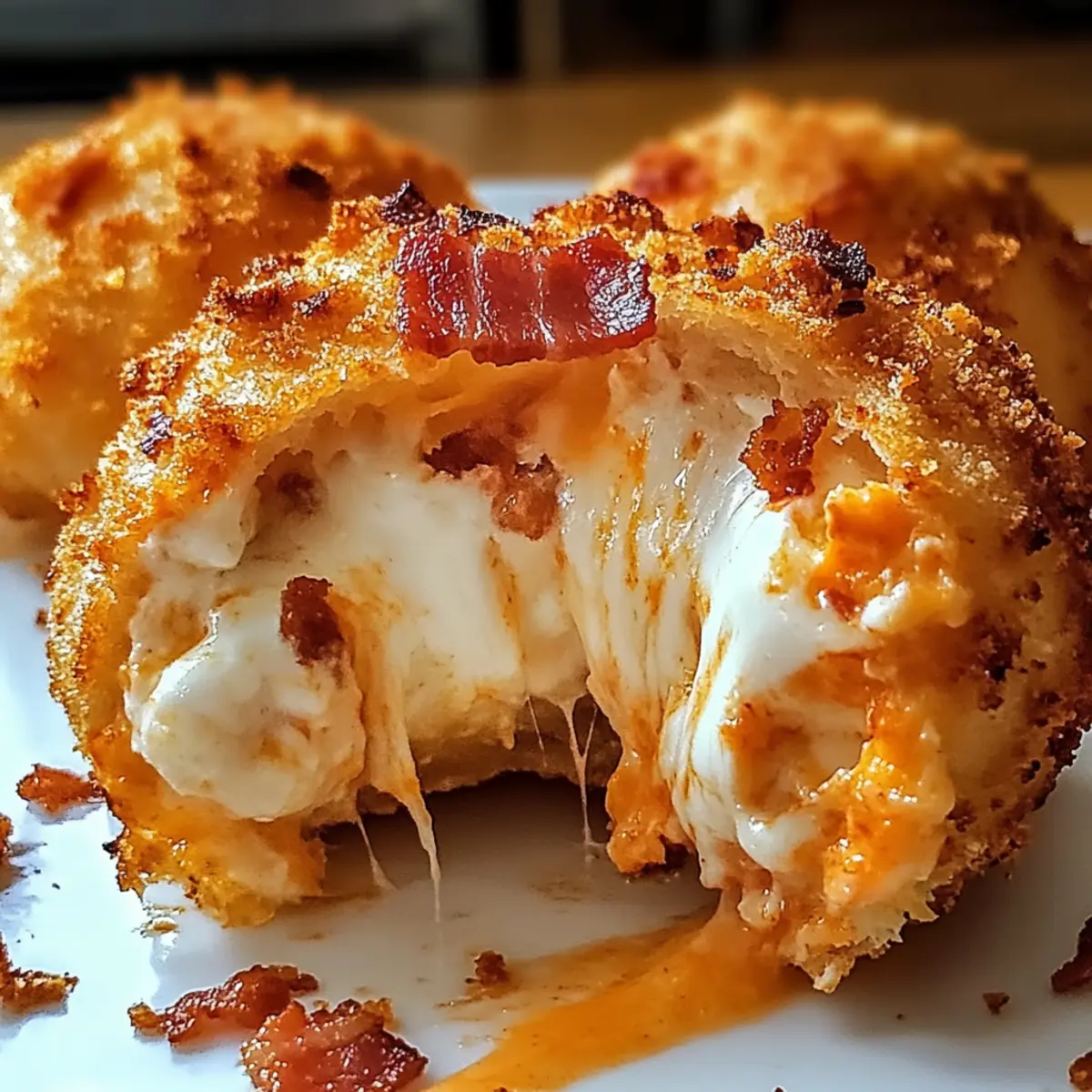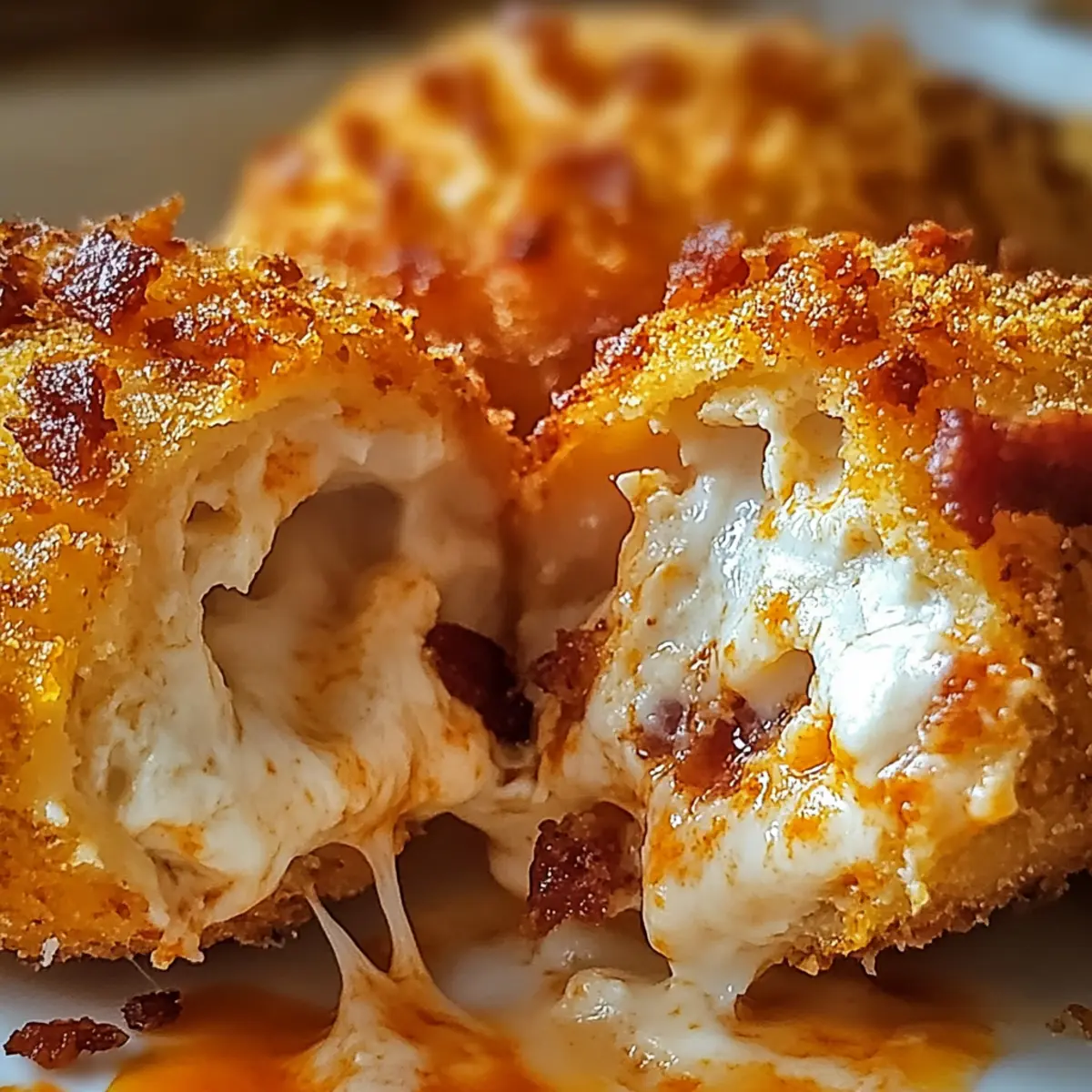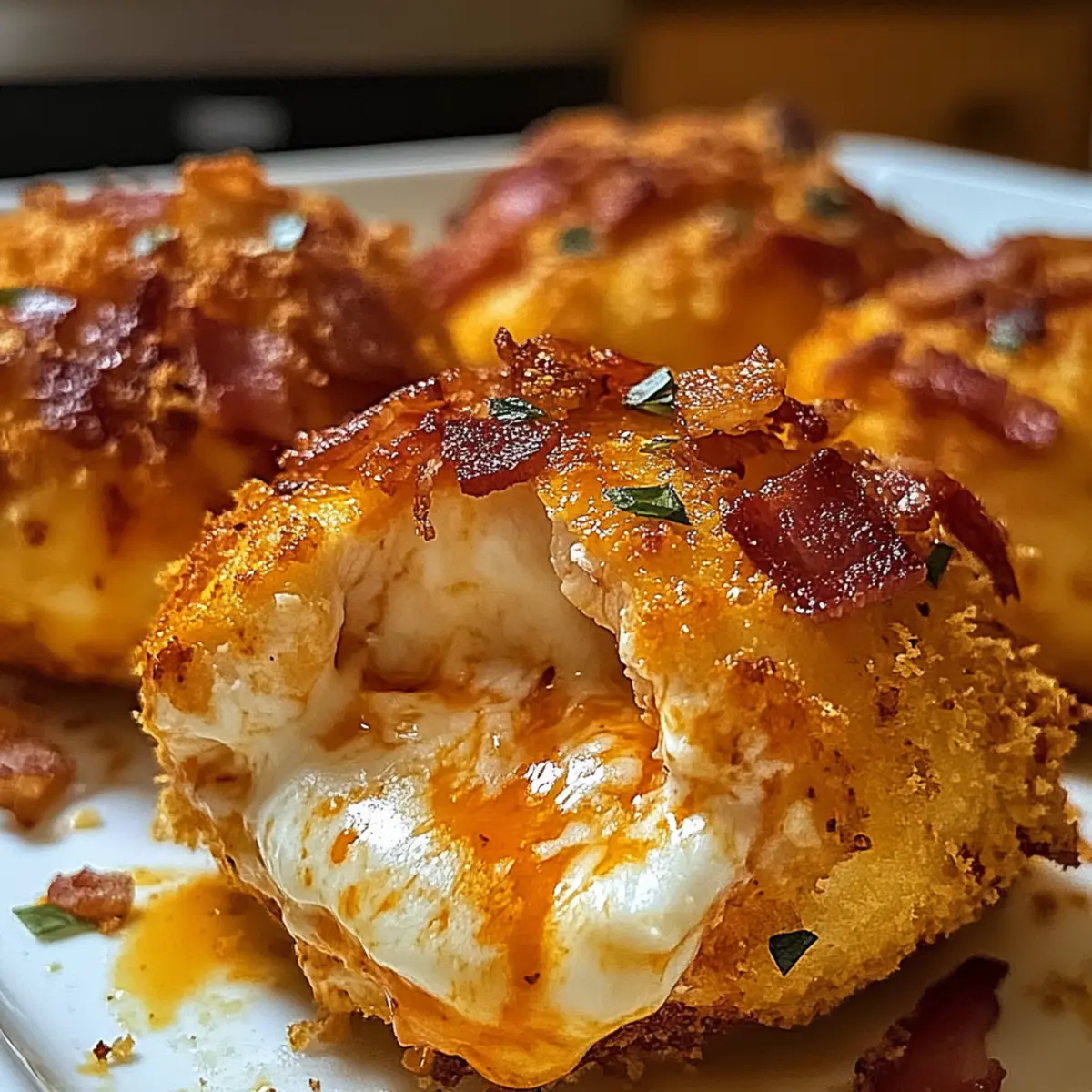 Hörst du das knusprige Geräusch, wenn sich der Biss durch die leuchtenden Buffalo-Hühnchen-Bacon-Mozzarella-Bomben schiebt? Diese kleinen Geschmacksexplosionen haben alles, was du dir für deine nächste Spieleabend-Feier wünschen kannst. Mit einer köstlichen, schmelzenden Käsefüllung und einer knackigen Hülle sind sie nicht nur einfach zuzubereiten, sondern auch eine klasse Wahl für dein nächstes Treffen. Und keine Sorge, ich habe auch an glutenfreie Optionen gedacht! Diese Bomben sind der perfekte Genuss für alle, die sich nach herzhaftem Komfortessen sehnen, ohne dabei viel Zeit in der Küche zu verbringen. Bist du bereit, deine Gäste zu begeistern und sie mit diesen leckeren Bissen zu verwöhnen? Lass uns gleich loslegen! Warum wirst du diese Bomben lieben? Einfachheit, die begeistert: Die Zubereitung dieser Buffalo-Hühnchen-Bacon-Mozzarella-Bomben ist supereinfach; selbst Anfänger in der Küche können sie mühelos meistern. Herzhafter Genuss: Der perfekte Mix aus herzhaftem Hühnchen, knusprigem Bacon und geschmolzenem Mozzarella sorgt für ein Geschmackserlebnis, das deine Gäste lieben werden. Vielseitigkeit: Variiere die Zutaten ganz nach deinem Geschmack – du kannst zum Beispiel mageres Rinderhack oder glutenfreie Semmelbrösel verwenden, um jedem gerecht zu werden und gleichzeitig den köstlichen Geschmack zu bewahren. Ideale Snack-Größe: Diese Häppchen sind perfekt zum Teilen! Sei es für eine Party, einen Filmabend oder ein einfaches gemütliches Beisammensein – sie passen in jede Situation. Zeitsparend: Mit einer schnellen Zubereitungszeit hast du mehr Zeit, um mit Freunden und Familie zu genießen. Und falls du noch nach weiteren einfachen Rezepten suchst, schau dir auch unsere glutenfreien Snack-Ideen an, die du vielleicht in deine nächste Feier integrieren möchtest! Buffalo-Hühnchen-Bacon-Mozzarella-Bomben Zutaten Hinweis: Diese köstlichen Buffalo-Hühnchen-Bacon-Mozzarella-Bomben sind einfach zuzubereiten und lassen sich perfekt zu verschiedenen Anlässen servieren. Für die Füllung Mozzarella-Käse – sorgt für das cremige, schmelzende Zentrum; in 2,5 cm große Würfel schneiden. Gekochter Speck – fügt einen herzhaften Crunch hinzu; vor der Verwendung zerbröseln. Gemahlenes Hühnchen – der Hauptproteinbestandteil; kann durch gemahlenen Truthahn oder mageres Rindfleisch ersetzt werden. Buffalo-Sauce – verleiht einen würzigen Kick; kann für einen milderen Geschmack reduziert oder durch Honig-Barbecue ersetzt werden. Knoblauchpulver – intensiviert den Gesamtgeschmack. Zwiebelpulver – bringt eine schöne Geschmacksfülle. Paprika – sorgt für Wärme und Farbe. Salz & schwarzer Pfeffer – unverzichtbar für die Geschmacksbalance. Für die Kruste Mehl – hilft, die Semmelbrösel haften zu lassen und fügt eine Schicht hinzu. Große Eier – binden die Semmelbrösel für eine knusprige Oberfläche. Semmelbrösel (Panko oder normal) – Panko für extra Crunch. Zum Frittieren Pflanzenöl oder Rapsöl – notwendig für das Frittieren, um eine goldbraune Außenschicht zu erzielen. Viel Spaß beim Zubereiten dieser köstlichen Bomben, die sicherlich zum Star deiner nächsten Feier werden! Schritt-für-Schritt-Anleitung für Buffalo-Hühnchen-Bacon-Mozzarella-Bomben Step 1: Mozzarella vorbereiten Schneide den Mozzarella in 2,5 cm große Würfel und lege sie auf einen Teller. Achte darauf, dass sie gleichmäßig sind, damit sie später gut umwickelt werden können. Dieser Schritt ist entscheidend, da der geschmolzene Käse das Herzstück deiner Buffalo-Hühnchen-Bacon-Mozzarella-Bomben bildet. Step 2: Käse einwickeln Nehme den zerbröckelten, gekochten Speck und wickle ihn sorgfältig um jeden Käsewürfel. Stelle sicher, dass der Käse vollständig mit Speck umhüllt ist, um ein Auslaufen während des Kochens zu verhindern. Diese knusprige Schicht ist der erste Schritt zu einem geschmackvollen Snack. Step 3: Hühnchenfüllung mischen In einer großen Schüssel vermischst du das gemahlene Hühnchen, Knoblauchpulver, Zwiebelpulver, Paprika, Salz, Pfeffer und die Hälfte der Buffalo-Sauce. Arbeite die Zutaten gründlich ein, bis eine homogene Masse entsteht. Dieser würzige Mix wird die perfekte Ummantelung für die gefüllten Bomben sein. Step 4: Bomben formen Nimm eine kleine Menge der Hühnchenfüllung und forme sie in der Hand zu einer flachen Scheibe. Platziere den mit Speck umwickelten Käsewürfel in die Mitte und falte die Hühnchenmasse um den Käse, sodass eine runde Bombe entsteht. Achte darauf, dass der Käse gut umschlossen ist, um ein Auslaufen zu vermeiden. Step 5: Bomben panieren Rolle jede geformte Bombe zuerst im Mehl, dann tauche sie in die verquirlten Eier und wälze sie schließlich in den Semmelbröseln. Achte darauf, dass jede Bombe gleichmäßig mit den Semmelbröseln bedeckt ist, um eine knusprige Textur zu gewährleisten. Dieser Schritt sorgt für den perfekten Crunch bei den Buffalo-Hühnchen-Bacon-Mozzarella-Bomben. Step 6: Kochen Erhitze das Öl in einer Fritteuse oder tiefen Pfanne auf 175°C. Frittiere die Bomben für etwa 5 bis 6 Minuten, bis sie goldbraun und knusprig sind. Alternativ kannst du sie auch im Ofen bei 200°C für 18 bis 20 Minuten backen, bis sie schön knusprig sind. Dies ist der Moment, auf den du gewartet hast! Step 7: Servieren Nehme die fertigen Buffalo-Hühnchen-Bacon-Mozzarella-Bomben aus dem Öl oder Ofen und lasse sie kurz abkühlen. Träufle die restliche Buffalo-Sauce über die warmen Bomben und serviere sie heiß. Diese herzhaften Häppchen sind ideal für deinen nächsten Spieleabend und garantieren Begeisterung bei deinen Gästen! Lagerung und Einfrieren von Buffalo-Hühnchen-Bacon-Mozzarella-Bomben Raumtemperatur: Bewahre die frisch zubereiteten Bomben für maximal 2 Stunden bei Raumtemperatur auf, um die Sicherheit der Lebensmittel zu gewährleisten. Kühlschrank: Lagere gekochte Buffalo-Hühnchen-Bacon-Mozzarella-Bomben in einem luftdichten Behälter für bis zu 3 Tage. Vor