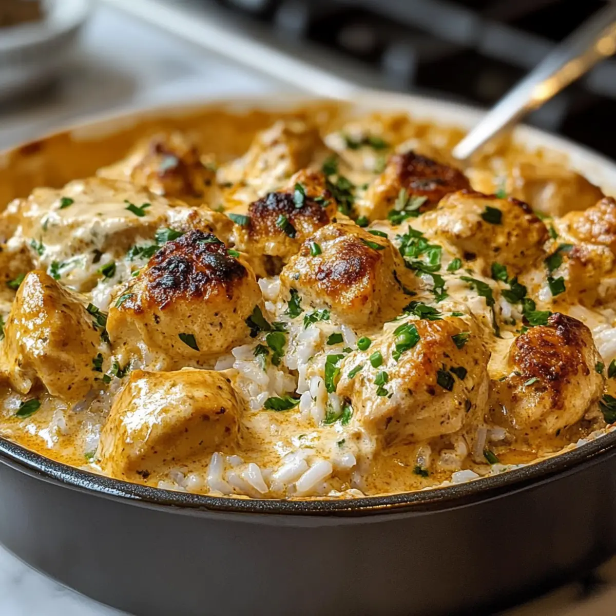 Die köstliche Kombination aus zartem Hähnchen und würzigem Reis macht diesen Butter-Hähnchen- und Reisauflauf zu einem unverzichtbaren Rezept für die kühlen Tage. Wenn ich in der Küche stehe und die Aromen von Gewürzen und cremiger Butter wahrnehme, kommt mir immer wieder das Gefühl von Geborgenheit und Heimat in den Sinn. Dieses Rezept vereint all diese Elemente und bietet nicht nur eine unkomplizierte Zubereitung, sondern auch ein echtes Wohlfühlgericht, das die ganze Familie erfreut. Mit der Flexibilität, verschiedene Zutaten einzusetzen, wird jeder Bissen zu einem kleinen Abenteuer. Wer kann da widerstehen? Lass uns gemeinsam herausfinden, wie einfach und schnell wir dieses wundervolle Gericht zubereiten können! Warum ist dieser Auflauf so besonders? Einfachheit: Dieses Rezept ist unkompliziert und erfordert keine komplexen Kochtechniken, somit ist es ideal für alle, die gerne gut essen, aber wenig Zeit haben. Vielseitigkeit: Du kannst die Zutaten ganz nach deinem Geschmack anpassen, sei es mit verschiedenen Gemüse- oder Brüheoptionen. Für eine glutenfreie Variante stehen dir glutenfreie Sahnesuppen zur Verfügung. Wohlfühlgarantie: Die Kombination aus cremigem Reis und zartem Hähnchen sorgt für ein wohliges Gefühl, das selbst die furchtbarsten Fastfood-Gelüste in den Schatten stellt. Zubereitung im Handumdrehen: Mit minimalem Aufwand zauberst du ein herzhaftes Gericht, das für die ganze Familie reicht. Perfekte Reste: Übrig gebliebener Auflauf lässt sich hervorragend aufbewahren und bleibt im Kühlschrank für mehrere Tage frisch. Beeindruckender Genuss: Dieser Butter-Hähnchen- und Reisauflauf ist ein echter Publikumsliebling und wird sicher zum Star bei deinem nächsten Familienessen! Butter-Hähnchen- und Reisauflauf Zutaten • Entdecke die perfekten Zutaten für unser köstliches Butter-Hähnchen- und Reisauflauf Rezept! Für den Auflauf Ungekochter Reis – bildet die geschmackvolle Grundlage und nimmt die Aromen auf; kein Abspülen erforderlich, es sei denn, du bevorzugst eine fluffige Konsistenz. Hühnchenbrühe – verstärkt den Gesamtgeschmack und ist eine großartige Option in einer natriumreduzierten Variante für mehr Gesundheit. Cream of Chicken Soup – sorgt für die cremige Textur; kann durch Sahne von Sellerie oder Pilzen für verschiedene Geschmacksrichtungen ersetzt werden. Cream of Celery Soup – trägt zur Cremigkeit bei; als Alternative kann auch Pilzsuppe verwendet werden. Montreal Steak Gewürz – liefert eine herzhaft-würzige Note; alternative Gewürze sind Knoblauch- und Zwiebelpulver oder geräucherter Paprika. Hähnchenbrust oder -schenkel – das Hauptprotein, das die Gewürze und Aromen aufnimmt; Schenkel sind saftiger, während Brustfilets magerer sind. Gesalzene Butter – hält das Hähnchen saftig und fügt Reichtum hinzu. Paprika – dient zur Garnierung und bringt eine zarte Rauchnote; optional, aber verstärkt die Präsentation. Frische Petersilie – perfektes Grußmittel, gibt Frische und sieht toll aus! Für den Belag (optional) Zitrone – ein Spritzer verleiht dem Gericht einen erfrischenden Kick; ideal zum Garnieren und servieren. Mit diesen Zutaten bist du bereit, ein herzhaftes Butter-Hähnchen- und Reisauflauf Rezept zu kreieren, das der ganzen Familie Freude bereitet! Schritt-für-Schritt-Anleitung für das Butter-Hähnchen- und Reisauflauf Rezept Step 1: Ofen vorheizen und Backform vorbereiten Heize den Ofen auf 180 °C vor und fette eine 23×33 cm große Auflaufform ein. Achte darauf, die Form gründlich zu fetten, damit der Auflauf während des Backens nicht anklebt. Dies ist ein wichtiger Schritt, damit der Butter-Hähnchen- und Reisauflauf perfekt herauskommt und leicht zu servieren ist. Step 2: Zutaten mischen In einer großen Schüssel vermische den ungekochten Reis, die beiden Sahnesuppen, die Hühnchenbrühe und das Montreal Steak Gewürz. Rühre alles gut um, bis alle Zutaten gleichmäßig verteilt sind. Die cremige Mischung bildet die Grundlage für den Auflauf und sorgt dafür, dass der Reis die Aromen perfekt aufnimmt. Step 3: Mischung in die Form geben Gieße die Reis- und Suppe-Mischung gleichmäßig in die vorbereitete Auflaufform. Verteile sie mit einem Spatel oder Löffel so, dass die Masse gleichmäßig dick ist. Dies sorgt dafür, dass alle Zutaten gleichmäßig garen und der Butter-Hähnchen- und Reisauflauf eine tolle Konsistenz erhält. Step 4: Hähnchenstücke platzieren Lege die Hähnchenstücke gleichmäßig auf die Reis-Mischung, ohne sie dabei umzurühren. Die Hähnchenstücke sollten gut verteilt sein, damit sie während des Backens gleichmäßig garen. Du kannst Hähnchenbrust oder -schenkel verwenden, je nach Vorliebe. Step 5: Butter und Gewürze hinzufügen Verteile die in Scheiben geschnittene Butter gleichmäßig über die Mischung und streue bei Bedarf etwas Paprika darüber. Die Butter wird während des Backens schmelzen und das Hähnchen sowie den Reis wunderbar würzen. Diese letzte Note sorgt für ein reichhaltiges Aroma in deinem Butter-Hähnchen- und Reisauflauf. Step 6: Backen Decke die Auflaufform fest mit Aluminiumfolie ab und backe sie für 55 Minuten im vorgeheizten Ofen. Halte den Temperaturbereich genau ein, die Folie hält die Feuchtigkeit im Inneren, damit alles schön saftig bleibt, während der Reis gart. Step 7: Folie entfernen und weiterbacken Nimm nach 55 Minuten die Folie ab und backe den Auflauf für weitere 10-15 Minuten ohne Abdeckung. Prüfe, ob das Hähnchen eine Innentemperatur von 74 °C erreicht hat und der Reis weich ist. Dies sollte eine goldbraune Oberfläche ergeben, die einen schönen Kontrast zur cremigen Füllung bietet. Step 8: Ruhen lassen und servieren Lass den Auflauf vor dem Servieren für 10 Minuten abgedeckt ruhen. Dadurch setzen sich die Aromen und die Konsistenz verbessert sich. Dieser Butter-Hähnchen- und Reisauflauf ist dann bereit, mit frischer Petersilie garniert und direkt aus der Auflaufform serviert zu werden. Meal Prep f