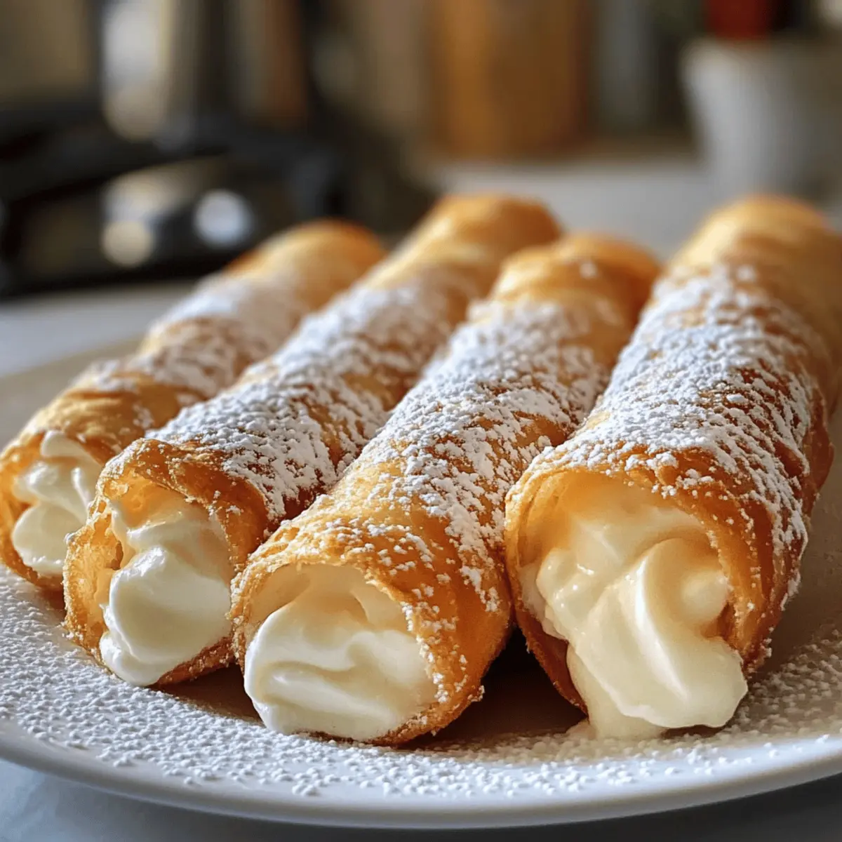 Es gibt nichts Schöneres, als den verführerischen Duft frisch gebackener Teigrollen, die in der Luft liegen und einen Hauch von italienischer Gemütlichkeit versprühen. Cannoncini mit italienischer Creme sind nicht nur ein echtes Fest für die Sinne, sondern auch der perfekte Begleiter für besondere Anlässe oder einen geselligen Kaffeeklatsch. Diese knusprigen Teigrollen, gefüllt mit einer zarten, cremigen Füllung, sind schnell zuzubereiten und beeindruckt garantiert jeden Gast. Hübsch angerichtet auf einer Platte und mit Puderzucker bestäubt, sind sie die ideale süße Note, um den Tag zu versüßen. Bereit, in die Welt der italienischen Backkunst eintauchen? Lassen Sie uns gemeinsam diese köstlichen Cannoncini zubereiten und dabei ein Stück italienische Tradition genießen! Warum sind Cannoncini so besonders? Knusprige Teigrollen, die außen perfekt gebacken sind und innen luftig und leicht bleiben – das ist der Schlüssel zu perfekten Cannoncini! Einfache Zubereitung: Nur ein paar Grundzutaten und ein wenig Zeit führen zu einem beeindruckenden Dessert. Vielfältige Variationen: Experimentieren Sie mit verschiedenen Füllungen wie Schokolade oder Zitrone, um Ihr persönliches Highlight zu kreieren. Festlicher Genuss: Ideal für besondere Anlässe oder einfach zu einem gemütlichen Kaffee mit Freunden. Und schmecken Sie die Tradition Italiens in jedem Bissen – eine wahre Ode an die italienische Patisserie! Diese Cannoncini sind die perfekte Wahl, um Ihre Gäste zu beeindrucken und die Herzen aller zu erobern. Cannoncini mit italienischer Creme Zutaten Für den Teig Mehl – Strukturgeber. Verwenden Sie Weizenmehl für beste Ergebnisse. Butter (kalt und gewürfelt) – Erstellt eine flaky Textur im Teig. Kann durch Margarine ersetzt werden. Salz – Verstärkt den Geschmack. Eine kleine Prise ist ausreichend. Wasser (eiskalt) – Verbessert die Teigkonsistenz; kalt hält den Teig geschmeidig. Ei (zum Bestreichen) – Für eine goldbraune Farbe beim Backen. Für die italienische Creme Milch – Basis der italienischen Creme; sorgt für Cremigkeit. Halbfett- oder Vollmilch verwenden. Zucker – Süßt die Creme. Brauner Zucker kann für zusätzlichen Geschmack verwendet werden. Eigelb – Macht die Füllung reichhaltig und eindickend. Maisstärke – Verdicker für die Creme; wichtig für die Textur. Vanillezucker – Für zusätzliche Süße und Aroma. Kann durch Vanilleextrakt ersetzt werden. Butter (für die Creme) – Erhöht den Reichtum der Füllung; kann durch Pflanzenmargarine ersetzt werden. Schokolade (optional) – Für Dekoration; verleiht ein zusätzliches Geschmacksprofil. Entdecken Sie die besonderen Aromen und Traditionen der italienischen Küche mit diesen köstlichen Cannoncini mit italienischer Creme! Schritt-für-Schritt-Anleitung für Cannoncini mit italienischer Creme Step 1: Teig vorbereiten Vermengen Sie das Mehl mit einer Prise Salz in einer großen Schüssel. Fügen Sie die kalte, gewürfelte Butter hinzu und arbeiten Sie sie mit den Fingern oder einer Gabel ein, bis die Mischung krümelig aussieht. Langsam eiskaltes Wasser hinzufügen und den Teig kneten, bis er glatt ist. Wickeln Sie den Teig in Frischhaltefolie und lassen Sie ihn mindestens 30 Minuten im Kühlschrank ruhen. Step 2: Italienische Creme zubereiten In einem Topf die Milch mit Zucker und Vanillezucker bei mittlerer Hitze erhitzen, bis sie fast kocht. Währenddessen die Eigelbe mit der Maisstärke in einer Schüssel gut verrühren. Wenn die Milch heiß ist, fügen Sie langsam einen Schöpflöffel davon zur Eigelb-Mischung hinzu und rühren Sie kräftig, um die Temperatur zu erhöhen. Diese Mischung dann zurück in den Topf geben, unter ständigem Rühren eindicken lassen, bis die Creme eine puddingartige Konsistenz hat. Danach die Butter unterrühren und abkühlen lassen. Step 3: Teig ausrollen Den gekühlten Teig auf einer leicht bemehlten Arbeitsfläche etwa 3 mm dick ausrollen. Schneiden Sie den Teig in 2 cm breite Streifen. Nehmen Sie die Cannoli-Formen zur Hand und wickeln Sie die Teigstreifen um die Formen. Achten Sie darauf, die Ränder gut zu verschließen. Bestreichen Sie die Teigrollen mit dem verquirlten Ei, um eine goldbraune Farbe beim Backen zu erhalten. Step 4: Backen Heizen Sie den Ofen auf 180 °C vor. Legen Sie die Cannoli-Formen auf ein Backblech und backen Sie die Teigrollen für etwa 15-20 Minuten, bis sie goldbraun sind. Lassen Sie die Cannoli nach dem Backen kurz abkühlen, bevor Sie sie vorsichtig von den Formen abnehmen, um die perfekte Knusprigkeit der Cannoncini zu bewahren. Was passt gut zu Cannoncini mit italienischer Creme? Genießen Sie den perfekten Genussmoment mit köstlichen Begleitern zu diesen unwiderstehlichen italienischen Teigrollen. Espresso: Der kräftige Geschmack des Espressos ergänzt perfekt die süße Füllung der Cannoncini und bringt die Aromen zur Geltung. Ein idealer Begleiter für jede Kaffeepause. Panna Cotta: Diese cremige Nachspeise harmoniert wunderbar mit den knusprigen Cannoncini und sorgt für ein abwechslungsreiches Dessert-Erlebnis. Frische Beeren: Himbeeren oder Erdbeeren bringen eine fruchtige Frische und einen Hauch von Säure, die die Süße der Füllung wunderbar ausbalanciert. Zabaione: Diese italienische Sahnesauce aus Eigelb und Marsala bietet einen reichen, geschmackvollen Kontrast zu den knusprigen Teigrollen und ist eine wahre Geschmacksexplosion. Schokoladensauce: Ein paar Tropfen Schokoladensauce darüber geträufelt verleiht den Cannoncini einen zusätzlichen Schokoladengeschmack, der einfach unwiderstehlich ist. Karamellsoße: Eine samtige Karamellsoße rundet das Geschmackserlebnis ab und fügt eine süße Note hinzu, die perfekt mit der italienischen Creme harmoniert. Cannoncini mit italienischer Creme Variationen Lassen Sie Ihrer Kreativität freien Lauf und verleihen Sie diesem köstlichen Dessert eine persönliche Note! Schokoladencreme: Fügen Sie Kakaopulver zur Creme hinzu, um einen schokoladigen Genus
