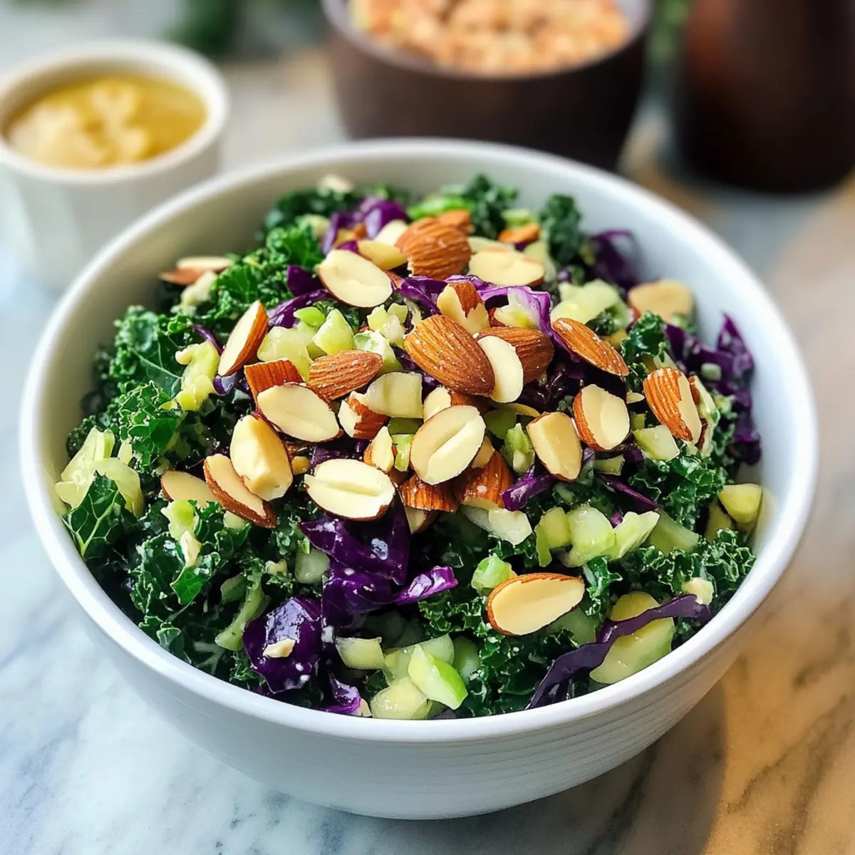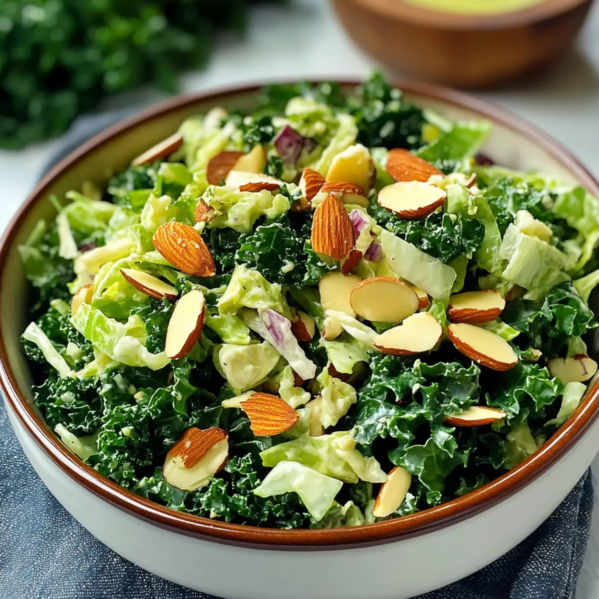 Als ich letztens in meine Küche kam, überkam mich der Appetit auf etwas Frisches und Gesundes. Ich erinnerte mich an den köstlichen Grünkohlsalat von Chick-Fil-A und dachte mir, ich könnte einen ganz eigenen, gesunden Twist kreieren. Mit meinem Rezept für den Chick-Fil-A Grünkohlsalat gelingt es mir, die Aromen und die Texturen ganz einfach nachzuahmen – und das in nur wenigen Minuten! Diese gesunde salatige Köstlichkeit kombiniert zarte Grünkohlblätter mit knackigem grünen Kohl und knusprigen Mandeln. Perfekt als Beilage oder als leichtes Hauptgericht, lässt sich dieser Salat ganz nach deinem Geschmack anpassen. Bist du bereit, deinen Salat-Horizont zu erweitern und deine Liebsten mit dieser Salat-Überraschung zu beeindrucken? Warum wirst du dieses Rezept lieben? Einfachheit: Die Zubereitung ist kinderleicht und erfordert nur grundlegende Kochfähigkeiten, sodass jeder in der Küche glänzen kann. Gesunde Zutaten: Mit frischem Grünkohl, knackigem Kohl und nussigen Mandeln, bringt dieser Salat eine Fülle an Nährstoffen auf deinen Teller. Vielseitigkeit: Ob als Beilage zu deinem Lieblingsgericht oder als leichtes Hauptgericht, dieser Salat lässt sich nach Lust und Laune anpassen, beispielsweise mit gegrilltem Hühnchen oder Tofu. Wachstum im Geschmack: Die Kombination aus einer pikanten Vinaigrette und frischen, knackigen Zutaten sorgt für ein unverwechselbares Geschmackserlebnis. Schnell und einfach: In nur wenigen Minuten servierfertig, ist dieser Salat das perfekte Rezept für vielbeschäftigte Menschen, die gesunde Entscheidungen treffen möchten. Beliebter Klassiker: Der Chick-Fil-A Grünkohlsalat spricht nicht nur gesundheitsbewusste Esser an, sondern wird garantiert auch von anderen als schmackhafte Überraschung geschätzt – ideal für Geselligkeit! Chick-Fil-A Grünkohlsalat Zutaten Für den Salat: • Grüner Grünkohl – bildet die nahrhafte Basis; die Rippen entfernen und grob hacken für eine zarte Textur. • Grüner Kohl – sorgt für Crunch und Süße; die Menge je nach persönlichem Geschmack erhöhen. • Geröstete und gesalzene Mandeln – bieten knusprigen Geschmack; können durch andere Nüsse oder Samen ersetzt werden. Für das Dressing: • Natives Olivenöl extra – sorgt für Wohlgeschmack in der Vinaigrette; verwende hochwertiges Öl für das beste Aroma. • Apfelessig – bringt Säure und einen frischen Kick; kann durch Weißweinessig ersetzt werden. • Dijon-Senf – verleiht einen scharfen Geschmack; milder gelber Senf ist eine alternative Wahl. • Ahornsirup – fügt eine natürliche Süße hinzu; Honig oder Agavensirup sind ebenfalls gute Alternativen. • Frischer Zitronensaft – hebt die Frische der Vinaigrette hervor; wenn frisch nicht verfügbar, kann auch abgefüllter Zitronensaft verwendet werden. • Weißweinessig – für eine ergänzende Säure; auch hier kann der Apfelessig eine gute Wahl sein. • Salz & schwarzer Pfeffer – für die richtige Würze; nach Geschmack anpassen. Dieser Chick-Fil-A Grünkohlsalat ist nicht nur eine gesunde Wahl, sondern zaubert auch eine Vielzahl von Geschmackskomponenten auf den Tisch! Step-by-Step Instructions for Chick-Fil-A Grünkohlsalat Step 1: Dressing Zubereiten In einem Glas oder einer Schüssel das native Olivenöl, Apfelessig, Dijon-Senf, Ahornsirup, frischen Zitronensaft, Weißweinessig, Salz und schwarzen Pfeffer gut vermengen. Schüttle das Glas oder verrühre die Zutaten mit einem Schneebesen kräftig, bis die Vinaigrette eine cremige Konsistenz erreicht. Diese schmackhafte Dressing-Basis wird gleich über den Grünkohlsalat kommen. Step 2: Grünkohl massieren Nehme den grob gehackten grünen Grünkohl und gib ihn in eine große Schüssel. Gieße etwa zwei Esslöffel von der vorbereiteten Vinaigrette darüber und beginne, den Grünkohl mit beiden Händen kräftig zu massieren. Dies sollte mindestens zwei bis drei Minuten dauern, damit die Blätter weich und zart werden. So wird der Grünkohl geschmacklich besser und angenehmer zu essen. Step 3: Gemüse kombinieren Füge den geriebenen grünen Kohl zum massierten Grünkohl hinzu. Vermische die beiden Gemüse gründlich, sodass die Aromen sich gleichmäßig verteilen. Nutze eine große Zange oder einen Löffel, um alles sanft zusammenzuwenden, sodass sich die Texturen und Farben harmonisch einfügen. Der Chick-Fil-A Grünkohlsalat wird dadurch lebendig und appetitlich. Step 4: Anrichten Teile die Salatmischung auf zwei Schalen auf. Streue die gehackten und gerösteten Mandeln großzügig über den Salat für zusätzlichen Crunch. Gebe nach Belieben noch etwas von der restlichen Vinaigrette darüber, um die Aromen zu intensivieren. Der letzte Schliff macht deinen Chick-Fil-A Grünkohlsalat nicht nur lecker, sondern auch schön anzusehen. Nützliche Tipps für den Chick-Fil-A Grünkohlsalat Kale Massieren: Durch Massieren des Grünkohls werden die Blätter zarter, was den Genuss erhöht. Verpasse diesen Schritt nicht! Vinaigrette Vorbereiten: Bereite das Dressing am besten einen Tag im Voraus zu und bewahre es in einem luftdichten Behälter im Kühlschrank auf. Anpassbarkeit: Experimentiere mit zusätzlichen Proteinen wie gegrilltem Hühnchen oder Tofu, um den Chick-Fil-A Grünkohlsalat in eine vollständige Mahlzeit zu verwandeln. Nüsse Variieren: Ersetze die Mandeln durch Walnüsse oder Kürbiskerne für eine neue Geschmacksrichtung. Fruchten Hinzufügen: Mandarinenstücke oder getrocknete Cranberries können dem Salat eine süße Note verleihen. Chick-Fil-A Grünkohlsalat Variationen entdecken Entdecke, wie du dieses Rezept ganz nach deinem Geschmack anpassen kannst und dabei eine köstliche Vielfalt kreierst. Nussfrei: Ersetze die Mandeln durch geröstete Sonnenblumenkerne für eine knusprige, aber nussfreie Option. Fruchtige Note: Füge frische Beeren oder Mango hinzu, um dem Salat eine süß-fruchtige Note zu verleihen. Protein Kick: Mische gegrilltes Hühnchen oder gebratenen Tofu unter, um den Salat zu einer vollst