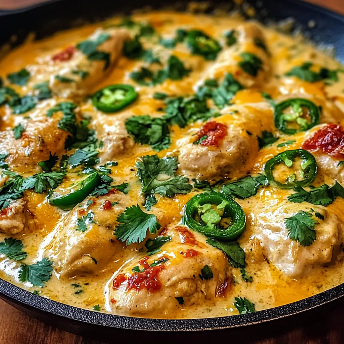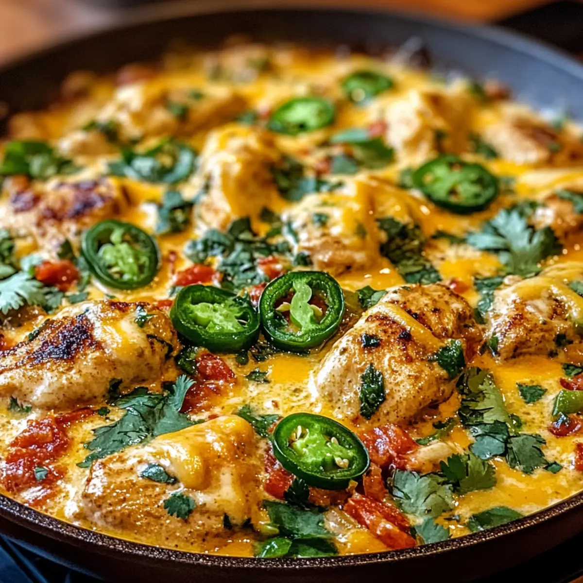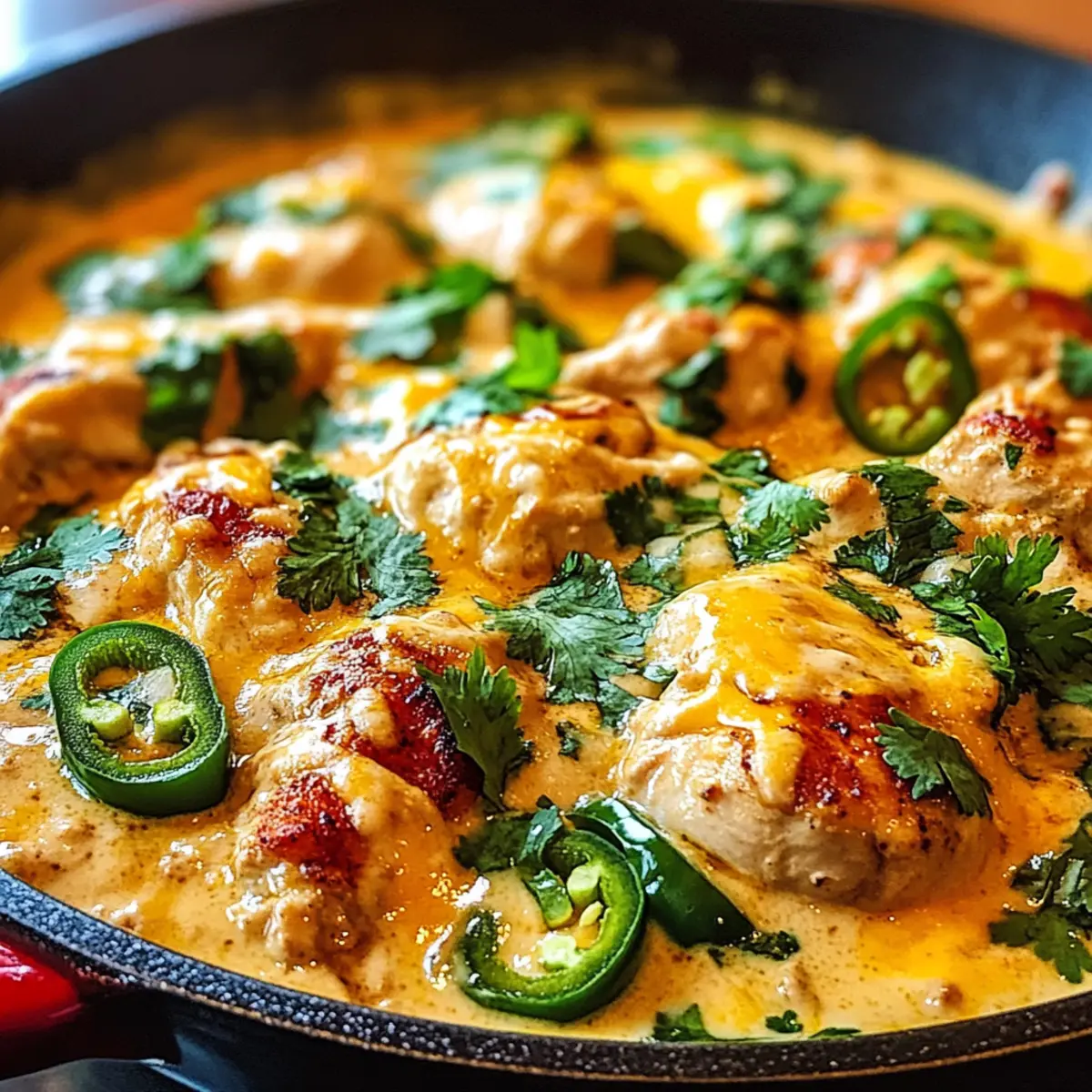 Wären Sie bereit, Ihre Geschmacksnerven auf eine aufregende Reise zu schicken? In dieser cremigen Jalapeño-Hühnchen-Pfanne – einem Rezept voller Tex-Mex-Aromen – erwartet Sie ein unvergleichliches Geschmackserlebnis. Zartes Hühnchen trifft auf eine reichhaltige und würzige Jalapeño-Cremesauce, die Ihr Herz erobern wird. Dieses Gericht eignet sich perfekt für hektische Wochentage und bietet sowohl einfache Zubereitung als auch ein rundum gemütliches Essen für die ganze Familie. Mit nur 45 Minuten Zubereitungszeit verwandeln Sie alltägliche Zutaten in ein köstliches Festmahl, das garantiert vielen schmecken wird. Neugierig geworden, wie Sie dieses leckere Rezept zubereiten können? Lassen Sie uns starten! Warum werden Sie dieses Rezept lieben? Einfachheit: Die Zubereitung dieser leckeren Cremigen Jalapeño-Hühnchen-Pfanne erfordert nur grundlegende Kochkenntnisse und wenig Zeit. Vielseitigkeit: Sie können das Rezept ganz nach Ihrem Geschmack anpassen, indem Sie verschiedene Hühnchenteile oder sogar dairy-free Alternativen verwenden. Würziger Geschmack: Die Kombination aus frischen Jalapeños und cremigem Käse sorgt für ein intensives Geschmackserlebnis, das nicht nur satt macht, sondern auch Freude bereitet. Familienfreundlich: Mit nur 45 Minuten Zubereitungszeit eignet sich dieses Gericht hervorragend für hektische Wochentage, perfekt für jeden, der den Fast-Food-Einheitsbrei hinter sich lassen möchte. Ideal für Reste: Übrig gebliebene Portionen sind am nächsten Tag noch köstlich! Verwenden Sie die Reste für ein schnelles Mittagessen oder um sie in der Pfanne mit frischem Gemüse zu kombinieren – so wird nichts verschwendet! Cremige Jalapeño-Hühnchen-Pfanne Zutaten Für die Soße • Olivenöl – Zum Anbraten verwenden; bei Bedarf kann auch Pflanzenöl genutzt werden. • Hühnchenbrust – Die Hauptzutat; Hühnchenschenkel sorgen für zusätzlichen Geschmack und Saftigkeit. • Hühnerbrühe – Bildet die Basis der Soße; Gemüsebrühe ist eine gute vegetarische Alternative. • Schlagsahne – Für eine cremige Konsistenz; Kokosmilch kann als milchfreie Variante genutzt werden. • Geriebener Cheddar – Fügt Cremigkeit und einen würzigen Geschmack hinzu; milchfreier Käse kann ebenfalls verwendet werden. Für die Würze • Salz & Pfeffer – Zur Geschmacksanpassung; nach Belieben nachwürzen. • Paprika – Gibt einen Hauch von Rauch; optional für zusätzlichen Geschmack. • Zwiebel – Bringt Süße und Tiefe; kann bei Bedarf durch Schalotten ersetzt werden. • Knoblauch – Verstärkt das Aroma; frisch ist am besten, aber Knoblauchpulver ist auch möglich. Für den Pepp • Jalapeños – Die Hauptquelle der Würze; für weniger Schärfe die Kerne entfernen oder für mehr Hitze zusätzliche Jalapeños hinzufügen. • Frischer Koriander – Für Garnierung und zusätzliche Frische; nach Belieben mehr verwenden. Step-by-Step Instructions für Cremige Jalapeño-Hühnchen-Pfanne Rezept Step 1: Hühnchen anbraten Erhitzen Sie in einer großen Pfanne bei mittlerer Hitze etwas Olivenöl. Würzen Sie die Hühnchenbrust mit Salz, Pfeffer und Paprika. Braten Sie das Hühnchen 5-7 Minuten auf jeder Seite, bis es goldbraun und durchgegart ist. Prüfen Sie mit einem Fleischthermometer, ob die Kerntemperatur mindestens 75 °C beträgt. Nehmen Sie das Hühnchen aus der Pfanne und legen Sie es beiseite. Step 2: Gemüse anbraten Geben Sie in derselben Pfanne die gewürfelten Zwiebeln und die in Scheiben geschnittenen Jalapeños. Braten Sie diese bei mittlerer Hitze 3-4 Minuten an, bis die Zwiebeln weich und leicht durchscheinend sind. Fügen Sie den gehackten Knoblauch hinzu und braten Sie ihn für eine weitere Minute, bis er aromatisch ist und eine goldene Farbe annimmt. Step 3: Soße zubereiten Gießen Sie die Hühnerbrühe in die Pfanne und bringen Sie die Mischung zum sanften Köcheln. Rühren Sie die Schlagsahne unter und lassen Sie die Soße 2-3 Minuten köcheln, bis sie leicht eingedickt ist. Achten Sie darauf, regelmäßig umzurühren, damit nichts ansetzt und die Soße eine cremige Konsistenz erhält. Step 4: Käse hinzufügen Integrieren Sie den geriebenen Cheddar in die Soße und rühren Sie um, bis er vollständig schmilzt. Genießen Sie den Duft, der sich entfaltet, während der Käse schmelzen und die Soße cremig wird. Dies verleiht Ihrer Cremigen Jalapeño-Hühnchen-Pfanne den letzten Schliff und sorgt für einen herrlichen Geschmack. Step 5: Hühnchen kombinieren Legen Sie das angebratene Hühnchen zurück in die Pfanne und wenden Sie es, um es gut mit der Soße zu überziehen. Lassen Sie das Gericht weitere 2-3 Minuten in der Pfanne, damit sich die Aromen verbinden und das Hühnchen die leckere Soße aufnehmen kann. Garnieren Sie die Pfanne großzügig mit frisch gehacktem Koriander, bevor Sie servieren. Lagerungstipps für Cremige Jalapeño-Hühnchen-Pfanne Raumtemperatur: Lassen Sie die Cremige Jalapeño-Hühnchen-Pfanne nicht länger als 2 Stunden bei Raumtemperatur stehen, um das Wachstum von Bakterien zu vermeiden. Kühlschrank: Bewahren Sie Reste in einem luftdichten Behälter im Kühlschrank auf und genießen Sie sie innerhalb von 3 Tagen. So bleibt der Geschmack frisch und die Cremigkeit erhalten. Gefrierschrank: Für eine längere Haltbarkeit können Sie die Pfanne bis zu 2 Monate im Gefrierfach aufbewahren. Achten Sie darauf, sie gut abzudecken, um Gefrierbrand zu vermeiden. Wiedererhitzen: Beim Wiedererhitzen sollte die Pfanne langsam auf dem Herd bei niedriger Hitze erwärmt werden. Fügen Sie einen Schuss Brühe hinzu, um die cremige Konsistenz wiederherzustellen. Cremige Jalapeño-Hühnchen-Pfanne Variationen Lassen Sie Ihrer Kreativität freien Lauf und passen Sie dieses köstliche Rezept an Ihren Geschmack an! Hier sind einige einfache und schmackhafte Optionen, um das Gericht nach Ihren Vorstellungen zu verändern. Hühnchenteile: Verwenden Sie Hühnchenschenkel für mehr Saftigkeit und Geschmack, oder probieren Sie frittie