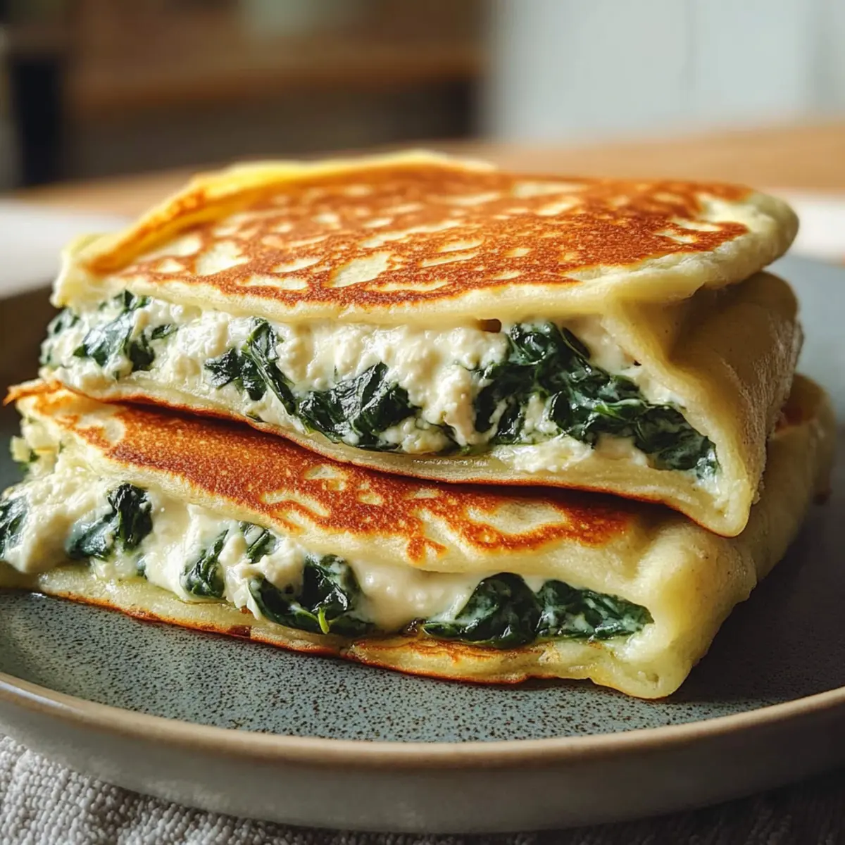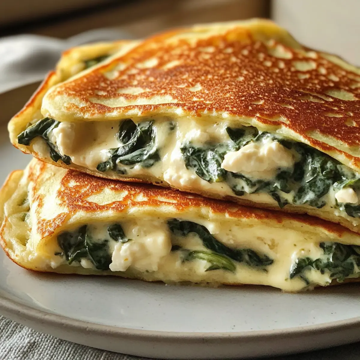 Als ich das letzte Mal am Küchentisch saß und die frischen Farben der Zutaten betrachtete, wurde mir klar, dass ich ein wahres Wohlfühlessen zaubern wollte – Cremige Spinat-Käse-Pfannkuchen. Diese perfekten kleinen Leckerbissen vereinen den erdigen Geschmack von Spinat mit der samtigen Cremigkeit von Ricotta und dem schmelzenden Käse. Sie eignen sich nicht nur für ein herzhaftes Frühstück, sondern sind auch ein fantastisches Abendessen oder eine besondere Snack-Idee. Die Zubereitung ist kinderleicht und verspricht, auch die anspruchsvollsten Gaumen zu erfreuen, ohne die Herausforderung von wässrigen Füllungen. Ideal für alle, die sich nach einem abwechslungsreichen und gesunden Gericht sehnen! Wann hast du das letzte Mal Deine Familie oder Freunde mit etwas Neuem überrascht? Lass uns diese köstlichen Pfannkuchen gemeinsam entdecken! Warum wirst du diese Pfannkuchen lieben? Einfachheit: Die Zubereitung der cremigen Spinat-Käse-Pfannkuchen ist kinderleicht – auch für Anfänger! Vielseitigkeit: Perfekt für Frühstück, Mittagessen oder Dinner, sie passen zu jeder Gelegenheit. Geschmacksexplosion: Die Kombination aus Spinat, Ricotta und Käse bietet ein intensives, käsiges Geschmackserlebnis. Gesund und nahrhaft: Diese Pfannkuchen sind nicht nur lecker, sondern auch reich an Nährstoffen und perfekt für eine vegetarische Ernährung. Zeitersparnis: Schnell zubereitet, kannst du sie in weniger als 30 Minuten an den Tisch bringen. Verwöhne deine Lieben und entdecke, wie großartig eine Kombination aus Genuss und Gesundheit sein kann – vielleicht möchtest du auch einmal die Variation Ideen ausprobieren! Cremige Spinat-Käse-Pfannkuchen Zutaten Für den Teig Weizenmehl Typ 405 – sorgt für die Grundstruktur der Pfannkuchen; du kannst auch Allzweckmehl verwenden. Eier – binden die Zutaten und sorgen für Reichhaltigkeit; sorge dafür, dass sie Zimmertemperatur haben für bessere Mischung. Milch – fügt Feuchtigkeit hinzu und hilft, einen zarten Teig zu kreieren; alternativ kannst du Mandeldrink oder Hafermilch nutzen. Prise Salz – verbessert den Geschmack im Teig; (keine Substitution notwendig). geschmolzene Butter (plus extra für das Ausbacken) – verleiht Geschmack und Feuchtigkeit; verwende für eine milchfreie Option Öl. Für die Füllung gefrorener Blattspinat (oder frischer Spinat) – gibt den Hauptgeschmack und Nährstoffe; frischen Spinat musst du blanchieren. Ricotta oder Frischkäse – sorgt für Cremigkeit in der Füllung; du kannst Feta für einen würzigeren Geschmack verwenden. geriebener Mozzarella – contributes zur cremigen Textur beim Schmelzen; kann durch jeden schmelzbaren Käse ersetzt werden. Knoblauchzehe – verbessert den Geschmack der Füllung; optional, lasse ihn weg für einen milderen Geschmack. Muskatnuss – ein Hauch hebt das gesamte Geschmacksprofil; (keine Substitution notwendig). Salz und frisch gemahlener schwarzer Pfeffer – Gewürze nach Geschmack zur Geschmacksverstärkung; (keine Substitution notwendig). Schritt-für-Schritt-Anleitung für Cremige Spinat-Käse-Pfannkuchen Step 1: Teig herstellen Mehl und Salz in einer Schüssel gut vermischen. In einer separaten Schüssel die Eier und die Milch verquirlen, bis sie gleichmäßig kombiniert sind. Nach und nach die feuchten Zutaten zu den trockenen Zutaten geben und geschmolzene Butter hinzufügen. Den Teig für 15 Minuten ruhen lassen, damit er eine zarte Konsistenz erhält. Step 2: Spinat vorbereiten Falls du gefrorenen Spinat verwendest, diesen auftauen, abtropfen lassen und überschüssige Flüssigkeit ausdrücken. Bei frischem Spinat kurz blanchieren, dann abkühlen lassen und ebenfalls gut abtropfen. Achte darauf, dass der Spinat gut trocken ist, um die Füllung nicht wässrig werden zu lassen. Step 3: Füllung zubereiten In einer Schüssel den vorbereiteten Spinat mit Ricotta oder Frischkäse, geriebenem Mozzarella, fein gehacktem Knoblauch, Muskatnuss sowie Salz und Pfeffer gut vermengen. Die Mischung sollte gleichmäßig und cremig sein, damit die cremigen Spinat-Käse-Pfannkuchen vollmundig gefüllt werden können. Step 4: Pfannkuchen ausbacken Eine beschichtete Pfanne bei mittlerer Hitze mit etwas Butter erhitzen. Eine kleine Menge Teig in die Pfanne geben und schwenken, damit er gleichmäßig verteilt wird. Die Pfannkuchen 1-2 Minuten backen, bis die Ränder goldbraun und Blasen auf der Oberfläche sichtbar sind. Dann wenden und die andere Seite ebenfalls goldbraun backen. Step 5: Füllen und servieren Nehme einen Pfannkuchen, lege eine Portion Füllung auf eine Hälfte, und klappe ihn um. Du kannst ihn optional wieder in die Pfanne oder den Ofen geben, um ihn weiter zu erhitzen, bis der Käse schmilzt. Sofort mit deinen bevorzugten Beilagen servieren und die köstlichen cremigen Spinat-Käse-Pfannkuchen genießen! Meal Prep für Cremige Spinat-Käse-Pfannkuchen Die cremigen Spinat-Käse-Pfannkuchen sind ideal für die Vorbereitung im Voraus und helfen dir, wertvolle Zeit an hektischen Wochentagen zu sparen. Du kannst den Pfannkuchenteig bis zu 24 Stunden im Kühlschrank ruhen lassen, was ihm eine zarte Konsistenz verleiht. Den Spinat kannst du ebenso bis zu 3 Tage im Voraus zubereiten – einfach kochen, abtropfen lassen und im Kühlschrank aufbewahren. Wenn du bereit bist, die Pfannkuchen zuzubereiten, bringe die Füllung in der Pfanne zum Aufwärmen und folge den Schritten 4 und 5, um sie frisch und köstlich zu servieren. Achte darauf, den Spinat gut zu entwässern, damit die Füllung beim Kochen nicht wässrig wird und die cremigen Spinat-Käse-Pfannkuchen einfach himmlisch schmecken. Variationen zu Cremige Spinat-Käse-Pfannkuchen Entdecke die köstlichen Möglichkeiten, die du bei der Zubereitung dieser Pfannkuchen ausprobieren kannst! Lass deiner Kreativität freien Lauf und bring noch mehr Geschmack auf den Tisch. Feta statt Mozzarella: Verwende Feta für eine intensivere, salzige Note – eine geschmackliche Entdeckung! Frische Kräuter: Füge frisc