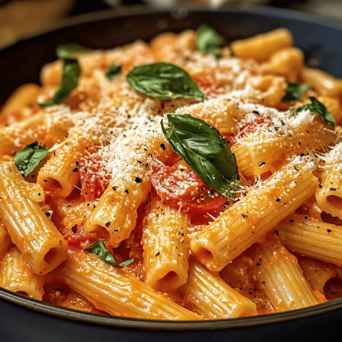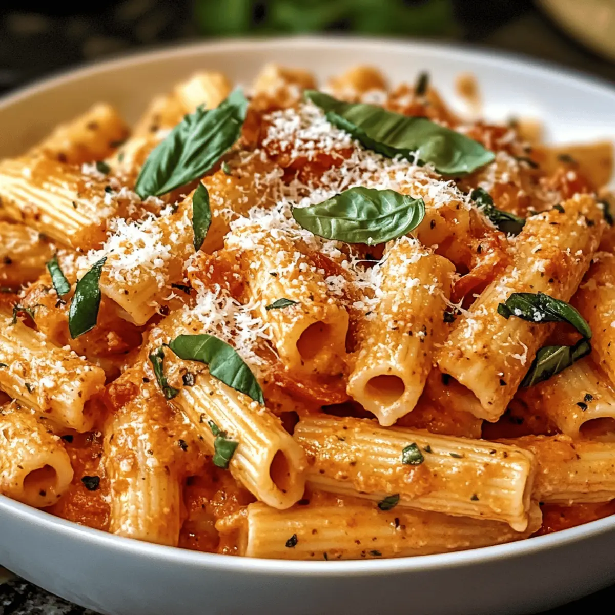 Servieren Sie die Cremige Tomate Ricotta Nudeln sofort auf Tellern. Garnieren Sie jedes Gericht großzügig mit frischem Basilikum und zusätzlichem geriebenem Parmesan, um den letzten Schliff zu geben. Genießen Sie dieses köstliche Gericht, das sowohl einfach als auch beeindruckend ist!