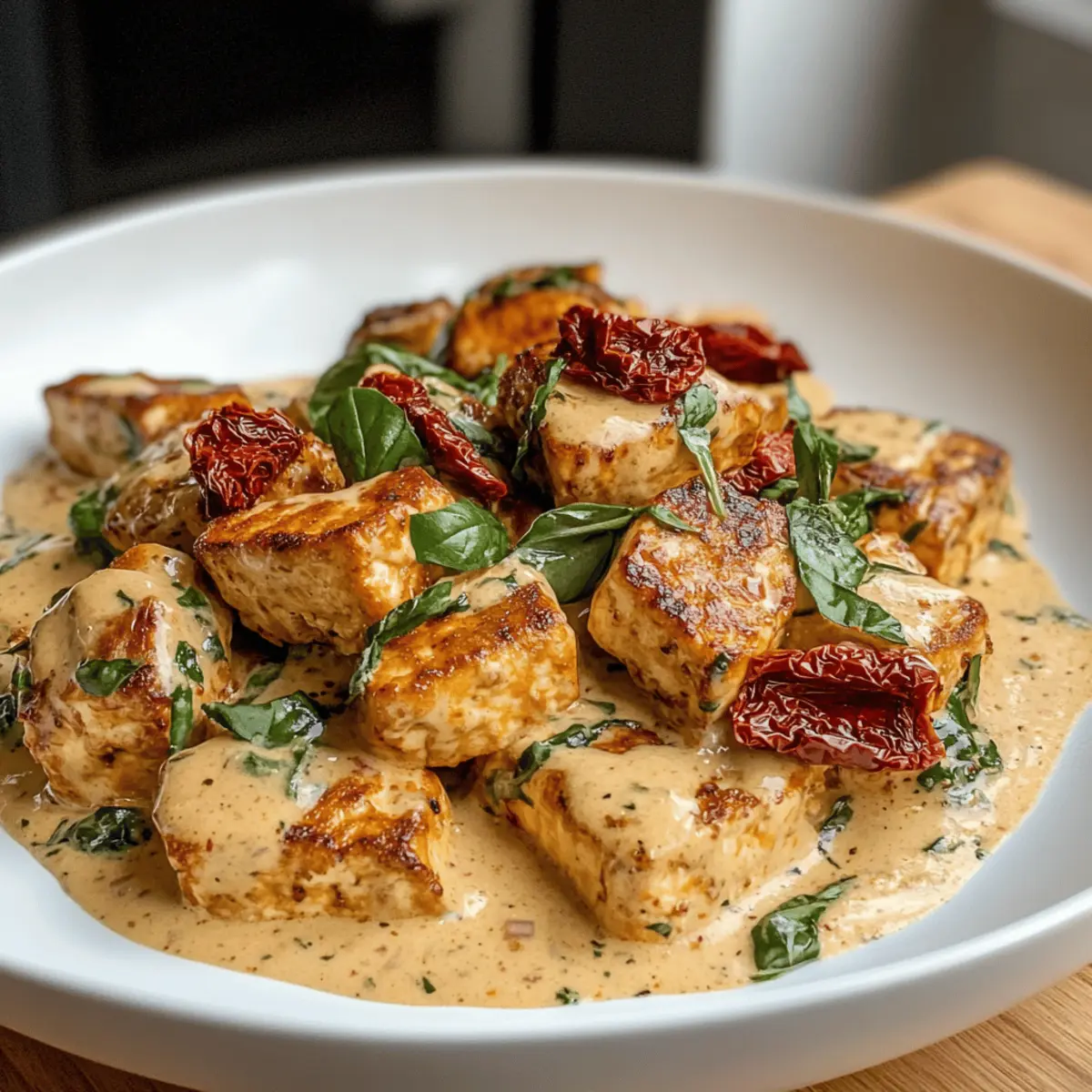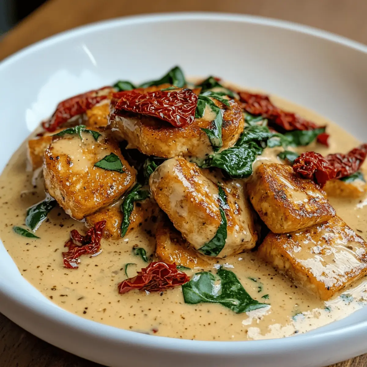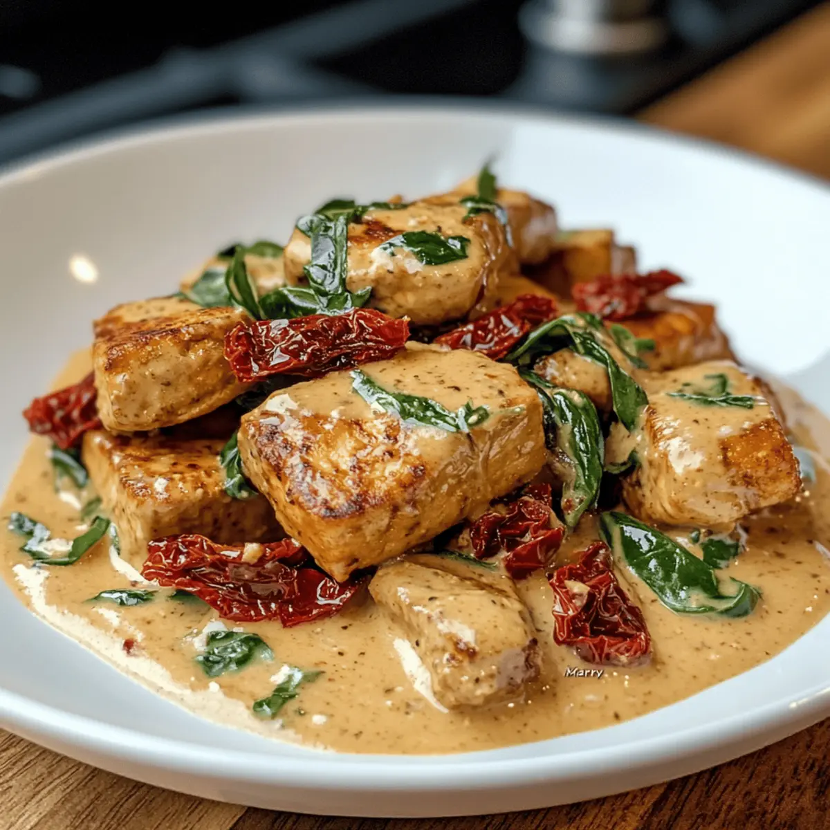 Wie oft habe ich schon beim Kochen gedacht, dass ein Gericht nicht nur gut schmecken, sondern auch einen Hauch von Romantik versprühen sollte? Mit dem cremigen „Heirate mich“-Tofu mit italienischem Flair gelingt genau das! Diese vegane Variante des berühmten „Marry Me Chicken“ vereint knusprigen Tofu mit einer samtigen, cremigen Sauce aus Cashews, sonnengetrockneten Tomaten und frischem Spinat. Dieses Rezept ist nicht nur ein köstliches Festmahl, das garantiert den Gaumen verwöhnt, sondern auch eine hervorragende Option für eine schnelle Zubereitung und befriedigenden Komfort. Ob bei einem romantischen Dinner oder an einem entspannten Abend zu Hause, dieser Tofu wird alle am Tisch verzaubern. Bereitet ihr euch auch gerne Gerichte zu, die nicht nur sättigen, sondern auch das Herz erwärmen? Warum wirst du dieses Rezept lieben? Einfachheit pur: Das Rezept erfordert nur grundlegende Kochkenntnisse und ist dennoch beeindruckend genug für spezielle Anlässe. Cremiger Genuss: Die Kombination aus Cashew-Sauce und sonnengetrockneten Tomaten sorgt für einen reichen, herzhaften Geschmack, der jeden begeistert. Vielseitig einsetzbar: Serviere den Tofu zu Reis oder Pasta für eine vollwertige Mahlzeit, oder genieße ihn als Beilage zu einem frischen Salat – die Möglichkeiten sind endlos! Schnell zubereitet: In kürzester Zeit zauberst du ein Gericht, das sowohl sättigt als auch das Herz erwärmt, ideal, wenn du nach einer köstlichen Alternative zu Fast Food suchst. Gesunde Wahl: Dieser Tofu ist nicht nur vegan und glutenfrei, sondern auch reich an pflanzlichem Protein, ideal für alle, die sich gesund ernähren möchten. Cremiger Heirate mich Tofu Zutaten Hinweis: Hier findest du alles, was du für den cremigen „Heirate mich“-Tofu mit italienischem Flair benötigst, um ein unvergleichliches Geschmackserlebnis zu schaffen. Für den Tofu • Tofu – Wähle festen oder extra-festen Tofu für die beste Textur. • Maisstärke – Sorgt für eine knusprige Panade beim Braten. • Nährhefe – Verleiht einen würzigen, käsigen Geschmack. • Salz & Pfeffer – Grundlegende Gewürze zur Geschmacksverstärkung. • Öl (zum Braten) – Ist notwendig, um eine goldene, knusprige Oberfläche zu erhalten. Für die cremige Sauce • Cashewkerne – Für eine samtige Sauce; über Nacht in Wasser einweichen für ein besseres Ergebnis. • Knoblauch – Frisch gehackt für ein aromatisches Erlebnis. • Sonnengetrocknete Tomaten – Fügen eine süß-saure Note hinzu; frisch geht auch. • Oregano & Chiliflocken – Verleihen zusätzliche Wärme und Geschmacksvielfalt. • Gemüsebrühe – Basisflüssigkeit für die Sauce; Wasser kann ebenfalls verwendet werden. • Tomatenmark – Intensiviert die Sauce und gibt eine tiefere Farbe. • Babyspinat – Für Frische und Farbe; kann durch andere Blattgemüse ersetzt werden. • Frisches Basilikum – Fügt aromatische Frische hinzu; getrocknetes Basilikum als Ersatz möglich. • Veganer Parmesan (optional) – Für eine käsige Note; kann ebenfalls weggelassen werden. Beilagen (optional) • Reis oder Pasta – Perfekte Ergänzung zu diesem herzhaften Gericht. Step-by-Step Instructions für Cremiger „Heirate mich“-Tofu mit italienischem Flair Step 1: Cashewkerne vorbereiten Weiche die Cashewkerne in heißem Wasser für etwa 30 Minuten ein. Dies sorgt dafür, dass sie sich später leichter pürieren lassen und die Sauce besonders cremig wird. Nach der Einweichzeit die Cashews abgießen und mit frischem Wasser in einen Mixer geben. Mixe sie, bis eine glatte und samtige Konsistenz entsteht. Step 2: Tofu vorbereiten Schneide den Tofu in die gewünschte Form, zum Beispiel Würfel oder Scheiben. Vermische in einer Schüssel die Maisstärke, Nährhefe, Salz und Pfeffer. Wälze die Tofu-Stücke gleichmäßig in der Mischung, sodass sie gut bedeckt sind und eine knusprige Außenschicht erhalten, die beim Braten entsteht. Step 3: Tofu braten Erhitze in einer großen Pfanne etwas Öl bei hoher Hitze. Sobald das Öl heiß ist, gib die panierte Tofu-Stücke hinein und brate sie für etwa 3-4 Minuten pro Seite, bis sie goldbraun und knusprig sind. Achte darauf, die Tofu-Stücke nicht zu überfüllen, damit sie gleichmäßig braten können. Nach dem Braten den Tofu auf einem Küchenpapier abtropfen lassen. Step 4: Knoblauch anbraten In der gleichen Pfanne reduziere die Hitze auf mittlere Stufe und füge gehackten Knoblauch hinzu. Sauté den Knoblauch für ca. 1-2 Minuten, bis er aromatisch ist, aber nicht angebrannt. Dies gibt der Sauce eine wunderbare Geschmacksbasis. Achte darauf, ständig umzurühren, um ein Anbrennen zu verhindern. Step 5: Tomaten und Gewürze hinzufügen Füge die sonnengetrockneten Tomaten, Oregano und Chiliflocken in die Pfanne hinzu und koche alles für eine weitere Minute. Die Aromen vereinen sich und intensivieren den Geschmack der späteren Sauce. Rühre gut um, um sicherzustellen, dass alles gleichmäßig erwärmt wird. Step 6: Flüssigkeit hinzufügen Gieße die Gemüsebrühe in die Pfanne und füge das Tomatenmark hinzu. Rühre alles gut durch, bis die Zutaten vollständig kombiniert sind. Lasse die Mischung leicht köcheln, damit sich die Aromen entfalten können. Dies sollte etwa 3-4 Minuten dauern. Step 7: Cashewcreme einrühren Jetzt kommt der cremige Teil! Füge die vorbereitete Cashewcreme hinzu und rühre alles gut um. Lass die Sauce für etwa 5 Minuten auf mittlerer Hitze köcheln, bis sie leicht eingedickt ist. Achte darauf, die gesamte Mischung gut zu kombinieren, sodass der cremige „Heirate mich“-Tofu die Sauce perfekt aufnimmt. Step 8: Spinat und Gewürze Gib den Babyspinat in die Sauce und koche ihn, bis er verwelkt ist, was etwa 2 Minuten dauert. Schmecke die Sauce mit Salz und Pfeffer ab, um den Geschmack perfekt auszubalancieren. Die frischen grünen Blattgemüse fügt nicht nur Farbe, sondern auch einen nahrhaften Aspekt hinzu. Step 9: Tofu einarbeiten Lege den knusprigen Tofu wieder in die Pfanne 