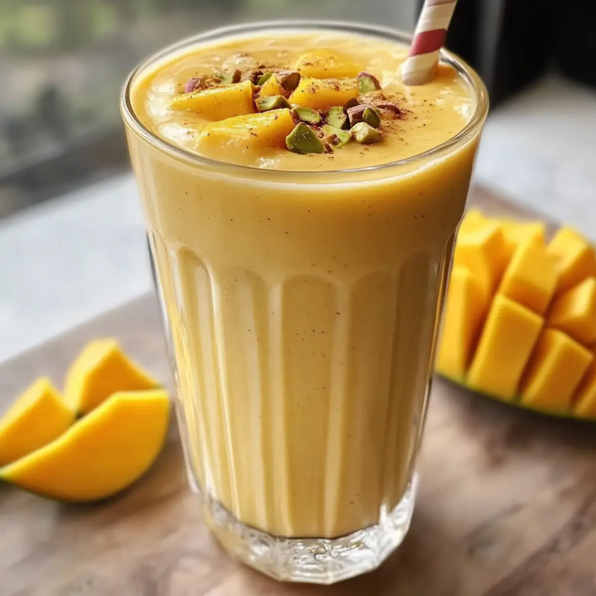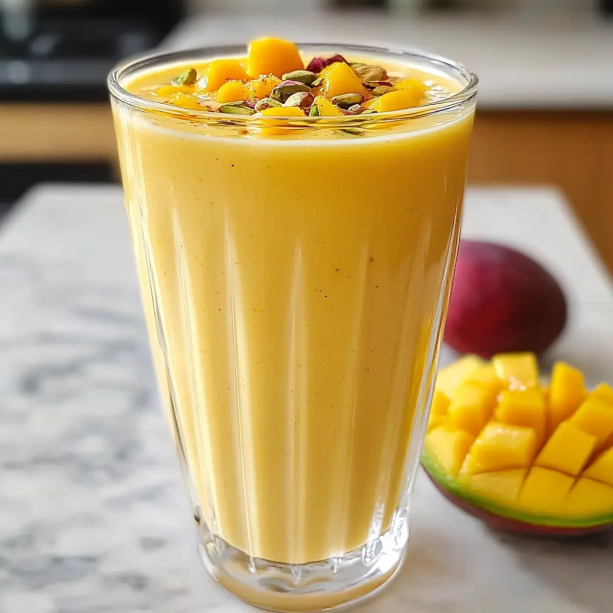 Wenn ich an einen sommerlichen Tag in Indien denke, kommt mir sofort der Gedanke an ein erfrischendes Getränk, das jeden Schluck zu einem kleinen Urlaub für die Sinne macht: der Cremiger Mango Lassi Rezept. Diese köstliche Mischung vereint die süße Frische von reifen Mangos, die mit dem cremigen Geschmack von griechischem Joghurt kombiniert wird. Ideal für warme Nachmittage oder als gesunder Snack, bietet dieser lassi nicht nur eine angenehme Abkühlung, sondern bleibt auch leicht und bekömmlich. Und das Allerbeste? Die Zubereitung geht superschnell, sodass du ihn in wenigen Minuten genießen kannst! Bist du bereit, deine Geschmacksnerven auf eine tropische Reise zu schicken? Warum wirst du dieses Rezept lieben? Einfachheit: Die Zubereitung ist ein Kinderspiel und erfordert lediglich ein paar grundlegende Küchenfähigkeiten. Innerhalb von Minuten kannst du dir ein erfrischendes Getränk zaubern. Fruchtige Frische: Die Kombination aus süßen, reifen Mangos und cremigem griechischen Joghurt sorgt für einen Geschmack, der sowohl deliziös als auch erfrischend ist. Gesunde Wahl: Dank seiner fettarmen Zutaten ist der Mango Lassi nicht nur köstlich, sondern auch leicht und nährstoffreich. Ein perfekter Snack für warme Tage! Kulturelles Flair: Dieser Lassi ist mehr als nur ein Getränk; er bringt die Aromen Indiens zu dir nach Hause und macht jeden Schluck zu einem Erlebnis. Variabilität: Du kannst mit der Rezeptur experimentieren, verschiedene Früchte oder Gewürze hinzufügen und so deinen ganz persönlichen Dreh kreieren. Crowd-Pleaser: Perfekt für gesellige Anlässe; dieser Lassi ist ein Hit auf jeder Feier und begeistert Familie und Freunde gleichermaßen. Eventuell möchtest du ihn auch zu leckeren Snacks wie Samosas oder Pakoras servieren. Cremiger Mango Lassi Zutaten Für den Lassi • Mango – Sorgt für natürliche Süße und lebhafte Farbe; verwende vollreife Mangos für optimale Cremigkeit. • Fettfreier griechischer Joghurt – Verleiht Cremigkeit und einen leicht säuerlichen Geschmack; kann durch Kokosjoghurt als milchfreie Option ersetzt werden. • Fettfreie Milch – Balanciert die Konsistenz; Mandelmilch oder andere pflanzliche Milchsorten sind gute, milchfreie Alternativen. • Süßungsmittel nach Wahl – Verstärkt die Süße; optional je nach Reife der Mangos—Honig oder Agavennektar eignen sich hervorragend. • Eiswürfel – Sorgt für ein erfrischendes, gekühltes Getränk; passe die Menge für die gewünschte Dicke an. Für die Garnitur • Gemahlenen Kardamom – Gibt dem Lassi einen aromatischen Touch; ein wenig genügt, um den Geschmack zu intensivieren. • Gehackte Pistazien – Fügen Knusprigkeit und Farbe hinzu; ideal für einen zusätzlichen Crunch. • Minzblätter – Frisch und duftend; bringen ein wenig Frische in die Präsentation des Getränks. Mit diesen einfachen Zutaten kannst du den leckeren Cremiger Mango Lassi Rezept zubereiten und die Sonne Indiens in dein Zuhause bringen! Schritt-für-Schritt-Anleitung für das Cremiger Mango Lassi Rezept Step 1: Mango vorbereiten Schäle die reife Mango mit einem scharfen Messer und schneide sie in kleine Stücke. Achte darauf, nur die saftigsten Teile zu verwenden, um einen vollmundigen Geschmack zu gewährleisten. Du benötigst etwa eine Tasse Mango, die nach süßem Aroma duftet und leicht nachgibt, wenn du sie drückst. Step 2: Zutaten kombinieren Gib die vorbereiteten Mangostücke in einen leistungsstarken Mixer. Füge nun den fettfreien griechischen Joghurt, etwa eine halbe Tasse fettfreie Milch und dein gewähltes Süßungsmittel hinzu. Versichere dich, dass alles gut vermischt werden kann, indem du den Deckel des Mixers sicher schließt, um Spritzer zu vermeiden. Step 3: Eiskalte Erfrischung Füge nun eine Handvoll Crushed Ice in den Mixer hinzu, um den Mango Lassi kalt und erfrischend zu machen. Mixe die Zutaten auf hoher Stufe für etwa 30 Sekunden, bis eine cremige und glatte Konsistenz erreicht ist. Achte darauf, dass keine Stückchen mehr vorhanden sind; der Lassi sollte gleichmäßig und samtig wirken. Step 4: Servieren Gieße den cremigen Mango Lassi in hohe Gläser und achte darauf, ihn umgehend zu servieren, damit er frisch bleibt. Um die Präsentation zu verfeinern, kannst du optional gemahlenen Kardamom, gehackte Pistazien oder einige Minzblätter darüber streuen. Diese Garnituren geben deinem Cremiger Mango Lassi Rezept den letzten Schliff. Cremiger Mango Lassi Rezept Variationen Lass deiner Kreativität freien Lauf und passe dieses erfrischende Getränk nach deinem Geschmack an! Milchfrei: Ersetze den griechischen Joghurt durch Kokosjoghurt für eine exotische, pflanzliche Variante. Der Kokosgeschmack ergänzt die Mango wunderbar und sorgt für einen tropischen Genuss. Zusätzliche Süße: Verwende statt Honig oder Agave auch Dattelsirup. Dattelsirup ist nicht nur süß, sondern verleiht zudem einen reichen, karamellartigen Geschmack. Fruchtige Vielfalt: Tausche die Mango gegen andere Früchte wie Ananas oder Erdbeeren aus. Jede Frucht bringt ihr eigenes Aroma ein und sorgt für aufregende Geschmackserlebnisse. Würzige Note: Füge eine Prise Zimt oder Muskatnuss hinzu, um dem Lassi eine warme, würzige Dimension zu verleihen. Diese Gewürze harmonisieren perfekt mit der Süße der Mango. Extra Crunch: Streue geröstete Mandeln oder Walnüsse als Topping darüber, um einen knackigen Kontrast zur cremigen Textur zu bieten. Diese Nüsse bringen nicht nur Crunch, sondern auch gesunde Fette. Kalte Erfrischung: Verwende gefrorene Mangostücke anstelle von frischen, um einen besonders kühlen und erfrischenden Lassi zu kreieren. Das macht ihn perfekt für heiße Sommertage! Geschmackskombination: Kombiniere Mango mit anderen tropischen Früchten wie Papaya oder Kiwi für eine fruchtige Explosion. Jedes Schlückchen wird so ein aufregendes Erlebnis. Schärfe hinzufügen: Ein kleiner Spritzer Limettensaft oder ein Hauch von frischem Ingwer bringt eine spannende Säure und Sch