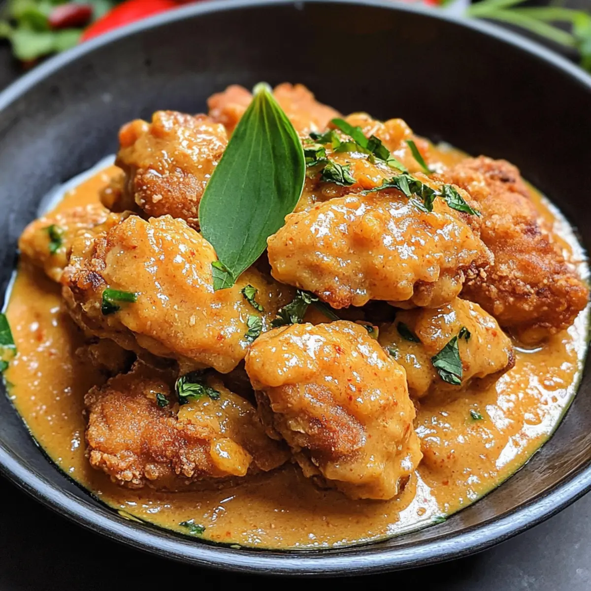Die Aromen von Indonesien sind unbestreitbar fesselnd und bringen kulinarische Glücksmomente direkt in unsere Küchen. Bei meinem Rezept für cremiges gesalzenes Eigelb-Hühnchen, erwartet euch eine wahre Geschmacksexplosion, bei der knusprig gebratenes Hühnchen in einer würzigen, samtigen Sauce badet. Diese einfache, herzhafte Speise überrascht nicht nur als Blickfang auf dem Tisch, sondern überzeugt auch als schnelles Abendessen für die ganze Familie. Perfekt dazu ist locker gedämpfter Reis und ein Spiegelei, die das Geschmackserlebnis wunderbar abrunden. Neugierig, wie ihr dieses umami-beladene Gericht selbst zubereiten könnt? Lasst uns gleich loslegen! Warum werde ich dieses Rezept lieben? Einfachheit: Die Zubereitung ist unkompliziert, sodass auch ungeübte Köche problemlos in den Genuss dieser köstlichen Speise kommen. Geschmacksexplosion: Die Kombination aus gesalzenem Eigelb und cremiger Sauce verleiht dem knusprigen Hühnchen ein unvergleichliches Aroma, das garantiert jeden Gaumen begeistert. Vielfältige Variationen: Ob mit Hähnchenbrust für eine magerere Option oder mit zusätzlichen Kräutern – die Möglichkeiten sind endlos! Perfekte Kombination: Kombiniert mit lockerem Reis und einem Spiegelei wird dieses Gericht zum ultimativen Comfort Food für die ganze Familie. Schneller Genuss: In weniger als einer Stunde zaubert ihr dieses umami-lastige Gericht auf den Tisch, ideal für ein schnelles Abendessen nach einem langen Tag. Entdeckt auch unsere anderen indonesischen Rezeptideen, um eure Menüauswahl zu erweitern! Zutaten für cremiges gesalzenes Eigelb-Hühnchen • Dieses Rezept wird euch verzaubern mit seiner Einfachheit und dem intensiven Umami-Geschmack. Für das Hühnchen Hähnchenschenkel ohne Haut – Das zarte Fleisch sorgt für eine saftige Basis. In gleichmäßige Stücke schneiden für ein perfektes Garen. Ei – Dient als Bindemittel für die Panade und macht das Hühnchen besonders knusprig. Allzweckmehl – Gibt Struktur und Knusprigkeit beim Frittieren des Hühnchens. Reismehl oder Maisstärke – Verbessert die Knusprigkeit der Panade für eine luftige Textur. Salz & weißer Pfeffer – Essenziell für die Würzung; teilen, um das Hühnchen zu marinieren und zu panieren. Hühnerbrühe-Pulver – Fügt Tiefe und Geschmack sowohl zum Hühnchen als auch zur Sauce hinzu. Öl (zum Frittieren) – Unverzichtbar für ein köstliches Frittiererlebnis und eine knusprige Textur. Für die Sauce Butter – Sorgt für reichhaltigen Geschmack und hilft beim Anbraten der Aromaten für die Sauce. Curryblätter – Verleihen der Sauce ein einzigartiges Aroma und Geschmack. Knoblauch – Fügt beim Anbraten eine herzhafte Tiefe hinzu. Vogelaugen-Chilis – Bringen Schärfe und eine prickelnde Note in die Sauce; nach Geschmack anpassen. Gesalzene Eigelbe – Die zentrale Zutat, die die cremige Sauce kreiert und einen reichen, salzigen Geschmack hinzufügt. Kondensmilch – Bringt Süße ins Spiel und balanciert die Salzigkeit der Eigelbe. Verdampfte Milch – Bildet die Basis für die Sauce und sorgt für eine cremige Konsistenz; nach Belieben mehr hinzufügen. Entdeckt den vollen Genuss mit diesem cremigen gesalzenen Eigelb-Hühnchen und lasst euch von der Kombination aus knusprigem Hühnchen und sämiger Sauce begeistern! Schritt-für-Schritt-Anleitung für cremiges gesalzenes Eigelb-Hühnchen Schritt 1: Gesalzene Eigelbe vorbereiten Dampfe oder koche die gesalzenen Eier für etwa 10 Minuten, bis sie hart sind. Nach dem Kochen lass die Eier etwas abkühlen, schäle sie und zerdrücke die Eigelbe in einer Schüssel, bis eine glatte Masse entsteht. Diese gesalzenen Eigelbe bilden die Grundlage für die cremige Sauce des cremigen gesalzenen Eigelb-Hühnchens. Schritt 2: Hühnchen marinieren Schneide die Hähnchenschenkel in gleichmäßige Stücke und lege sie in eine Schüssel. Streue Salz und weißen Pfeffer über das Hühnchen und vermische alles gut. Lass das marinierte Hühnchen für 20 bis 30 Minuten im Kühlschrank ruhen, damit es die Aromen gut aufnehmen kann. Schritt 3: Panade vorbereiten In einer separaten Schüssel vermische das Allzweckmehl, Reismehl, zout, weißen Pfeffer und Hühnerbrühe-Pulver gründlich. Diese Mischung sorgt später für die knusprige Panade des Hühnchens. Stelle die Mischung beiseite, während das Hühnchen mariniert. Schritt 4: Hühnchen panieren Nimm die marinierten Hühnchenstücke aus dem Kühlschrank und tauche sie in ein geschlagenes Ei. Danach wälze die Hühnchenstücke in der vorbereiteten Mehlmischung, bis sie gleichmäßig bedeckt sind. Achte darauf, die Panade gut anzudrücken, damit sie beim Frittieren schön knusprig wird. Schritt 5: Hühnchen frittieren Erhitze in einer großen Pfanne reichlich Öl bei mittlerer Hitze. Frittier die panierten Hühnchenstücke portionsweise für etwa 5 bis 7 Minuten, bis sie goldbraun und knusprig sind. Lasse das frittierte Hühnchen auf Küchenpapier abtropfen, um überschüssiges Öl zu entfernen. Schritt 6: Sauce zubereiten In der gleichen Pfanne, in der du das Hühnchen frittiert hast, gib die Butter und erhitze sie bei mittlerer Hitze. Füge die Curryblätter hinzu und brate sie für eine Minute an, bevor du den gehackten Knoblauch und die Vogelaugen-Chilis dazu gibst. Lasse alles anbraten, bis es aromatisch ist. Schritt 7: Eigelbe und Milch hinzufügen Rühre die zerdrückten gesalzenen Eigelbe in die Pfanne und gieße langsam die verdampfte Milch sowie die gesüßte Kondensmilch dazu. Mische alles gut und koche die Sauce bei niedriger Hitze, bis sie leicht eingedickt ist. Achte darauf, dass sie nicht anbrennt, während sie sich gut verbindet. Schritt 8: Hühnchen mit Sauce vermengen Sobald die Sauce eine cremige Konsistenz erreicht hat, gib die frittierten Hühnchenstücke hinein. Wende das Hühnchen vorsichtig, bis es vollständig mit der gesalzenen Eigelb-Sauce überzogen ist. Lass die Mischung für ein paar Minuten in der Pfanne, damit die Aromen sich entfalten können. Sch