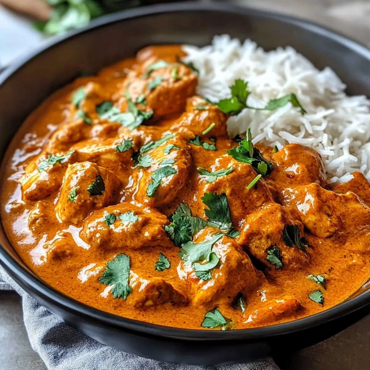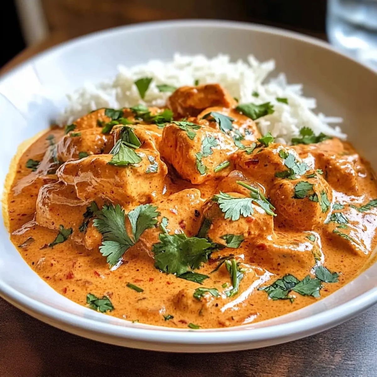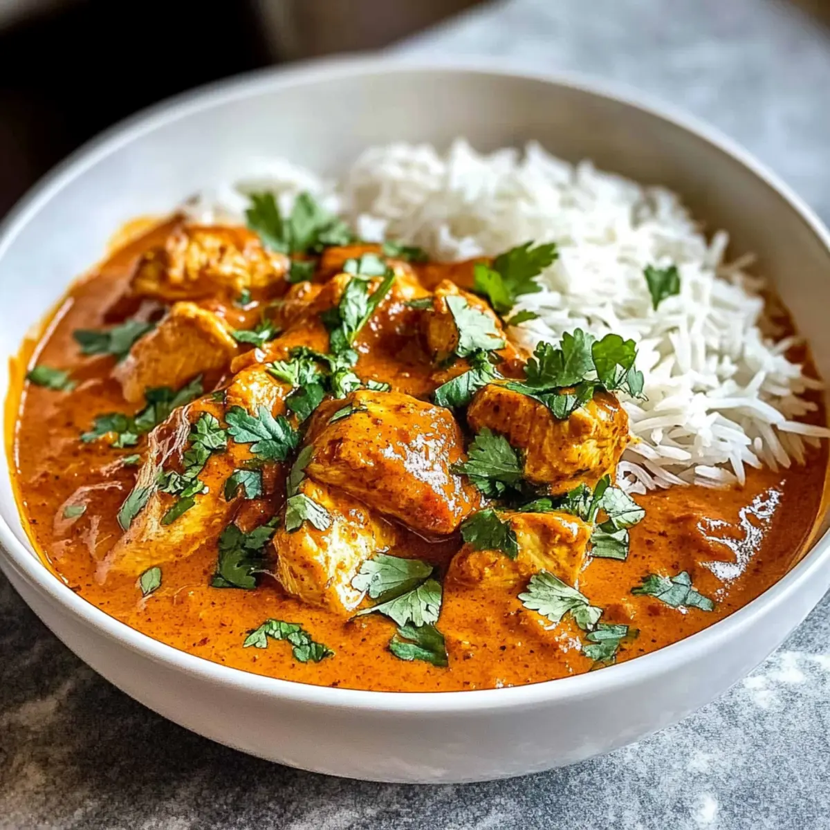 Als ich neulich in meine Küche trat, wurden meine Sinne von einem köstlichen Duft verzaubert, der mich sofort nach Indien entführte. Mit einem Lächeln auf den Lippen bereitete ich mein neuestes Lieblingsrezept zu: Crockpot Cremige Kokosnuss Hühnchen Tikka Masala. Dieses Gericht ist nicht nur ein wahrer Genuss für die Geschmacksknospen, sondern auch ein schnelles und einfaches Erlebnis für geschäftige Abende. Der langsame Kochprozess verwandelt zarte Hühnchenstücke in eine cremige und aromatische Kokosnusssoße, die wohlig warm umarmt. Es ist die perfekte Option, um deine Lieben zu beeindrucken oder einfach auf einer entspannenden Wocheabend eine warme Umarmung aus der eigenen Küche zu genießen. Bist du bereit, deinen Abend mit Aromen zu füllen, die alle Sinne ansprechen? Warum wirst du dieses Rezept lieben? Einfachheit macht es perfekt für jeden Koch! Diese Rezeptur benötigt minimale Vorbereitung und kaum Aufwand. Reichhaltiger Geschmack entsteht durch die harmonische Kombination aus zarten Hühnchenstücken und einer cremigen Kokosnusssoße. Vielseitigkeit ist ein weiterer Pluspunkt – genieße es mit duftendem Basmati-Reis oder aromatischem Naan. Zeitersparnis ist unglaublich – einfach alle Zutaten in den Crockpot geben und entspannen, während das Gericht seine Magie entfaltet. Hausgemacht und gesund: Mit wenig Aufwand zauberst du ein authentisches indisches Gericht, das deine Sinne verführt und dabei auch noch nahrhaft ist. Für weitere köstliche Inspiration kannst du auch unser Rezept für Pfifferlinge mit Spinat ausprobieren! Crockpot Cremige Kokosnuss Hühnchen Tikka Masala Zutaten Für das Hühnchen Hühnerbrust ohne Haut (2 lbs) – Hauptproteinquelle, in 2.5 cm große Stücke schneiden für gleichmäßiges Garen. Für die Sauce Zwiebel (1 mittelgroß, fein gehackt) – Verleiht Süße und Tiefe. Knoblauch (3 Zehen, gehackt) – Bringt aromatischen Geschmack, frischen Knoblauch verwenden für beste Ergebnisse. Frischer Ingwer (1 Esslöffel, gerieben) – Fügt Wärme und Gewürz hinzu. Kokosmilch (1 Dose, 400 ml) – Sorgt für eine reichhaltige, cremige Sauce; nicht durch leichte Kokosmilch ersetzen. Tomatenmark (1 Dose, 170 g) – Fügt Säure und Tiefe hinzu; das Karamellisieren ist wichtig für den Geschmack. Hühnerbrühe (1 Tasse) – Sorgt für Feuchtigkeit und Geschmack während des Kochens. Garam Masala (2 Esslöffel) – Unverzichtbare Gewürzmischung, die das Geschmacksprofil des Gerichts bestimmt. Kreuzkümmel (1 Esslöffel) – Fügt Erde hinzu. Paprika (1 Esslöffel) – Verbessert Geschmack und Farbe. Kurkuma (1 Teelöffel) – Sorgt für Farbe und gesundheitliche Vorteile. Cayennepfeffer (1/2 Teelöffel, nach Geschmack anpassen) – Bietet Schärfe; optional für weniger Würze. Salz (1 Teelöffel) – Verstärkt den Gesamtgeschmack. Schwarzer Pfeffer (1/2 Teelöffel) – Fügt milde Schärfe hinzu. Frischer Koriander (1/4 Tasse, gehackt zur Garnierung) – Fügt Frische und Farbe hinzu. Pflanzenöl (2 Esslöffel) – Zum Anbraten von Zwiebel und Knoblauch. Mit diesen Zutaten kannst du das vollmundige und aromatische Erlebnis des Crockpot Cremige Kokosnuss Hühnchen Tikka Masala direkt nach Hause holen! Step-by-Step Instructions for Crockpot Cremige Kokosnuss Hühnchen Tikka Masala Step 1: Zwiebel und Knoblauch anbraten Erhitze in einer großen Pfanne das Pflanzenöl bei mittlerer Hitze. Füge die fein gehackte Zwiebel hinzu und brate sie für 3-4 Minuten, bis sie weich und leicht goldbraun ist. Danach gib den gehackten Knoblauch und den geriebenen Ingwer dazu und brate alles für eine weitere Minute, bis es aromatisch duftet. Step 2: Hühnchen anbraten Nicht in der Pfanne belassen! Nun die geschnittenen Hühnerstücke in die Pfanne geben und für etwa 5-6 Minuten anbraten, bis sie außen leicht goldbraun sind. Dies intensiviert den Geschmack des Crockpot Cremige Kokosnuss Hühnchen Tikka Masala. Danach die angebratenen Hühnchenstücke in den Slow Cooker übertragen. Step 3: Tomatenmark karamellisieren Setze die Pfanne wieder auf die Hitze und gib das Tomatenmark hinzu. Koche es für ungefähr 1 Minute, wobei du ständig rührst, um den Geschmack zu vertiefen. Dieser Schritt ist entscheidend für die Aromen im Gericht. Danach alles in den Slow Cooker zu dem Hühnchen geben. Step 4: Sauce zubereiten Gib nun die Kokosmilch, Hühnerbrühe sowie die Gewürze (Garam Masala, Kreuzkümmel, Paprika, Kurkuma, Cayennepfeffer, Salz und schwarzen Pfeffer) in die Pfanne. Bring die Mischung zum Simmern und rühre gut um, um alles zu vereinen. Wenn die Sauce leicht köchelt, gieße sie über das Hühnchen im Slow Cooker. Step 5: Crockpot einstellen Decke den Slow Cooker ab und stelle ihn auf die niedrige Einstellung. Lasse das Crockpot Cremige Kokosnuss Hühnchen Tikka Masala für 4-6 Stunden garen, bis das Hühnchen eine Innentemperatur von 74°C (165°F) erreicht hat. Die Aromen werden während des Kochens wunderbar verschmelzen. Step 6: Sauce verdicken (optional) Wenn die Sauce zu dünn ist, mische 1-2 Esslöffel Maisstärke mit einer kleinen Menge von der Sauce in einer Schüssel und rühre gut um. Füge die Mischung zurück in den Slow Cooker und lasse sie 15-20 Minuten dick werden. Dies verleiht dem Gericht die gewünschte cremige Konsistenz. Step 7: Garnieren und servieren Vor dem Servieren frisch gehackten Koriander über das Gericht streuen, um einen Farbtupfer und Frische hinzuzufügen. Serviere das Crockpot Cremige Kokosnuss Hühnchen Tikka Masala heiß mit Basmati-Reis oder Naan für ein perfektes indisches Geschmackserlebnis. Meal Prep für Crockpot Cremige Kokosnuss Hühnchen Tikka Masala Das Crockpot Cremige Kokosnuss Hühnchen Tikka Masala eignet sich hervorragend für die Vorbereitung im Voraus! Du kannst das Hühnchen bis zu 24 Stunden im Voraus schneiden und in einer marinierenden Mischung aus Gewürzen, Knoblauch und Ingwer aufbewahren, um die Aromen zu intensivieren. Die Zwiebeln und den Knoblauch kannst du ebenfalls für bis zu 3 Tage 