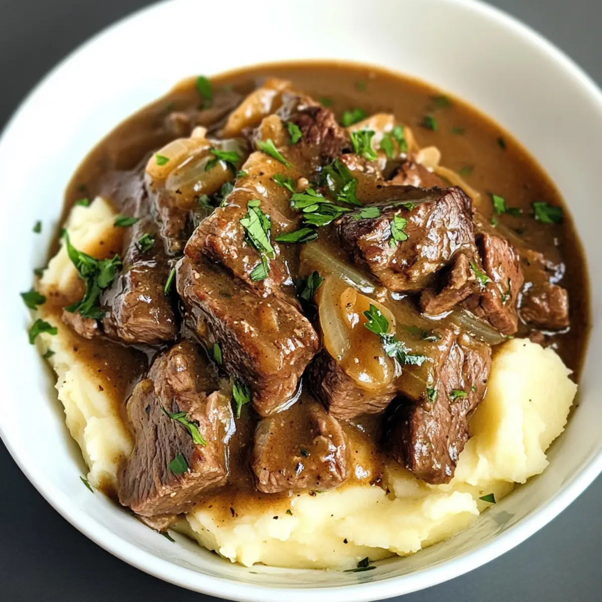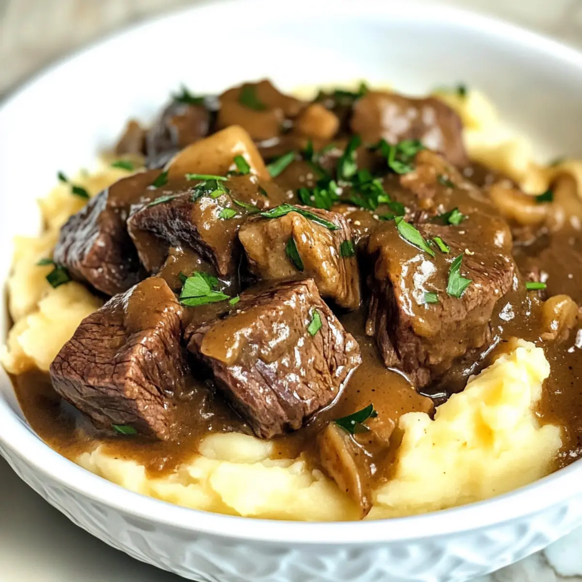 Häufig ertappe ich mich dabei, wie ich mich nach einem langen Tag nach dem Komfort von Hausmannskost sehne. Und nichts ist beruhigender als die Vorstellung, tenderes Rindfleisch in einer Crockpot Rindfleischspitzen und Soße zu genießen, das den ganzen Tag über geschmort wird. Ich liebe es, einfach alle Zutaten in meinen Slow Cooker zu geben und nach Hause zurückzukehren zu einem himmlischen Duft, der die gesamte Wohnung erfüllt. Diese rustikale Speise ist nicht nur unheimlich lecker, sondern auch unglaublich vielseitig – perfekt für ein schnelles Abendessen unter der Woche oder für das Familientreffen am Sonntag. Und die beste Nachricht? Sie benötigt kaum Vorbereitungszeit und bringt alle zusammen, während wir uns in köstlicher Soße vergnügen. Können Sie sich schon vorstellen, wie Ihre Liebsten um den Tisch versammeln, wenn diese himmlische Mahlzeit serviert wird? Warum werden Sie dieses Rezept lieben? Simplicity, die Zubereitung ist kinderleicht und erfordert nur minimale Vorbereitungszeit. Herzhafter Genuss, das zarte Rindfleisch in der geschmackvollen Soße wird Ihre Geschmacksknospen verwöhnen. Vielseitigkeit, ob über Reis, Nudeln oder Kartoffeln – diese Speise passt immer. Zeitersparnis, entspannt zurücklehnen und nach Hause kommen, während der Slow Cooker die Arbeit erledigt. Familienfreundlich, diese gemütliche Mahlzeit bringt alle zusammen – perfekt für entspannte Abende! Wenn Sie nach ähnlichen köstlichen Optionen suchen, probieren Sie auch unser Thailandisches Curry mit Gemüse oder die Quiche vegetarisch mit Kürbis und Salbei. Crockpot Rindfleischspitzen Zutaten • Für die Marinade Avocado- oder Rapsöl – sorgt für das nötige Fett zum Anbraten des Rindfleischs und der Aromen; Olivenöl ist ebenfalls eine gute Alternative. Chuck Roast – die Hauptquelle für Protein, ideal durch seine Marmorierung und Zartheit beim langsamen Garen; Sirloin-Roast kann verwendet werden, ist jedoch nicht ganz so zart. Koscheres Salz – verstärkt den Geschmack; ideal für gewürztes Rindfleisch. Für eine natriumarme Diät anpassen oder reduzieren. Schwarzer Pfeffer – fügt Würze hinzu; frisch gemahlener Pfeffer wird für einen besseren Geschmack empfohlen. • Für die Soße Gelbe Zwiebel – sorgt für Geschmack in der Soße; fein gehackt. Kann durch Schalotten ersetzt werden, um Süße hinzuzufügen. Knoblauch – sorgt für aromatische Tiefe; fein gehackt. Frischer Knoblauch ist für mehr Aroma bevorzugt. Mehl – dient als Verdickungsmittel für die Soße; glutenfreies Mehl kann ebenfalls verwendet werden. Rinderbrühe – bildet die Basis der Soße; benutze natriumarme oder ungesalzene Brühe für die bessere Kontrolle über den Natriumgehalt. Worcestershire-Sauce – verleiht einen umami-reichen und würzigen Geschmack, wodurch die Komplexität der Aromen erhöht wird; Sojasauce kann bei Bedarf ersetzt werden. Dijon-Senf – bietet Schärfe und Balance zur Reichhaltigkeit; gelber Senf kann auch als Ersatz genutzt werden. Getrockneter Thymian – fügt eine kräuterliche Note hinzu; frischer Thymian kann verwendet werden, wenn verfügbar. Lorbeerblatt – sorgt für eine subtile Erdigkeit; vor dem Servieren entfernen. Räucherpaprika – bringt einen Hauch von Raucharoma; normale Paprika oder sogar Chilipulver können ebenfalls substitutiert werden. • Für die Garnitur Champignons – verbessern die Textur und Fülle der Soße; in Scheiben geschnitten. Cremini- oder Shiitake-Pilze können für einen reicheren Geschmack verwendet werden. Petersilie (optional) – dient zur Garnierung, verleiht Frische und Farbe. Verwöhnen Sie sich und Ihre Lieben mit diesen köstlichen Crockpot Rindfleischspitzen – ein absoluter Genuss in der lieblichen Soße! Schritt-für-Schritt-Anleitung für Crockpot Rindfleischspitzen in herzhafter Soße Step 1: Rindfleisch vorbereiten Tupfen Sie das Chuck Roast mit einem Küchentuch trocken und schneiden Sie es in 3,5 cm große Würfel. Geben Sie die Rindfleischstücke in eine Schüssel und beträufeln Sie sie mit Avocado- oder Rapsöl sowie einer großzügigen Prise koscherem Salz und schwarzem Pfeffer für einen intensiven Geschmack. Step 2: Rindfleisch anbraten Stellen Sie den Slow Cooker auf die Sauté-Einstellung und erhitzen Sie ihn. Braten Sie die Rindfleischwürfel in Chargen von 2–3 Minuten an, bis sie von allen Seiten goldbraun sind. Legen Sie das gebratene Rindfleisch beiseite und wiederholen Sie den Vorgang, bis alles Fleisch gebräunt ist. Step 3: Aromatische Zutaten anbraten Fügen Sie die gehackte Zwiebel in den Slow Cooker und braten Sie sie 4–5 Minuten an, bis sie weich und leicht goldbraun ist. Geben Sie den fein gehackten Knoblauch hinzu und sautieren Sie ihn weitere 30 Sekunden, bis er aromatisch ist. Step 4: Soße aufbauen Streuen Sie das Mehl gleichmäßig über die gekochten Zwiebeln und rühren Sie gut um. Gießen Sie nach und nach die Rinderbrühe hinein und verwenden Sie einen Schneebesen, um Klumpen zu vermeiden. Lassen Sie die Mischung 2–3 Minuten köcheln, bis sie leicht eindickt. Step 5: Gewürze hinzufügen Rühren Sie die Worcestershire-Sauce, den Dijon-Senf, den getrockneten Thymian, das Lorbeerblatt und die Räucherpaprika in die Soße ein. Schmecken Sie mit zusätzlichem Salz und Pfeffer ab und köcheln Sie die Mischung 5–6 Minuten, bis sie gut vermischt und leicht eingedickt ist. Step 6: Rindfleisch und Soße kombinieren Geben Sie die braune Soße in den Slow Cooker zurück und fügen Sie das angebratene Rindfleisch hinzu. Rühren Sie alles gründlich um, sodass das Rindfleisch gut mit der Soße überzogen ist. Decken Sie den Slow Cooker ab und garen Sie das Ganze bei LOW für 7–8 Stunden oder bei HIGH für 4–5 Stunden, bis das Fleisch zart ist. Step 7: Champignons hinzufügen 30 Minuten vor Ende der Garzeit fügen Sie die geschnittenen Champignons in den Slow Cooker hinzu, damit sie weich werden und den Geschmack der Soße aufnehmen können. Rühren Sie sie vorsichtig unter die