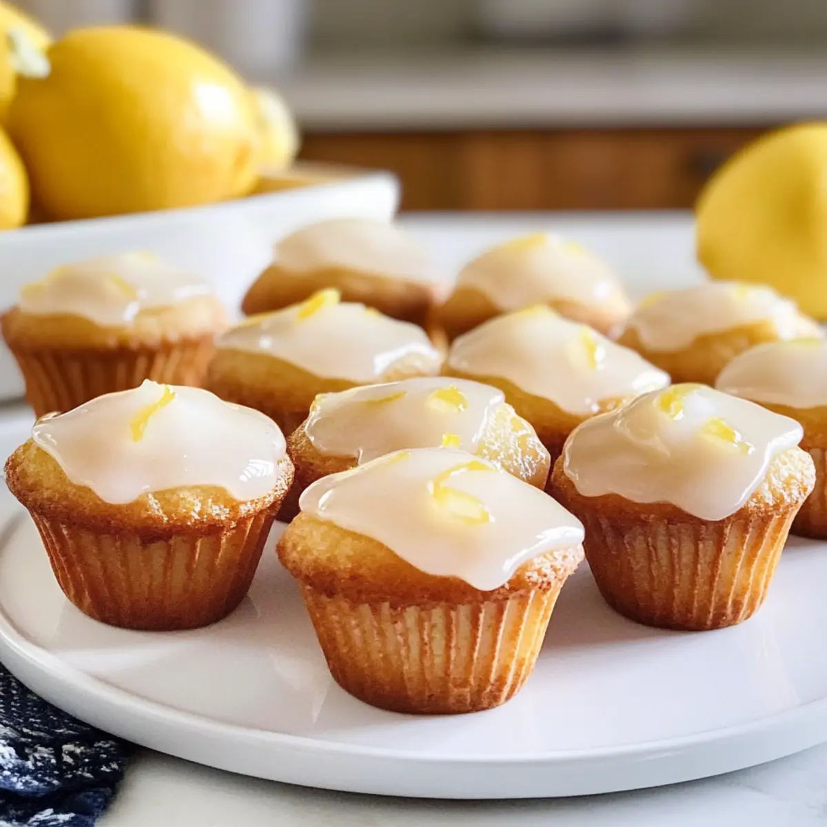Als ich kürzlich im Garten saß, wurde ich von einem erfrischenden Zitronenduft umhüllt, der Erinnerungen an sonnige Nachmittage weckte. Heute teile ich mit euch mein Geheimnis für die beste glasierten Zitronenblüte – köstliche, luftige Mini-Muffins, die mit einer zarten Zitronenglasur überzogen sind. Dieses Rezept ist nicht nur schnell und einfach zuzubereiten, sondern auch perfekt für all diejenigen, die sich nach einem spritzigen Genuss sehnen, ohne stundenlang in der Küche zu stehen. Mit der Kombination von Kuchenmischung und Puddingpulver gelingt euch ein saftiger Muffin, der sowohl bei Freunde und Familie als auch bei euch zu Hause ein Hit sein wird. Seid ihr bereit, in die Welt der Aromen einzutauchen und eure Geschmacksknospen zu verwöhnen? Warum werden diese Muffins dein Favorit? Schnelligkeit und Einfachheit: Dieses Rezept erfordert nur wenige Zutaten und die Zubereitung ist ein Kinderspiel, perfekt für Anfänger! Saftiger Genuss: Die Kombination aus Kuchenmischung und Pudding sorgt für besonders feuchte und luftige Muffins. Spritzige Aromen: Mit frischem Zitronenzest und einer zarten Glasur bringt jeder Biss frische Freude. Vielseitigkeit: Ob zum Kaffeeklatsch oder als süßer Snack – sie passen immer! Familienfreundlich: Kinder und Erwachsene werden gleichermaßen begeistert sein, diese Muffins einfach zu genießen. Aufbewahrungstipps: Sie bleiben in einem luftdichten Behälter bis zu einer Woche frisch; eine köstliche Freude, die immer bereit ist, serviert zu werden! Die besten Zutaten für glasierten Zitronenblüten • Für den Teig Kuchenmischung – bildet die Basis und Struktur der Muffins; ersetzbar durch gelbe oder Zitronenkuchenmischung für zusätzlichen Geschmack. Zitronenpuddingpulver – verstärkt das Zitronenaroma; unbedingt die Instant-Variante verwenden, nicht zum Kochen. Zitronenzest – bringt ein frisches, zitrusartiges Aroma; kann durch 1/4 bis 1/2 Teelöffel Zitronenextrakt ersetzt werden. Eier – wirken als Bindemittel und sorgen für Feuchtigkeit und Struktur. Butter – fügt Reichtum und Feuchtigkeit hinzu; ungesalzene Butter ermöglicht bessere Kontrolle über die Salzmenge. • Für die Glasur Puderzucker – bildet die Basis für die Glasur, sorgt für Süße und eine glatte Textur; die Menge kann je nach gewünschter Dicke angepasst werden. Frisch gepresster Zitronensaft – verleiht der Glasur eine säuerliche Note; mehr kann für einen intensiveren Geschmack hinzugefügt werden. Dieses Rezept ist wirklich die beste glasierten Zitronenblüten, die ihr einfach zubereiten könnt! Schritt-für-Schritt-Anleitung für Die beste glasierten Zitronenblüte Step 1: Ofen vorheizen Heize den Ofen auf 180°C vor und bereite ein Mini-Muffinblech vor, indem du es mit Kochspray einsprühst. Achte darauf, dass die Sprühung gleichmäßig verteilt ist, damit die Muffins beim Backen nicht ankleben. Dies ist der erste Schritt zu den besten glasierten Zitronenblüten, die du je gemacht hast! Step 2: Butter schmelzen Schmelze in einer mikrowellengeeigneten Schüssel die ungesalzene Butter bei mittlerer Hitze. Lass die Butter anschließend etwas abkühlen, bevor du sie in den Teig gibst. Diese geschmolzene Butter verleiht deinen Muffins zusätzliche Feuchtigkeit und Reichtum, sodass sie besonders saftig werden. Step 3: Teig vorbereiten In einer großen Schüssel vermischst du die Kuchenmischung, das Zitronenpuddingpulver und den Zitronenzest gründlich. Nutze einen Schneebesen, um Klumpen zu vermeiden und alle Zutaten gut zu kombinieren. Dieser Schritt sorgt für ein gleichmäßiges Zitrusaroma in der gesamten Masse und legt den Grundstein für die besten glasierten Zitronenblüten. Step 4: Eier und Butter hinzufügen Gib die leicht abgekühlte geschmolzene Butter sowie die Eier zu der Mischung und rühre alles gut durch, bis der Teig dick, aber gleichmäßig und glatt ist. Dies dauert etwa 2-3 Minuten. Achte darauf, dass der Teig keine Klumpen aufweist, damit deine Muffins die perfekte Textur bekommen. Step 5: Muffinblech füllen Fülle jedes Muffinfach des Blech bis zur Hälfte mit dem fertigen Teig. Dies ermöglicht den Muffins, beim Backen ordentlich aufzugehen. Achte darauf, gleichmäßig zu füllen, damit alle Muffins gleich groß werden und schön gleichmäßig backen. Step 6: Muffins backen Die gefüllten Muffinförmchen kommen jetzt für 9-12 Minuten in den vorgeheizten Ofen. Achte darauf, sie zu beobachten, und erkenne die Fertigstellung, wenn sie leicht goldbraun sind und ein Zahnstocher sauber herauskommt. Dies sind die perfekten Anzeichen für die besten glasierten Zitronenblüten! Step 7: Abkühlen lassen Lass die Muffins einige Minuten im Blech abkühlen, damit sie sich besser vom Blech lösen. Danach lege sie vorsichtig auf ein Kühlregal, um sie vollständig abzukühlen. Dieser Schritt verhindert, dass die Muffins zu feucht werden, und sorgt für die ideale Konsistenz. Step 8: Glasur vorbereiten Während die Muffins abkühlen, bereite die Glasur vor, indem du Puderzucker und frisch gepressten Zitronensaft in einer Schüssel glatt rührst. Passe die Konsistenz der Glasur nach Belieben an, indem du mehr Zitronensaft hinzufügst. Diese süße, zitronige Glasur macht deine besten glasierten Zitronenblüten erst richtig unwiderstehlich! Step 9: Muffins glasieren Nimm die abgekühlten Muffins und tauche die Oberseiten in die vorbereitete Glasur, sodass der Überzug gleichmäßig wird. Lasse die überschüssige Glasur abtropfen und stelle die Muffins wieder auf das Kühlregal, bis die Glasur fest geworden ist. So werden diese kleinen Leckereien richtig schön glänzend und verlockend! Variationen & Alternativen Entdecke, wie du deine Muffins mit einfachen Anpassungen noch köstlicher gestalten kannst! Glutenfrei: Verwende glutenfreie Kuchenmischung für eine genauso leckere Version. Zuckerreduziert: Ersetze einen Teil des Puderzuckers in der Glasur durch eine Süßstoffalternative, um kalorienbewusster zu genießen. Fruchtig: Füge Blaubeer