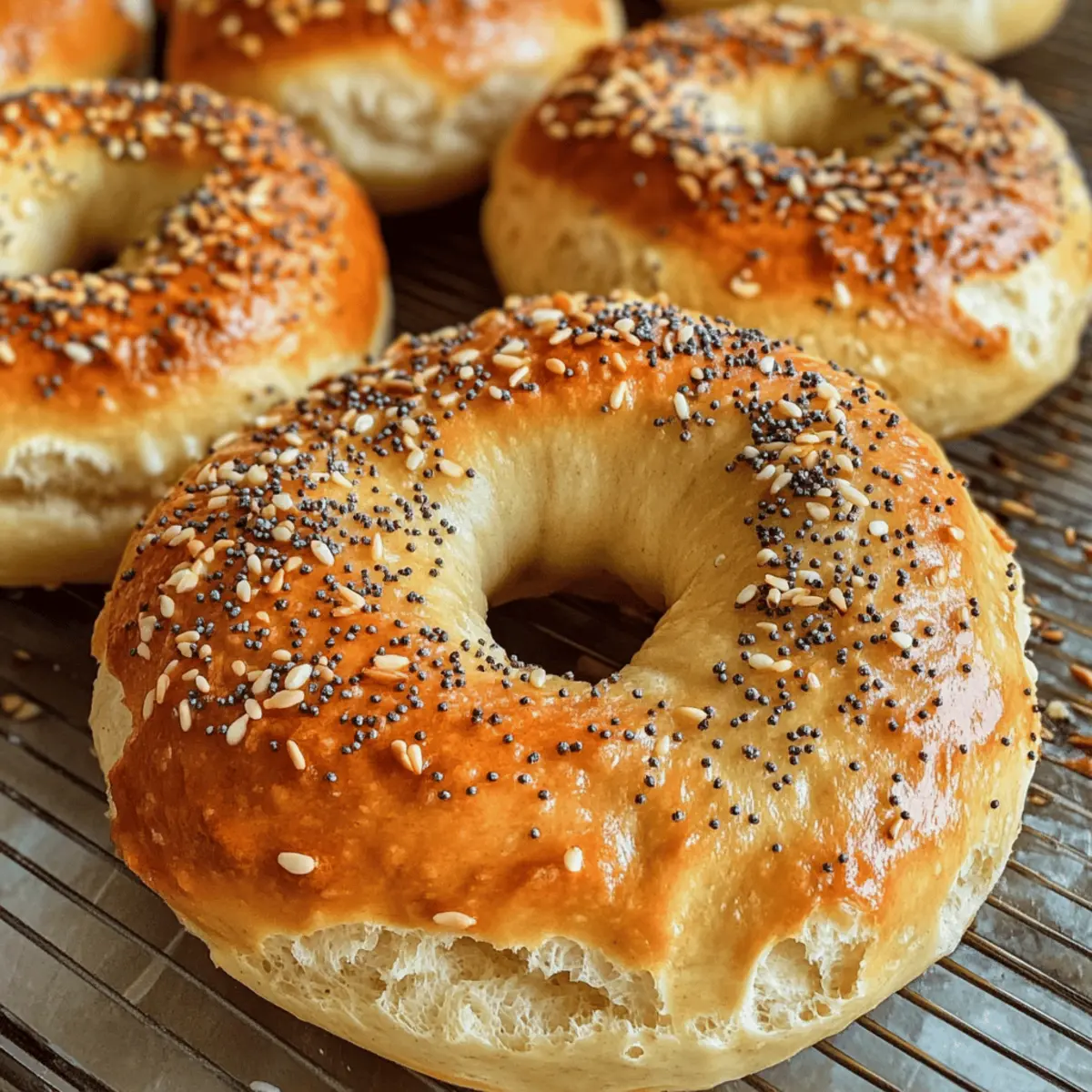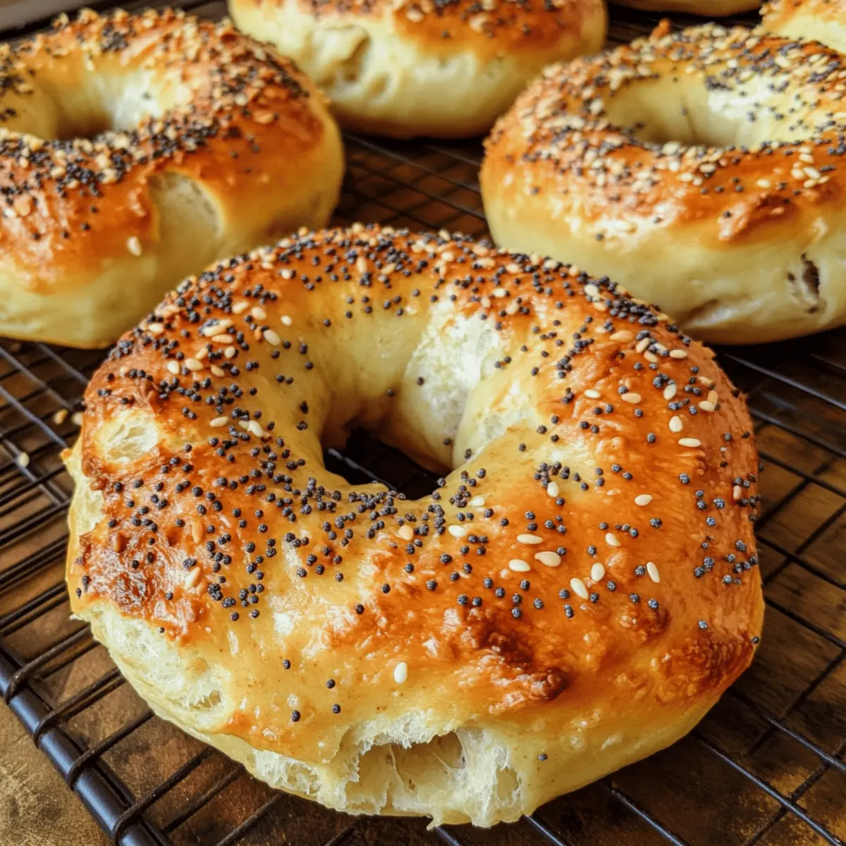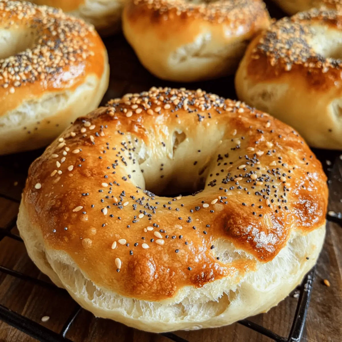 Jeden Morgen stehe ich auf und frage mich, was ich mir zum Frühstück gönnen könnte, das sowohl nahrhaft als auch lecker ist. Diese Frage brachte mich dazu, die besten Protein-Bagel zu kreieren – eine köstliche und proteinreiche Antwort auf die alltäglichen Herausforderungen der Frühstücksplanung. Perfekt für ein schnelles Frühstück oder als Snack zwischendurch, sind diese Bagel nicht nur einfach zuzubereiten, sondern auch eine gesunde Alternative zu herkömmlichen Backwaren. Mit ihrer goldbraunen Kruste und dem weichen, zähen Inneren bieten sie ein wahres Geschmackserlebnis, das ohne die üblichen Kalorien auskommt. Bist du bereit, deine Frühstücksroutine zu revolutionieren und deinen Tag mit diesen fantastischen Protein-Bageln zu starten? Warum sind diese Protein-Bagel so besonders? Vielseitigkeit: Diese Bagel sind perfekt für jedes Frühstück, Snack oder sogar leichtes Mittagessen und können je nach Vorliebe angepasst werden. Proteinreich: Mit 12 Gramm Protein pro Bagel sind sie eine nahrhafte Wahl, die dich lange satt hält. Einfache Zubereitung: Der unkomplizierte Prozess erfordert nur wenige Zutaten und ist für jeden Kochlevel geeignet. Gesunde Alternative: Sie bieten eine gesunde, kalorienbewusste Option im Vergleich zu herkömmlichen Bageln ohne den Geschmack zu opfern. Exzellente Aufbewahrungsmöglichkeiten: Diese Bagel bleiben frisch und schmackhaft, perfekt für Meal Prep; finde mehr darüber in unseren Tipps zur Aufbewahrung. Entdecke auch unsere Ideen zur Variation mit verschiedenen Toppings für noch mehr Abwechslung! Die besten Protein-Bagel Zutaten • Für den Teig: Dinkelmehl – Fügt eine nussige Note hinzu und kann durch Vollkornmehl oder Weizenmehl ersetzt werden. Magerquark – Sorgt für Feuchtigkeit und hohen Proteingehalt; alternativ kann griechischer Joghurt oder Hüttenkäse verwendet werden. Backpulver – Lässt die Bagel beim Backen schön aufgehen. Salz – Verstärkt den Geschmack. • Für die Toppings: Sesam und Mohn – Geben den Bageln das gewisse Extra an Geschmack und Textur; können je nach Vorliebe variiert werden. Diese Die besten Protein-Bagel sind nicht nur einfach zuzubereiten, sondern auch eine gesunde Alternative, die dir hilft, deinen Tag nahrhaft zu beginnen! Schritt-für-Schritt-Anleitung für die besten Protein-Bagel Step 1: Ofen vorheizen Heize den Ofen auf 180°C (356°F) im Umluftmodus vor. Während der Ofen aufgeheizt wird, kannst du die Vorbereitungen für den Teig treffen. Ein gut vorgeheizter Ofen ist entscheidend, um die besten Protein-Bagel mit einer schönen goldbraunen Kruste zu erzielen. Step 2: Teig zubereiten Gib in eine große Schüssel Magerquark, Dinkelmehl und Backpulver. Mische die Zutaten gut, bis ein glatter Teig entsteht. Achte darauf, die Textur mit zusätzlichem Mehl oder Quark nach Bedarf anzupassen. Der Teig sollte gut formbar, aber nicht klebrig sein, damit deine Bagel gleichmäßig gelingen. Step 3: Teig portionieren Teile den Teig in gleich große Portionen, jeweils etwa in die Größe eines Golfballs. Rolle jede Portion mit deinen Händen zu einer langen Schlange. Achte darauf, dass die Teigstränge nicht zu dünn sind, um den perfekten Bagel-Look zu erreichen. Die gleichmäßige Größe sorgt dafür, dass die besten Protein-Bagel gleichmäßig backen. Step 4: Bagel formen Verbinde die Enden jeder Teigschlange, um die charakteristische Bagelform zu erstellen. Achte darauf, dass das Loch in der Mitte groß genug bleibt, da die Bagel während des Backens aufgehen werden. Diese Form ermöglicht eine gleichmäßige Backdauer und sorgt dafür, dass deine Bagel schön fluffig werden. Step 5: Mit Toppings versehen Lege die geformten Bagel auf ein mit Backpapier ausgelegtes Backblech. Streue die Sesam- und Mohnsamen gleichmäßig über die Oberseite und drücke sie sanft in den Teig, damit sie beim Backen haften. Dies verleiht den besten Protein-Bagel nicht nur zusätzlichen Geschmack, sondern auch eine ansprechende Textur. Step 6: Bagel backen Schiebe das Backblech in den vorgeheizten Ofen und backe die Bagel für etwa 15 Minuten. Die Bagel sind fertig, wenn sie eine goldbraune Farbe erreicht haben und gleichzeitig leicht auf Druck nachgeben. Dies signalisiert, dass sie innen weich und saftig sind, was die besten Protein-Bagel ausmacht. Was passt zu den besten Protein-Bagel? Erlebe die Harmonie von Aromen und Texturen, die dein Frühstück zu einem unvergesslichen Erlebnis machen. Cremiger Frischkäse: Der klassische Begleiter bringt eine genussvolle Cremigkeit, die den nussigen Geschmack des Bagels wunderbar ergänzt. Probiere aromatisierte Sorten wie Schnittlauch oder Knoblauch für zusätzliche Abwechslung. Räucherlachs: Dieser delikate Fisch fügt einen salzigen, umami-reichen Geschmack hinzu, der perfekt mit den leichten Bagels harmoniert. Garniere mit frischem Dill, um die Aromen aufzufrischen und zu verfeinern. Avocado-Scheiben: Frische, cremige Avocado sorgt für gesunde Fette und eine samtige Textur. Achte darauf, sie mit einem Spritzer Zitronensaft zu beträufeln, sodass die Aromen lebendig bleiben. Luftiger Salat: Ein knackiger, grüner Salat mit frischen Kräutern bringt eine erfrischende Note ins Spiel. Verwende beispielsweise Rucola oder Spinat für ein gesundes, leichtes Beilagenerlebnis. Süße Beeren: Serviere die Bagels mit einer Auswahl an frischen Beeren wie Himbeeren oder Blaubeeren für einen fruchtigen Kontrast. Die natürliche Süße der Früchte wird die herzhaften Aromen perfekt ergänzen. Fruchtige Smoothies: Ein fruchtiger Smoothie aus Banane und Beeren ist die ideale Ergänzung. Er rundet dein Frühstück ab und bietet eine erfrischende, nahrhafte Getränkeoption, die sich gut mit den besten Protein-Bagel kombinieren lässt. Tipps für die besten Protein-Bagel Teig Konsistenz: Achte darauf, dass der Teig nicht zu trocken ist; füge bei Bedarf mehr Magerquark hinzu, besonders wenn du Vollkornmehl verwendest. Loch in der Mitte: Halte das Loch in der Mitte der Bagel gro