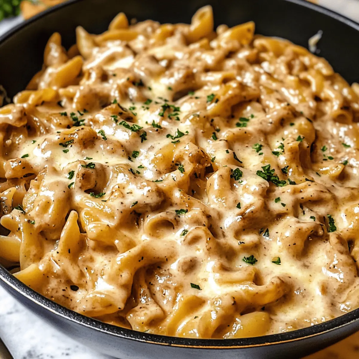 Ein-Topf Französische Zwiebel Pasta für Gemütliche Abende