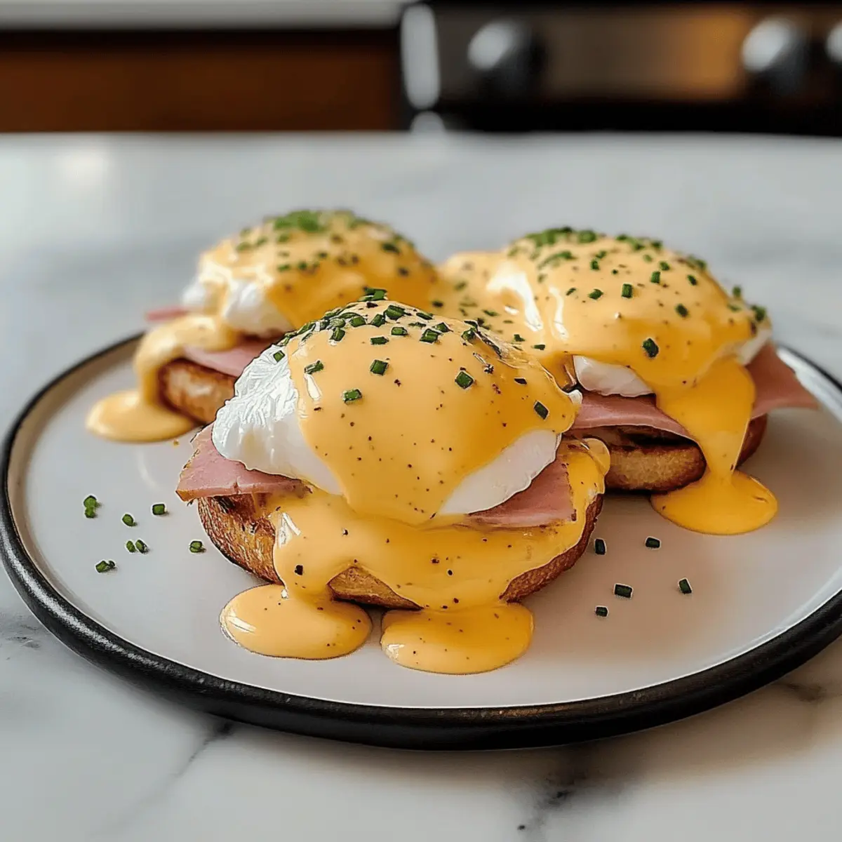 „Hast du schon einmal den perfekten Tag mit einem köstlichen Brunch begonnen? Wenn du mit einem Teller voller Classic Eggs Benedict startest, könnte das genau der Fall sein. Diese himmlische Kombination aus perfekt pochierten Eiern, knusprigem Schinken und einer selbstgemachten, cremigen Hollandaise Sauce verleiht deinem Frühstück nicht nur einen Hauch von Eleganz, sondern macht es auch zu einem echten Genuss. Das Beste daran? Diese traditionelle Variante ist schnell zubereitet und der absolute Hit für jedes Wochenende oder besondere Anlässe. Lass uns gemeinsam in die faszinierende Welt von Ei, Schinken und Sauce eintauchen – wer könnte da schon widerstehen? “ Warum wirst du dieses Rezept lieben? Simplicity in der Zubereitung: Die Schritte sind klar und einfach, sodass du auch ohne große Kochkünste ein Meisterwerk zaubern kannst. Reichhaltiger Geschmack: Die perfekte Kombination aus herzhaftem Schinken und der cremigen Hollandaise sorgt für ein Geschmackserlebnis, das deine Geschmacksnerven verwöhnt. Vielfalt: Dieses Rezept lässt sich leicht abwandeln – probiere doch einmal vegetarische Eggs Florentine mit Spinat und Avocado für einen frischen Twist! Beliebtheit: Egal ob bei einem gemütlichen Brunch mit Freunden oder einem festlichen Frühstück zu besonderen Anlässen, die Classic Eggs Benedict begeistert immer! Zeitersparnis: In nur wenigen Schritten kannst du ein Gourmet-Frühstück zubereiten, das Eindruck macht, ohne dass du stundenlang in der Küche stehen musst. Perfekte Textur: Der geschmeidige, flüssige Eigelb trifft auf die Knusprigkeit des Brotes – ein Genuss, der jeden Bissen unvergesslich macht! Ein unglaubliches Rezept für Eggs Benedict • Um dieses köstliche Gericht zuzubereiten, benötigst du eine Mischung aus frischen Zutaten, die für den perfekten Geschmack sorgen. Für die Eier Eier – Frische Eier sind unerlässlich für das Poachieren und bestechen durch ihre Textur. Butter – Unentbehrlich für die Herstellung der Hollandaise; verwende ungesalzene für bessere Kontrolle über die Salzigkeit. Für die Basis English Muffins – Diese liefern eine knusprige Grundlage; du kannst sie auch durch Ciabatta ersetzen für zusätzlichen Geschmack. Schinken oder Speck – Sorgt für einen herzhaften Genuss; verwende geräucherten Lachs für eine anspruchsvollere Variante. Für die Hollandaise Eiergelb – Das Hauptbestandteil der Hollandaise; achte darauf, dass sie frisch sind für die richtige Cremigkeit. Zitronensaft – Bringt die Säure und belebt die Sauce; frisch gepresst ist am besten. Dijon-Senf – Steigert die Geschmacksintensität; im Notfall kann auch scharfer Senf verwendet werden. Salz und Pfeffer – Grundlegende Gewürze zum Abstimmen des Geschmacks. Für den Dekor Schnittlauch oder Petersilie – Eine optionale Garnitur, die Frische und Farbe verleiht. Dieses unglaubliche Rezept für Eggs Benedict wird dich und deine Liebsten sicher begeistern! Schritt-für-Schritt-Anleitungen für Classic Eggs Benedict mit selbstgemachter Hollandaise-Sauce Step 1: Hollandaise-Sauce vorbereiten Schmelze die Butter in einem kleinen Topf bei niedriger Hitze, bis sie flüssig ist, und lasse sie dann leicht abkühlen. In einer Schüssel die frischen Eigelbe, den Zitronensaft und den Dijon-Senf mit einem Schneebesen gut vermischen, bis die Mischung glatt ist. Langsam die flüssige Butter unter ständigem Rühren hinzufügen, bis die Sauce dick und cremig wird. Mit Salz und Pfeffer abschmecken. Step 2: Eier pochieren Bringe einen mittleren Topf mit Wasser auf eine sanfte, sprudelnde Hitze (nicht kochen). Schlage die frischen Eier in kleine Schalen auf und lasse sie vorsichtig in das Wasser gleiten. Poache die Eier 3-4 Minuten lang, bis das Eiweiß fest, aber der Dotter schön flüssig bleibt. Nimm die Eier mit einer Schaumkelle vorsichtig aus dem Wasser und lasse sie kurz auf einem Küchenpapier abtropfen. Step 3: Muffins toasten Röste die English Muffins in einem Toaster oder in einer Pfanne, bis sie goldbraun und knusprig sind. Achte darauf, dass sie nicht zu dunkel werden, sodass die süße, leicht nussige Note erhalten bleibt. Die getoasteten Muffins bilden die perfekte Grundlage für deine Classic Eggs Benedict. Step 4: Schinken oder Speck braten Erhitze eine Pfanne bei mittlerer Hitze und füge den gewählten Schinken oder Speck hinzu. Brate sie für 3-5 Minuten, bis sie knusprig und durchgewärmt sind. Achte darauf, den Schinken oder Speck regelmäßig zu wenden, damit er gleichmäßig bräunt und einen köstlichen appetitlichen Duft verströmt. Step 5: Anrichten Lege die gebratenen Schinken- oder Speckscheiben auf jede halbierte English Muffin. Platziere vorsichtig ein pochiertes Ei darauf und gieße dann großzügig die selbstgemachte Hollandaise-Sauce darüber. Dekoriere deine Classic Eggs Benedict bei Bedarf mit frisch gehackten Schnittlauch oder Petersilie für einen zusätzlichen Farb- und Geschmackskick. Variationen & Substitutionen Lass deiner Kreativität freien Lauf und passe dieses Rezept nach deinem Geschmack an! Vegetarisch: Ersetze den Schinken durch sautierten Spinat und Avocado für eine gesunde Alternative. Glutenfrei: Nutze glutenfreie Brötchen anstelle von English Muffins, um das Gericht für jeden verträglich zu machen. Räucherlachs: Tausche den Schinken gegen dünn geschnittenen Räucherlachs für eine exquisite, maritim inspirierte Variante. Würzige Note: Füge eine Prise Cayennepfeffer zur Hollandaise hinzu, um diesem Klassiker eine scharfe Überraschung zu geben! Italienischer Twist: Verwende Pesto statt Dijon-Senf in der Sauce, und garnieren mit frischem Basilikum für eine mediterrane Note. Süß-sauer: Sojasoße oder Teriyakisauce als Beilage kann die umami-Noten beleben; perfekten Kontrast zur Cremigkeit. Tomaten-Hollandaise: Verleihe deiner Sauce einen frischen Twist mit einem Löffel Tomatenpüree für zusätzlichen Geschmack. Vegan: Nutze pflanzliche Butter und tödliche Eiersatzmittel, um eine vegane Hollandai