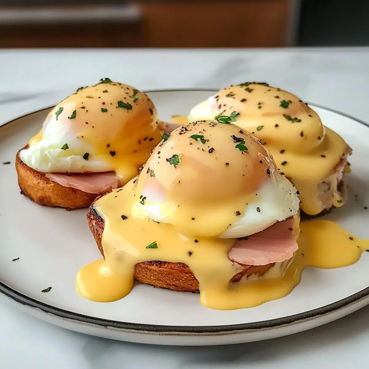 Einfachheit: Die Zubereitung ist kinderleicht und erfordert nur wenige Grundfertigkeiten.- Reichhaltiger Geschmack: Die Kombination aus frisch poached Eggs und der cremigen Hollandaise sorgt für ein Geschmackserlebnis, das begeistert. – Flexibel: Passen Sie die Zutaten nach Ihrem Geschmack an, indem Sie zum Beispiel Avocado hinzufügen oder den Schinken durch Räucherlachs ersetzen. – Gesund und proteinreich: Diese herzhaften Eier sind perfekt für ein nahrhaftes Frühstück oder Brunch und geben Ihnen die Energie für den Tag. – Beeindrucken Sie Ihre Gäste: Mit diesem Gericht holen Sie sich das Gefühl eines eleganten Restaurants nach Hause, ideal für besondere Anlässe oder einfach zum Genuss. Wenn Sie mehr über köstliche Frühstücksrezepte erfahren möchten, werfen Sie einen Blick auf unser Rezept für Pfannkuchen.