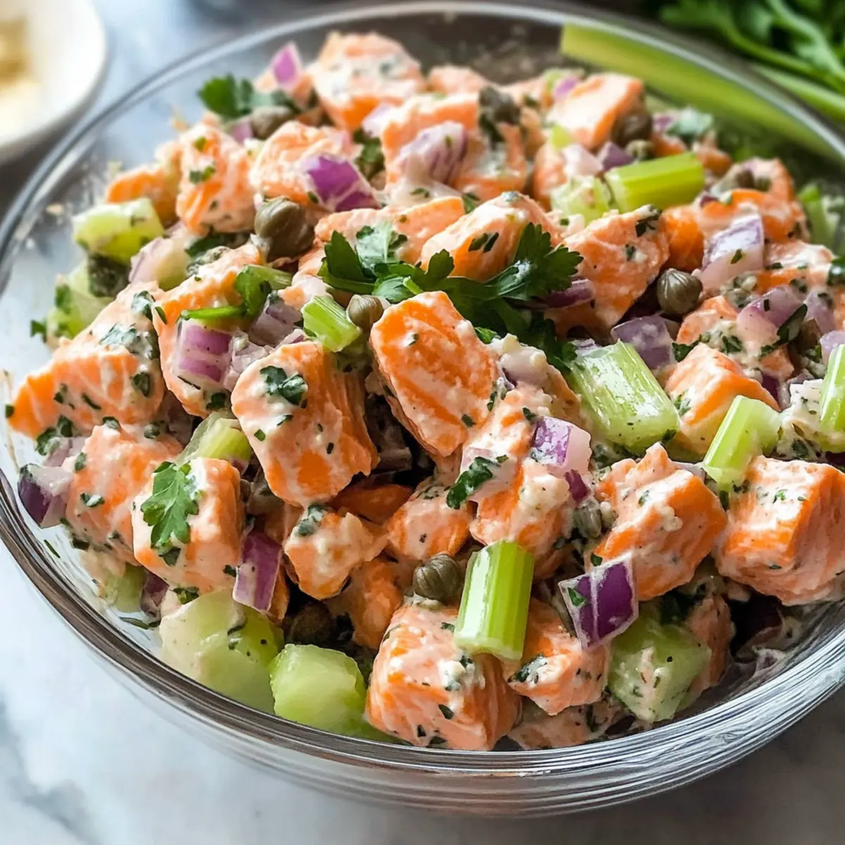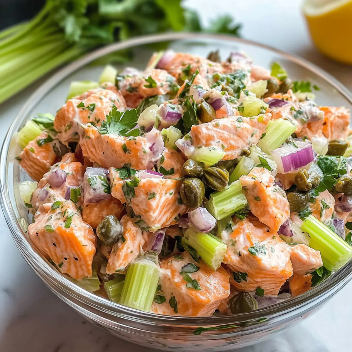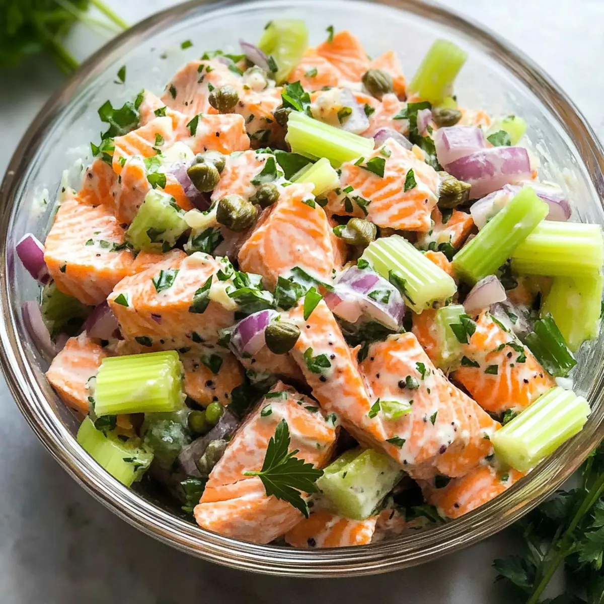 Budgetfreundlich: Hergestellt aus Dosenlachs, bietet dieser Salat eine kostengünstige Option für gesunde Mahlzeiten.
