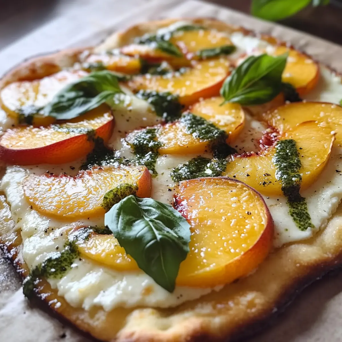 Frische Zutaten: Verwende unbedingt frischen Basilikum und reife Pfirsiche, um das Aroma der einfache Pfirsich- und Basilikum-Naan-Brot-Pizza Rezept zu maximieren.