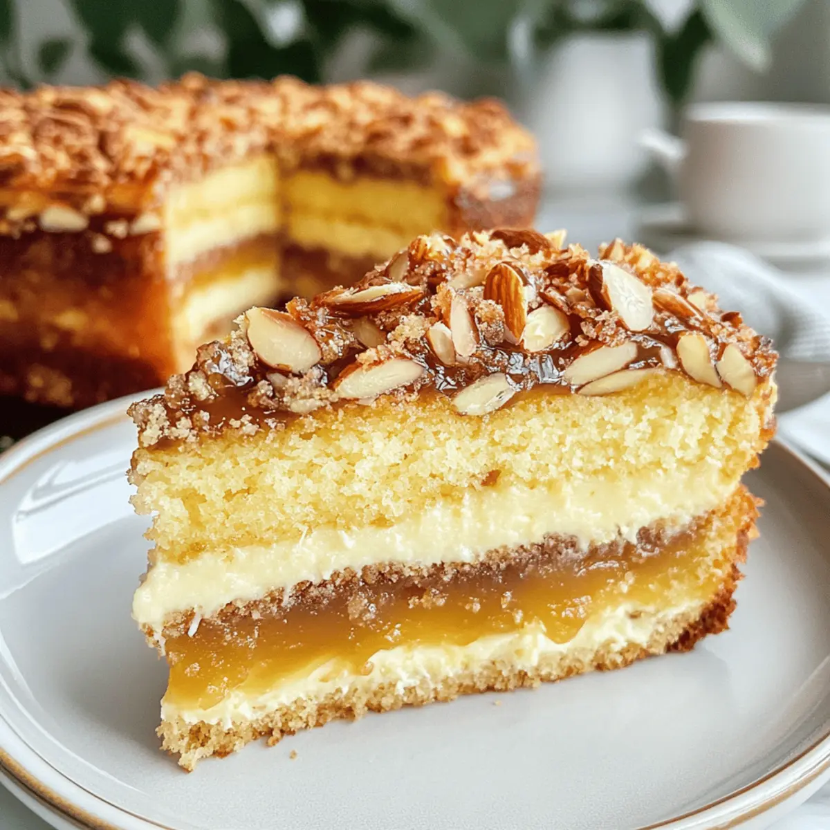 Ein einfaches Bienenstich Rezept, perfekt für jeden Anlass, vereint fluffigen Kuchen, knuspriges Mandelkaramell und cremige Vanillefüllung.