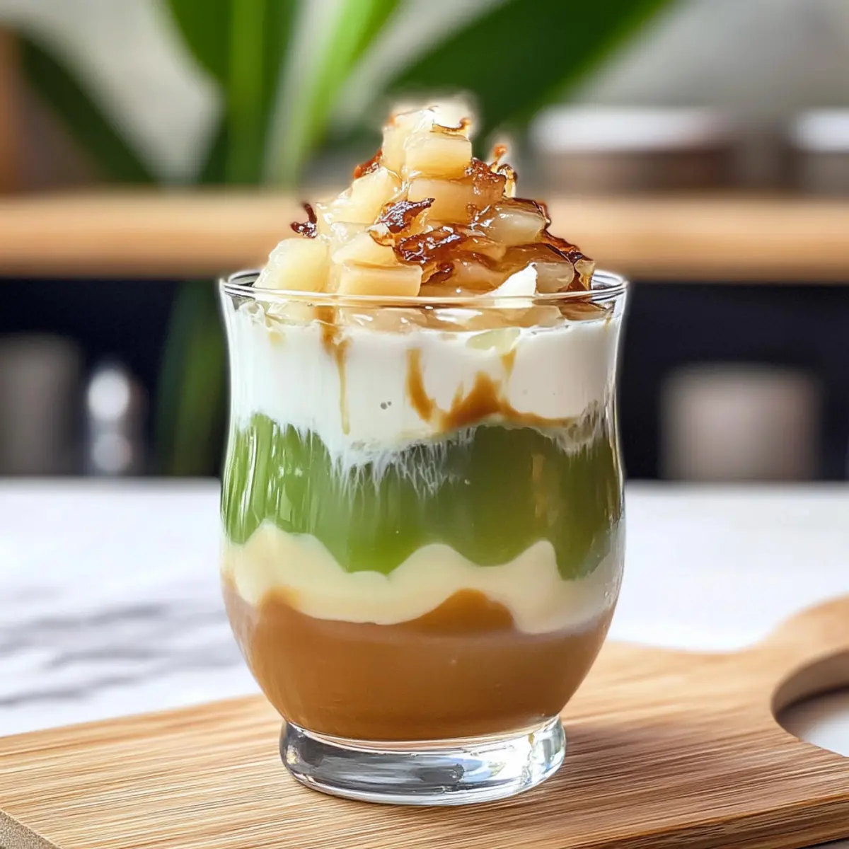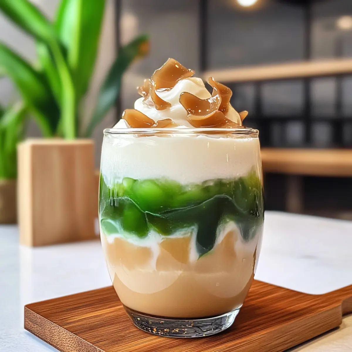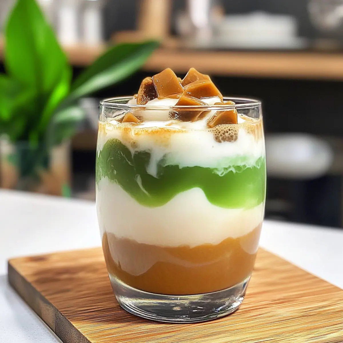 Es war ein heißer Sommertag, als ich entschied, meine Gelüste nach etwas Erfrischendem und zugleich Belebendem zu stillen. So entstand mein Eis Cendol Latte – eine perfekte Mischung aus traditionellen indonesischen Aromen und einem modernen Kaffeegenuss. Diese erfrischende Getränkekreation vereint chewy Pandan-Jellies mit der süßen Note von Palmsirup, cremiger Milch und einer luftigen Schicht geschlagener Dalgona. Es ist nicht nur eine köstliche Leckerei, sondern auch vegan, glutenfrei und perfekt für Zahler und Naschkatzen! Die Zubereitung ist einfach und schnell, was es zu einem idealen Begleiter für laue Abende macht. Neugierig, wie Sie dieses besondere Erlebnis in Ihre Küche bringen können? Warum ist dieser Eis Cendol Latte besonders? Einzigartige Kombination: Der Eis Cendol Latte vereint traditionelle indonesische Einflüsse mit modernen Kaffeetrends, was ihn zu einem unverwechselbaren Erlebnis macht. Leicht zuzubereiten: Mit nur wenigen Grundzutaten ist die Zubereitung kinderleicht und benötigt keine besonderen Kochkünste. Erfrischend und belebend: Die Mischung aus chewy Pandan-Jellies und cremiger Milch sorgt für einen kühlenden Genuss, perfekt für heiße Sommertage. Vielseitig anpassbar: Probieren Sie verschiedene Sirupsorten oder frische Fruchtpürees aus, um Ihren persönlichen Twist hinzuzufügen. Gesundheitsbewusst: Dieser Drink ist vegan, glutenfrei und macht ihn zu einer idealen Wahl für alle, die auf ihre Ernährung achten. Genießen Sie ihn alleine oder als erfrischendes Highlight bei Ihrer nächsten Zusammenkunft! Eis Cendol Latte Zutaten • Entdecken Sie die köstlichen Zutaten des Eis Cendol Latte, die jede Zutat perfekt aufeinander abstimmen! Für die Cendol Mungobohnenstärke (Hunkwe-Mehl) – Gibt der Cendol Struktur und eine chewy Konsistenz; alternativ eignet sich Tapioka-Stärke. Speisestärke – Verdickt die Cendol-Mischung und sorgt für die charakteristische Kaubarkeit. Salz – Intensiviert den Geschmack und balanciert die Aromen. Pandablätter – Verleiht der Cendol und dem Sirup einen blumigen, aromatischen Hauch; verwenden Sie Pandanextrakt, wenn frische Blätter nicht verfügbar sind. Wasser – Die Hauptflüssigkeit, die zum Auflösen der Zutaten und zur Herstellung des Cendol-Teigs benötigt wird. Pandanpaste – Konzentriertes Aroma, das die grüne Farbe und den Duft verstärkt. Raspelpalmsirup – Sorgt mit seinem reichen, karamellartigen Geschmack für die Süße des Drinks; alternativ können Sie braunen Zucker oder Kokoszucker verwenden. Für die Dalgona-Schicht Zucker – Süßt den Dalgona-Kaffee; hier können Sie eine kleinere Menge für weniger Süße verwenden. Instantkaffee – Gibt den charakteristischen Kaffeegeschmack, der die Cendol perfekt ergänzt; wählen Sie eine hochwertige Marke für besten Genuss. Kochendes Wasser – Dient dazu, Kaffee und Zucker für die Dalgona-Schicht aufzulösen. Für die Zusammenstellung Eiswürfel – Kühlt das Getränk und sorgt für die erfrischende Note. Milch oder Kokosmilch – Sorgt für Cremigkeit; nutzen Sie pflanzliche Alternativen für eine vegane Option. Genießen Sie Ihren selbstgemachten Eis Cendol Latte und lassen Sie sich von dieser einzigartigen Mischung verzaubern! Schritt-für-Schritt-Anleitung für Eis Cendol Latte Schritt 1: Palmzucker-Sirup herstellen In einem kleinen Kochtopf kombinieren Sie den geraspelten Palmzucker mit Wasser und den Pandablättern. Erhitzen Sie die Mischung bei mittlerer Hitze, bis der Zucker vollständig aufgelöst ist. Lassen Sie die Mischung aufkochen und anschließend abkühlen. Der Sirup sollte eine sirupartige Konsistenz haben und aromatisch duften. Schritt 2: Cendol zubereiten Mischen Sie die Pandablätter mit Wasser in einem Mixer, um den Saft zu extrahieren. In einem weiteren Topf sieben Sie die Mungobohnenstärke, Speisestärke und das Salz. Fügen Sie den abgeseihten Pandansaft und etwas Wasser hinzu und rühren Sie gut um, bis die Mischung glatt ist. Kochen Sie die Masse bei niedriger Hitze, bis sie dicklich wird und Blasen wirft. Schritt 3: Cendol formen Verwenden Sie einen Cendol-Maker oder eine robuste Spritztüte, um die zähflüssige Mischung in Eiswasser zu drücken. Dies sorgt dafür, dass die Cendol eine schöne, chewy Konsistenz erhält. Lassen Sie die kleinen Stücke für etwa 15 Minuten im Eiswasser fest werden, bis sie stabil und formbar sind. Schritt 4: Dalgona-Kaffee zubereiten In einer Schüssel vermengen Sie den Instantkaffee, Zucker und kochendes Wasser. Verwenden Sie einen Schneebesen oder einen Handmixer, um die Mischung kräftig zu schlagen, bis sie hell und schaumig ist und steife Spitzen bildet. Dieser luftige Dalgona-Kaffee bildet die köstliche Schicht auf Ihrem Eis Cendol Latte. Schritt 5: Getränk anrichten In einem Glas träufeln Sie zuerst den Palmzucker-Sirup an den Rand. Fügen Sie nun Eiswürfel hinzu, gefolgt von einer Portion der zubereiteten Cendol und einem Schuss Milch oder Kokosmilch. Zum Schluss geben Sie die geschlagene Dalgona-Kaffee-Schicht obendrauf. Servieren Sie Ihren Eis Cendol Latte sofort, um den besten Genuss zu erzielen. Lagerungstipps für Eis Cendol Latte • Raumtemperatur: Am besten frisch genießen, da die Textur der Cendol schnell leidet. Halten Sie den Drink jedoch in einem kühlen Raum, solange er serviert wird. • Kühlschrank: Cendol kann bis zu 2 Tage in Wasser im Kühlschrank aufbewahrt werden, um die Konsistenz zu erhalten. Nachricht an Lagerung: Verwenden Sie einen luftdichten Behälter. • Freezer: Der Dalgona Kaffee kann bis zu 1 Monat eingefroren werden. Füllen Sie ihn in einen luftdichten Behälter, um die Frische zu bewahren. • Wiedererwärmen: Den Dalgona Kaffee vor dem Servieren leicht aufschlagen, um die fluffige Textur zurückzugewinnen. Vermeiden Sie es, die Cendol erneut zu erhitzen, damit sie nicht matschig wird. Expert Tips für Eis Cendol Latte Konsistenz prüfen: Achten Sie darauf, dass der Cendol-Teig beim Kochen die richtige Dicke erreicht. Eine zu 