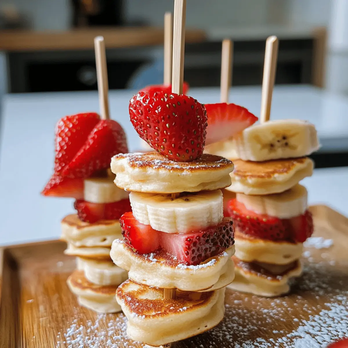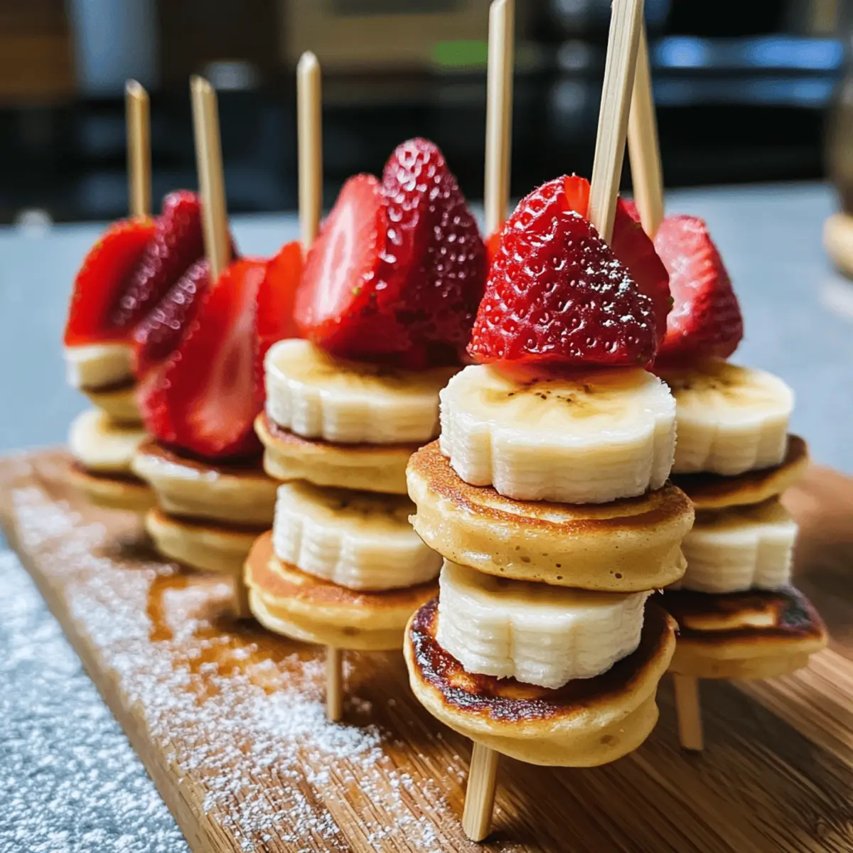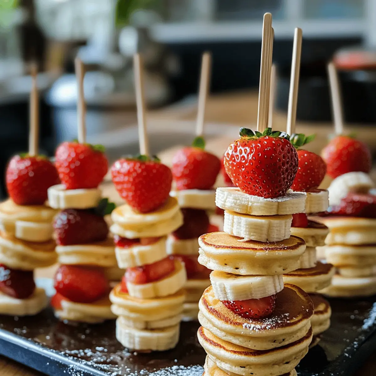 Wenn der süße Duft von frisch gebackenen Pfannkuchen durch die Küche zieht, kann ich einfach nicht widerstehen! Diese Erdbeer-Bananen-Pfannkuchen-Spieße sind nicht nur ein wahrer Augenschmaus, sondern auch der perfekte schnelle Snack für hektische Morgen oder das nächste Frühstück mit der Familie. Mit nur wenigen einfachen Zutaten zubereitet, lassen sich die Spieße ganz nach Belieben variieren und halten Groß und Klein bei Laune. Egal, ob als süße Überraschung für den Brunch oder als herzhaftes Frühstück – diese Kombination aus fluffigen Pfannkuchen, saftigen Erdbeeren und cremigen Bananen wird garantiert die Geschmacksknospen erfreuen! Bereit, die Küche zu betreten und gemeinsam zu experimentieren? Warum sind diese Spieße so besonders? Einfachheit macht dieses Rezept zur idealen Wahl: Mit nur wenigen Zutaten und einfachen Schritten können Sie köstliche Pfannkuchen-Spieße zubereiten. Vielfältig sind die Möglichkeiten, indem Sie verschiedene Früchte und Dips ausprobieren. Gesund geniessen Sie die Kombination aus frischen Zutaten ohne additives Chaos. Zudem sind die Erdbeer-Bananen-Pfannkuchen-Spieße perfekt für die ganze Familie: Kinder lieben die bunten Spieße, während Erwachsene die schnelle Zubereitung schätzen. Zeitersparnis ist ein weiterer Pluspunkt; die Spieße sind in kürzester Zeit gemacht und eignen sich hervorragend für stressfreie Frühstücksmomente oder als süßer Snack für zwischendurch. Erdbeer-Bananen-Pfannkuchen-Spieße Zutaten • Für die Pfannkuchenbasis: Mehl – Grundlage für die Pfannkuchen; kann durch glutenfreies Mehl ersetzt werden. Zucker – Fügt Süße hinzu; kann durch Honig oder einen anderen Süßstoff ersetzt werden. Backpulver – Sorgt für fluffige Pfannkuchen; keine Substitution empfohlen. Salz – Verstärkt die Aromen; kann weggelassen werden. Milch – Fügt Feuchtigkeit hinzu; pflanzliche Milcharten sind ebenfalls geeignet. Ei – Bindemittel für den Teig; kann durch eine Leinsamen-Ei-Alternative ersetzt werden. Geschmolzene Butter – Gibt den Pfannkuchen Geschmack und Feuchtigkeit; kann durch Öl ersetzt werden. • Für die fruchtige Komponente: Banane – Fügt natürliche Süße und Geschmack hinzu; kann weggelassen oder durch eine andere Frucht ersetzt werden. Frische Erdbeeren – Bieten Frische und Textur; kann durch andere Beeren oder Früchte ersetzt werden. • Für das Zusammenstecken: Holzspieße – Zum Aufstecken der Spieße; keine Substitution erforderlich. Diese Erdbeer-Bananen-Pfannkuchen-Spieße sind nicht nur lecker, sondern auch vielseitig und kinderfreundlich! Schritt-für-Schritt-Anleitung für Erdbeer-Bananen-Pfannkuchen-Spieße Step 1: Trockene Zutaten mischen In einer großen Schüssel Mehl, Zucker, Backpulver und Salz gut vermengen. Verwenden Sie einen Schneebesen, um sicherzustellen, dass keine Klumpen entstehen und die Zutaten gleichmäßig verteilt sind. Dies ist der Grundstein für den Teig Ihrer Erdbeer-Bananen-Pfannkuchen-Spieße und sollte etwa 2 Minuten in Anspruch nehmen. Step 2: Flüssige Zutaten kombinieren In einer separaten Schüssel Milch, Ei und geschmolzene Butter gut vermengen. Nutzen Sie einen Handmixer oder einen Schneebesen, um eine homogene Mischung zu erzielen. Diese Mischung sorgt für die Feuchtigkeit, die Ihre Pfannkuchen fluffig macht. Das Zusammenführen der Zutaten sollte etwa 3 Minuten dauern. Step 3: Teig vorbereiten Gießen Sie die flüssigen Zutaten zu den trockenen und rühren Sie vorsichtig, bis ein glatter Teig entsteht. Achten Sie darauf, den Teig nicht zu übermixen, um zähe Pfannkuchen zu vermeiden. Dieser Schritt sollte in etwa 1-2 Minuten abgeschlossen sein, wobei kleine Klümpchen erlaubt sind. Step 4: Pfanne erhitzen Erhitzen Sie eine beschichtete Pfanne auf mittlerer Hitze und fetten Sie sie leicht mit etwas Butter oder Öl ein. Sie wissen, dass die Pfanne bereit ist, wenn kleine Bläschen auf der Oberfläche entstehen, dies dauert ungefähr 2-3 Minuten. Step 5: Pfannkuchen backen Geben Sie etwa 1/4 Tasse des Teigs für jeden Pfannkuchen in die Pfanne. Backen Sie die Pfannkuchen 2-3 Minuten lang, bis Blasen auf der Oberfläche sichtbar werden, und wenden Sie sie dann. Backen Sie die andere Seite weitere 1-2 Minuten, bis sie goldbraun sind. Step 6: Pfannkuchen schneiden Lassen Sie die gebackenen Pfannkuchen auf einem Kühlrost kurz abkühlen. Schneiden Sie anschließend jeden Pfannkuchen in Viertel, während sie noch warm sind, um ein einfaches Zusammenstecken der Spieße zu ermöglichen. Dies sollte zügig, etwa 3 Minuten, geschehen. Step 7: Spieße zusammenstellen Stecken Sie abwechselnd Stücke der Pfannkuchen, Bananenscheiben und Erdbeerviertel auf die Holzspieße. Achten Sie darauf, die Spieße locker zu belassen, damit die Früchte gut zur Geltung kommen. Diesen Schritt sollten Sie in etwa 5 Minuten erledigen können. Step 8: Servieren Legen Sie die Erdbeer-Bananen-Pfannkuchen-Spieße auf eine Platte und servieren Sie sie warm. Sie eignen sich hervorragend als Frühstück, Brunch oder süßer Snack und bringen Farbe und Freude auf den Tisch. Genießen Sie Ihre köstlichen Kreationen! Meal Prep für Erdbeer-Bananen-Pfannkuchen-Spieße Diese Erdbeer-Bananen-Pfannkuchen-Spieße lassen sich wunderbar im Voraus zubereiten, was sie zur idealen Wahl für geschäftige Tage macht. Sie können die Pfannkuchen bis zu 3 Tage im Kühlschrank aufbewahren oder sogar portionsweise einfrieren, damit Sie jederzeit eine schnelle Frühstücksoption zur Hand haben. Bereiten Sie die Pfannkuchen einfach vor und schneiden Sie sie in Viertel, bevor Sie sie in einem luftdichten Behälter aufbewahren – dies hilft, die Frische und Textur zu bewahren. Wenn Sie bereit sind zu genießen, stecken Sie die Pfannkuchenstücke mit frischen Bananenscheiben und Erdbeerviertel auf die Holzspieße und servieren Sie sie warm. So sparen Sie nicht nur Zeit, sondern können auch spontane Frühstücksüberraschungen zaubern! Lagerungstipps für Erdbeer-Bananen-Pfannkuchen-Spie