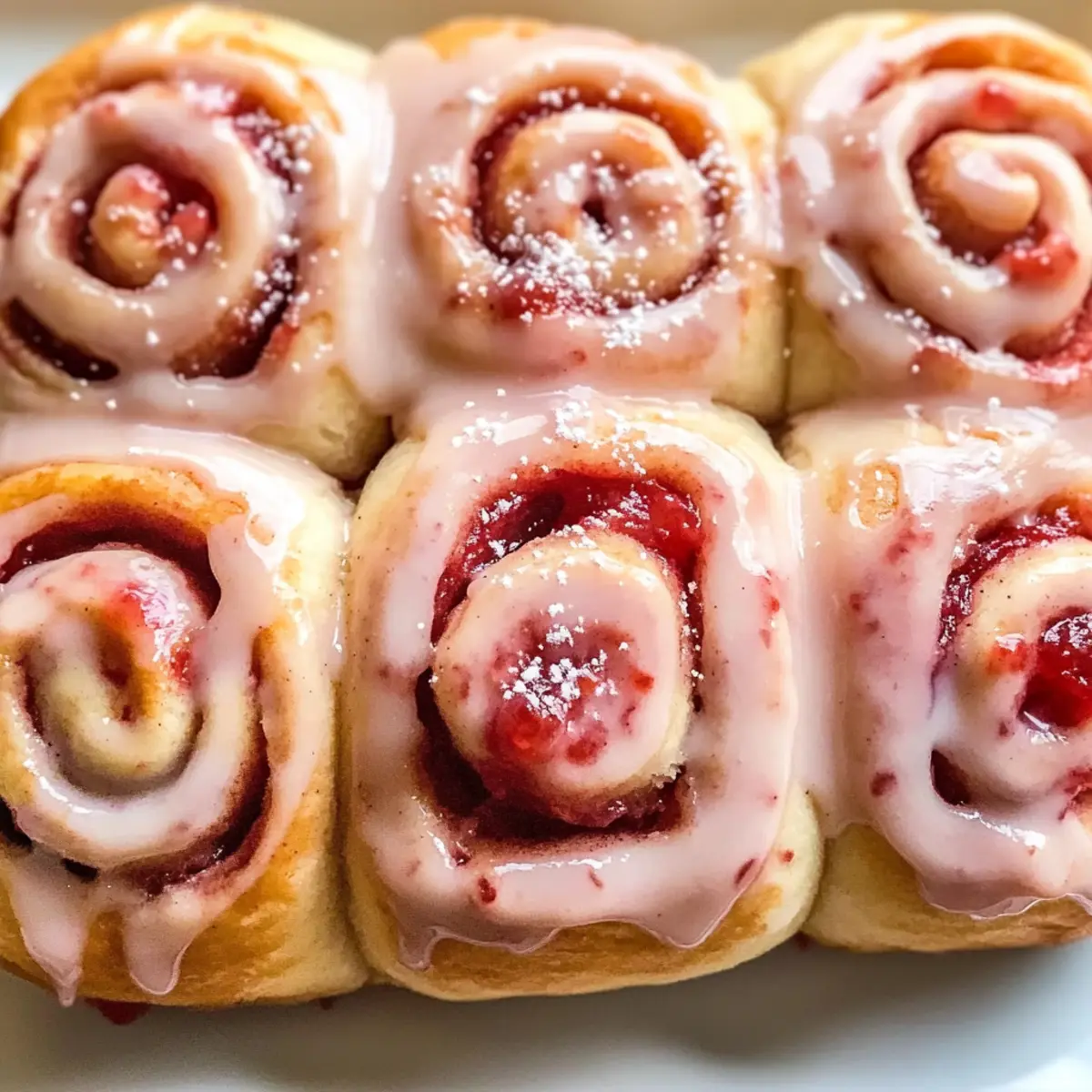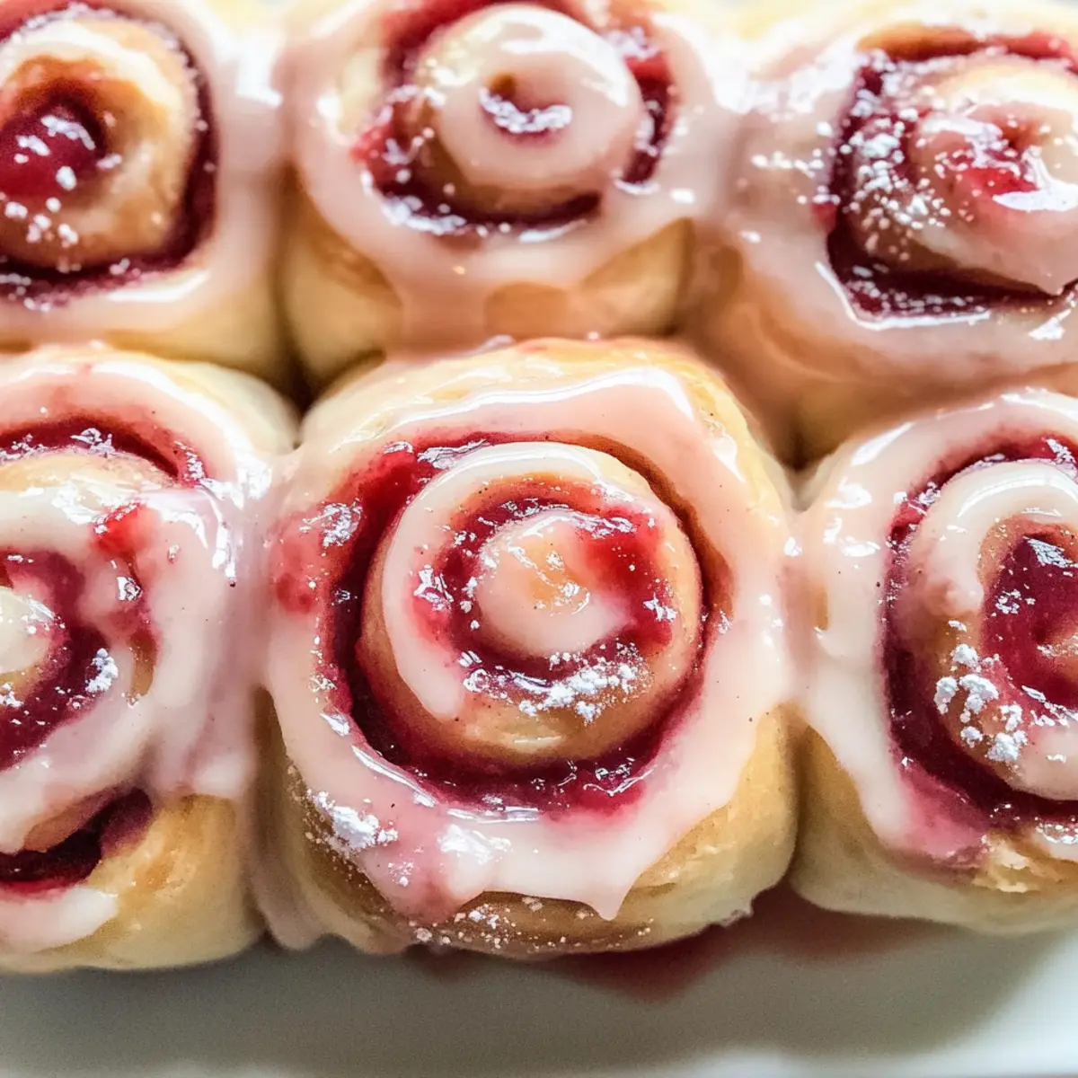Die strahlende Sonne schien durch das Fenster, während ich in der Küche stand und den köstlichen Duft von frisch gebackenem Brot einatmete. Heute möchte ich mit euch ein Rezept für Erdbeer-Zimt-Schnecken teilen – eine liebevolle Kombination aus saftigen Erdbeeren und der warmen, einladenden Aromen von Zimt. Diese einfachen, hausgemachten Leckereien sind nicht nur perfekt für ein entspanntes Brunch am Wochenende, sondern auch ein wahrer Familienliebling. Die Zubereitung der Erdbeer-Zimt-Schnecken ist ein unterhaltsames Projekt, das sowohl kleinen als auch großen Kuchenliebhabern Freude bereitet. Stellt euch vor, wie der süße, fruchtige Geschmack mit der wärmenden Gewürznote harmoniert – unwiderstehlich! Seid ihr bereit, euer Zuhause mit dem verführerischen Duft dieser köstlichen Rollen zu erfüllen? Warum sind Erdbeer-Zimt-Schnecken unwiderstehlich? Einfachheit: Die Zubereitung dieser Schnecken ist kinderleicht und benötigt nur grundlegende Backfähigkeiten. Fruchtiger Genuss: Die Kombination aus saftigen Erdbeeren und Zimt bringt eine köstliche Geschmacksexplosion, die jeden bei Tisch begeistert. Vielseitig: Ob als Frühstück, Brunch oder süßer Snack – sie passen zu jeder Gelegenheit und sind ein Hit bei Groß und Klein. Wenig Aufwand: Mit nur wenigen Zutaten und einem schnellen Rezept könnt ihr diese leckeren Schnecken blitzschnell zaubern. Köstlicher Duft: Euer Zuhause wird in den sinnlichen Duft von frisch gebackenem Brot und süßen Erdbeeren gehüllt, was sofort gute Laune verbreitet. Warum nicht auch die Vielseitigkeit der Füllungen ausprobieren und verschiedene Früchte hinzufügen? Erdbeer-Zimt-Schnecken Zutaten • Für den Teig: Allzweckmehl – Sorgt für die Struktur der Schnecken. Soforthefe – Wirkt als Treibmittel, damit der Teig aufgeht. Lauwarme Milch – Hydratisiert den Teig und aktiviert die Hefe. Weiche Butter – Verleiht den Schnecken Reichtum und Geschmack. Zucker – Süßt den Teig und unterstützt die Bräunung. Salz – Balanciert die Süße und verbessert den Geschmack. Große Eier – Sorgt für Feuchtigkeit und Bindung im Teig. Gemahlener Zimt – Fügt Wärme und Würze zur Füllung hinzu. • Für die Füllung: Erdbeer-Marmelade – Die Hauptfüllung, die Süße und fruchtigen Geschmack liefert. Frische Erdbeeren (optional) – Fügen Textur und frischen Fruchtgeschmack hinzu. • Für die Glasur: Puderzucker – Für die Glasur, um Süße und eine glatte Textur hinzuzufügen. Frischkäse (optional) – Verleiht der Glasur Reichhaltigkeit und eine leicht säuerliche Note. Entdeckt, wie einfach es ist, diese Erdbeer-Zimt-Schnecken zuzubereiten und verwandelt jede Mahlzeit in ein unvergessliches Ereignis! Schritt-für-Schritt-Anleitung für Erdbeer-Zimt-Schnecken Schritt 1: Teig vorbereiten Erwärmt die Milch in einem kleinen Topf, bis sie lauwarm ist, aber nicht kocht. Rührt den Zucker und die Hefe hinein und lasst die Mischung etwa 5-10 Minuten stehen, bis sie schäumt. In einer großen Schüssel vermischt ihr das Mehl, das Salz, die weiche Butter und die Eier. Gebt die Hefemischung dazu und knetet den Teig für ca. 10 Minuten, bis er elastisch ist. Deckt die Schüssel ab und lasst den Teig bei Zimmertemperatur für 1 Stunde aufgehen, bis er sich verdoppelt hat. Schritt 2: Schnecken formen Rollt den aufgegangenen Teig auf einer leicht bemehlten Fläche zu einem großen Rechteck aus. Bestreicht den Teig gleichmäßig mit der Erdbeer-Marmelade und streut den gemahlenen Zimt darüber. Wenn ihr frische Erdbeeren verwenden möchtet, verteilt diese gleichmäßig auf die Marmelade. Rollt den Teig straff von der langen Seite her auf und schneidet ihn in 12 gleichmäßige Scheiben. Legt die Scheiben mit der Schnittfläche nach oben auf ein Backblech. Schritt 3: Zweite Gehzeit Stellt die geschnittenen Schnecken in eine gefettete Auflaufform und deckt sie mit einem Küchentuch ab. Lasst sie für weitere 30 Minuten an einem warmen Ort gehen, bis sie sich sichtbar vergrößern. Diese zweite Gehzeit ist entscheidend für die fluffige Konsistenz der Erdbeer-Zimt-Schnecken. In der Zwischenzeit könnt ihr den Ofen auf 175°C (350°F) vorheizen. Schritt 4: Backen Nachdem die Schnecken aufgegangen sind, schiebt ihr die Auflaufform in den vorgeheizten Ofen. Backt die Erdbeer-Zimt-Schnecken für etwa 25-30 Minuten, bis sie goldbraun und duftend sind. Ihr erkennt, dass sie fertig sind, wenn die Oberseite schön goldig ist und beim Klopfen auf die Unterseite hohl klingt. Schritt 5: Glasur zubereiten Während die Schnecken backen, könnt ihr die Glasur vorbereiten. Vermischt in einer Schüssel den Puderzucker mit etwas lauwarmer Milch, bis die gewünschte Konsistenz erreicht ist. Für mehr Geschmeidigkeit und Geschmack könnt ihr optional auch Frischkäse unterrühren. Diese Glasur macht eure Erdbeer-Zimt-Schnecken besonders verführerisch. Schritt 6: Glasieren Sobald die Schnecken aus dem Ofen kommen, lasst sie kurz in der Form abkühlen. Träufelt dann die vorbereitete Glasur über die warmen Erdbeer-Zimt-Schnecken, sodass sie schön glasiert sind. Der warme Duft und die glänzende Glasur verleihen den Schnecken ein einladendes Aussehen und machen sie noch appetitlicher. Was serviert man zu Erdbeer-Zimt-Schnecken? Die perfekte Ergänzung zu euren frisch gebackenen Schnecken wird euer Brunch auf ein neues Level heben. Cremiger Joghurt: Ein Löffel Joghurt gibt eine frische, cremige Note, die die Süße der Schnecken ausbalanciert. Frische Früchte: Eine Mischung aus Beeren oder süßen Kiwi-Scheiben bringt fruchtige Frische und sorgt für ein schmackhaftes Spiel der Aromen. Schokoladenstückchen: Zartschmelzende Schokolade ist immer eine gute Idee! Einfach zwischen die Schnecken rollen oder als Topping verwenden für einen besonderen Kick. Kaffee oder Tee: Ein heiße Tasse eures Lieblingskaffees oder -tees verstärkt das Geschmackserlebnis und rundet das Frühstück harmonisch ab. Vanilleeis: Ein heißes Stück Schnecke, kombiniert mit einer Kugel V
