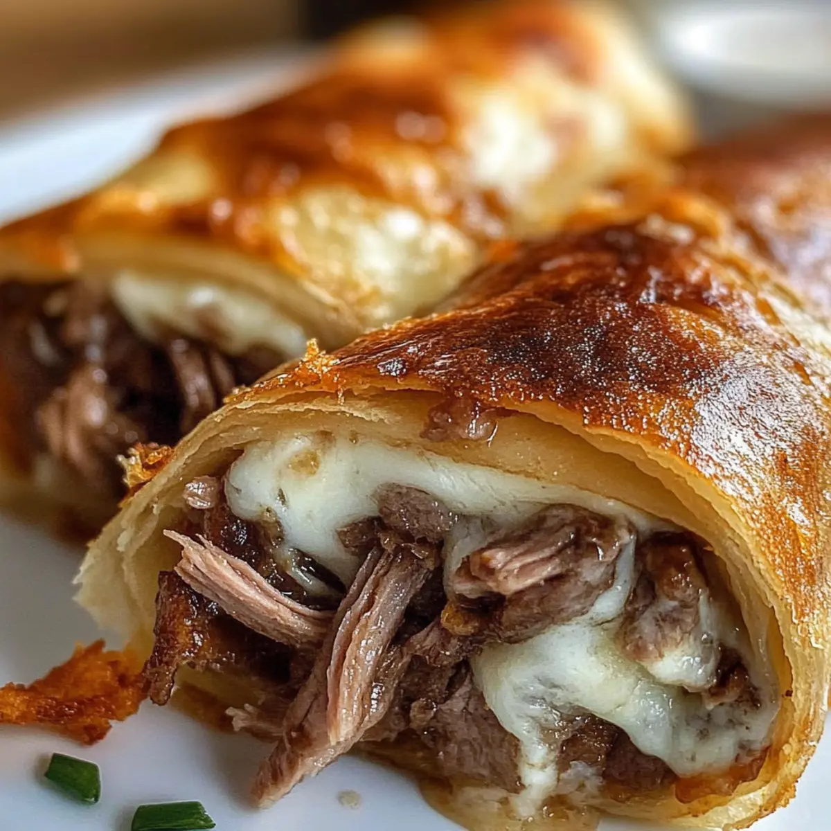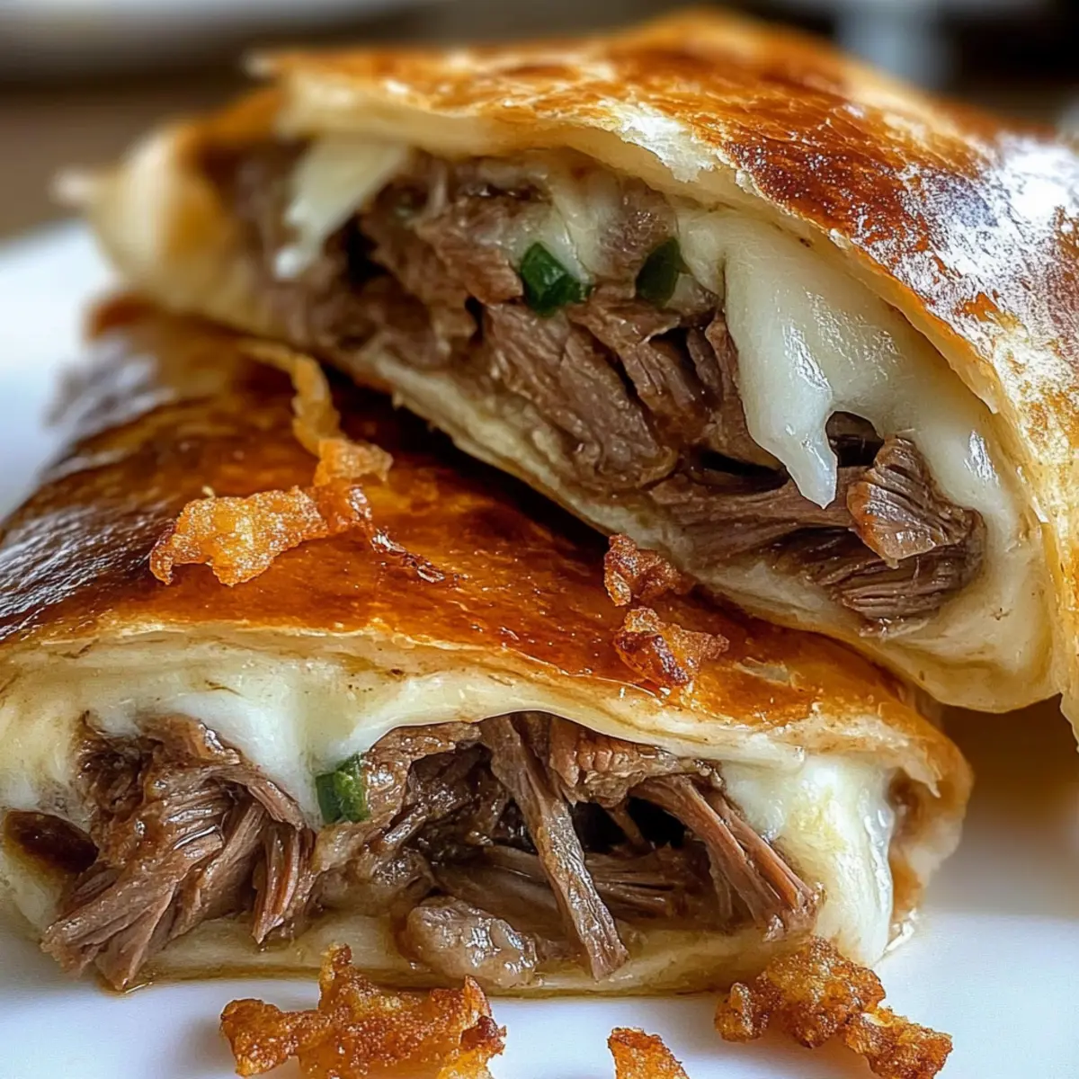 „Hast du schon einmal gedacht, wie einfach es sein kann, einen beeindruckenden Snack zu kreieren, der sowohl beim Spielabend als auch beim gemütlichen Beisammensein begeistert?“ Mit diesen französischen Dip-Tortilla-Röllchen wird deine Snack-Auswahl auf ein neues Level gehoben. Sie sind gefüllt mit zartem Roastbeef und cremigem Provolone, ergänzt durch den köstlichen Crunch von frittierten Zwiebeln – jedes Biss ist ein Hochgenuss. In nur wenigen Minuten zubereitet, sind diese Röllchen der perfekte schnelle Appetitanreger für jeden Anlass und begeistern garantiert deine Gäste. Und das Beste daran? Du kannst kreativ werden und mit verschiedenen Käsesorten experimentieren! Hast du schon eine Vorstellung davon, wie lecker diese Röllchen mit deiner Lieblingskäsesorte schmecken könnten? Warum wirst du diese Röllchen lieben? Einfache Zubereitung: Die Schritt-für-Schritt-Anleitung macht es zur Freude, diese Röllchen ganz leicht zuzubereiten. Vielfältige Käsealternativen: Provolone ist großartig, aber du kannst auch Käse wie Mozzarella oder Swiss verwenden, um deinen eigenen Geschmack zu kreieren. Perfekt für jede Gelegenheit: Ob Spielabend oder Familienfeier, sie sind der perfekte Snack, um alle zu begeistern. Geschmack, der begeistert: Zartes Roastbeef und der knusprige Biss der Zwiebeln sorgen für eine Explosion an Aromen in jedem Biss. Zeitersparnis: In nur 30 Minuten bereit, sind sie die ideale Lösung, um fix Gäste zu bewirten. Lass deiner Kreativität freien Lauf und entdecke auch meine Franzoesische Toaststaebchen Franz für weitere köstliche Snack-Ideen! Französische Dip-Tortilla-Röllchen Zutaten • Perfekt für einen schnellen Snack! Für die Röllchen Große Mehl-Tortillas (4) – Diese dienen als Basis; wähle 30 cm für optimale Füllkapazität. Provolone-Käse (8 Scheiben) – Sorgt für Cremigkeit und Schmelz; alternativ kannst du Mozzarella oder Swiss verwenden. Roastbeef (340 g) – Liefert reichhaltigen Geschmack und Substanz; frisch geschnitten für den besten Genuss. Frittierte Zwiebeln (1 Tasse) – Bringt Knusprigkeit und Süße; frische Zwiebeln sind ebenfalls eine Option, wenn du sie anbrätst. Natives Olivenöl extra (2 Esslöffel) – Hilft, die Tortillas knusprig zu machen und die Ränder zu versiegeln. Für die Dipsauce Rinderconsommé (1 Dose, 295 g) – Bildet die Basis der Dipsauce; reichhaltig im Geschmack. Wasser (1 Tasse) – Verdünnt die Dipsauce auf die gewünschte Konsistenz. Worcestershiresauce (1 Esslöffel) – Fügt der Dipsauce umami Tiefe hinzu. Sojasauce mit niedrigem Natriumgehalt (2 Teelöffel) – Verstärkt das würzige Profil; verwende Tamari für eine glutenfreie Variante. Zwiebelpulver (1/2 Teelöffel) – Sorgt für zusätzliche Würze. Knoblauchpulver (1/2 Teelöffel) – Ergänzt die anderen Aromen in der Dipsauce. Schritt-für-Schritt-Anleitung für Französische Dip-Tortilla-Röllchen Step 1: Ofen vorheizen Heize den Ofen auf 220 °C vor und lege ein Backblech mit Backpapier aus. Diese Vorbereitung ist entscheidend, damit deine französischen Dip-Tortilla-Röllchen gleichmäßig und knusprig gebacken werden. Während der Ofen vorheizt, kannst du mit der nächsten Zubereitung fortfahren. Step 2: Tortillas belegen Lege eine Tortilla flach auf die Arbeitsplatte. Belege die Hälfte der Tortilla mit zwei Scheiben Provolone-Käse, gefolgt von einer großzügigen Menge Roastbeef und einer Portion frittierten Zwiebeln. Schließe die Tortilla, indem du den Rand mit etwas nativem Olivenöl bestreichst, um sie später gut zu versiegeln. Step 3: Röllchen rollen und sichern Rolle die Tortilla von der belegten Seite her vorsichtig, aber fest auf und achte darauf, dass die Füllung nicht herausfällt. Lege die Röllchen mit der Nahtseite nach unten auf das vorbereitete Backblech. Wiederhole diesen Schritt mit den restlichen Tortillas, bis alle gefüllt und gerollt sind. Step 4: Röllchen mit Öl bestreichen Bepinsele die Oberseite und die Seiten der Tortilla-Röllchen leicht mit dem restlichen nativem Olivenöl. Dies sorgt dafür, dass sie beim Backen schön goldbraun und knusprig werden. Achte darauf, dass kein Öl auf dem Backpapier pools, um die bestmögliche Textur zu erreichen. Step 5: Backen Schiebe das Backblech in den vorgeheizten Ofen und backe die Röllchen 8 bis 10 Minuten lang. Drehe das Blech in der Mitte der Backzeit, sodass alle Seiten gleichmäßig bräunen. Die Tortilla-Röllchen sind fertig, wenn sie goldbraun sind und der Käse an den Rändern beginnt zu sprudeln. Step 6: Au Jus zubereiten Während die Röllchen im Ofen sind, bereite die Dipsauce vor. Erhitze in einem kleinen Topf das Rinderconsommé, Wasser, Worcestershire-Sauce, Sojasauce, Zwiebelpulver und Knoblauchpulver bei mittlerer Hitze. Lass die Mischung 3-4 Minuten köcheln, bis sie aromatisch und gut vermischt ist. Step 7: Röllchen ruhen lassen und servieren Nehme die französischen Dip-Tortilla-Röllchen aus dem Ofen und lasse sie 2 Minuten ruhen. Dies hilft, die Form zu bewahren, während der Käse leicht abkühlt. Schneide die Röllchen in Portionen und serviere sie warm mit der aromatischen Au Jus-Dipsauce an der Seite für ein perfektes Geschmackserlebnis. Was passt zu Französischen Dip-Tortilla-Röllchen? Die perfekten Begleiter machen jede Mahlzeit unvergesslich und bringen die Aromen deiner Röllchen noch mehr zur Geltung. Cremiger Kartoffelbrei: Der samtige Kartoffelbrei ergänzt die herzhaften Röllchen ideal und sorgt für ein Wohlfühlgefühl. Zusammen genießen sie eine harmonische Kombination aus Texturen. Bunte Gemüsesalate: Frischer, knackiger Salat mit saisonalem Gemüse sorgt für einen erfrischenden Kontrast zu den warmen Röllchen und bringt Farbe auf den Tisch. Ein leichter Dressing voller Zitrusnoten harmoniert perfekt. Knoblauchbrot: Das knusprige Knoblauchbrot ist die ideale Ergänzung, um die köstliche Au Jus aufsaugen. Eine perfekte Kombination, die für jeden Bissen mehr Geschmack bietet. Süß-saurer Coleslaw: 