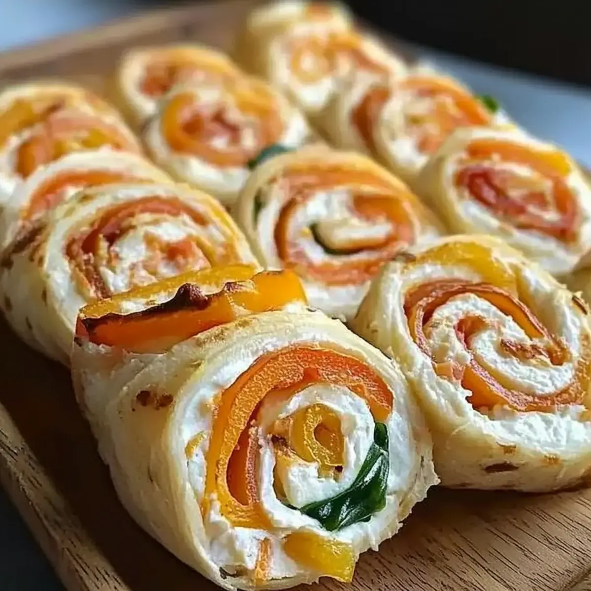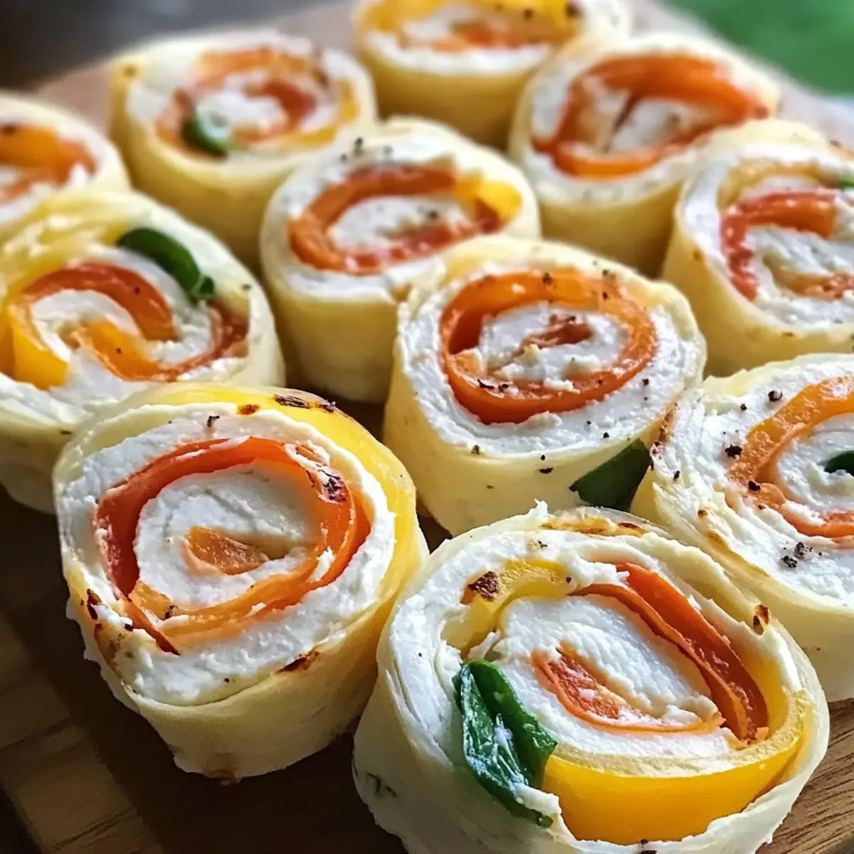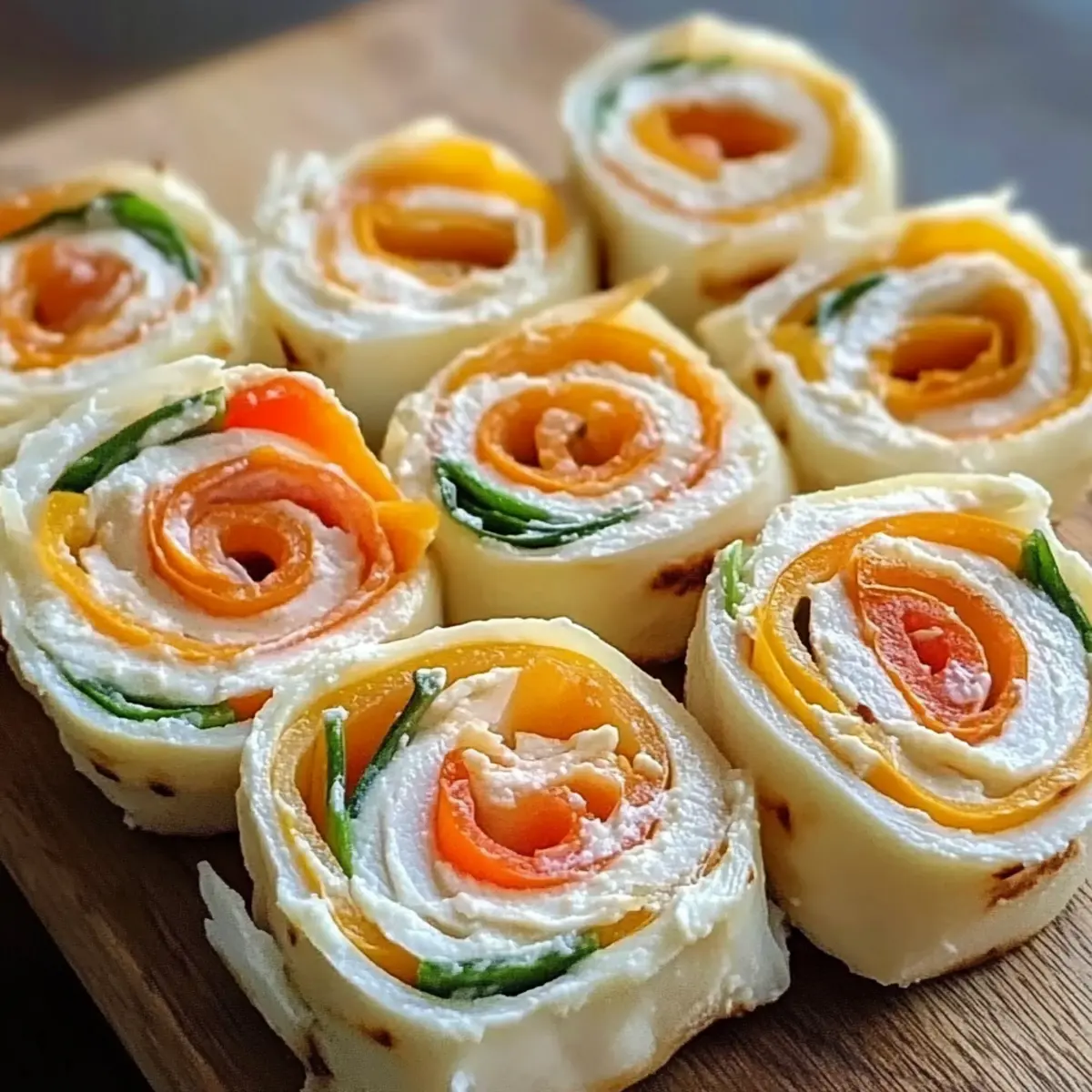 Die nächste Party steht vor der Tür und ich stehe vor dem Kühlschrank, in dem sich ein paar simple Zutaten verbergen. Plötzlich kommt mir die geniale Idee für die perfekten Snacks: Frischkäse Roll-Ups! Diese schlichten, aber so vielseitigen kleinen Köstlichkeiten sind die ideale Lösung. Mit einem cremigen Käse und dem weichen Tortilla können sie nicht nur als schneller Snack überzeugen, sondern auch als Appetizer oder leichtes Mittagessen fungieren. Egal, ob du sie für eine Feier oder ein Picknick zubereitest, sie sind von der Familie geliebt und immer ein Hit. Was könnte besser sein, als deinen Einfallsreichtum bei der Wahl der Füllungen auszuleben? Lass uns gemeinsam entdecken, wie einfach und köstlich diese Roll-Ups sein können! Warum sind Frischkäse Roll-Ups so beliebt? Einfachheit: Die Zubereitung ist kinderleicht und benötigt kaum Zeit. Jeder kann sie meistern! Vielseitigkeit: Du kannst eine Vielzahl von Füllungen verwenden – von herzhaft über süß bis gesund, je nach Lust und Laune. Perfekt für Feiern: Ob Geburtstag oder Grillparty, diese Roll-Ups sind der hitzige Star auf jedem Buffet! Crowd-Pleaser: Sie sind bei Jung und Alt gleichermaßen beliebt und werden immer schnell verzehrt. Gesundheitsbewusstsein: Mit wenigen Anpassungen kannst du sie gesund gestalten, indem du zum Beispiel frisches Gemüse einfügst oder eine leichte Creme verwendest. Probiere auch mal unsere Variation Ideen! Frischkäse Roll-Ups Zutaten • Tipp: Um diese köstlichen Frischkäse Roll-Ups zuzubereiten, sind nur wenige einfache Zutaten erforderlich. Für die Füllung • Frischkäse – sorgt für eine reichhaltige, cremige Basis; probiere auch aromatisierte Varianten für zusätzlichen Geschmack. • Tortillas – dienen als weicher Träger; nutze Vollkorn- oder glutenfreie Varianten für eine gesündere Option. • Füllungen (z.B. Wurst, Gemüse) – verleihen den Roll-Ups Geschmack und Textur; wähle deine liebsten Zutaten oder experimentiere mit pflanzlichen Optionen wie Avocado. Für zusätzliche Aromen • Frische Kräuter – bringen einen Hauch Frische und eignen sich hervorragend zur Verfeinerung der Füllungen. • Gewürze – wie Paprika oder Pfeffer, können verwendet werden, um den Roll-Ups eine besondere Note zu geben. Mit diesen einfachen Zutaten kreierst du schnell eine köstliche und vielseitige Snack-Option, die perfekt für jede Gelegenheit ist! Schritt-für-Schritt-Anleitung für Frischkäse Roll-Ups Step 1: Tortillas vorbereiten Lege die Tortillas auf eine saubere Arbeitsfläche. Stelle sicher, dass sie weich und biegsam sind, um ein brechen während des Rollens zu vermeiden. Nimm einen großen Löffel Frischkäse und verteile ihn gleichmäßig auf jeder Tortilla, sodass die gesamte Fläche abgedeckt ist. Dies bildet die köstliche Basis für deine Frischkäse Roll-Ups. Step 2: Füllungen hinzufügen Wähle deine Lieblingsfüllungen wie Wurstscheiben, frisches Gemüse oder sogar einen Hauch von Avocado. Verteile die Füllungen gleichmäßig auf dem Frischkäse. Achte darauf, dass die Füllungen nicht zu hoch gestapelt sind, damit sie beim Rollen nicht herausfallen. Dies sorgt dafür, dass die Frischkäse Roll-Ups sauber und ansprechend aussehen. Step 3: Roll-Ups formen Beginne am Rand einer Tortilla und rolle sie vorsichtig aber fest auf. Achte darauf, die Füllungen während des Rollens gut im Inneren zu halten. Gehe langsam und gleichmäßig vor, um eine enge Rolle zu bilden, die nicht auseinanderfällt. Das Endergebnis sollte eine dichte und gerollte Tortilla sein, die bereit ist, geschnitten zu werden. Step 4: Roll-Ups schneiden Lege die geformten Roll-Ups auf ein Schneidebrett und schneide sie in etwa 2-3 cm große Stücke. Verwende ein scharfes Messer, um saubere und präzise Schnitte zu machen. Platziere die geschnittenen Stücke mit der Schnittseite nach oben auf einem Servierteller, damit die Füllungen appetitlich zur Geltung kommen. Step 5: Servieren und genießen Die Frischkäse Roll-Ups können sofort serviert oder für etwa 30 Minuten in den Kühlschrank gestellt werden, um die Aromen zu intensivieren. Wenn du bereit bist, sie zu genießen, serviere sie mit einem Dip wie Salsa oder einem leichten Dressing. Damit sind deine Frischkäse Roll-Ups nicht nur ein Augenschmaus, sondern auch eine köstliche Snack-Option für jede Gelegenheit! Frischkäse Roll-Ups Variationen Lass deiner Kreativität freien Lauf und entdecke köstliche Alternativen für deine Frischkäse Roll-Ups! Räucherlachs: Ersetze Truthahnscheiben durch Räucherlachs für einen eleganten und raffinierten Snack. Buntes Gemüse: Nutze eine Mischung aus bell peppers und Spinat, um mehr Farbe und frische Nährstoffe hinzuzufügen. Diese Kombination bringt lebendige Geschmäcker auf den Tisch und sorgt für eine gesunde Portion. Käsevielfalt: Probiere verschiedene Käsesorten wie Ziegenkäse oder Feta aus, um den Roll-Ups eine gourmethafte Note zu verleihen. Frischkäse und Feta harmonieren besonders gut miteinander und bieten ein tolles Geschmackserlebnis. Scharfe Note: Füge eine Prise Chili oder Sriracha zu deinem Frischkäse hinzu, um deine Roll-Ups auf die nächste Stufe zu heben. Ein kleiner Kick macht das Ganze aufregender und ist perfekt für alle, die Schärfe lieben. Mediterraner Twist: Verwende schwarze Oliven, getrocknete Tomaten und frische Basilikumblätter für eine mediterrane Note. Diese Kombination sorgt für eine köstliche Abwechslung und bringt Urlaubsgefühle in deine Küche. Süße Variante: Für einen süßen Snack kannst du anstelle von Gemüse einen Frischkäse mit Honig und frischen Beeren füllen. Diese leckere Kombination wird deine Geschmacksnerven verwöhnen und ist ideal für einen Brunch. Wrap-Style: Verwandle die Roll-Ups in Wraps, indem du große Tortillas verwendest und sie mit einer Mischung aus Quinoa und geröstetem Gemüse füllst. Diese proteinreiche Variante ist perfekt für ein leichtes, gesundes Mittagessen. Vegane Option: Ersetze den Frisch
