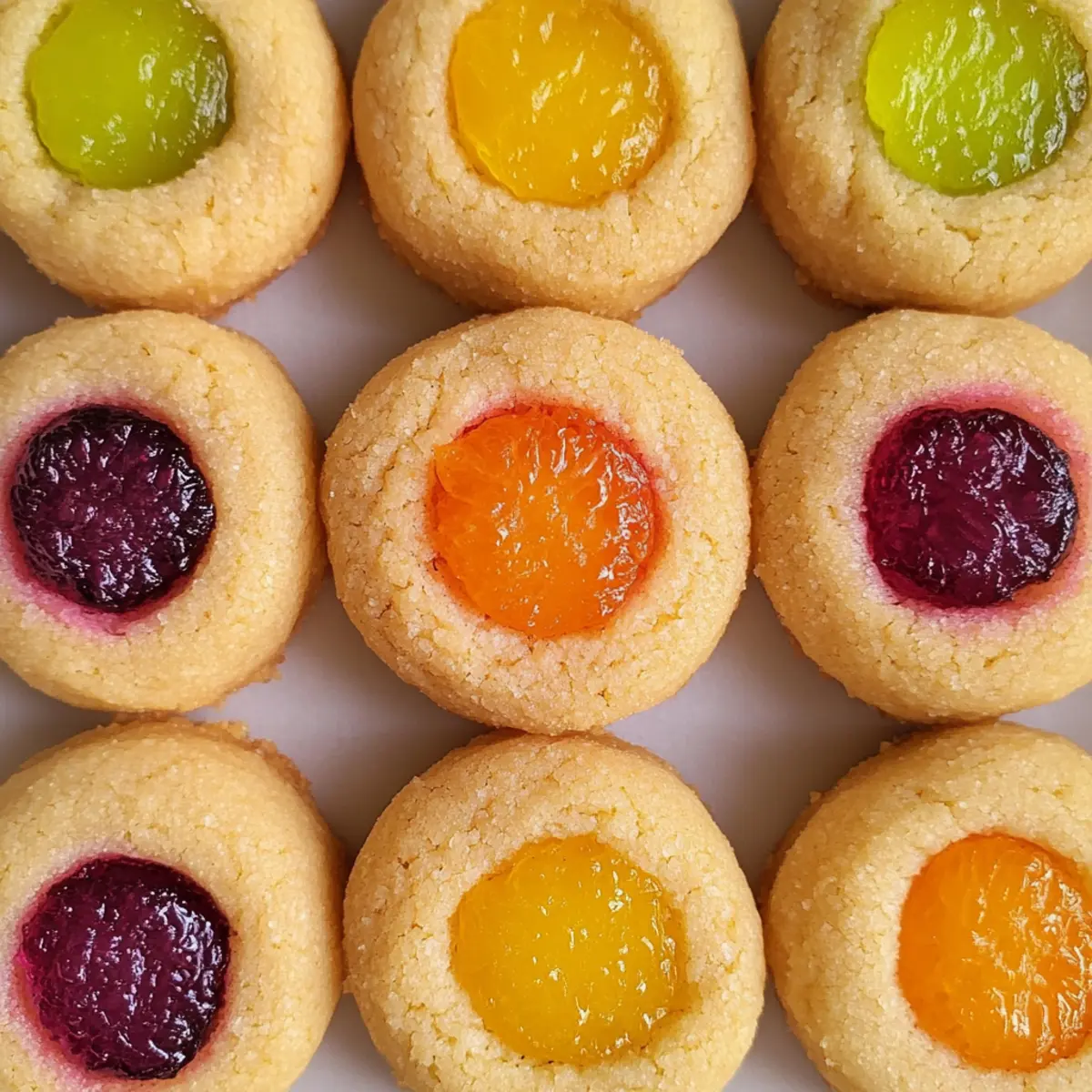 Wenn die ersten Frühlingsblüten erblühen, möchte ich immer ein wenig Farbe und Freude in meine Küche bringen. Heute teilen wir ein Rezept für fruchtgefüllte Daumenabdruckkekse, das nicht nur in leuchtenden Pastellfarben erstrahlt, sondern auch die perfekte Mischung aus Geschmack und Textur bietet. Diese bunten Kekse sind äußerst vielseitig und lassen Raum für kreative Anpassungen – von fruchtigen Marmeladen bis hin zu erfrischenden Zitruscurds. Mit ihrer einfachen Zubereitung sind sie das ideale Backvergnügen für die Frühlingszeit. Egal, ob für einen geselligen Nachmittag mit Freunden oder als süßer Abschluss eines Familienfestes, diese Kekse sind garantiert ein Hit. Seid ihr bereit, eure nächste Backrunde aufzupeppen? Warum sind diese Kekse so besonders? Vielseitigkeit: Diese fruchtgefüllten Daumenabdruckkekse sind nicht nur lecker, sondern auch anpassbar! Experimentiere mit verschiedenen Füllungen, wie fruchtigen Marmeladen oder aromatischen Curds, um deinen ganz persönlichen Favoriten zu kreieren. Farbe: Ihre lebhaften Farbtöne, gefüllt mit bunten, gefriergetrockneten Früchten, machen diese Kekse zu einem echten Blickfang. Sie bringen frische Frühlingsstimmung auf jede Kaffeetafel. Einfachheit: Mit wenigen Zutaten und unkomplizierten Schritten sind sie auch für Backneulinge einfach zuzubereiten. Du wirst erstaunt sein, wie schnell sie im Ofen zubereitet sind! Lecker und gesund: Durch die Verwendung von gefriergetrocknetem Obst erhältst du nicht nur Geschmack, sondern auch wichtige Nährstoffe ohne zusätzliche Feuchtigkeit. Wenn du auf der Suche nach einem leichteren Gebäck bist, probiere unsere Hütten Käse Chips oder genieße eine fruchtige Bete Dip als Ergänzung! Perfekte Geselligkeit: Ob für eine Feier oder einen gemütlichen Nachmittagskaffee – diese Kekse hinterlassen bei Familie und Freunden einen bleibenden Eindruck. Sie sind der süße Abschluss, den jede Zusammenkunft braucht! Fruchtgefüllte Daumenabdruckkekse Zutaten • Diese bunten Kekse sind in der Zubereitung so einfach wie lecker! Für den Teig Butter – verleiht den Keksen einen reichen Geschmack und ist wichtig für die Konsistenz. Du kannst Margarine als milchfreie Option verwenden. Zucker – sorgt für die Süße und unterstützt das Bräunen. Ersetze ihn durch Kokoszucker für eine weniger raffinierte Variante. Ei – bindet den Teig und sorgt für eine luftige Textur. Eine Leinsamen-Ei-Alternative eignet sich hervorragend für eine vegane Version. Vanilleextrakt – hebt das Aroma hervor. Versuche stattdessen Mandel-Extrakt für eine besondere Note. Mehl – gibt den Keksen Struktur. Für eine glutenfreie Option kannst du Mandelmehl oder eine glutenfreie Mischung verwenden. Salz – sorgt für den perfekten Geschmack und balanciert die Süße. Lass es weg, wenn du gesalzene Butter verwendest. Gefriergetrocknete Früchte (⅔ Tasse) – bringen Farbe und Geschmack. Wähle deine Lieblingssorte wie Erdbeeren, Himbeeren oder Mango zur individuellen Anpassung. Für die Zitrus-Curd-Füllung Eier – sorgen für die cremige Basis der Curd. Zucker – fügt die notwendige Süße hinzu. Maisstärke – hilft, die Curd zu verdicken. Zitronen- oder Limettensaft – verleiht der Curd eine frische, spritzige Note. Vanilleextrakt – rundet den Geschmack ab. Salz – hebt die Aromen hervor. Limettenschale (optional) – für zusätzlichen Zitrusgeschmack. Butter – sorgt für eine cremige Textur. Grüne Lebensmittelfarbe (optional) – macht die Curd noch ansprechender für das Auge. Diese fruchtgefüllten Daumenabdruckkekse sind nicht nur ein echter Hingucker, sondern auch eine köstliche Möglichkeit, den Frühling in deiner Küche zu feiern! Schritt-für-Schritt-Anleitung für Fruchtgefüllte Daumenabdruckkekse Schritt 1: Curd zubereiten In einer Schüssel die Eier, den Zucker, die Maisstärke, das Salz, die Zitronen- oder Limettenschale, den Zitronen- oder Limettensaft und den Vanilleextrakt gut verquirlen. Butter in einem kleinen Topf bei mittlerer Hitze schmelzen, dann die Mischung hinzufügen und dabei ständig umrühren. Weiterkochen, bis die Masse 5-10 Minuten dick wird. Durch ein feines Sieb gießen und für mindestens 2 Stunden im Kühlschrank kühlen. Schritt 2: Kekse vorbereiten Butter und Zucker in einer Rührschüssel mit einem Standmixer auf mittlerer Geschwindigkeit cremig schlagen, bis die Mischung leicht und fluffig ist. Anschließend das Ei und den Vanilleextrakt hinzufügen und gut vermischen. Dieser Schritt sichert die Grundlage für die fruchtgefüllten Daumenabdruckkekse und sorgt für einen angenehmen Geschmack. Schritt 3: Zutaten kombinieren Die gefriergetrockneten Früchte in einem Mixer zu einem feinen Pulver mahlen. Dieses Fruchtpulver mit Mehl und Salz in einer separaten Schüssel vermengen. Die trockenen Zutaten dann langsam unter die feuchten Zutaten mischen, bis ein homogener Teig entsteht. Achte darauf, nicht zu übermixen, um die zarte Konsistenz der Kekse zu bewahren. Schritt 4: Kekse formen Den Teig in 12 gleich große Portionen teilen und zu Kugeln formen. Mit dem Daumen oder einem Löffel eine Mulde in die Mitte jeder Kugel drücken. Dies wird später für die Füllung der fruchtgefüllten Daumenabdruckkekse benötigt. Die geformten Kekse auf ein mit Backpapier ausgelegtes Blech legen und mindestens 30 Minuten im Kühlschrank kühlen, damit sie beim Backen ihre Form behalten. Schritt 5: Backen Den Backofen auf 180 °C (350 °F) vorheizen. Die Kekse 12 Minuten backen, bis die Ränder leicht goldbraun sind. Achte darauf, dass die Kekse nicht zu dunkel werden, da sie angenehm zäh bleiben sollen. Lass die Kekse nach dem Backen kurz auf dem Blech abkühlen, bevor du sie auf ein Kuchengitter legst. Schritt 6: Fertigstellen Die Kekse vollständig abkühlen lassen, bevor du die vorbereitete Curd oder Marmelade in die Mulden füllst. Diese fruchtgefüllten Daumenabdruckkekse benötigen eine ansprechende Füllung, um den Geschmack zu vervollständigen. Du kann