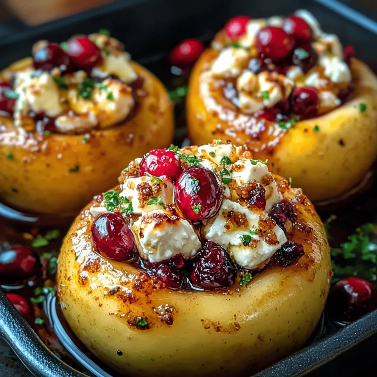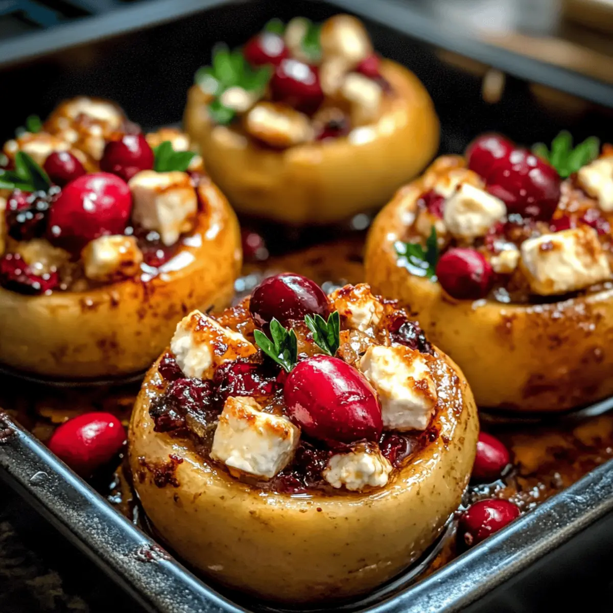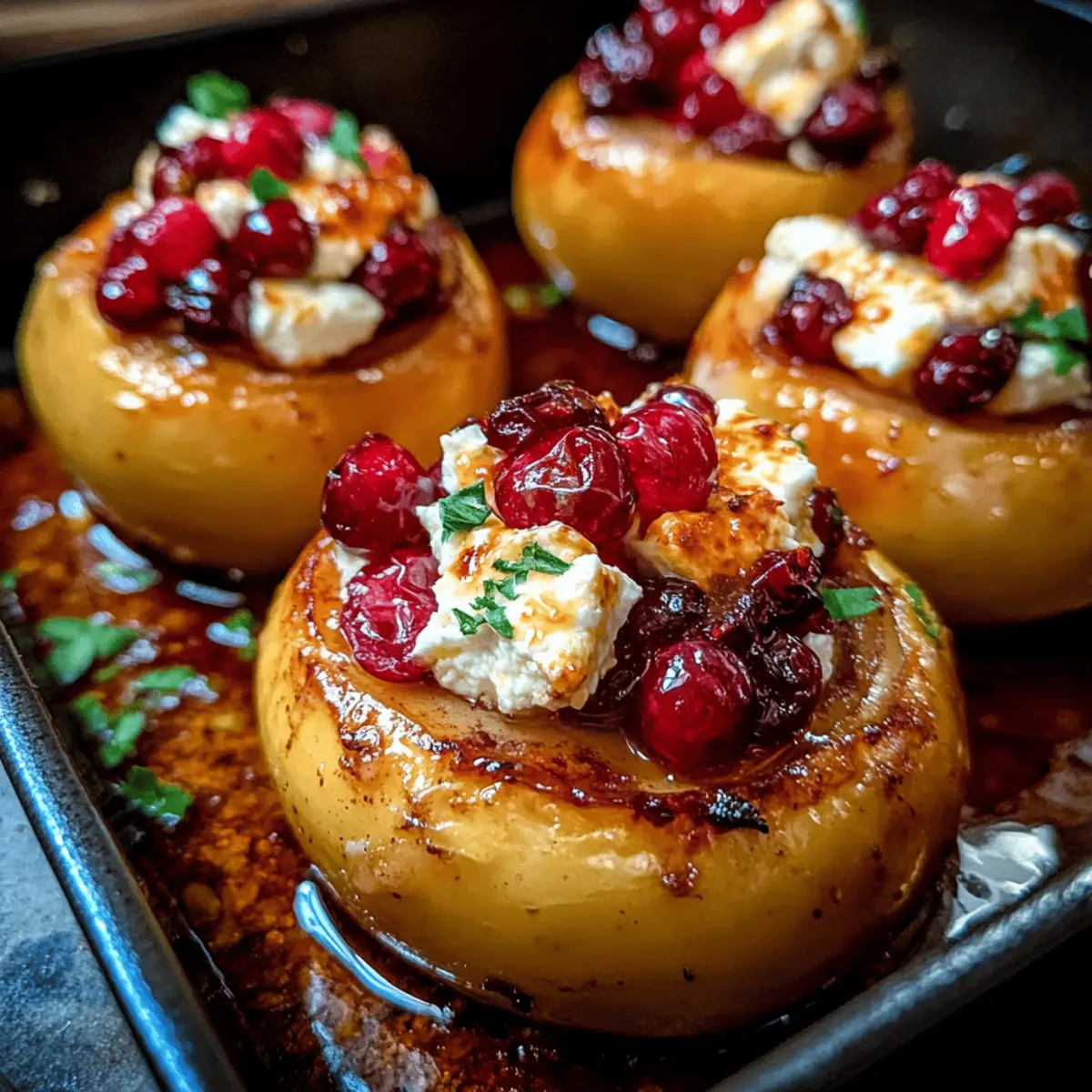Wenn der Duft von frisch gebackenen Äpfeln den Raum erfüllt, weiß ich, dass der Herbst angekommen ist. Heute teile ich mit euch mein Rezept für gebackene Äpfel mit Feta, Honig und Cranberries – ein perfektes Zusammenspiel aus süßen und herzhaften Aromen. Diese elegante Dessert-Option eignet sich nicht nur für festliche Brunches, sondern auch als köstliche Beilage für besondere Anlässe. Das Beste daran? Die Zubereitung ist kinderleicht und das Ergebnis sorgt garantiert für Begeisterung bei euren Gästen! Wenn ihr also auf der Suche nach einem Rezept seid, das warmen Komfort mit raffiniertem Geschmack kombiniert, dann bleibt dran. Welche süße Überraschung wird euch am meisten begeistern? Warum sind gebackene Äpfel so unwiderstehlich? Süße und herzhafte Harmonie: Die Kombination aus saftigen Äpfeln, cremigem Feta und gehackten Cranberries schafft ein Geschmackserlebnis, das sowohl den Gaumen erfreut als auch das Herz wärmt. Einfach zuzubereiten: Mit nur wenigen Zutaten und simpler Zubereitung gelingt dieses Gericht jedem, unabhängig von euren Kochkünsten. Vielseitige Verwendung: Perfekt als Dessert, Brunch-Highlight oder festliche Beilage, ihr könnt es zu verschiedenen Anlässen servieren und es lässt sich leicht anpassen. Aromatische Fülle: Die Verbindung von Zimt und Honig verleiht den Äpfeln eine wunderbare Wärme, die den Herbst perfekt einfängt. Crowd-Pleaser: Egal, ob Familie oder Freunde – dieses Rezept wird garantiert für strahlende Gesichter und Nachschlag sorgen! Neugierig auf weitere herbstliche Gerichte? Schaut euch auch unser herzhaftes Kürbisrisotto an. Zutaten für gebackene Äpfel mit Feta, Honig und Cranberries Für die Äpfel • Äpfel – Wählt festere Sorten wie Honeycrisp oder Granny Smith für die beste Textur. • Butter – Gibt den Äpfeln eine goldbraune Oberfläche und verleiht ihnen eine reiche Note. Für die Füllung • Feta Käse – Sorgt für einen cremigen, würzigen Kontrast zu den süßen Äpfeln und dem Honig. Ein Tausch gegen Ziegenkäse bietet eine mildere Geschmacksrichtung. • Cranberries – Bringen eine fruchtige Säure ins Spiel, die die Aromen perfekt ergänzt. Dörrobst kann ebenso verwendet werden, wenn frische Beeren nicht zur Hand sind. • Honig – Verleiht der Füllung eine natürliche Süße und verbindet die Aromen. Alternativ kann auch Ahornsirup verwendet werden, um einen anderen süßen Akzent zu setzen. • Zimt – Fügt eine warme würzige Note hinzu, die den herbstlichen Charme unterstreicht. Für ein anderes Aroma kann auch Muskatnuss verwendet werden. Diese gebackenen Äpfel mit Feta, Honig und Cranberries sind ein Genuss, der sowohl süß als auch herzhaft begeistert! Schritt-für-Schritt-Anleitung für gebackene Äpfel mit Feta, Honig und Cranberries Step 1: Ofen vorheizen Heize den Ofen auf 175 °C vor, während du die Äpfel vorbereitest. Ein gut vorgeheizter Ofen sorgt dafür, dass deine gebackenen Äpfel schön gleichmäßig garen und eine goldene Oberfläche erhalten. Bereite ein Backblech oder eine Auflaufform vor, in die du die Äpfel stellen kannst. Step 2: Äpfel vorbereiten Entkerne die Äpfel mit einem scharfen Messer oder einem Apfelausstecher. Achte darauf, etwas von der Unterseite des Apfels intakt zu lassen, damit die Füllung nicht herausfällt. Platziere die entkernten Äpfel in der vorbereiteten Form und achte darauf, dass sie stabil stehen. Step 3: Füllung zubereiten In einer Schüssel vermische den zerbröckelten Feta, die Cranberries, den Honig und den Zimt. Rühre die Mischung gut durch, bis alle Zutaten gleichmäßig verteilt sind. Diese Füllung wird in die Äpfel gestopft und sorgt für eine köstliche Kombination aus süß und herzhaft. Step 4: Äpfel füllen Fülle jedes Apfelgehäuse großzügig mit der Feta-Mischung. Achte darauf, dass du die Äpfel gut sättigst, damit jeder Biss reich an Geschmack ist. Verwende einen Löffel, um die Füllung gut festzudrücken, sodass nichts herausfallen kann. Step 5: Butter hinzufügen Schneide kleine Stücke Butter und lege jeweils einen kleinen Pat auf die gefüllten Äpfel. Die Butter schmilzt beim Backen und sorgt für einen zusätzlichen Geschmack sowie für eine schöne Bräunung der Oberflächen der Äpfel. Step 6: Backen Backe die gefüllten Äpfel etwa 25-30 Minuten lang im vorgeheizten Ofen. Die Äpfel sind fertig, wenn sie zart sind und eine gold-braune Farbe angenommen haben. Du kannst sie zwischendurch mit dem Saft aus der Form begießen, um zusätzliche Feuchtigkeit und Geschmack hinzuzufügen. Step 7: Servieren Nimm die gebackenen Äpfel nach dem Backen vorsichtig aus dem Ofen und lasse sie für ein paar Minuten abkühlen. Serviere sie warm, eventuell mit einem zusätzlichen Schuss Honig übergossen. Diese gebackenen Äpfel mit Feta, Honig und Cranberries sind ein echter Genuss und perfekt für jedes Festmahl! Lagerungstipps für gebackene Äpfel mit Feta, Honig und Cranberries Zimmertemperatur: Lassen Sie die gebackenen Äpfel möglichst nicht länger als 2 Stunden bei Raumtemperatur stehen, um die Frische zu erhalten. Kühlschrank: Bewahren Sie übrig gebliebene gebackene Äpfel in einem luftdichten Behälter im Kühlschrank auf. So bleiben sie bis zu 3 Tage frisch. Tiefkühlfach: Für eine längere Lagerung können Sie die gebackenen Äpfel auch einfrieren. Wickeln Sie sie gut in Alufolie oder Folie ein – sie halten sich bis zu 2 Monate. Wiederaufwärmen: Zum Aufwärmen ist es am besten, die Äpfel im Ofen bei 175 °C für 10-15 Minuten zu backen, um die Textur der gebackenen Äpfel mit Feta, Honig und Cranberries zu erhalten. Vorbereiten der gebackenen Äpfel mit Feta, Honig und Cranberries Die gebackenen Äpfel mit Feta, Honig und Cranberries sind ideal für die Vorbereitung im Voraus! Ihr könnt die Äpfel vorab bis zu 24 Stunden entkernen und die Füllung aus Feta, Cranberries, Honig und Zimt zubereiten. Bewahrt die unbefüllten Äpfel in einem luftdichten Behälter auf, um ein Verfärben zu verhindern