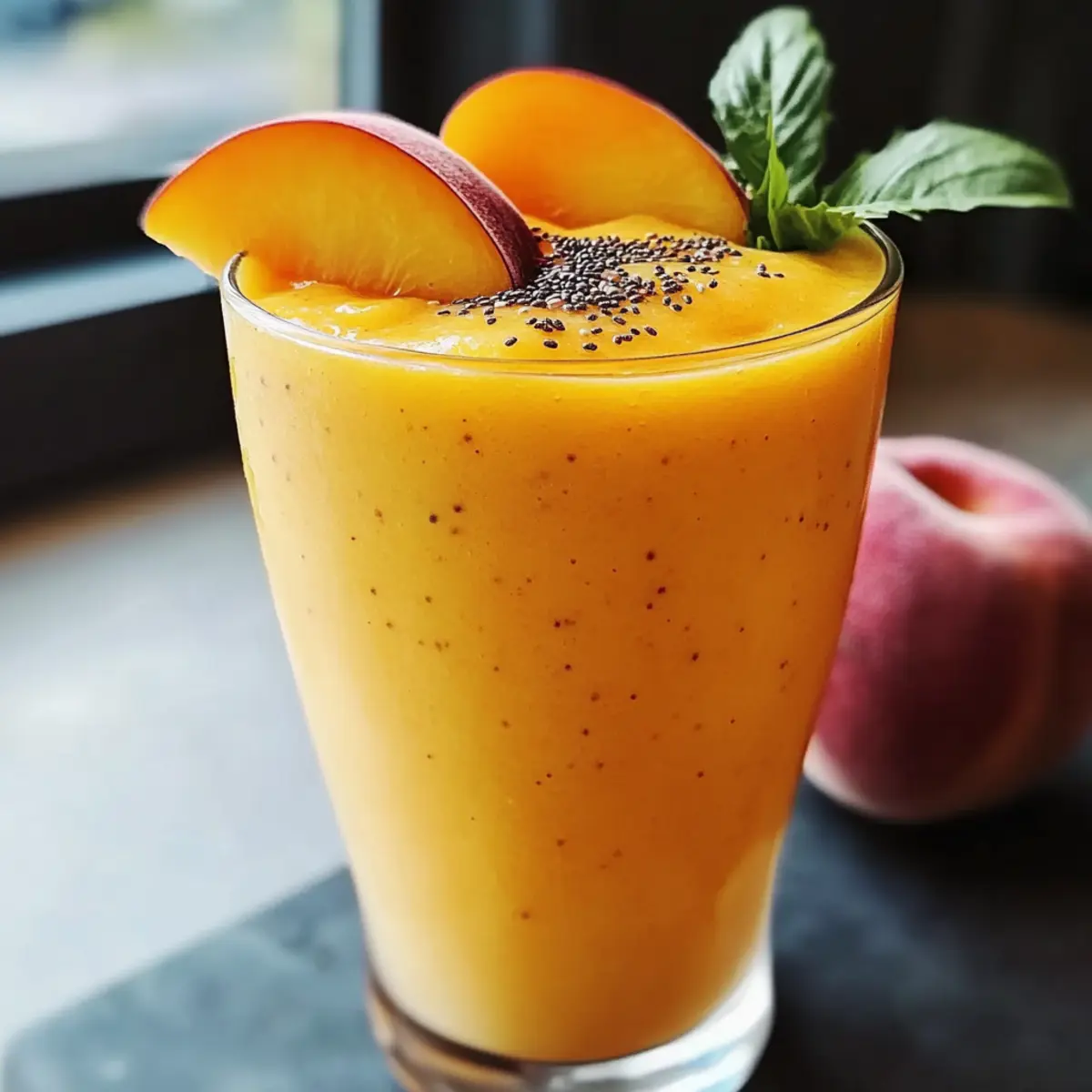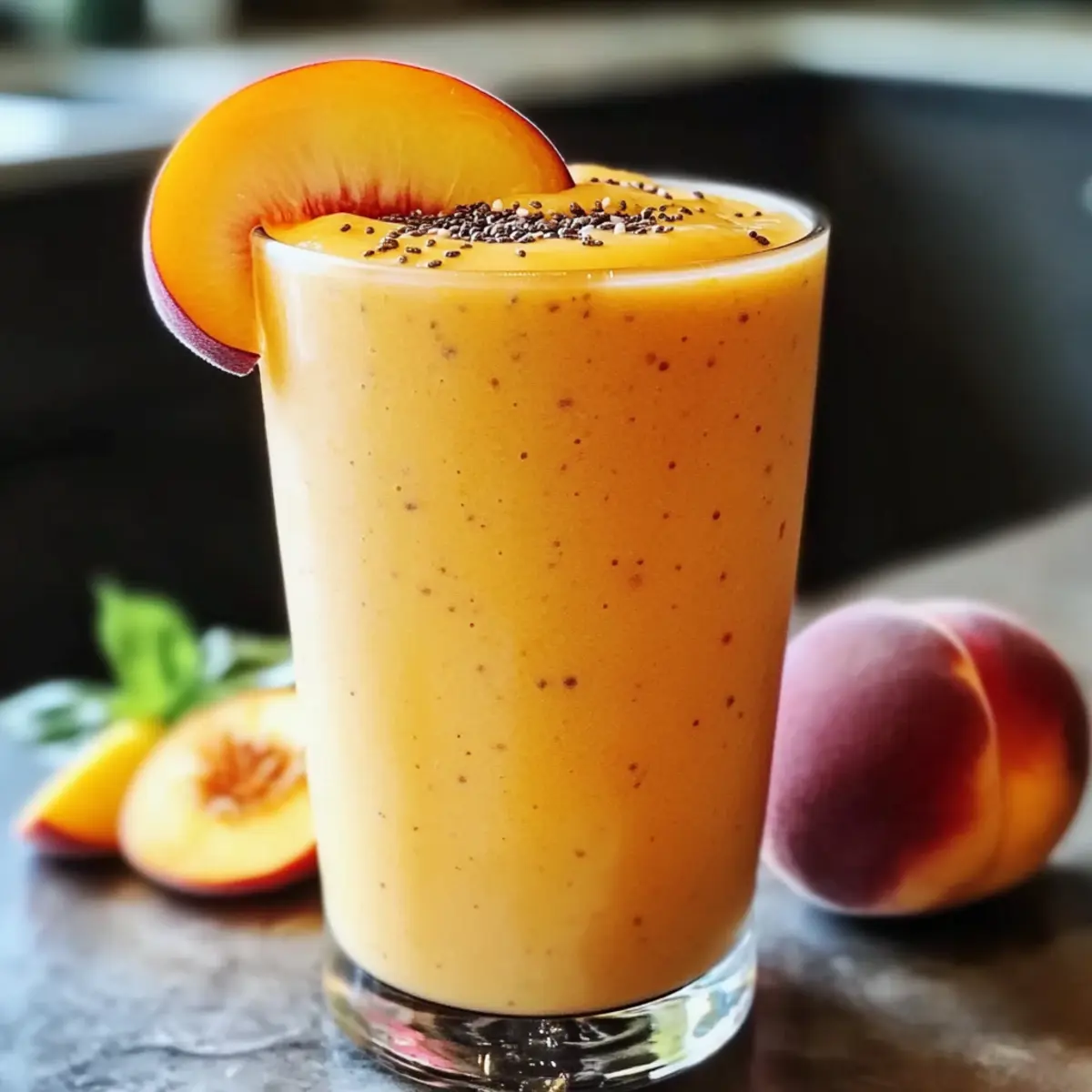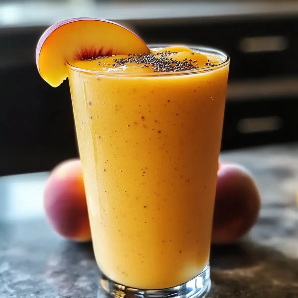 „Ich kann es kaum fassen, wie schnell und einfach ein gesundes Frühstück zubereitet werden kann!“ Dieser Gedanke schießt mir oft durch den Kopf, während ich mein erstes Glas von diesem gefrorenen Pfirsich-Smoothie genieße. Mit seiner cremigen Konsistenz und dem süßen Geschmack frischer Pfirsiche wird dieser Smoothie schnell zum Favoriten an hektischen Morgen. Er punktet nicht nur mit lebendigen Farben, sondern auch mit seiner nährstoffreichen Mischung – perfekt, um den Tag frische und voller Energie zu starten. In wenigen Minuten zauberst du dir nicht nur einen köstlichen Start in den Tag, sondern auch einen erfrischenden Snack für zwischendurch, der garantiert Lust auf mehr macht! Bist du bereit, deinen Mixer zum Einsatz zu bringen und diese einzigartige Geschmackskombination zu entdecken? Warum solltest du diesen Smoothie lieben? Erfrischend und nahrhaft: Der gefrorene Pfirsich-Smoothie ist die perfekte Kombination aus Geschmack und Gesundheit. Schnell zubereitet: In nur wenigen Minuten hast du ein leckeres Frühstück oder einen Snack, der dich mit Energie versorgt. Vielseitig: Du kannst ihn ganz nach deinem Geschmack anpassen, zum Beispiel mit einer Prise Zimt oder einer Handvoll Spinat für zusätzliche Nährstoffe. Cremige Textur: Die Kombination aus griechischem Joghurt und gefrorenen Pfirsichen sorgt für eine unwiderstehlich cremige Konsistenz. Helle Farben: Serviere ihn in klaren Gläsern und lasse seine strahlenden Farben für Freude am Tisch sorgen! Nutze auch Variationen für mehr Abwechslung, um neue Geschmackserlebnisse zu entdecken. Gefrorener Pfirsich-Smoothie Zutaten • Um deine Neugier zu wecken: Hier sind die Zutaten, die du für den perfekten gefrorenen Pfirsich-Smoothie benöt! Für die Basis Gefrorene Pfirsiche – Hauptgeschmacksträger und sorgen für natürliche Süße; frische Pfirsiche können verwendet werden, benötigen jedoch mehr Eis für die richtige Konsistenz. Griechischer Joghurt – Sorgt für Cremigkeit und Protein; jeder Joghurt, ob heiß oder kalt, kann hier nahezu beliebig substituiert werden. Honig – Fügt natürliche Süße hinzu; für eine vegane Option kann er durch Agavensirup ersetzt werden. Mandelmilch – Die flüssige Basis für das Mixen; alternativ können andere Pflanzenmilchsorten wie Hafer- oder Kokosmilch verwendet werden. Optionale Zutaten Protein-Pulver – Für einen zusätzlichen Nährstoff-Schub; ideal für aktive Tage. Spinat – Gibt eine Portion grünes Gemüse; perfekt, um die Nährstoffdichte zu erhöhen. Chiasamen – Ergänzen Ballaststoffe und eine knusprige Textur; sie sind eine großartige Ergänzung für eine gesunde Ernährung. Genieße diese Kombination und bereite dich auf einen erfrischenden, gesunden Genuss vor – dein gefrorener Pfirsich-Smoothie wird es dir danken! Schritt-für-Schritt-Anleitung für Gefrorener Pfirsich-Smoothie Step 1: Zutaten vorbereiten Sammle alle benötigten Zutaten für deinen gefrorenen Pfirsich-Smoothie: gefrorene Pfirsiche, griechischen Joghurt, Honig und Mandelmilch. Stelle sicher, dass die gefrorenen Pfirsiche nicht zu groß sind, um das Mixen zu erleichtern. Wenn du frische Pfirsiche verwendest, schneide sie in kleine Stücke und füge ein paar Eiswürfel hinzu. Step 2: Mixen Gib die gefrorenen Pfirsiche, den griechischen Joghurt, den Honig und die Mandelmilch in einen leistungsstarken Mixer. Stelle den Mixer auf hohe Geschwindigkeit und püriere die Mischung für etwa 30–60 Sekunden, bis sie eine cremige und glatte Konsistenz erreicht hat. Achte darauf, dass keine größeren Brocken übrig bleiben. Step 3: Konsistenz prüfen Überprüfe die Konsistenz deines Smoothies. Wenn du eine dickere Textur wünschst, füge mehr gefrorene Pfirsiche oder ein paar Eiswürfel hinzu und püriere erneut für weitere 30 Sekunden. Ein ideales Ergebnis ist ein dicker, cremiger Smoothie, der perfekt für einen erfrischenden Genuss ist. Step 4: Servieren Gieße den gefrorenen Pfirsich-Smoothie in ein klares Glas, um die leuchtende Farbe zu zeigen. Du kannst ihn nach Belieben mit einer Scheibe Pfirsich oder einer Prise Chiasamen garnieren, um das Aussehen zu verbessern. Genießen solltest du den Smoothie sofort, damit er frisch und cremig bleibt! Variationen des gefrorenen Pfirsich-Smoothies Entdecke die Vielseitigkeit dieses köstlichen Smoothies und passe ihn ganz nach deinem Geschmack an! Mischbeeren: Ersetze gefrorene Pfirsiche durch eine Mischung von gefrorenen Beeren für eine bunte Geschmacksexplosion. Die säuerlichen Beeren setzen frische Akzente und machen den Smoothie aufregend bunt! Tropische Note: Tausche die Pfirsiche gegen gefrorene Mango oder Ananas aus. Diese fruchtigen Alternativen bringen einen Hauch von Urlaub auf deinen Teller und verleihen dem Smoothie einen exotischen Twist. Erdnussbutter: Füge einen Esslöffel Erdnussbutter für eine nussige Tiefe hinzu. Der Geschmack von Erdnüssen ergänzt die Süße und macht den Smoothie nahrhafter, ideal nach dem Sport. Zimt und Vanille: Ein Hauch von Zimt oder Vanilleextrakt verstärkt das Aroma und bringt eine warme Note in den Smoothie. Perfekt für gemütliche Morgen oder kalte Wintertage! Grüne Power: Füge eine Handvoll frischer Spinatblätter hinzu, um die Nährstoffe zu erhöhen, ohne den Geschmack zu verändern. Der Smoothie bleibt köstlich und erhält zusätzlich eine grüne Farbe. Haferflocken: Mische eine kleine Menge Haferflocken unter, um den Smoothie sämiger zu machen. Das sorgt nicht nur für ein herzhaftes Gefühl, sondern gibt dir auch langanhaltende Energie! Du kannst weitere nahrhafte Zutaten ausprobieren, wie zum Beispiel Protein-Pulver, um eine Extraportion Vitalität zu bekommen. Kokosmilch: Tausche die Mandelmilch gegen Kokosmilch aus, um einen cremigen, tropischen Geschmack zu erzielen. Die Kokosnote sorgt für einen neuen Genuss und erweckt Erinnerungen an den Strand. Probiere eine dieser Alternativen, um deinen Lieblingssmoothie noch kreativer zu gestalten! Expert Tips für den Gefrorenen