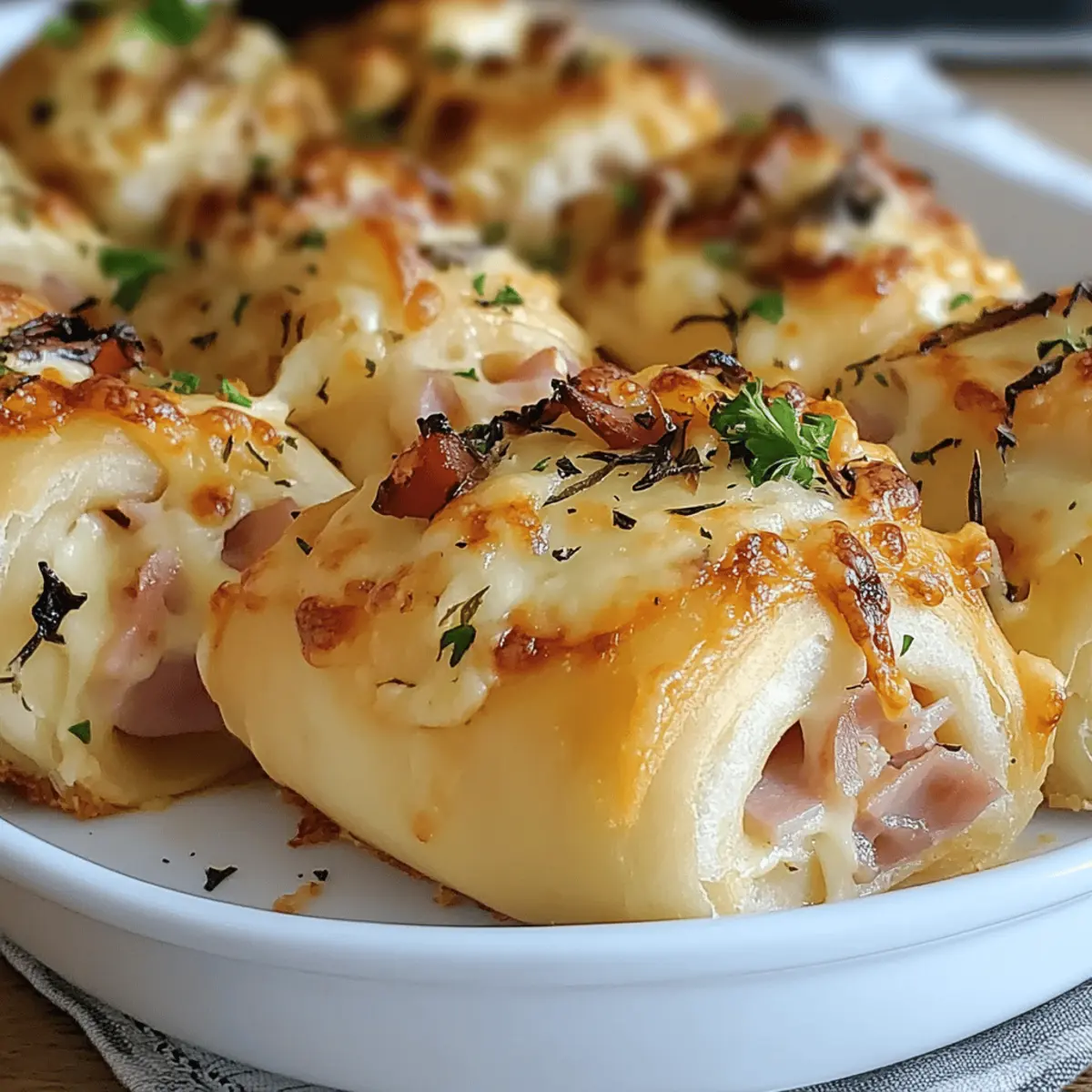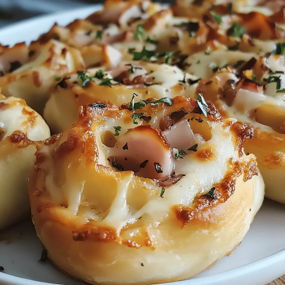 Als ich das erste Mal die herrlichen Duftwellen frisch gebackener Gefüllte Pizza-Röllchen in meine Küche einbrachte, wusste ich sofort, dass diese kleinen Snacks die perfekten Begleiter für jede Gelegenheit sind. Die Kombination aus fluffigem Teig, saftigem Schinken und cremigem Fol Epi Käse sorgt nicht nur für Gaumenfreuden, sondern ist auch kinderleicht zuzubereiten. Diese Röllchen sind ideal für Partys oder einfach für einen gemütlichen Abend zu Hause und bieten eine tolle Möglichkeit, die Kleinen ins Kochen zu involvieren. Mit nur einer kurzen Vorbereitungszeit sind sie der perfekte Snack für spontane Gäste oder filmabende. Wer könnte da widerstehen? Freuen Sie sich darauf, in die Welt der knusprigen, gefüllten Köstlichkeiten einzutauchen – neugierig, wie einfach das geht? Warum werden Sie diese Röllchen lieben? Einfachheit: Die Zubereitung dieser Gefüllten Pizza-Röllchen ist kinderleicht und benötigt nur grundlegende Kochkenntnisse. Vielseitigkeit: Sie können die Füllung ganz nach Ihrem Geschmack anpassen, sei es mit vegetarischen Zutaten oder verschiedenen Käsesorten – Ihrer Kreativität sind keine Grenzen gesetzt! Harmonische Aromen: Die Kombination aus frischem Gemüse, herzhaftem Schinken und schmelzendem Fol Epi Käse sorgt für einen Gaumenschmaus, den Sie nicht vergessen werden. Perfekte Snacks: Ob für Partys oder einfach als Snack für den Fernsehabend – diese Röllchen kommen immer gut an! Familienfreundlich: Involvieren Sie Ihre Kinder beim Zubereiten und lassen Sie sie kreativ werden. So wird Kochen zum gemeinsamen Erlebnis! Zeitersparnis: Diese Röllchen sind schnell gemacht und können sogar unbacken aufbewahrt werden. Ideal, wenn Sie einmal mehr Gäste haben oder eine spontane Feier planen! Werfen Sie auch einen Blick auf unsere anderen Snack-Ideen für noch mehr Inspiration! Gefüllte Pizza-Röllchen Zutaten • Diese Gefüllte Pizza-Röllchen sind nicht nur köstlich, sondern auch einfach zuzubereiten! Für die Füllung 150 g Fol Epi Scheiben Classic – sorgt für cremigen Geschmack; kann auch durch schmelzenden Mozzarella oder Cheddar ersetzt werden. 5 Scheiben Kochschinken – bietet eine proteinreiche Basis; kann durch Truthahn oder ganz weggelassen werden für eine vegetarische Variante. 100 g Lauch (Leek) – verleiht eine milde Zwiebelnote; kann auch mit Frühlingszwiebeln oder Schalotten ersetzt werden. 1 kleine Möhre (Carrot) – bringt Süße und Crunch; kann stattdessen durch Paprika oder Zucchini verwendet werden. 1 mittelgroße Zwiebel (Onion) – sorgt für Tiefe im Geschmack; jede Zwiebelvariante ist geeignet. 2 Knoblauchzehen (freshly chopped Garlic) – verstärkt das Aroma; getrockneter Knoblauch kann ebenfalls verwendet werden. 2 EL Olivenöl (Olive Oil) – ideal zum Anbraten; jedes pflanzliche Öl ist ebenfalls verwendbar. 1 EL Petersilie (sliced Parsley) – frisches Kraut zur Garnierung; optional, aber empfohlen. Salz & Pfeffer – zum Würzen. Für die Zwiebelsauce 300 g Zwiebeln (Onions) – für die Basis der Zwiebelsauce; kann je nach Geschmack angepasst werden. 6 EL Butter – sorgt für reichhaltigen Geschmack in der Sauce. 100 ml Weißwein (White Wine) – fügt der Sauce Tiefe hinzu; kann durch Gemüsebrühe für eine alkoholfreie Option ersetzt werden. Für den Teig 400 g Pizzateig (Pizza Dough) – Basis für die Röllchen; kann gekauft oder selbst gemacht werden. Freuen Sie sich darauf, köstliche Gefüllte Pizza-Röllchen zu genießen! Schritt-für-Schritt-Anleitungen für Gefüllte Pizza-Röllchen Step 1: Ofen vorheizen Heizen Sie den Ofen auf 200°C (392°F) vor. Dies sorgt dafür, dass Ihre Gefüllten Pizza-Röllchen perfekt knusprig werden. Während der Ofen aufheizt, können Sie mit der Vorbereitung der Füllung beginnen, um Zeit zu sparen. Step 2: Zutaten vorbereiten Schneiden Sie den Kochschinken sowie das Gemüse (Lauch, Möhre, Zwiebel, Knoblauch) in kleine Stücke. Eine gleichmäßige Größe der Stücke sorgt für eine gleichmäßige Garung und hilft, dass die Aromen der Gefüllten Pizza-Röllchen perfekt zusammenkommen. Step 3: Füllung anbraten Erhitzen Sie 2 EL Olivenöl in einer Pfanne und sautieren Sie die vorbereiteten Zutaten für 3-4 Minuten, bis das Gemüse weich wird. Würzen Sie die Mischung mit Petersilie, Salz und Pfeffer und lassen Sie sie anschließend abkühlen. Die Aromen entfalten sich in dieser Phase besonders gut. Step 4: Zwiebelsauce zubereiten In einem Topf die 300 g gewürfelten Zwiebeln in 6 EL Butter glasig dünsten. Deglazieren Sie die Pfanne mit 100 ml Weißwein und lassen Sie die Sauce 10 Minuten köcheln. Die Sauce sollte leicht eindicken und die Zwiebeln schön weich sein. Step 5: Pizzateig ausrollen Bestäuben Sie eine Arbeitsfläche leicht mit Mehl und rollen Sie den 400 g Pizzateig dünn aus. Achten Sie darauf, dass der Teig gleichmäßig dick ist, um eine gute Textur für Ihre Gefüllten Pizza-Röllchen zu gewährleisten. Step 6: Füllung verteilen Verteilen Sie die abgekühlte Füllung gleichmäßig über den ausgerollten Teig. Legen Sie die Fol Epi Käse scheiben darauf, um sicherzustellen, dass jede Rolle gut gefüllt ist. Achten Sie darauf, genügend Platz am Rand zu lassen, damit der Teig gut verschlossen werden kann. Step 7: Rollen und schneiden Rollen Sie den Teig von der langen Seite her auf und schneiden Sie den entstandenen langen Roll auf etwa 10 gleich große Stücke. Achten Sie darauf, dass die Füllung nicht herausquillt. Diese Achteilung sorgt für gleichmäßige Backzeiten. Step 8: Röllchen backen Gießen Sie die Zwiebelsauce in eine Auflaufform und platzieren Sie die Röllchen mit der Nahtseite nach oben. Lassen Sie die Röllchen 10 Minuten ruhen, damit sie aufgehen. Dies gibt Ihnen eine luftige Struktur. Step 9: Bepinseln und backen Bestreichen Sie die Röllchen mit geschmolzener Butter und backen Sie sie 25-30 Minuten im vorgeheizten Ofen, bis sie goldbraun und knusprig sind. Beobachten Sie den Backprozess, um die perfekte Farbe zu erreic
