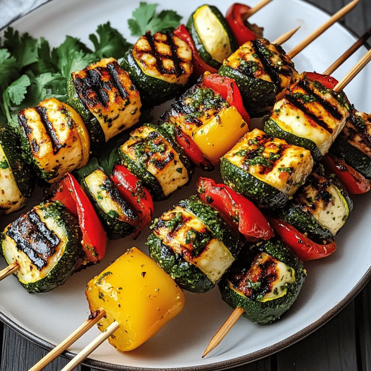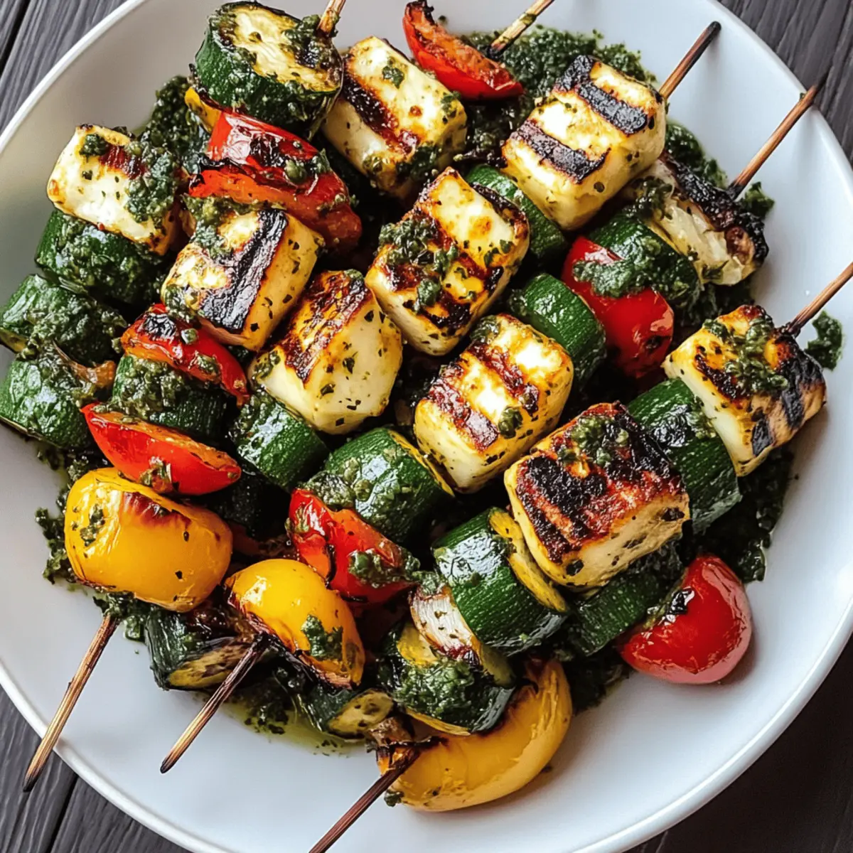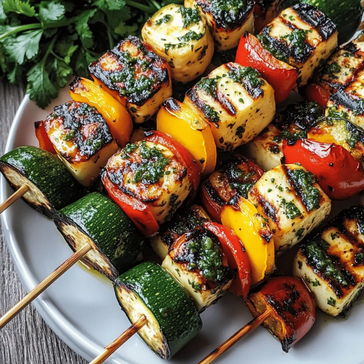 Entdecke die gegrillten Gemüsespieße mit Halloumi und Chimichurri – ein schnelles, gesundes Gericht, das perfekt für Grillabende ist.
