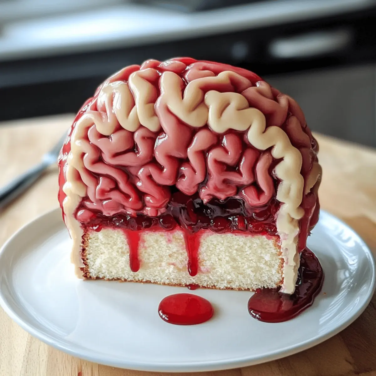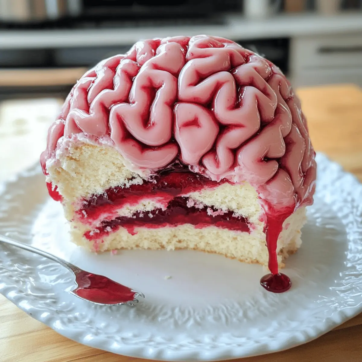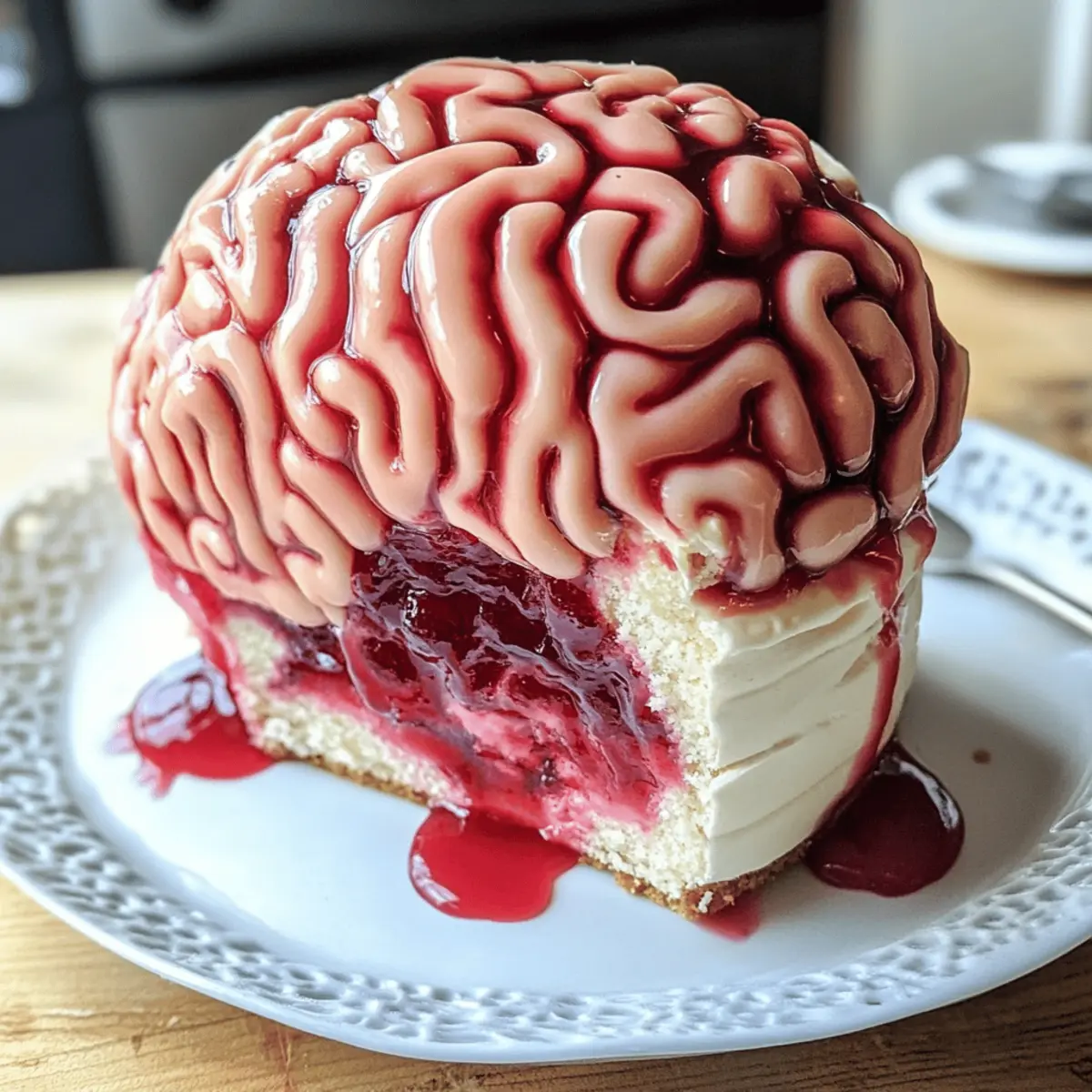 Eine schaurige Überraschung erwartet euch! Mein Gehirn-Kuchen für Halloween wird bei jeder Feier zum gruselig-leckeren Highlight. Mit seiner realistischen Gehirnform und einem Geschmack, der zugleich frisch und reichhaltig ist, zieht er nicht nur Blicke auf sich. Der feuchte, fluffige Vanillekuchen ist gefüllt mit einer herben Schicht selbstgemachtem Johannisbeergelee und von einer cremigen weißen Schokoladenganache umhüllt. Diese außergewöhnliche Kombination macht ihn nicht nur zu einem Augenschmaus, sondern auch zu einem echten Gaumengenuss – ideal für alle, die sich nach etwas Handgemachtem sehnen, anstatt auf schnelle Snacks zurückzugreifen. Bereitet euch darauf vor, eure Gäste bei der nächsten Halloween-Party verblüffen zu lassen! Seid ihr bereit, das Geheimnis hinter diesem schaurigen Meisterwerk zu lüften? Warum ist der Gehirn-Kuchen einzigartig? Einzigartiger Look: Dieser Gehirn-Kuchen ist nicht nur ein Dessert, sondern ein echtes Kunstwerk, das Ihre Gäste mit seiner gruseligen Form sprachlos machen wird. Leckere Kombination: Die harmonische Mischung aus feuchtem Vanillekuchen und tartem Johannisbeergelee sorgt für einen unwiderstehlichen Geschmack, der perfekt zu Halloween passt. Einfache Zubereitung: Mit nur wenigen Schritten können auch Anfänger diesen Kuchen zaubern, wodurch er ideal für jede Feier ist. Vielseitigkeit: Experimentieren Sie mit verschiedenen Füllungen, wie z.B. Johannisbeergelee, um Ihren eigenen Twist hinzuzufügen. Länger haltbar: Sie können den Kuchen im Voraus zubereiten und bei Bedarf auftauen, was ihn perfekt für stressfreie Feiern macht! Seien Sie bereit, bei Ihrer nächsten Halloween-Party alle Herzen zu erobern und genießen Sie dieses schaurig-leckere Dessert! Gehirn-Kuchen Zutaten • Um euer Gruseldessert perfekt zu machen, sind hier die wichtigen Zutaten aufgelistet! Für den Kuchen Eier (Eggs) – sorgen für Struktur und Feuchtigkeit; verwenden Sie Zimmertemperatur-Eier für ein besseres Mischen. Zucker (Sugar) – fügt Süße hinzu und trägt zur Struktur des Kuchens bei; weißer Zucker funktioniert am besten. Butter (Butter) – bringt Reichhaltigkeit und Feuchtigkeit; verwenden Sie ungesalzene Butter für bessere Kontrolle über den Salzgehalt. Gemahlene Mandeln (Ground Almonds) – verleihen einen nussigen Geschmack und verbessern die Feuchtigkeit; ersetzen Sie sie durch Mandelmehl, wenn nicht erhältlich. Mehl T45 (Flour T45) – bietet das Fundament für die Kuchenstruktur; Sie können auch Allzweckmehl verwenden, wenn nötig. Backpulver (Baking Powder) – sorgt für das Aufgehen des Kuchens; stellen Sie sicher, dass es frisch ist. Vanille (Vanilla) – hebt das Geschmacksprofil hervor; verwenden Sie hochwertige Vanilleextrakte oder -paste für mehr Tiefe. Für die Füllung und Dekoration Johannisbeergelee (Red Currant Jelly) – herzhaftes Füllung, die Feuchtigkeit hinzufügt; kann durch andere fruchtige Gelees ersetzt werden. Weiße Schokolade (White Chocolate) & Sahne (Cream) – Zutaten für die Ganache, die Süße und Cremigkeit hinzufügen; verwenden Sie hochwertige Schokolade. Himbeerpüree (Raspberry Purée) – sorgt für eine fruchtige und blutige Note; kann durch andere Fruchtpürees ersetzt werden. Marzipan – für die Dekoration, bringt eine süße, nussige Note; nutzen Sie gekauften oder selbstgemachten. Mit diesen Zutaten ist euer Gehirn-Kuchen für Halloween nicht nur ein visueller, sondern auch ein geschmacklicher Hit! Schritt-für-Schritt-Anleitung für Gehirn-Kuchen für Halloween Step 1: Johannisbeergelee vorbereiten Bereiten Sie zuerst das Johannisbeergelee vor, indem Sie eine Schüssel mit Frischhaltefolie auslegen. Füllen Sie die Schüssel mit dem Johannisbeergelee und stellen Sie sie ins Gefrierfach. Lassen Sie es mindestens 2 Stunden lang gefrieren, bis es fest ist. Dies wird die furchterregende Füllung für Ihren Gehirn-Kuchen sein. Step 2: Den Kuchen backen Heizen Sie den Ofen auf 180°C (356°F) vor und fetten Sie eine 19 cm große Kastenform ein. Trennen Sie die Eier und schlagen Sie die Eiweiße in einer großen Schüssel, bis sie schaumig sind. Fügen Sie nach und nach den Zucker hinzu, bis steife Spitzen entstehen. Mischen Sie die Eigelbe mit der Vanille und heben Sie die trockenen Zutaten und die geschmolzene Butter vorsichtig unter. Gießen Sie den Teig in die vorbereitete Form und backen Sie ihn 50-55 Minuten lang goldbraun. Step 3: Kuchen abkühlen und füllen Nach dem Backen lassen Sie den Kuchen in der Form vollständig abkühlen. Wenn der Kuchen abgekühlt ist, schneiden Sie mit einem Löffel eine Vertiefung in die Mitte, um Platz für das gefrorene Johannisbeergelee zu schaffen. Füllen Sie die Vertiefung mit dem gefrorenen Gelee und drücken Sie vorsichtig den abgeschnittenen Kuchen darüber, um ihn zu versiegeln. Step 4: Ganache vorbereiten Bereiten Sie die weiße Schokoladenganache vor, indem Sie 40 g weiße Schokolade mit genügend Sahne in einer Schüssel über einem Wasserbad schmelzen. Rühren Sie die Mischung, bis sie glatt ist, und lassen Sie sie dann im Kühlschrank abkühlen, bis sie leicht geschlagen werden kann. In der Zwischenzeit schlagen Sie die restliche Sahne, bis sie steif ist, und heben Sie dann vorsichtig die Schokoladenmischung unter. Step 5: Formen und dekorieren Formen Sie den Kuchen nun in eine Gehirnform, indem Sie die Oberseite vorsichtig abrunden. Bedecken Sie den gesamten Kuchen großzügig mit der vorbereiteten Ganache und glätten Sie die Oberfläche. Nehmen Sie das Marzipan und formen Sie es in hirnähnliche Segmente, um eine schaurige Dekoration zu schaffen. Bevor Sie den Kuchen servieren, träufeln Sie etwas Himbeerpüree über die Oberseite für einen blutigen Effekt. Expert Tips für Gehirn-Kuchen Eier richtig wählen: Verwenden Sie Zimmertemperatur-Eier für eine bessere Emulsion und einen gleichmäßigen Teig. Zucker nicht übermixen: Achten Sie darauf, den Zucker langsam hinzuzufügen und das Eiweiß nicht zu lange zu schlagen, um di