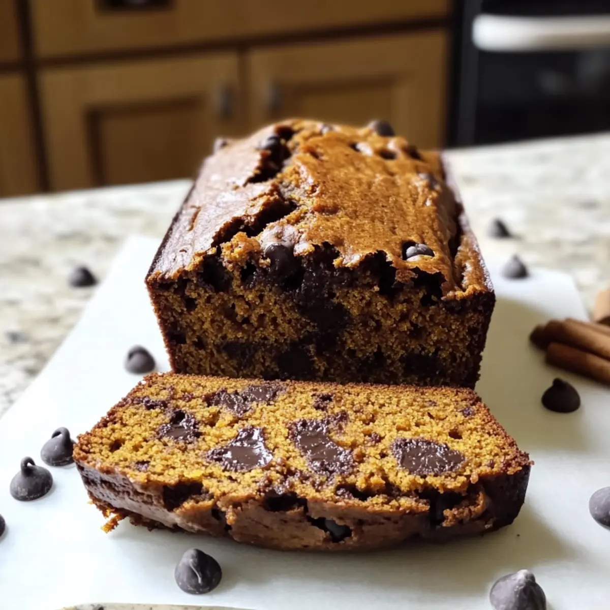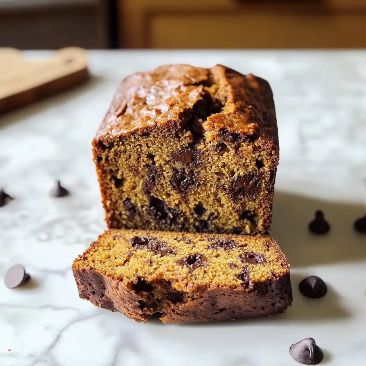 Genießen Sie frisch gemahlenes Kürbis-Schokoladenstückchen-Bananenbrot, perfekt für den Herbst mit köstlichen Aromen.