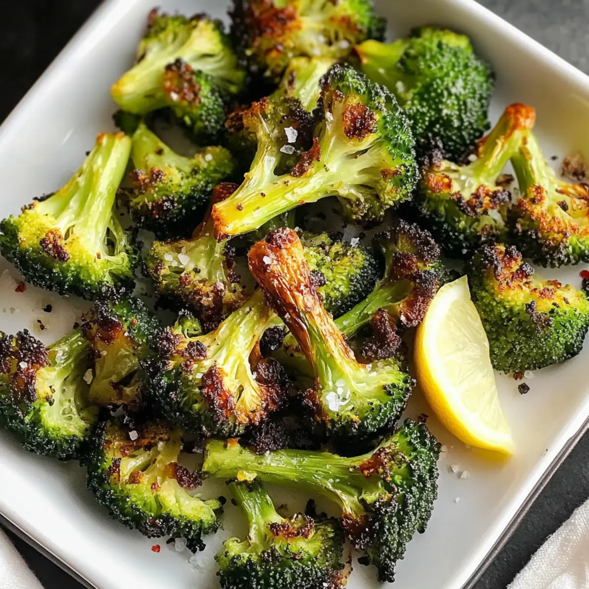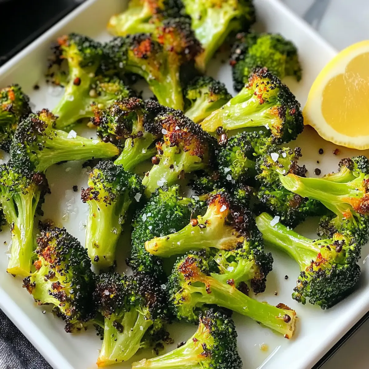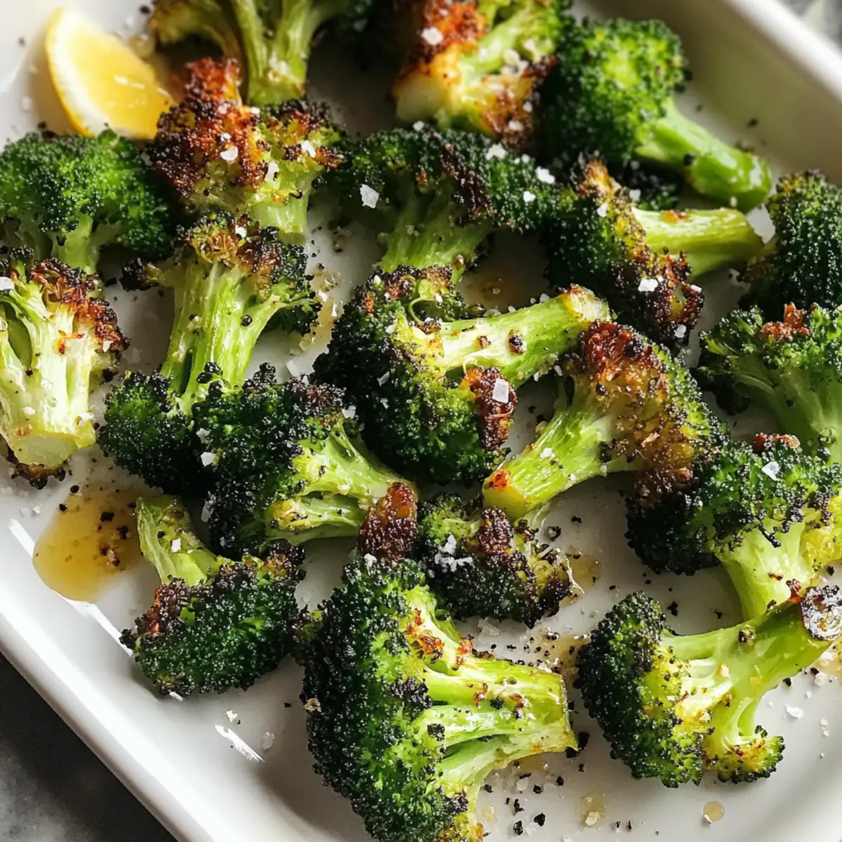 Wusstest du, dass ein einfaches Gemüse zu einem wahren Geschmackserlebnis werden kann? Mein Rezept für Gerösteten Brokkoli zeigt, wie aus diesem unscheinbaren Gemüse ein knuspriger Genuss entsteht, der nicht nur schnell zubereitet ist, sondern auch voller Nährstoffe steckt. In nur 25 Minuten bereitest du mit minimalem Aufwand eine gesunde Beilage zu, die perfekt zu deinen Hauptgerichten passt oder sogar als kleiner Snack für zwischendurch dient. Außerdem kannst du mit ein paar optionalen Zutaten den Geschmack noch weiter aufpeppen! Bist du bereit, das Geheimnis hinter diesem einfachen, aber köstlichen Rezept zu entdecken? Warum wirst du dieses Rezept lieben? Einfache Zubereitung: In nur 25 Minuten kannst du gerösteten Brokkoli zaubern, der toll aussieht und fantastisch schmeckt. Vielseitig: Egal, ob als Beilage zu gegrilltem Hähnchen oder als Snack, dieser Brokkoli passt zu nahezu jedem Gericht! Gesund und nahrhaft: Vollgepackt mit Vitaminen und Ballaststoffen ist er die perfekte Wahl für ernährungsbewusste Genießer. Kreative Variationen: Persönliche Anpassungen wie Knoblauch oder Zitronensaft verleihen dem Gericht einen individuellen Touch. Entdecke auch die Vielfalt mit diesen anderen gesunden Rezepten für abwechslungsreiche Mahlzeiten! Familienfreundlich: Kinder lieben den knusprigen Biss, und dieser Brokkoli könnte sogar die Fast-Food-Müdigkeit vertreiben. Gerösteter Brokkoli Zutaten • Zutaten: Hier sind die Essentials für dein köstliches Gerichte! Brokkoli-Röschen – Hauptbestandteil, der Struktur und Nährstoffe liefert. Achte auf leuchtend grüne Farbe und feste Stiele. Extra-Virgin Olivenöl – Verbessert den Geschmack und fördert die Karamellisierung. Hochwertiges Öl sorgt für die besten Ergebnisse. Meersalz – Wichtig zum Würzen. Nach Geschmack anpassen, um die natürliche Süße des Brokkolis zu betonen. Frisch gemahlener schwarzer Pfeffer – Fügt Tiefe und Wärme hinzu. Kann nach Belieben angepasst werden. Rote Pfefferflocken (optional) – Sorgen für eine würzige Note, ideal für Fans von Schärfe. Frischer Zitronensaft (optional) – Vor dem Servieren drübergepresst, bringt eine frische und spritzige Note. Schritt-für-Schritt-Anleitung für Gerösteten Brokkoli Step 1: Ofen vorheizen Heize deinen Backofen auf 200°C vor und lege ein Backblech mit Backpapier aus. Diese Vorbereitung sorgt dafür, dass dein gerösteter Brokkoli gleichmäßig gart und die Oberfläche schön knusprig wird. Achte darauf, dass der Ofen gut vorgeheizt ist, bevor du das Gemüse hineinlegst, um die besten Röstergebnisse zu erzielen. Step 2: Brokkoli vorbereiten Wasche die Brokkoli-Röschen gründlich und schneide sie in gleichmäßige Stücke. Gib die Röschen in eine große Schüssel und füge eine großzügige Menge Extra-Virgin Olivenöl, Meersalz und frisch gemahlenen schwarzen Pfeffer hinzu. Wenn du etwas Schärfe magst, streue auch rote Pfefferflocken darüber. Diese Kombination wird dem gerösteten Brokkoli einen köstlichen Geschmack verleihen. Step 3: Brokkoli würzen und verteilen Vermische die Brokkoli-Röschen in der Schüssel gründlich, bis sie gleichmäßig mit dem Öl und den Gewürzen bedeckt sind. Verteile die gewürzten Röschen anschließend in einer einzelnen Schicht auf dem vorbereiteten Backblech. Achte darauf, dass genügend Platz zwischen den Röschen bleibt, damit sie beim Rösten knusprig werden und nicht dampfen. Step 4: Brokkoli rösten Schiebe das Backblech in den vorgeheizten Ofen und röste den Brokkoli für 15 bis 22 Minuten. Nach etwa 15 Minuten überprüfst du den Fortschritt: Die Röschen sollten an den Rändern goldbraun und knusprig sein, während sie in der Mitte zart bleiben. Rühre sie eventuell einmal während des Röstens um, um eine gleichmäßige Röstung zu gewährleisten. Step 5: Zitrone hinzufügen Wenn der Brokkoli die perfekte Knusprigkeit erreicht hat, nimm das Backblech aus dem Ofen. Presse kurz vor dem Servieren frischen Zitronensaft über die heißen Röschen, um eine erfrischende und spritzige Note hinzuzufügen. Dies wird deine Aromen noch verstärken und den gerösteten Brokkoli besonders lecker machen. Vorbereitung für Gerösteten Brokkoli im Voraus Egal, wie beschäftigt dein Tag ist, mit etwas Planung kannst du den perfekten gerösteten Brokkoli für deine Wochenendmahlzeiten vorbereiten! Du kannst die Brokkoli-Röschen bis zu 24 Stunden im Voraus waschen, schneiden und mit Olivenöl, Salz und Pfeffer marinieren. Bewahre sie in einem luftdichten Behälter im Kühlschrank auf, um die Frische zu bewahren. Wenn du bereit bist, die Röschen zu rösten, heize den Ofen auf 200°C vor, verteile die Röschen auf einem Backblech und röste sie 15 bis 22 Minuten lang, bis sie schön knusprig sind. Um die Qualität zu erhalten, vermeide es, die Röschen vor dem Rösten zu lange im Kühlschrank zu lassen, denn dadurch könnten sie an Knusprigkeit verlieren. Mit dieser cleveren Planung zauberst du in kürzester Zeit ein köstliches und gesundes Beilagengericht! Lagerungstipps für Gerösteten Brokkoli Raumtemperatur: Der geröstete Brokkoli sollte idealerweise frisch serviert werden, um die Knusprigkeit zu genießen. Bei Zimmertemperatur hält er sich jedoch nur bis zu 1 Stunde. Kühlschrank: Bewahre den Brokkoli in einem luftdichten Behälter im Kühlschrank auf, wo er bis zu 3 Tage frisch bleibt. So bleibt die Textur und der Geschmack erhalten. Einfrieren: Um gerösteten Brokkoli länger aufzubewahren, kann er in einem luftdichten Behälter oder einer Gefrierbeutel eingefroren werden. Er hält sich bis zu 3 Monate, kann aber beim Auftauen an Knusprigkeit verlieren. Aufwärmen: Für das beste Ergebnis nimm den Brokkoli aus dem Kühlschrank und erwärme ihn im Ofen bei 180°C für etwa 10-15 Minuten, um die ursprüngliche Knusprigkeit wiederherzustellen. Expert Tips für Gerösteten Brokkoli Nicht überladen: Achte darauf, das Backblech nicht zu überladen. So verhinderst du, dass der Brokkoli dampft und nicht schön