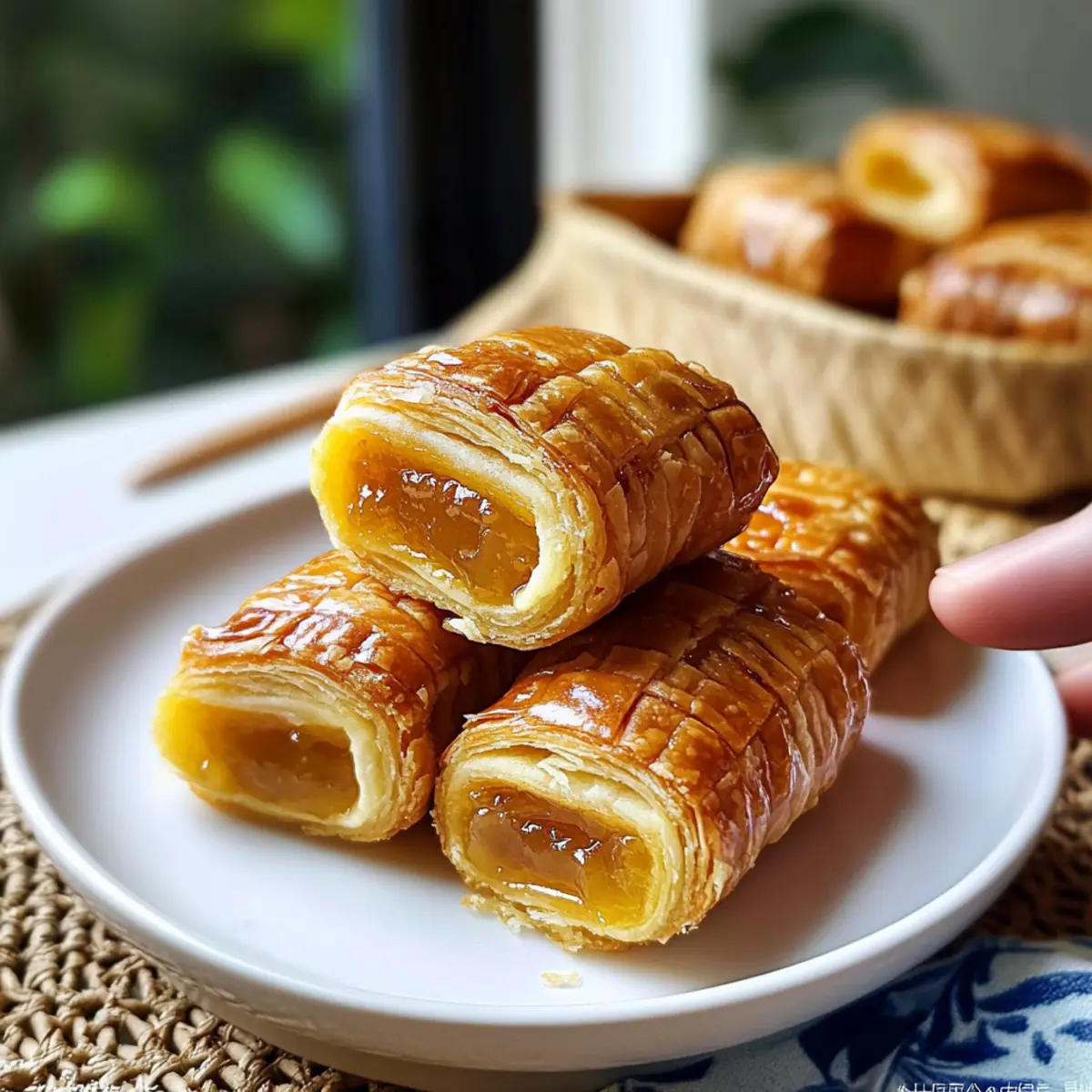 “Eine unwiderstehliche Kombination aus butterigem Teig und fruchtiger Süße erwartet dich mit diesen köstlichen Gerollten Ananasplätzchen! Als ich das erste Mal den zarten, goldbraunen Biss dieser Nascherei genoss, wusste ich sofort, dass sie ein unverzichtbarer Teil meiner Festtagsküche werden würden. Diese Nastar Gulung sind nicht nur leicht zuzubereiten, sie sind auch der perfekte Snack für deine nächsten Feiern. Stelle dir vor, wie du sie warm aus dem Ofen nimmst und den köstlichen Duft von frisch gebackenem Teig und reifer Ananas in deiner Küche verbreitest. Ideal als selbstgemachtes Geschenk oder einfach zum Genießen – lass dich von der harmonischen Aromenvielfalt mitreißen. Bist du bereit, diese kleinen Köstlichkeiten selbst auszuprobieren?” Warum sind diese Ananasplätzchen ein Muss? Einfachheit: Die Zubereitung dieser gerollten Ananasplätzchen ist kinderleicht, sodass auch Kochanfänger sie problemlos hinbekommen. Verführerische Aromen: Die perfekte Balance aus süßer Ananas und buttrigem Teig lässt sie im Mund zergehen. Festliche Vielseitigkeit: Egal ob Weihnachten, Eid oder einfach nur als leckerer Snack – diese Törtchen passen immer! Ideal für Geschenke: Verpackt in einer schönen Box sind sie ein tolles selbstgemachtes Geschenk, das jeden erfreut. Haltbarkeit: Diese Plätzchen lassen sich bis zu drei Wochen lagern, was sie ideal für die Vorbereitungen macht. Lass dich von der Einfachheit und dem Geschmack überraschen! Gerollte Ananasplätzchen Zutaten Für den Teig – Ungesalzene Butter – sorgt für einen reichen, buttrigen Geschmack; verwende hochfette Butter wie Wijsman für das beste Ergebnis. – Puderzucker – liefert die nötige Süße und sorgt für eine feine Teigstruktur. – Eidotter – bindet den Teig und verleiht ihm zusätzliches Aroma. – Vanilleextrakt – intensiviert das Geschmacksprofil und gibt eine warme Note. – Kuchenmehl – die Hauptzutat für die Struktur, sorgt für eine zarte Krume. – Maisstärke – macht den Teig leicht und sorgt für eine krümelige Textur. – Milchpulver – fügt Cremigkeit und geschmackliche Tiefe hinzu. – Salz – balanciert die Süße und hebt den Geschmack hervor. Für die Füllung – Ananaspaste – die süß-säuerliche Füllung; am besten hausgemacht für den optimalen Geschmack. Für den Glanz – Eidotter (für den Ei-Wasch) – sorgt für die glänzende Oberfläche der Plätzchen. – Pflanzenöl – erleichtert das Mischen der Ei-Wasch-Zutaten. Diese gerollten Ananasplätzchen sind nicht nur lecke r, sondern auch einfach zuzubereiten – ideal für jeden Festtag! Schritt-für-Schritt-Anleitungen für Gerollte Ananasplätzchen Step 1: Ananasfüllung vorbereiten Portioniere die Ananaspaste in etwa 1 Teelöffel große Portionen und forme sie zu Zylindern. Lege diese gefüllten Zylinder beiseite, während du den Teig zubereitest. Achte darauf, dass die Füllung gleichmäßig geformt ist, damit die Plätzchen später gleichmäßig gebacken werden können. Step 2: Feuchte Zutaten mischen In einer großen Schüssel vermengst du die ungesalzene Butter mit dem Puderzucker. Schlage die Mischung gut durch, bis sie cremig und leicht ist. Füge dann das Eigelb und den Vanilleextrakt hinzu und rühre alles kräftig um, bis die Zutaten gut verbunden sind. Step 3: Trockene Zutaten kombinieren Siebe das Kuchenmehl, die Maisstärke, das Milchpulver und das Salz in die Schüssel mit den feuchten Zutaten. Mische die trockenen Komponenten langsam unter die Butter-Zucker-Mischung, bis ein gleichmäßiger Teig entsteht. Achte darauf, dass keine Klumpen zurückbleiben, um eine zarte Textur der gerollten Ananasplätzchen zu gewährleisten. Step 4: Teigstreifen formen Nimm kleine Portionen des Teigs und presse sie gleichmäßig in eine Nastar-Form, um Streifen zu formen. Diese Streifen sollten gleichmäßig dick sein, damit die Plätzchen gleichmäßig backen und die Füllung gut eingekapselt wird. Achte darauf, die Form nicht zu überfüllen. Step 5: Füllung umschließen Nimm einen Teigstreifen und lege einen Ananaszylinder an das Ende. Rolle den Teig vorsichtig auf, um die Füllung komplett einzuschließen, und drücke die Enden gut zusammen, damit sie beim Backen nicht aufgehen. Lege die gerollten Ananasplätzchen mit der Nahtseite nach unten auf ein Backblech. Step 6: Backen Heize den Ofen auf 150°C vor und backe die Plätzchen für etwa 18-20 Minuten. Die Oberfläche sollte leicht goldbraun sein, während sich der köstliche Duft von frisch gebackenem Teig in deiner Küche verbreitet. Achte darauf, die Plätzchen im Auge zu behalten, damit sie nicht zu dunkel werden. Step 7: Ei-Wasch vorbereiten Mische in einer kleinen Schüssel das Eigelb mit einem Schuss Pflanzenöl, um eine glatte Ei-Wasch für den Glanz der Plätzchen zu erhalten. Nach dem ersten Backen, streiche die Ei-Wasch gleichmäßig auf die Oberseite der gerollten Ananasplätzchen, bevor du sie für weitere 10-15 Minuten in den Ofen zurückstellst. Step 8: Abkühlen und aufbewahren Sobald die Plätzchen eine schöne goldbraune Farbe angenommen haben, nimm sie aus dem Ofen und lasse sie vollständig auf einem Kuchengitter abkühlen. Bewahre die abgekühlten gerollten Ananasplätzchen in einem luftdichten Behälter auf, damit sie ihre Frische und ihren Geschmack bis zu drei Wochen bewahren können. Variationen & Alternativen für Gerollte Ananasplätzchen Lass deiner Kreativität freien Lauf und passe diese köstlichen Plätzchen nach deinem Geschmack an! Andere Früchte: Verwende statt Ananaspaste Apfel- oder Mangopüree für neue Geschmäcker. Diese Optionen verleihen deinen Plätzchen eine aufregende Fruchtigkeit und sorgen für Abwechslung in deiner Keksdose. Nussiger Twist: Füge gehackte Nüsse wie Mandeln oder Walnüsse zur Füllung hinzu, um zusätzliche Textur und Geschmack zu erzeugen. Die Kombination aus der weichen Füllung und dem Crunch der Nüsse ist einfach unwiderstehlich. Schokoladengeschmack: Mische etwas Kakaopulver