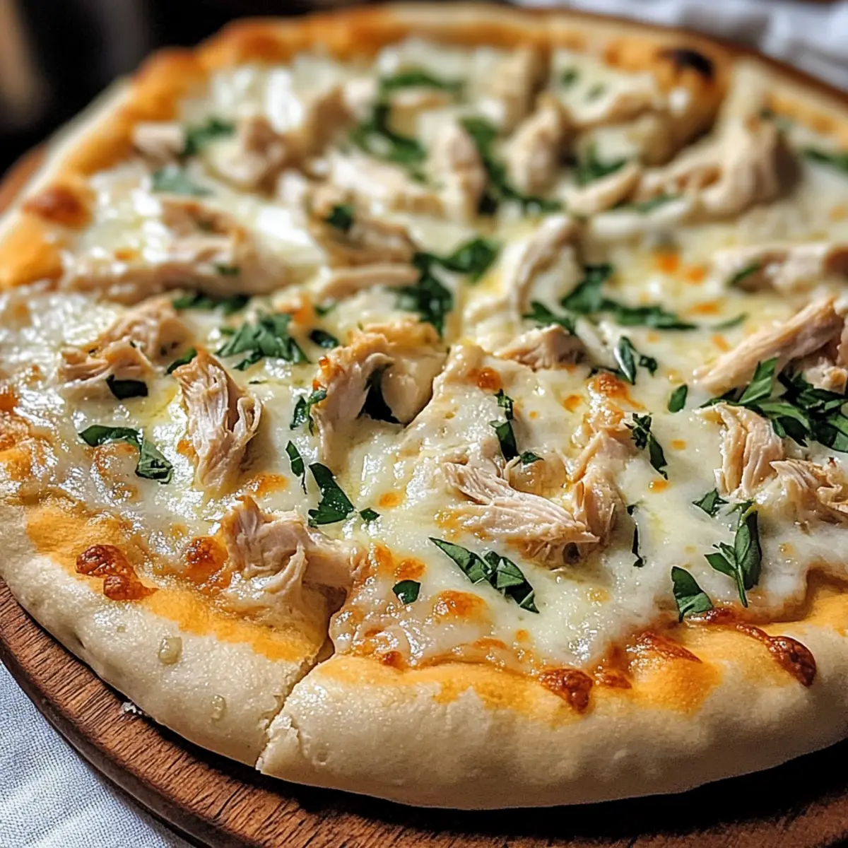 Die Küche wird erleuchtet von dem verführerischen Duft gerösteten Knoblauchs, der sich mit dem köstlichen Aroma von frisch gebackenem Brot vereint. Diese Gerösteter Knoblauch Weiße Hähnchen Pizza ist nicht nur ein Fest für die Sinne, sondern auch ein schnelles und einfaches Rezept, das jeden am Tisch begeistern wird. Mit einer cremigen weißen Sauce, zartem Hähnchen und schmelzendem Mozzarella zaubert sie ein Stück Komfort nach Hause – perfekt für entspannte Abende oder gesellige Zusammenkünfte. Und das Beste? Du kannst sie leicht nach deinem Geschmack anpassen, vom glutenfreien Teig bis zu zusätzlichen Gemüsen. Bist du bereit, deine Liebsten mit dieser herzhaften Pizza zu verwöhnen? Warum ist diese Pizza ein Muss? Einfachheit: Die Zubereitung ist unkompliziert und benötigt nur grundlegende Kochkünste, sodass du schnell ins Genussvergnügen eintauchen kannst. Vielseitigkeit: Du kannst diese Pizza nach Belieben anpassen, sei es mit glutenfreiem Teig oder zusätzlichen Toppings wie frischem Gemüse. Reichhaltiger Geschmack: Der geröstete Knoblauch kombiniert mit cremigem Mozzarella sorgt für ein unvergessliches Geschmackserlebnis, das dich jeden Bissen lieben lässt. Perfekt für jeden Anlass: Ob für das Familienessen oder einen Abend mit Freunden, diese Pizza wird garantiert zum Star deines Buffets. Schnell und praktisch: Mit der Verwendung von Fertigteig gelingt dir die Pizza in kürzester Zeit, ideal für Alltagsabende oder spontane Gäste. Gerösteter Knoblauch Weiße Hähnchen Pizza Zutaten • Für die Soße Gerösteter Knoblauch – verleiht der Pizza einen reichen, milden Geschmack; wähle feste Knoblauchknollen mit intakten Häutchen für das beste Röstergebnis. Butter (2 Esslöffel) – sorgt für Cremigkeit in der Soße; als Alternativen kannst du Olivenöl für eine milchfreie Option verwenden. Mehl (2 Esslöffel) – dient als Basis für die Soße; wenn du glutenfrei bist, ersetze es durch eine glutenfreie Mehlmischung. Milch (1 Tasse) – wird langsam hinzugefügt, um die Soße zu verdicken; nutze Mandelmilch oder andere pflanzliche Milch für eine milchfreie Variante. • Für den Belag Zerfleddertes Hähnchen (2 Tassen) – idealerweise von einem Rotisserie-Hähnchen für zusätzlichen Geschmack; du kannst auch gekochtes, zerfleddertes Truthahnfleisch verwenden. Mozzarella-Käse (2 Tassen) – sorgt für Cremigkeit und die perfekte schmelzende Textur; frischer Mozzarella sorgt für einen besonders vollen Geschmack. Pizzateig (1 Packung) – der Fertigteig erleichtert die Zubereitung; für glutenfreie Optionen gibt es auch entsprechenden Teig. Frische Kräuter (1/4 Tasse, Thymian, Petersilie) – verbessern Geschmack und Aussehen; probiere Basilikum oder Oregano für eine alternative Geschmacksrichtung. Diese Gerösteter Knoblauch Weiße Hähnchen Pizza bringt ein Stück Heimat und Gemütlichkeit auf deinen Tisch. Lass es dir schmecken! Schritt-für-Schritt-Anleitung für Gerösteter Knoblauch Weiße Hähnchen Pizza Step 1: Ofen vorheizen Heize den Ofen auf 245°C (475°F) vor. Diese hohe Temperatur sorgt dafür, dass der Pizzateig schön knusprig wird. Während der Ofen aufheizt, kannst du alle Zutaten bereitlegen, damit du gut vorbereitet in den nächsten Schritten durchstarten kannst. Step 2: Soße zubereiten Schmelze in einem kleinen Topf 2 Esslöffel Butter bei mittlerer Hitze. Sobald die Butter geschmolzen ist, füge den gerösteten Knoblauch hinzu und lasse ihn für etwa 1 Minute sautieren, bis er aromatisch und leicht goldbraun ist. Dies verleiht der weißen Soße einen köstlichen, reichhaltigen Geschmack. Step 3: Roux herstellen Streue 2 Esslöffel Mehl in den Topf und rühre kräftig um, bis eine glatte Paste entsteht. Lass den Roux etwa 1-2 Minuten köcheln, bis er leicht goldfarben wird. Füge dann langsam 1 Tasse Milch hinzu und whisk bis die Soße dicklich wird und Blasen wirft. Diese cremige Basis wird der Star der Gerösteter Knoblauch Weiße Hähnchen Pizza. Step 4: Pizzateig vorbereiten Roll den Fertigteig auf einer leicht bemehlten Fläche aus, bis er einen Durchmesser von etwa 30 cm erreicht. Lege den ausgerollten Teig auf einen Pizzastein oder ein mit Backpapier ausgelegtes Backblech. Dieser Schritt ist einfach und sorgt dafür, dass die Pizza gleichmäßig backt und alle Köstlichkeiten gut zur Geltung kommen. Step 5: Pizza belegen Verteile die cremige Knoblauchsoße, die du zuvor zubereitet hast, gleichmäßig über den Pizzateig. Danach verteile das zerfledderte Hähnchen gleichmäßig über die Soße und streue schließlich 2 Tassen Mozzarella-Käse darüber. Achte darauf, alle Ecken des Teigs zu belegen, damit jede Ecke köstlich wird. Step 6: Pizza backen Schiebe die belegte Pizza in den vorgeheizten Ofen. Backe sie für 12-15 Minuten, bis der Käse blubbert und der Rand der Pizza goldbraun ist. Halte die Pizza während des Backens im Auge, um ein Überbacken zu vermeiden. Der verführerische Duft, der aus dem Ofen strömt, wird dir sicherlich das Wasser im Mund zusammenlaufen lassen. Step 7: Pizza anrichten Nehme die Pizza aus dem Ofen und lasse sie etwa 5 Minuten abkühlen, bevor du sie anschneidest. Garniere die Pizza mit frischen Kräutern wie Thymian oder Petersilie für einen zusätzlichen Farb- und Geschmacksakzent. Schneide sie in Stücke und serviere deine köstliche Gerösteter Knoblauch Weiße Hähnchen Pizza warm. Variationen & Alternativen für Gerösteter Knoblauch Weiße Hähnchen Pizza Lass deiner Kreativität freien Lauf und passe dieses Rezept ganz nach deinem Geschmack an! Glutenfrei: Verwende glutenfreien Pizzateig, um eine köstliche, verträgliche Variante zu kreieren. So kann jeder genießen! Gemüseboost: Füge sautierte Champignons oder frischen Spinat hinzu, um mehr Farbe und Nährstoffe zu integrieren. Diese einfachen Zutaten sorgen für extra saftige Bisse. Rauchige Note: Ergänze die Pizza mit geräuchertem Gouda oder füge etwas geräuchertes Paprikapulver hinzu. Diese Variationen verleihen dein