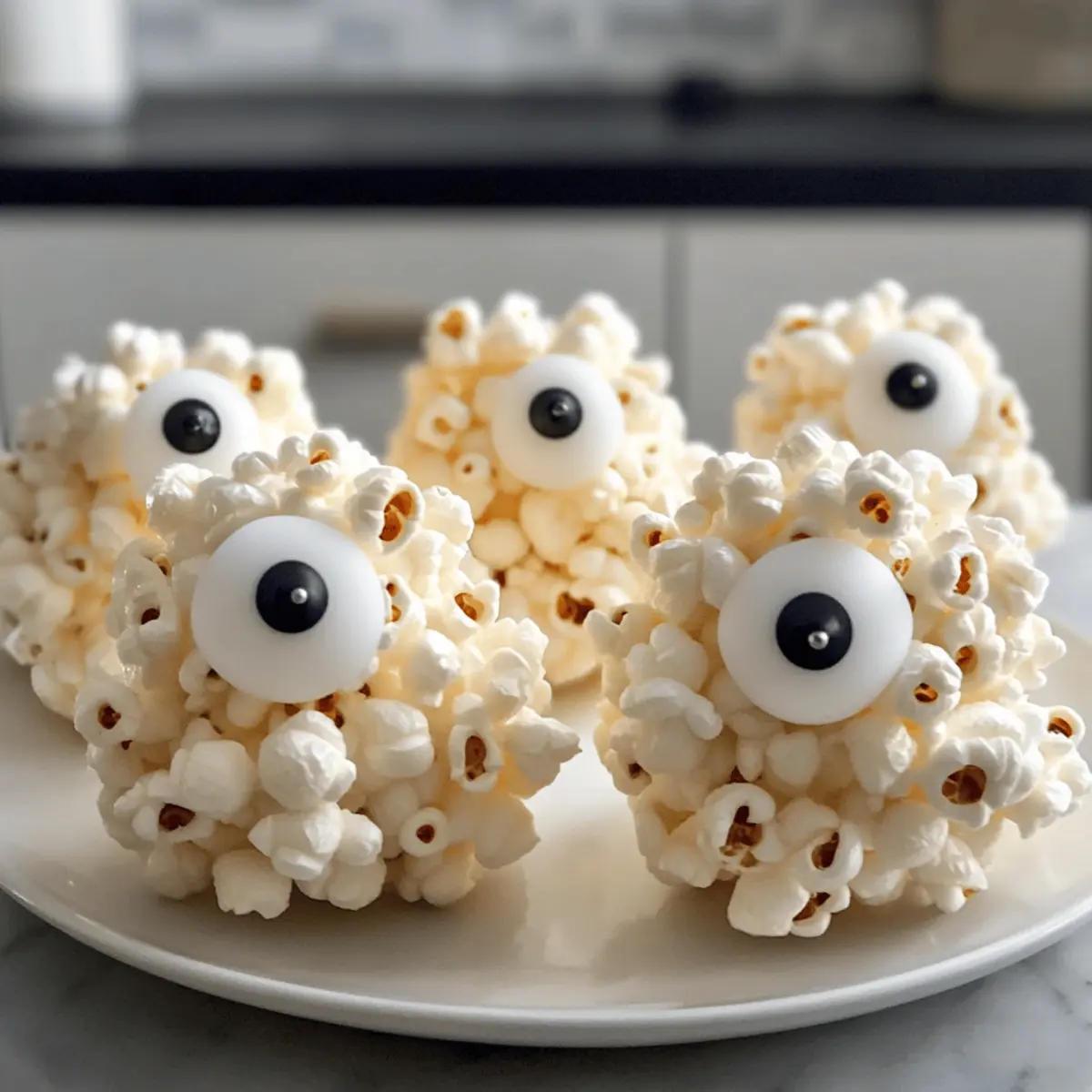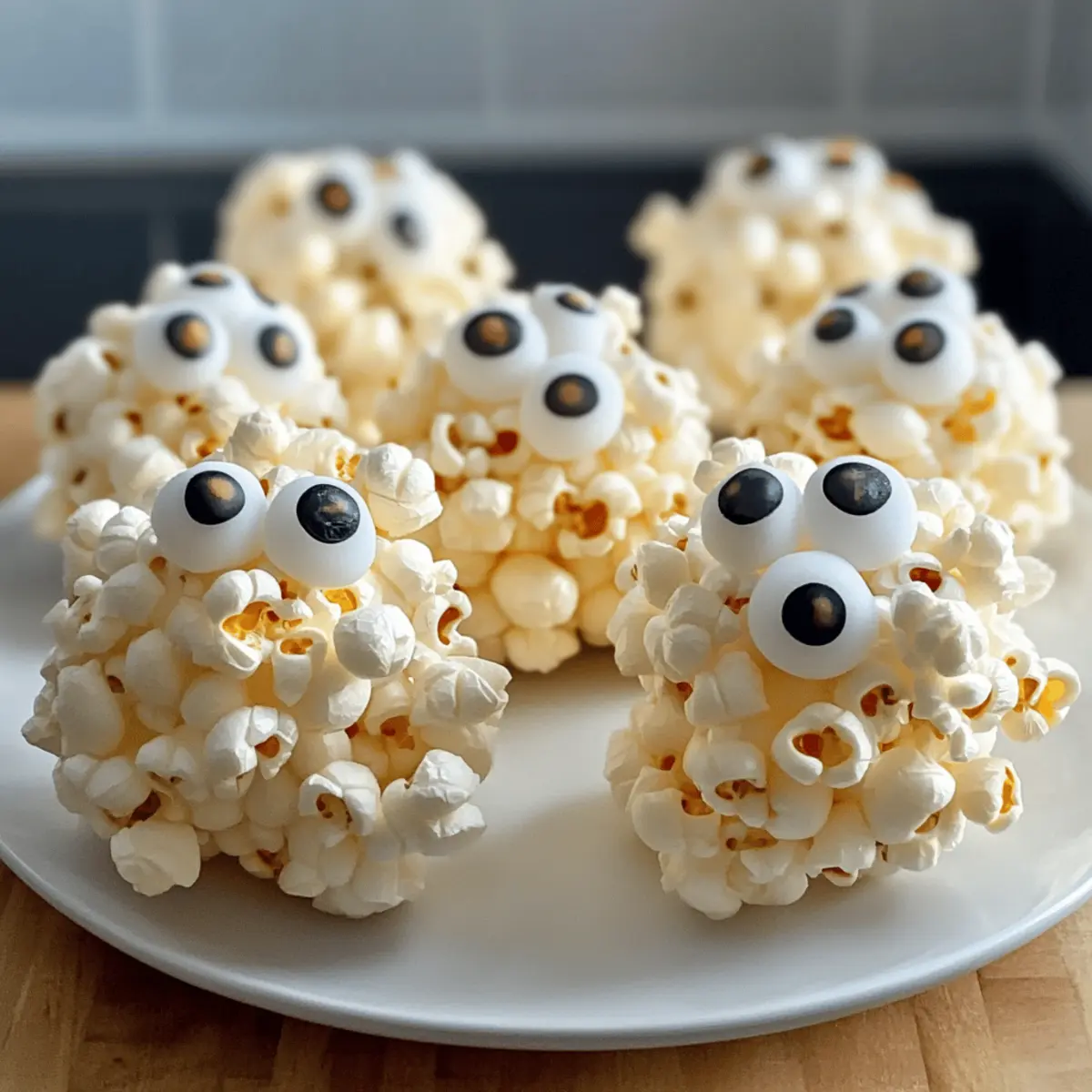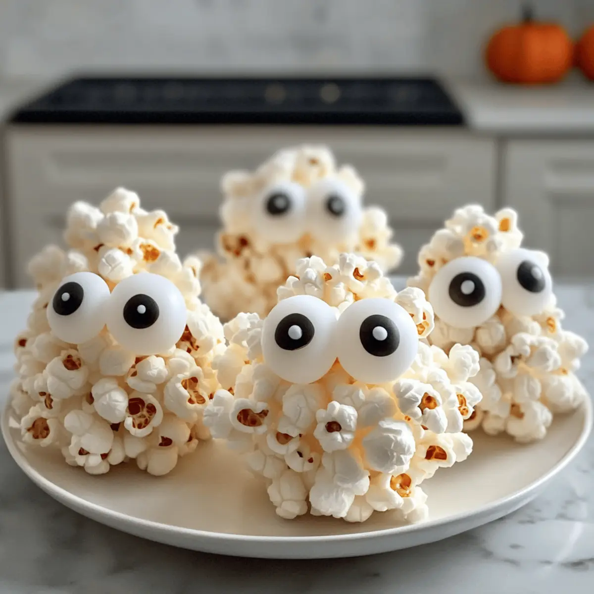 Gespenster-Popcornbälle sind köstliche Snacks, die perfekt für jede Halloween-Party sind.