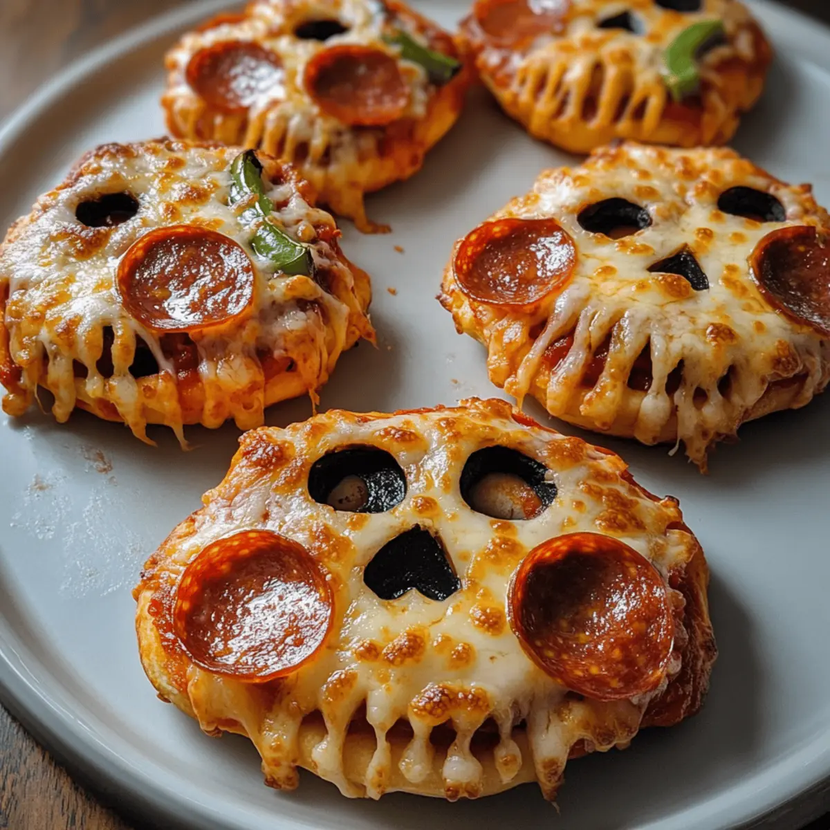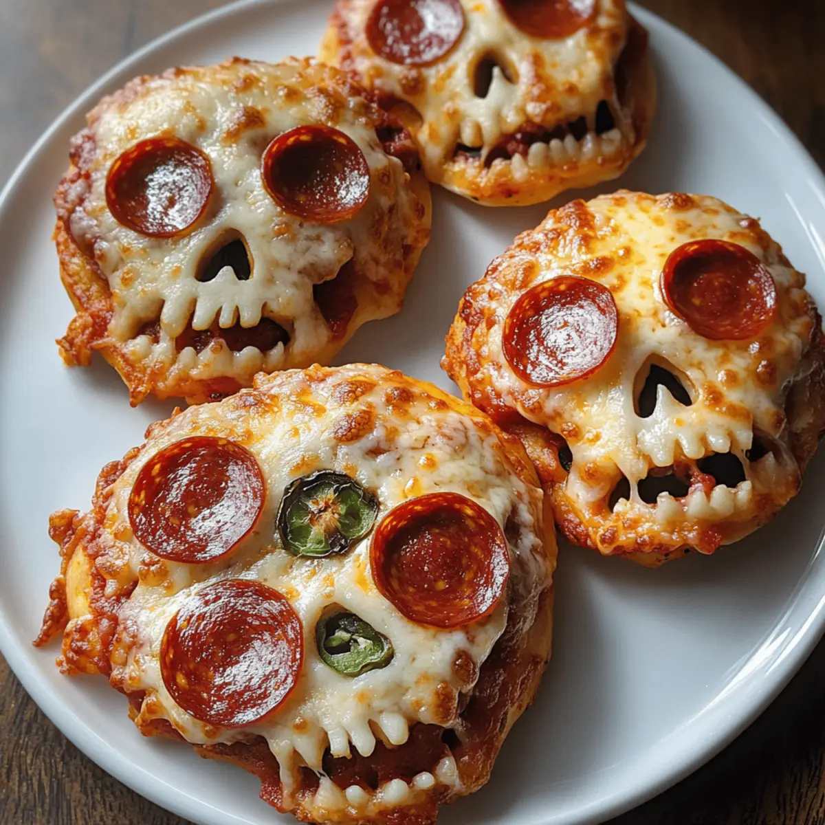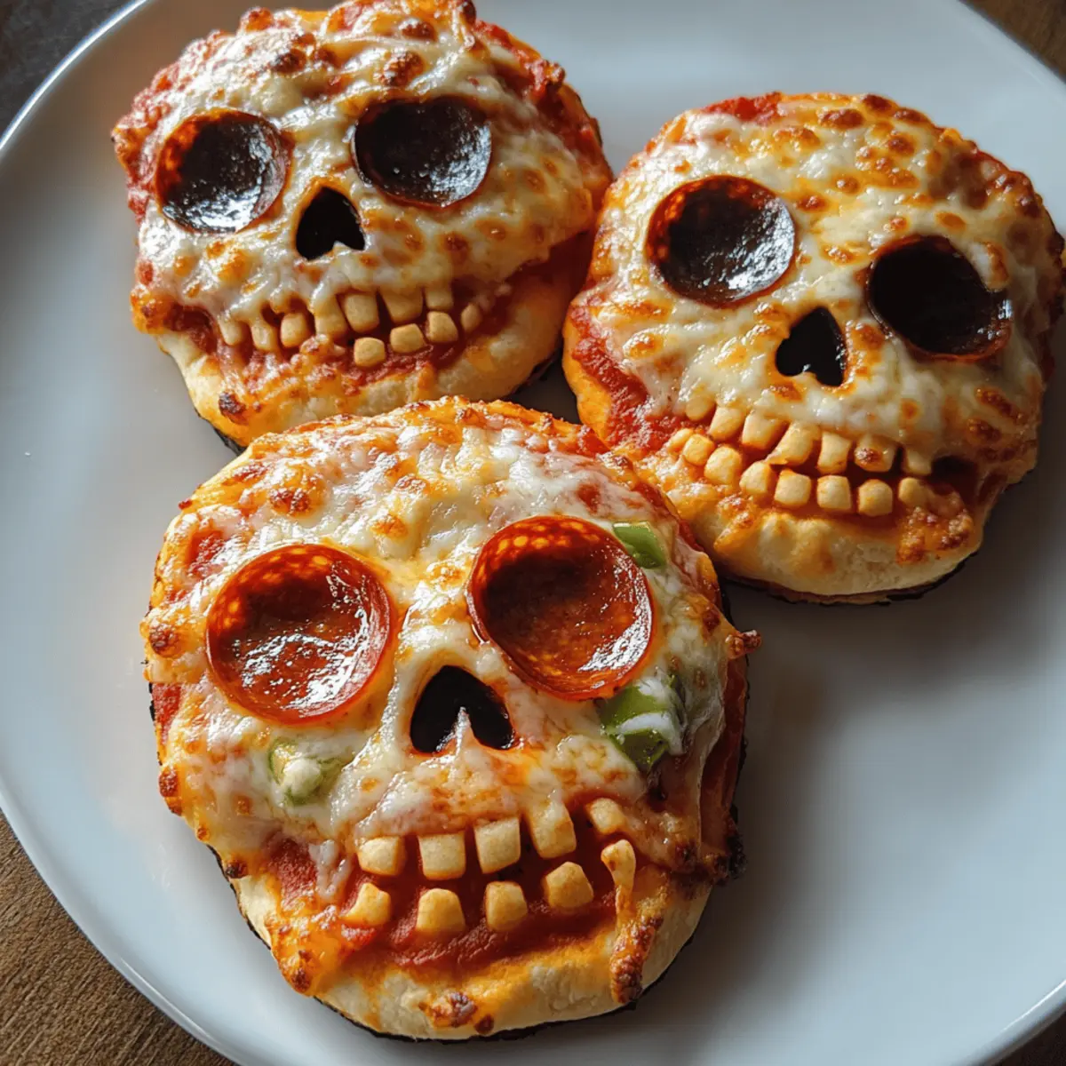 Als ich letztens in den Geschäften nach herbstlichen Leckereien stöberte, fiel mein Blick auf die bunten Halloween-Dekorationen, die überall verteilt waren. Dabei kam mir die Idee für meine Gespenstischen Halloween-Pizza-Schädel. Diese kreative und unterhaltsame Variante der klassischen Pizza ist nicht nur ein echter Hingucker, sondern auch einfach zuzubereiten! Die Schädel sind gefüllt mit geschmolzenem Käse und deinen Lieblingsbelägen, die zusammen einen köstlichen Snack für Halloween-Partys oder Familientreffen ergeben. Außerdem sind sie so anpassbar, dass jeder etwas nach seinem Geschmack findet – ob vegetarisch oder herzhaft. Du wirst erleben, wie der krustige Biss und die leckeren Füllungen deine Gäste begeistern werden. Neugierig, wie du diese schaurigen Köstlichkeiten zubereiten kannst? Lass uns gemeinsam die Schritte durchgehen! Warum sind diese Pizza-Schädel einzigartig? Kreative Form: Die Gespenstischen Halloween-Pizza-Schädel sind nicht nur lecker, sondern auch ein echter Hingucker auf jeder Party. Vielfältige Füllungen: Du kannst sie mit deinen Lieblingszutaten füllen, sodass sie sowohl für Fleischliebhaber als auch für Vegetarier geeignet sind. Einfache Zubereitung: Die Schritte sind unkompliziert und erfordern nur grundlegende Backfähigkeiten, perfekt für jeden, der nicht viel Zeit hat. Spass für die ganze Familie: Kinder können sich aktiv am Formen und Füllen beteiligen, was für jede Menge Freude beim Kochen sorgt! Unvergesslicher Geschmack: Die Kombination aus knuspriger Kruste und schmelzendem Käse sorgt für ein Geschmackserlebnis, das du nicht vergessen wirst. Wenn du auf der Suche nach mehr inspirierenden Halloween-Rezepten bist, schau dir auch unsere kreativen Ideen für Halloween-Snacks an! Gespenstische Halloween-Pizza-Schädel Zutaten • Entdecke die Wichtigkeit der Zutaten für deine Gespenstischen Halloween-Pizza-Schädel! Für den Teig Allzweckmehl – Bildet die Basis des Teigs, verwende zusätzlich Mehl zum Ausrollen. Backpulver – Lässt den Teig aufgehen und sorgt für eine luftige Konsistenz. Salz – Verstärkt den Geschmack und bringt die Süße des Teigs ins Gleichgewicht. Knoblauchpulver – Fügt eine aromatische Tiefe hinzu, kann für eine mildere Note weggelassen werden. Italienische Gewürzmischung – Verleiht eine aromatische Kräutermischung, frisch gehackte Kräuter können eine alternative Option sein. Für die Füllung Geriebener Mozzarella-Käse – Bietet den klassischen Pizzageschmack und schmilzt hervorragend, ersetzbar durch Provolone oder Cheddar. Pizzasauce – Die geschmackvolle Basis für Feuchtigkeit, sowohl gekauft als auch selbstgemacht sind möglich. Geschnittene Peperoni – Eine beliebte Füllung für zusätzlichen Geschmack, kann durch Gemüse oder andere bevorzugte Beläge ersetzt werden. Für den Abschluss Ei – Dient als Eiwaschmittel für eine goldene Kruste, kann optional durch eine pflanzliche Alternative ersetzt werden. Olivenöl – Zum Bestreichen des Teigs für eine schöne Bräunung, jedes neutrale Öl ist ebenfalls geeignet. Diese Zutaten bieten dir die Möglichkeit, deine Gespenstischen Halloween-Pizza-Schädel nach Belieben zu gestalten und zu variieren! Schritt-für-Schritt-Anleitung für Gespenstische Halloween-Pizza-Schädel Step 1: Ofen vorheizen Heize deinen Ofen auf 220 °C (425 °F) vor und lege ein Backblech mit Backpapier aus. Dies bereitet die optimale Umgebung vor, damit die Gespenstischen Halloween-Pizza-Schädel gleichmäßig goldbraun und knusprig backen. Step 2: Teig zubereiten Mische in einer großen Rührschüssel das Allzweckmehl, Backpulver, Salz, Knoblauchpulver und italienische Gewürze gut miteinander. Dies sorgt dafür, dass sich die Aromen gleichmäßig verteilen. Achte darauf, dass keine Klumpen entstehen, bevor du mit dem nächsten Schritt fortfährst. Step 3: Wasser hinzufügen Füge nach und nach etwa 120 ml (½ Tasse) Wasser zu deiner Mehlmischung hinzu. Mische gründlich, bis sich ein glatter Teig bildet. Knete den Teig anschließend auf einer leicht bemehlten Fläche für etwa 5–7 Minuten, bis er weich und elastisch ist. Step 4: Teig ausrollen Rolle den Teig auf einer bemehlten Fläche auf eine Dicke von etwa 6 mm (¼ Zoll) aus. Verwende einen Ausstecher in Form von Schädeln, um gleichmäßige Formen zu schneiden. Stelle sicher, dass du genügend Teig für ein paar Ober- und Unterseiten hast. Step 5: Füllung vorbereiten Platziere auf der Hälfte der ausgeschnittenen Schädel eine großzügige Portion Pizzasauce, gefolgt von einer Schicht geriebenem Mozzarella und deinen gewählten Belägen wie Peperoni oder Gemüse. Lass die Ränder der Teigstücke frei, um das Versiegeln zu erleichtern. Step 6: Schädel zusammensetzen Setze die verbleibenden Teighälften vorsichtig auf die gefüllten Schädel und drücke die Ränder gut zusammen, um sie zu versiegeln. Für zusätzlichen Halt kannst du die Ränder mit einer Gabel leicht eindrücken, damit die Füllung nicht herausläuft. Step 7: Teig bestreichen Schlage das Ei in einer kleinen Schüssel auf und streiche es mit einem Pinsel über die Oberseiten der Schädel. Dies sorgt für eine schöne goldene Farbe beim Backen. Alternativ kannst du auch eine pflanzliche Alternative verwenden. Step 8: Backen Backe die Gespenstischen Halloween-Pizza-Schädel im vorgeheizten Ofen für etwa 12 bis 15 Minuten, bis sie goldbraun und knusprig sind. Achte darauf, dass sie an den Rändern gut gebräunt sind. Lass sie danach kurz abkühlen, bevor du sie servierst. Was passt gut zu Gespenstischen Halloween-Pizza-Schädel? Die perfekte Begleitung zu deinen gespenstischen Kreationen lässt die Aromen explodieren und sorgt für eine unvergessliche Halloween-Feier. Cremige Knoblauchsoße: Ideal zum Dippen, bringt sie eine extra Geschmacksdimension. Der zarte Knoblauchgeschmack verstärkt das Genusserlebnis. Gemischter Salat: Frische Blattsalate mit knackigem Gemüse bieten eine erfrischende Balance zu den herzhaften Pizza-Sc