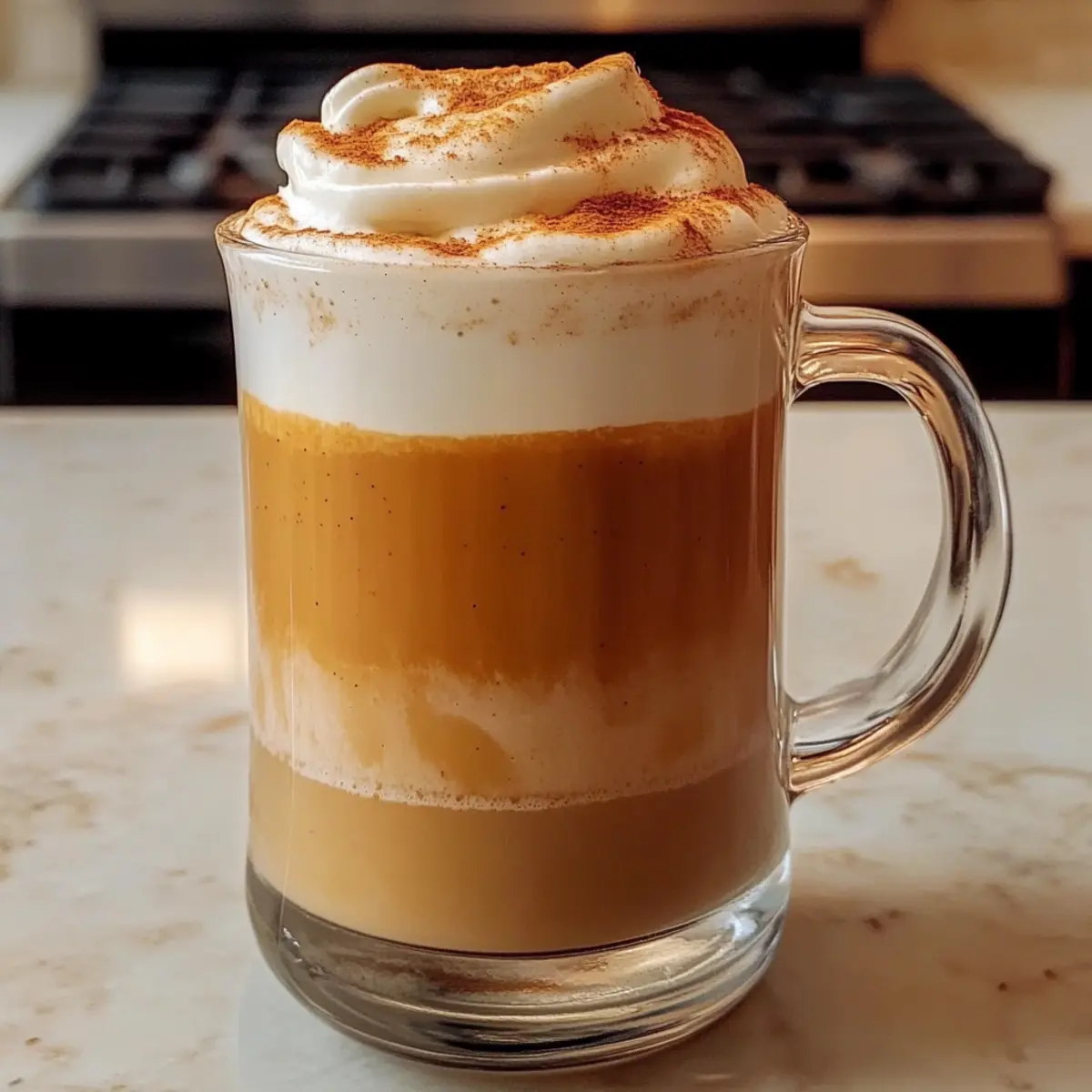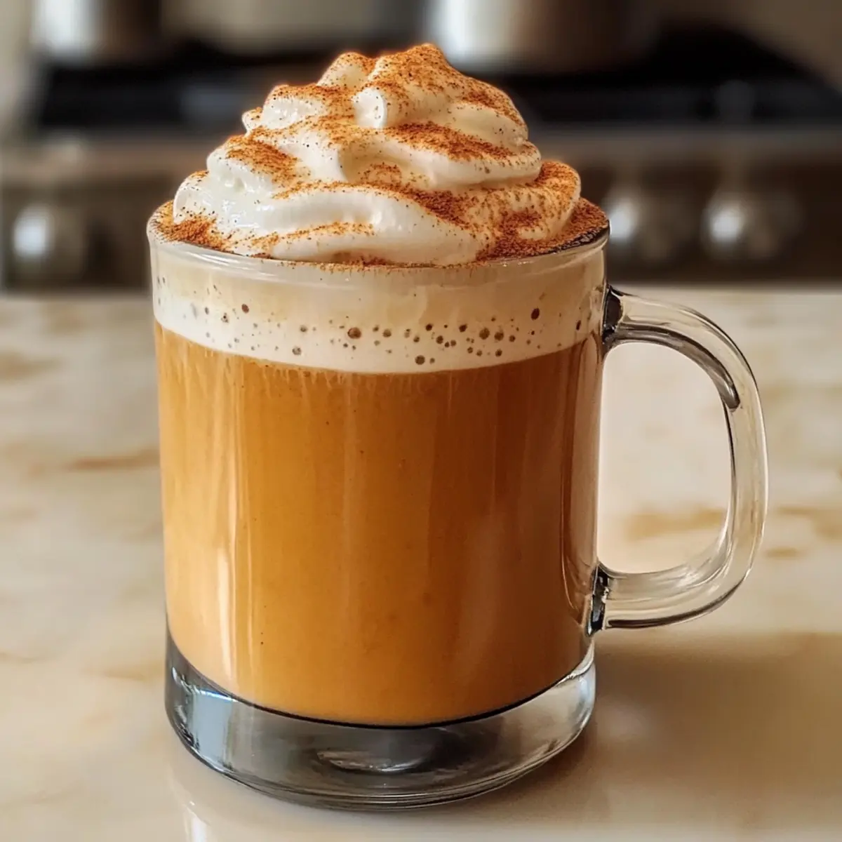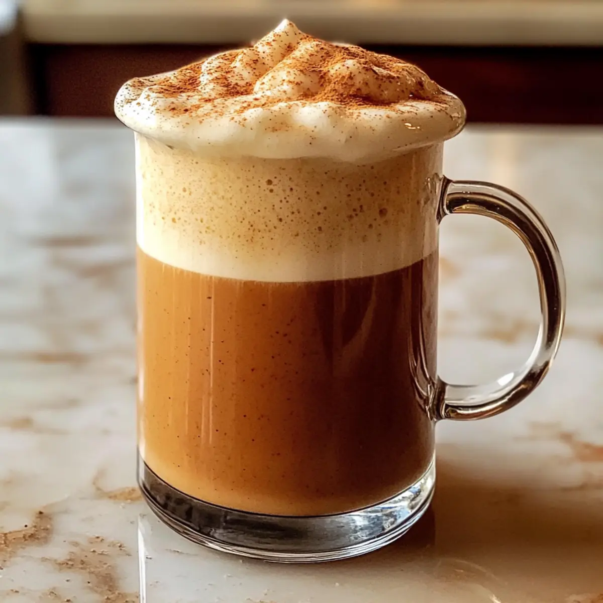 In der kühlen Herbstluft riecht es unwiderstehlich nach Gewürzen und frisch gebackenem Kürbis. Genau zu dieser Zeit zaubere ich mir gerne einen Gespickten Kürbis-Chai-Latte, der nicht nur die Seele wärmt, sondern auch ein echtes Highlight für gemütliche Abende mit Freunden darstellt. Dieser köstliche Drink vereint die Aromen von würzigem Chai, cremigem Kürbispüree und einem Hauch von Alkohol zu einem wärmenden Erlebnis. Die Zubereitung ist schnell und einfach, perfekt für gestresste Tage oder als krönender Abschluss eines entspannten Wochenendes. Glaub mir, dieses Rezept wird dir nicht nur ein Lächeln ins Gesicht zaubern, sondern auch deine Gäste begeistern. Bist du bereit, deine Geschmacksnerven mit einem herbstlichen Genuss zu verwöhnen? Warum wirst du dieses Rezept lieben? Wärme für die Seele: Mit dem Gespickten Kürbis-Chai-Latte bringst du die wärmenden Aromen des Herbstes direkt in deine Tasse und versüßt sich die kühle Jahreszeit. Einfachheit, die begeistert: Die Zubereitung ist kinderleicht und benötigt nur wenige Zutaten, sodass du mehr Zeit für deine Lieben hast. Kreative Anpassungsmöglichkeiten: Du kannst die Rezeptur nach deinem Geschmack anpassen – ob mit verschiedenen Milchsorten oder zusätzlichen Gewürzen, deiner Kreativität sind keine Grenzen gesetzt. Geselligkeit garantiert: Dieser Drink ist perfekt für gemütliche Abende mit Freunden und sorgt für begeisterte Gesichtsausdrücke. Ein Hauch von Luxus: Die Kombination aus cremigem Kürbispüree und aromatischem Chai verwandelt einen normalen Tag in ein besonderes Erlebnis! Gespickter Kürbis-Chai-Latte Zutaten • Für einen köstlichen Herbstgenuss, den du lieben wirst! Für die Basis Milch – sorgt für die cremige Textur; probiere Hafer- oder Mandelmilch für eine milchfreie Variante. Kürbispüree – unverzichtbar für den typischen Kürbisgeschmack; verwende nur reines Püree, nicht die Füllung für Kürbiskuchen. Wasser – dient zur Verdünnung der Mischung; achte darauf, dass es kochend heiß ist. Chai-Gewürzmischung – bringt die charakteristische Gewürznote; du kannst auch frischen Ingwer hinzufügen für ein intensiveres Aroma. Für die Süße Zucker – sorgt für die nötige Süße; alternativ kannst du Honig oder Agavensirup verwenden. Für den Kick Espresso – bringt eine starke Kaffee-Note; du kannst auch starken Schwarztee verwenden, wenn du keinen Espresso hast. Rum oder Whiskey – fügt eine glatte, alkoholische Note hinzu; experimentiere mit Bourbon für einen etwas anderen Geschmack. Für die Garnitur Schlagsahne – verleiht dem Getränk einen luxuriösen Schimmer; eine gute Option ist auch Kokoscreme für eine pflanzliche Variante. Zimt – zum Bestäuben für zusätzlichen Geschmack und Präsentation; du kannst auch Muskatnuss verwenden für eine andere Note. Lass dich von diesem Gespickten Kürbis-Chai-Latte Rezept inspirieren und bringe die Herbst-Aromen in dein Zuhause! Schritt-für-Schritt-Anleitung für Gespickter Kürbis-Chai-Latte Rezept Step 1: Zutaten vermengen Vermenge in einem mittelgroßen Topf die Milch, das Kürbispüree, das Wasser, die Chai-Gewürzmischung und den Zucker. Rühre gut um, bis alle Zutaten gleichmäßig verteilt sind. Achte darauf, dass das Kürbispüree keine Klumpen enthält, um eine cremige Textur zu erreichen. Step 2: Mischung erhitzen Setze den Topf auf den Herd und erhitze die Mischung bei mittlerer Hitze. Rühre kontinuierlich, während die Mischung langsam warm wird. Dies sollte etwa 5 bis 7 Minuten dauern, bis die Flüssigkeit dampft und gut durchmischt ist, ohne dass sie zu kochen beginnt. Step 3: Espresso und Alkohol hinzufügen Nimm den Topf vom Herd und fügen den frisch zubereiteten Espresso sowie den Rum oder Whiskey hinzu. Rühre die Mischung erneut gründlich um, damit sich die Aromen gut verbinden. Dies sorgt dafür, dass der Gespickte Kürbis-Chai-Latte das volle Geschmacksprofil erhält. Step 4: Latte servieren Gieße die heiße Mischung vorsichtig in eine große Tasse. Achte darauf, dass du dabei die Schaumkrone gleichmäßig verteilst. Würze das Getränk nach Belieben mit etwas Zimt, um dem Gespickten Kürbis-Chai-Latte eine zusätzliche aromatische Note zu verleihen. Step 5: Garnieren und genießen Vollende den Gespickten Kürbis-Chai-Latte mit einem großzügigen Klecks Schlagsahne obenauf. Bestäube die Sahne mit Zimt für einen zusätzlichen visuellen Reiz und Aromen. Serviere den Latte heiß und genieße die wohltuende Wärme dieses herbstlichen Getränks. Was passt zum Gespickten Kürbis-Chai-Latte? Lass dich von den Aromen des Herbstes umhüllen und genieße die perfekte Begleitung zu deinem wärmenden Getränk. Kürbismuffins: Die süßen, gewürzten Muffins harmonieren wunderbar mit dem Chai-Geschmack und schaffen eine gemütliche Kombination. Zimtschnecken: Dieser klassische Genuss ergänzt die Gewürze der Latte und sorgt für ein herzeliches Brunch-Erlebnis. Die weiche Textur und der süße Zimt sind einfach unwiderstehlich. Nüsse: Geröstete Mandel- oder Walnussstücke bringen einen knusprigen Biss und einen nussigen Kontrast zur cremigen Latte. Sie sind ein perfekter Snack, während du deinen Drink genießt. Heiße Schokolade: Für eine doppelte Portion Wärme ist eine Tasse heiße Schokolade eine köstliche Ergänzung. Der cremige Schokoladengeschmack ergänzt die Kräuter und Gewürze der Latte. Apfel-Crumble: Der süß-säuerliche Geschmack des Apfel-Crumble mit einer knusprigen Haube bringt ein Stück Herbst auf den Tisch und passt hervorragend zu deinem Drink. Roter Tee: Der nicht-alkoholische Begleiter kann eine angenehme Frische und Leichtigkeit bieten, die die reichhaltigen Aromen des Gespickten Kürbis-Chai-Latte wunderbar ergänzt. Gespickter Kürbis-Chai-Latte Variationen Lass deiner Kreativität freien Lauf und passe dieses Rezept nach deinem Geschmack an! Dairy-Free: Nutze Hafer- oder Mandelmilch für eine leckere, milchfreie Variante. Die Cremigkeit bleibt erhalten und der Gesch