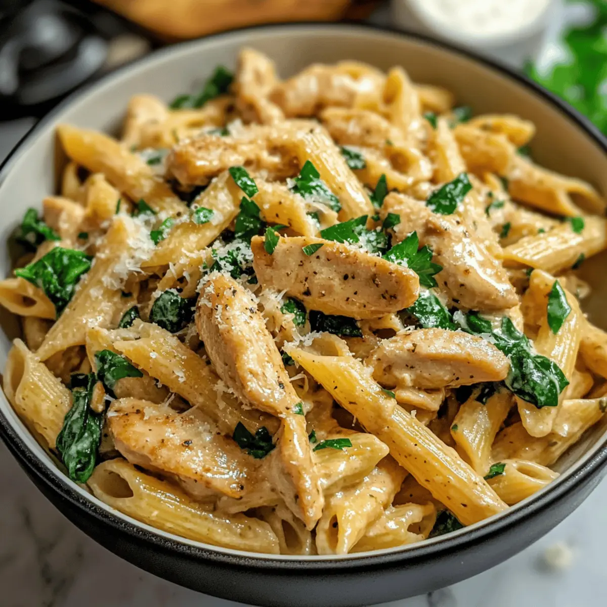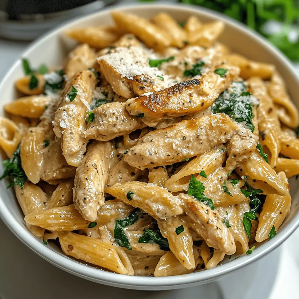 Als ich das erste Mal die Kombination aus knusprigem Hühnchen und cremiger Sauce entdeckte, war ich sofort begeistert. Es war eine Offenbarung, die mich dazu brachte, mein eigenes Rezept für Gesunde Knoblauch-Parmesan-Hühnchen-Pasta Rezept zu kreieren. Diese köstliche Pasta vereint die gesunde Ernährung in einem vollwertigen Gericht, das ideal für nach dem Training ist. Mit einer Basis aus griechischem Joghurt und fettarmer Milch anstelle von schwerer Sahne schaffe ich es, den vollen Geschmack zu genießen, ohne das schlechte Gewissen. Eine perfekte Wahl für alle, die auf ihr Wohlbefinden achten, ohne auf den Genuss zu verzichten! Und das Beste daran: Es ist im Handumdrehen zubereitet und wird jeden am Tisch begeistern. Bist du bereit, deine Küche in eine Wohlfühloase zu verwandeln? Warum wirst du dieses Rezept lieben? Einfachheit pur: Die Zubereitung dieser leckeren Pasta erfordert keine speziellen Fähigkeiten und ist in kürzester Zeit fertig. Cremiger Genuss: Durch die Kombination aus griechischem Joghurt und Parmesan erhältst du eine reichhaltige Sauce, die gesunde Ernährung neu definiert. Vielseitig einsetzbar: Ob nach dem Workout oder als entspannter Abendgenuss – dieses Gericht passt perfekt zu jedem Anlass. Köstlicher Geschmack: Die Kombination aus Knoblauch und frischem Hühnchen sorgt für ein Geschmacksfeuerwerk, das selbst Fast-Food-Liebhaber überzeugen wird. Gesund und nahrhaft: Mit hochwertigen Zutaten wie Vollkornpasta und frischem Gemüse ist dies ein Gericht, das deinen Körper nährt und erfreut. Zeit sparen: Bereite dir eine gesunde Mahlzeit vor, die in nur wenigen Schritten auf dem Tisch steht. Du wirst denken, dass du in einem Restaurant speist! Gesunde Knoblauch-Parmesan-Hühnchen-Pasta Zutaten • Willst du deine Familie mit einem tollen Rezept begeistern? Hier sind die Zutaten für die Gesunde Knoblauch-Parmesan-Hühnchen-Pasta! Für die Pasta Vollkornpasta – Diese bietet complexe Kohlenhydrate und Ballaststoffe für langanhaltende Energie. Hühnchenbrust – Eine magere Proteinquelle, die beim Muskelaufbau hilft. Für die Sauce Olivenöl – Gesunde Fette, die den Geschmack vertiefen und das Herz unterstützen. Knoblauch – Fügt Tiefe und potenzielle Gesundheitsvorteile hinzu. Vollkornmehl – Dient als Bindemittel für die Sauce und verleiht ihr die nötige Konsistenz. Hühnerbrühe – Verbessert den Geschmack und sorgt für Feuchtigkeit; wähle eine natriumarme Variante. Fettarme Milch – Leichtere Alternative zu Sahne, die Cremigkeit ohne extra Kalorien bringt. Griechischer Joghurt – Macht die Sauce cremig und proteinreich; achte darauf, sie nicht zum Kochen zu bringen, um das Gerinnen zu verhindern. Parmesan – Für den würzigen Käsegeschmack; frisch geriebener Käse ist am besten. Spinat (optional) – Bringt Nährstoffe und Farbe ins Gericht; füge ihn kurz vor dem Servieren hinzu, um die Lebendigkeit zu bewahren. Genieße die Zubereitung dieser köstlichen knoblauchparmesan Pasta! Schritt-für-Schritt-Anleitung für Gesunde Knoblauch-Parmesan-Hühnchen-Pasta Rezept Step 1: Wasser zum Kochen bringen Bringe einen großen Topf mit gesalzenem Wasser zum Kochen. Füge die Vollkornpasta hinzu und koche sie gemäß den Anweisungen auf der Verpackung al dente. Bevor du die Pasta abgießt, hebe dir etwa 1/4 Tasse des Nudelwassers auf, um die Sauce später anzupassen. Step 2: Hühnchen anbraten Erhitze in einer großen Pfanne 2 Esslöffel Olivenöl bei mittlerer Hitze. Füge die gewürfelte Hühnchenbrust hinzu, die mit Salz, Pfeffer, Paprika und italienischen Gewürzen gewürzt ist. Brate das Hühnchen für etwa 5-6 Minuten, bis es goldbraun und durchgegart ist. Nimm das Hühnchen aus der Pfanne und stelle es beiseite. Step 3: Knoblauch anbraten In der gleichen Pfanne, in der das Hühnchen zubereitet wurde, füge gegebenenfalls einen weiteren Esslöffel Olivenöl hinzu. Erhitze es bei mittlerer Hitze und gib den fein gehackten Knoblauch hinein. Sautiere den Knoblauch für 30-60 Sekunden, bis er aromatisch ist, aber achte darauf, dass er nicht braun wird. Step 4: Roux zubereiten Streue das Vollkornmehl in die Pfanne und rühre, um einen Roux zu bilden. Koche die Mischung für etwa 30 Sekunden und achte darauf, dass sie leicht goldfarben wird. Füge langsam die Hühnerbrühe und die fettarme Milch hinzu, während du ständig rührst, bis die Sauce in etwa 2-3 Minuten dick wird. Step 5: Sauce verfeinern Reduziere die Hitze auf niedrig und füge vorsichtig den griechischen Joghurt hinzu. Rühre die Mischung kontinuierlich, um ein Gerinnen zu vermeiden. Danach streue den Parmesan hinein und passe die Konsistenz der Sauce mit dem reservierten Nudelwasser nach Bedarf an, bis sie cremig und glänzend ist. Step 6: Alles vereinen Gib das angebratene Hühnchen wieder in die Pfanne und füge die abgetropfte Pasta sowie den optionalen Spinat hinzu. Mische alles gut, bis die Pasta und das Hühnchen gleichmäßig mit der cremigen Sauce überzogen sind. Lass es für ein paar Minuten zusammenziehen und sofort servieren, garniert mit frischer Petersilie und zusätzlichem Parmesan. Gesunde Knoblauch-Parmesan-Hühnchen-Pasta Variationen Entdecke kreative Wege, dieses Rezept nach deinem Geschmack anzupassen und zu verfeinern! Proteinreiche Variante: Tausche das Hühnchen gegen Lachs oder Tofu aus, um neue Texturen und Geschmäcker zu testen. Beide Optionen sind köstlich und bringen zusätzliche Nährstoffe. Glutenfreie Option: Verwende glutenfreie Pasta, um diese köstliche Mahlzeit für alle zugänglich zu machen. Sie schmeckt genauso gut und bleibt leicht und gesund. Vegetarisch: Ersetze Hühnchen durch sautierte Pilze oder Kichererbsen. Du erhältst dennoch die herzhaften Aromen und die sättigende Wirkung einer Hauptspeise. Würzige Note: Füge rote Pfefferflocken oder frischen Chili hinzu, um dem Gericht eine angenehme Schärfe zu verleihen. So werden deine Geschmacksknospen erfreut und es wird aufregender! Fruchtige Akzente: Integriere getrocknete Toma
