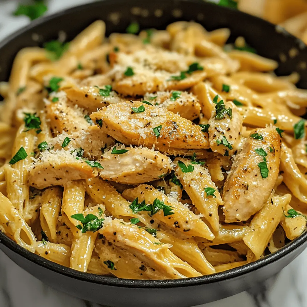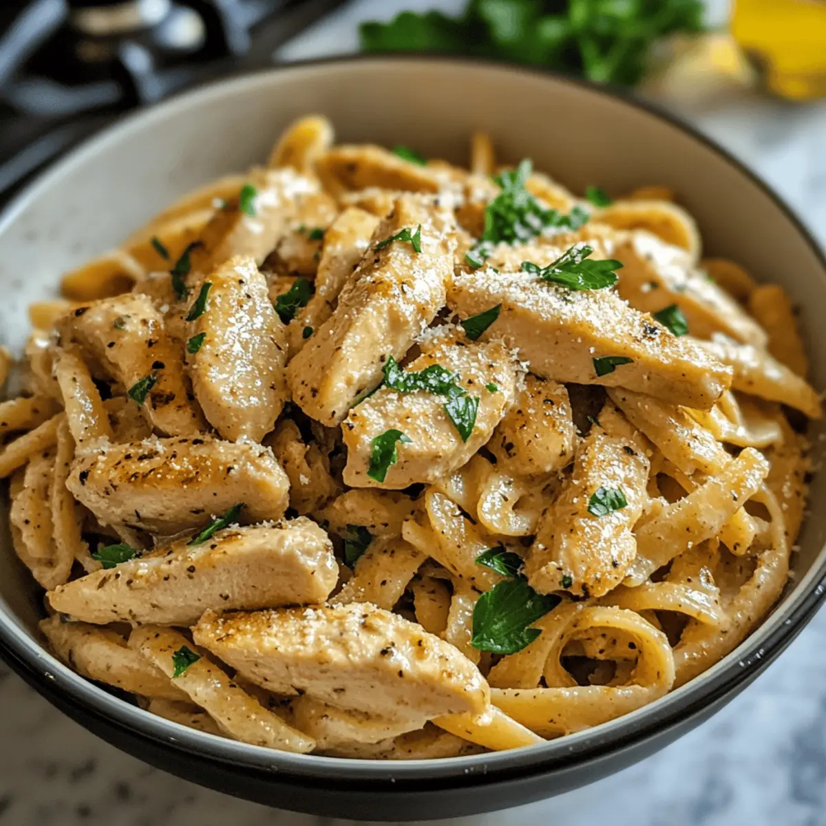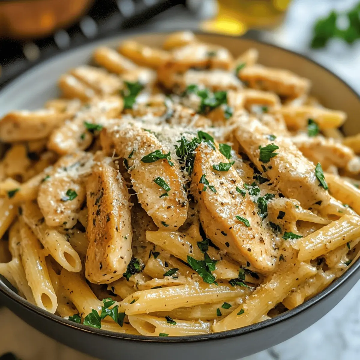 Jedes Mal, wenn ich das köstliche Aroma von Knoblauch und Parmesan in meiner Küche wahrnehme, fühle ich mich, als ob ich direkt in eine italienische Trattoria versetzt werde. Diese Gesunde Knoblauch-Parmesan-Hühnchen-Pasta ist nicht nur ein Fest für die Sinne, sondern auch eine nahrhafte Wahl für alle, die sich nach einem köstlichen Abendessen sehnen, ohne sich schuldig zu fühlen. Mit leichtem, cremigem Geschmack und voller hochwertiger Proteine unterstützt dieses Gericht Ihre Fitnessziele, während es Ihnen gleichzeitig den Komfort von Pasta bietet. Und das Beste daran? Es ist schnell zubereitet und perfekt für hektische Abende, die trotzdem ein Stückchen Heimat in Ihre Küche bringen. Neugierig, wie Sie dieses einfache, aber himmlische Rezept in wenigen Schritten umsetzen können? Lassen Sie uns loslegen! Warum ist dieses Rezept so besonders? Einfachheit, die man liebt: Die Zubereitung dieser Gesunden Knoblauch-Parmesan-Hühnchen-Pasta ist spielend leicht und benötigt nur grundlegende Kochkenntnisse. Vielseitigkeit, die begeistert: Ob mit Huhn, Tofu oder einer Mischung aus Ihrem Lieblingsgemüse – die Variationsmöglichkeiten sind endlos! Gesunde Zutaten, die sättigen: Diese Pasta wird mit Vollkornnudeln, frischem Gemüse und magerem Hühnerfleisch zubereitet, was eine nahrhafte Mahlzeit ergibt, die Sie zufriedenstellt. Wunderbare Aromen, die verzaubern: Der Geschmack von Knoblauch und Parmesan vereint sich zu einer cremigen Sauce, die köstlich und gleichzeitig leicht ist. Ideal für jede Gelegenheit, die begeistert: Perfekt für ein schnelles Abendessen unter der Woche oder für gemütliche Wochenendessen mit Freunden! Kombinieren Sie es mit einem frischen grünen Salat für ein komplettes Erlebnis. Gesunde Knoblauch-Parmesan-Hühnchen-Pasta Zutaten Hinweis: Stellen Sie sicher, dass Sie alle hochwertigen Zutaten zur Hand haben, um diese köstliche Gesunde Knoblauch-Parmesan-Hühnchen-Pasta zuzubereiten! Für die Pasta Vollkornnudeln – Bieten komplexe Kohlenhydrate, die lange für Energie sorgen; glutenfreie Pasta ist auch eine Option. Olivenöl – Ideal zum Braten des Huhns und für die Sauce; Avocadoöl kann auch verwendet werden. Für die Sauce Hähnchenbrust – Magerer Eiweißlieferant; für eine vegetarische Variante kann Tofu genutzt werden. Salz & Pfeffer – Unverzichtbare Gewürze, um das Huhn zu würzen und den Geschmack zu intensivieren. Paprika – Verleiht eine subtile Rauchnote; kann durch Cayennepfeffer ersetzt werden, wenn Sie es schärfer mögen. Italienische Gewürzmischung – Für ein aromatisches Geschmackserlebnis; mixen Sie getrocknete Kräuter wie Oregano und Basilikum als Alternative. Gehackter Knoblauch – Gibt der Sauce eine tiefere Geschmacksnote; frischer Knoblauch ist ideal, aber Knoblauchpulver geht auch in der Not. Vollkornmehl – Sorgt für die Bindung der Sauce; kann mit Maisstärke für eine glutenfreie Option ersetzt werden. Hühnerbrühe – Basis für die Sauce, die Geschmack hinzufügt; Gemüsebrühe ist eine gute vegetarische Alternative. Fettarme Milch – Macht die Sauce cremig; verwenden Sie Mandel- oder Hafermilch für eine milchfreie Variante. Griechischer Joghurt – Fügt Cremigkeit ohne schweres Gefühl hinzu; kann bei Bedarf durch Sauerrahm ersetzt werden. Parmesankäse – Verleiht Tiefe und Reichtum; frisch geriebener Käse ist die beste Wahl, aber vorverpackter Käse funktioniert auch. Spinat (optional) – Fügt Nährstoffe und Farbe hinzu; andere Blätter wie Grünkohl können verwendet werden. Gehackte Petersilie (zum Garnieren) – Sorgt für Frische und Farbe; kann weggelassen werden. Diese Zutaten helfen Ihnen, das perfekte Gesunde Knoblauch-Parmesan-Hühnchen-Pasta Rezept zuzubereiten, das sowohl Ihre Geschmacksnerven als auch Ihre Gesundheitsziele befriedigt! Schritt-für-Schritt-Anleitung für Gesunde Knoblauch-Parmesan-Hühnchen-Pasta Rezept Step 1: Pasta kochen Bringen Sie einen großen Topf mit leicht gesalzenem Wasser zum Kochen. Fügen Sie die Vollkornnudeln hinzu und kochen Sie diese gemäß der Packungsanweisung, bis sie al dente sind. Denken Sie daran, etwa 1/4 Tasse Nudelwasser aufzuheben, bevor Sie die Nudeln abgießen. Dies hilft, die Sauce später zu verdünnen. Step 2: Hähnchen anbraten Erhitzen Sie 1 Esslöffel Olivenöl in einer großen, beschichteten Pfanne bei mittlerer Hitze. Geben Sie die gewürfelte Hähnchenbrust hinein, würzen Sie sie mit Salz, Pfeffer, Paprika und italienischen Gewürzen. Braten Sie das Hähnchen für 5-6 Minuten, bis es goldbraun ist und durchgegart. Nehmen Sie das Hähnchen aus der Pfanne und stellen Sie es beiseite. Step 3: Knoblauch anbraten In derselben Pfanne fügen Sie das restliche Olivenöl und den gehackten Knoblauch hinzu. Sautieren Sie den Knoblauch für 30-60 Sekunden, bis er duftet, aber nicht verbrennt. Dies wird der Basis der cremigen Sauce für die Gesunde Knoblauch-Parmesan-Hühnchen-Pasta den nötigen Geschmack verleihen. Step 4: Roux zubereiten Streuen Sie das Vollkornmehl über den Knoblauch und rühren Sie gut um, um eine Mehlschwitze (Roux) zu bilden. Kochen Sie die Mischung für etwa 30 Sekunden, bis das Mehl leicht goldig wird. Dies hilft, die Sauce zu binden und eine cremige Textur zu erreichen. Step 5: Sauce andicken Gießen Sie langsam die Hühnerbrühe und die fettarme Milch in die Pfanne, während Sie ständig mit einem Schneebesen rühren. Kochen Sie die Mischung für 2-3 Minuten, bis die Sauce eindickt und gut blubbert. Achten Sie darauf, dass keine Klumpen entstehen und die Sauce eine glatte Konsistenz hat. Step 6: Joghurt und Käse hinzufügen Reduzieren Sie die Hitze und rühren Sie den griechischen Joghurt sowie den Parmesan in die Sauce ein, bis sie geschmolzen und gut vermischt sind. Justieren Sie die Konsistenz der Sauce nach Belieben mit dem aufbewahrten Nudelwasser, bis sie schön cremig ist. Step 7: Hähnchen und Pasta kombinieren Fügen Sie das angebratene Hähnchen zurück in die Pfanne und vermengen Sie es gut mit der 