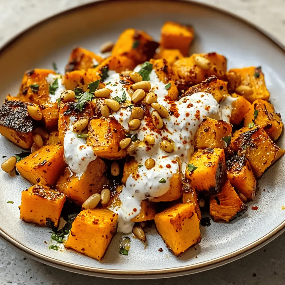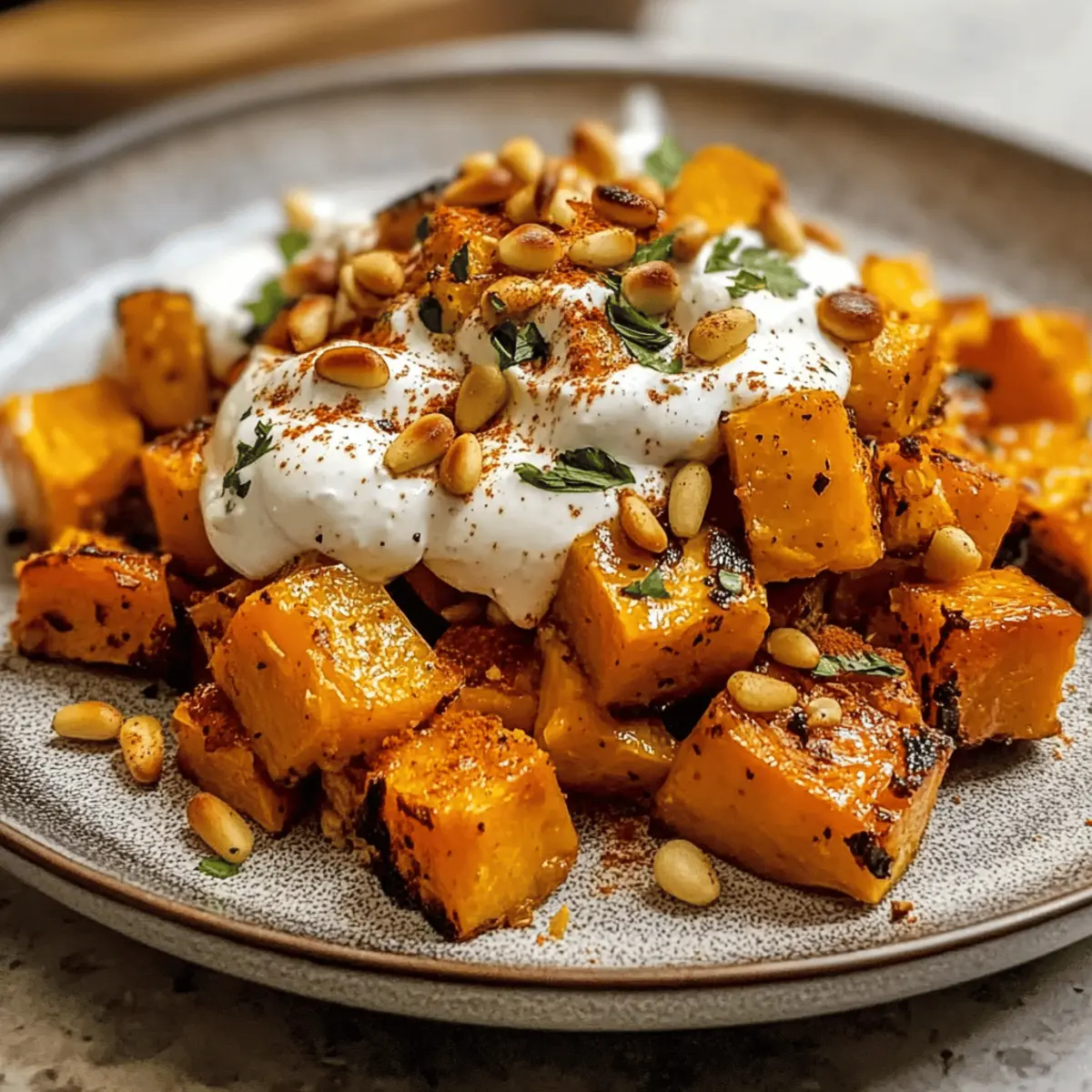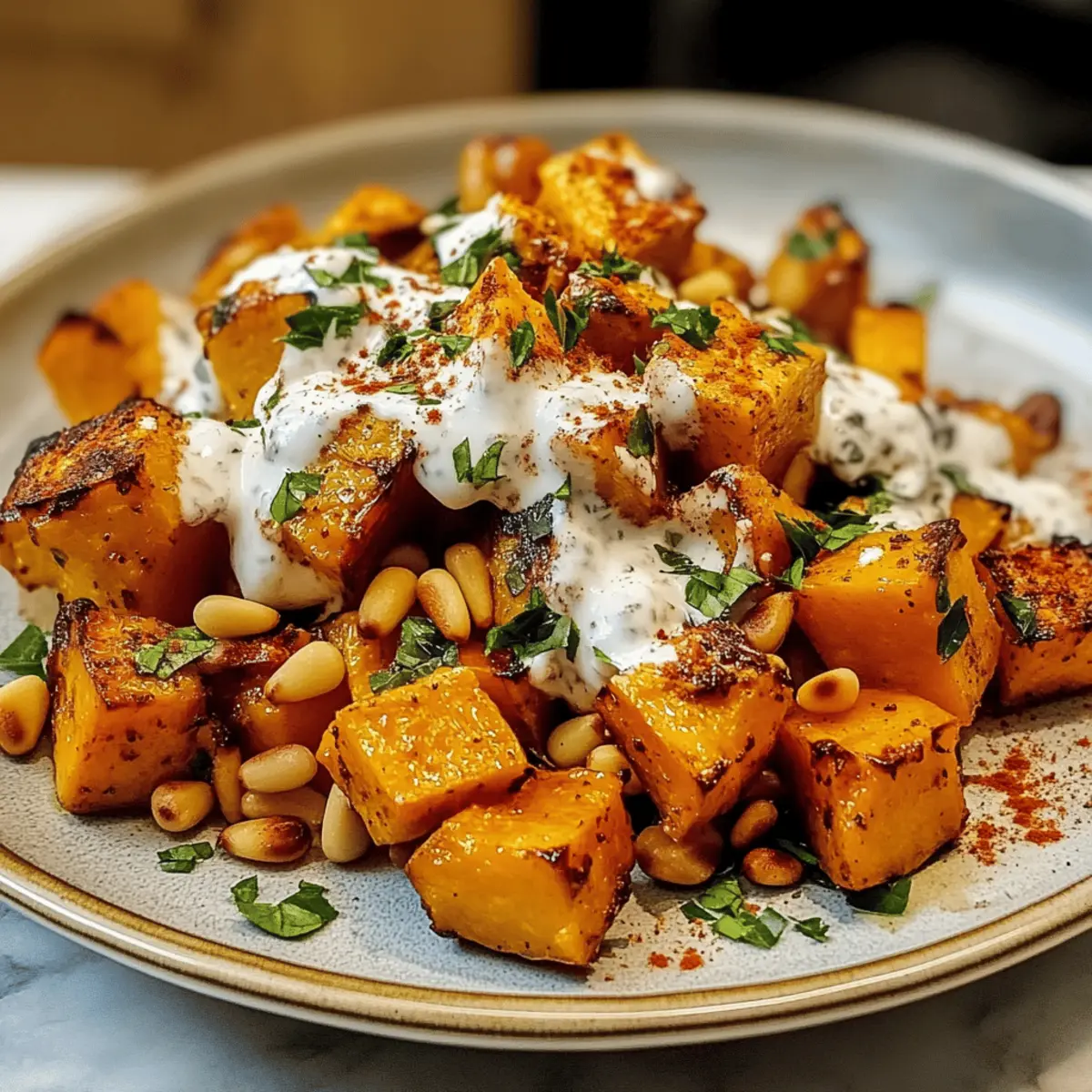 Als ich neulich beim Markt schlenderte, wurde ich von den leuchtend orangefarbenen Kürbissen verzaubert. Goldbraun gerösteter Kürbis mit Joghurtsauce ist nicht nur ein Fest für die Augen, sondern auch ein wahres Geschmackserlebnis. Diese einfache, mediterran inspirierte Seite erfordert minimalen Aufwand und verwandelt jede Mahlzeit in ein elegantes Event. Das Zusammenspiel von zartem Kürbis und cremiger Joghurtsauce, gekrönt mit knusprigen pinienkernen, macht sie zu einem absoluten Publikumsliebling – perfekt für gesellige Gatherings oder als köstliche Ergänzung zu nahrhaften vegetarischen Gerichten. Wollt ihr wissen, wie ihr diese köstliche Kreation in eurer eigenen Küche zubereiten könnt? Warum ist dieser Kürbis ein Muss? Einfache Zubereitung: Mit nur wenigen Zutaten und minimalem Aufwand verwandelt sich dieser Kürbis in ein Gourmetgericht, das beeindruckt. Mediterraner Genuss: Die Kombination aus goldbraun geröstetem Kürbis und würziger Joghurtsauce bringt den Sommer auf den Teller – perfekt für jede Jahreszeit. Vielseitig einsetzbar: Ob als Beilage zu gegrilltem Fleisch oder als Hauptgericht über Quinoa – dieses Rezept passt immer. Gesunde Alternative: Sagen Sie dem Fast Food ade! Dieser Kürbis ist nicht nur lecker, sondern auch nährstoffreich und sättigend. Ein Publikumsliebling: Seine köstlichen Aromen und die ansprechende Präsentation machen ihn zum Hit bei Gästen. Probieren Sie auch Mahlzeiten im Voraus zubereiten für noch mehr Genuss! Goldbraun gerösteter Kürbis Zutaten Hinweis: Diese Zutaten sind die Grundlage für den köstlichen goldbraun gerösteten Kürbis mit Joghurtsauce, der ein wahres Fest für die Sinne ist. Für den Kürbis Kürbis – Hauptzutat, die Süße und cremige Textur liefert; kann durch Butternut-Kürbis oder Süßkartoffeln ersetzt werden. Extra Vergine Olivenöl – Fügt Reichhaltigkeit hinzu und unterstützt das Rösten; kann durch Avocadoöl ersetzt werden. Knoblauch (gehackt) – Verbessert die Geschmacksintensität; verwende gerösteten Knoblauch für einen süßeren Geschmack. Salz – Unverzichtbar zum Würzen; nach Geschmack anpassen. Schwarzer Pfeffer – Bringt Schärfe und Komplexität; weißer Pfeffer ist eine gute Alternative. Für die Joghurtsauce Griechischer Joghurt – Bildet die cremige Joghurtsauce und sorgt für eine angenehme Säure; kann durch eine ungesüßte, einfache Joghurt-Variante ersetzt werden. Zitronensaft – Fügt Säure hinzu, um die Aromen auszubalancieren; bei Bedarf durch Essig ersetzen. Sumac (oder Paprika) – Dient zur Garnierung, gibt zusätzlichen Geschmack; Alternativen sind Chili-Pulver oder Za’atar. Für das Topping Pinienkerne – Sorgen für einen knusprigen Belag und nussigen Geschmack; können durch Walnüsse oder Sonnenblumenkerne ersetzt werden. Frischer Koriander oder Petersilie – Bringen Frische als Garnitur; kann durch Minze für einen anderen Geschmack ersetzt werden. Genießt die Zubereitung des goldbraun gerösteten Kürbisses mit Joghurtsauce und lasst euch von den Aromen verzaubern! Schritt-für-Schritt-Anleitung für Goldbraun gerösteten Kürbis mit Joghurtsauce Schritt 1: Ofen vorheizen Heizen Sie den Ofen auf 220°C vor, oder auf 200°C bei Umluft. Bereiten Sie ein Backblech vor, indem Sie es mit Backpapier auslegen. Diese Vorbereitungen sind wichtig, damit der goldbraun geröstete Kürbis gleichmäßig und knusprig geröstet wird. Schritt 2: Kürbis vorbereiten Schälen Sie den Kürbis, entfernen Sie die Kerne und schneiden Sie ihn in Würfel von etwa 3 cm Größe. Achten Sie darauf, dass Sie etwa 1 kg Kürbis haben. Diese gleichmäßige Größe sorgt für ein einheitliches Röstergebnis und verhindert, dass einige Stücke verbrennen und andere nicht gar werden. Schritt 3: Kürbis würzen Geben Sie die Kürbiswürfel in eine große Schüssel und vermengen Sie sie mit reichlich extra vergine Olivenöl, dem gehackten Knoblauch, Salz und schwarzem Pfeffer. Mischen Sie alles gut, sodass die Kürbisstücke gleichmäßig mit der Marinade überzogen sind. Dies verstärkt den Geschmack und hilft beim Rösten. Schritt 4: Kürbis rösten Verteilen Sie die gewürzten Kürbiswürfel gleichmäßig auf dem vorbereiteten Backblech. Rösten Sie den Kürbis für etwa 20 Minuten im Ofen. Achten Sie darauf, dass er goldbraun wird und eine zarte Konsistenz erreicht, aber dennoch knackig bleibt. Schritt 5: Kürbis wenden Nach den ersten 20 Minuten nehmen Sie das Blech aus dem Ofen und wenden die Kürbiswürfel vorsichtig mit einem Spatel. Setzen Sie das Blech wieder in den Ofen und rösten Sie die Stücke weitere 7-10 Minuten, bis sie goldbraun und zart sind. Der Kürbis sollte jetzt köstlich duften. Schritt 6: Joghurtsauce zubereiten Während der Kürbis im Ofen röstet, bereiten Sie die Joghurtsauce vor. Vermischen Sie in einer Schüssel den griechischen Joghurt, den restlichen gehackten Knoblauch, Zitronensaft, etwas Olivenöl sowie Salz und Pfeffer nach Geschmack. Lassen Sie die Mischung für etwa 10 Minuten ruhen, damit sich die Aromen gut entfalten können. Schritt 7: Pinienkerne rösten Erhitzen Sie eine trockene Pfanne bei mittlerer bis hoher Hitze und fügen Sie die Pinienkerne hinzu. Rühren Sie ständig um, bis sie duften und leicht goldbraun sind. Dies dauert nur wenige Minuten, also bleiben Sie in der Nähe, um ein Verbrennen zu vermeiden. Die gerösteten Pinienkerne geben dem Gericht den perfekten Crunch. Schritt 8: Anrichten und Garnieren Nehmen Sie den gebratenen Kürbis aus dem Ofen und richten Sie ihn auf einem Servierteller an. Beträufeln Sie den Kürbis großzügig mit der Joghurtsauce, und garnieren Sie ihn mit den gerösteten Pinienkernen sowie einer Prise Sumac oder Paprika und frisch gehackten Kräutern. Das verleiht dem goldbraun gerösteten Kürbis mit Joghurtsauce eine ansprechende Note. Schritt 9: Servieren Servieren Sie das Gericht sofort warm oder lassen Sie es auf Raumtemperatur abkühlen und genießen Sie es dann. Es ist ein wunderbarer Beglei