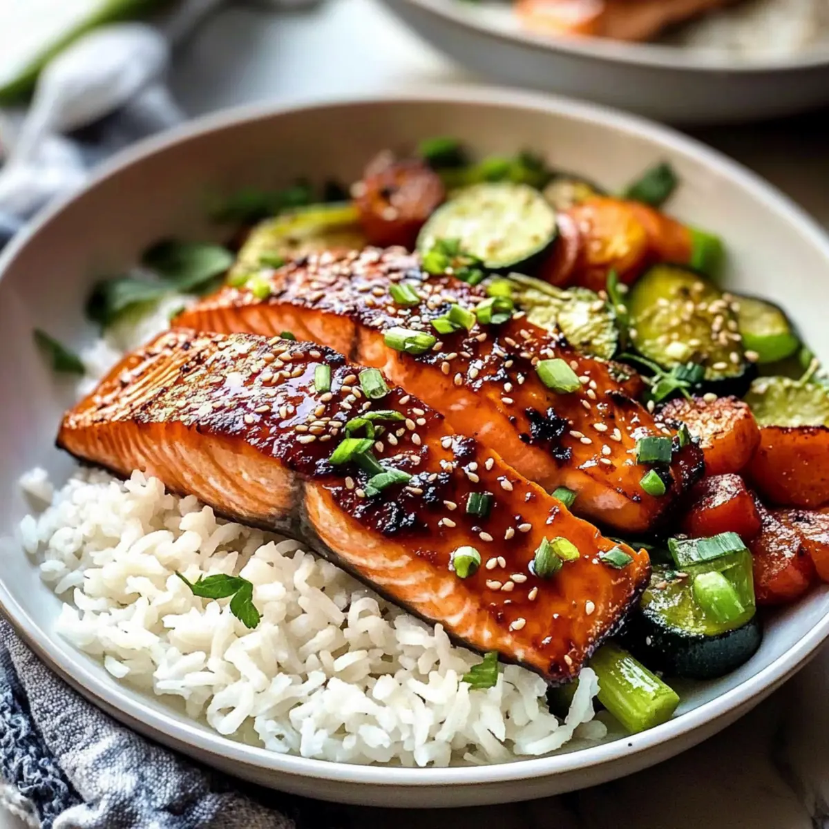 Ich habe neulich die Küche betreten, als ein köstlicher Duft von umami durch den Raum zog – es war der verführerische Grillierte Miso-Lachs, der in nur 8 Minuten zubereitet wird! Diese einfache, glutenfreie Rezeptur vereint süße und salzige Noten, die sowohl meine Familie als auch Gäste begeistern. Der Lachs wird durch die Miso-Marinade wunderbar zart und erhält eine schöne Karamellisierung, die jedes Mahl zu etwas Besonderem macht. Perfekt für unter der Woche, wenn die Zeit drängt, aber auch beeindruckend genug für besondere Anlässe. Was hältst du von einer küchenfreundlichen Lösung, die wenig Aufwand erfordert und dennoch den Gaumen verwöhnt? Lass uns in die Zubereitung eintauchen! Warum wirst du diesen Miso-Lachs lieben? Einfachheit, Die Zubereitung ist kinderleicht und benötigt nur grundlegende Kochkünste – perfekt für Küchenanfänger und erfahrene Köche gleichermaßen. Wunderbarer Geschmack, Die Kombination aus Miso, Süße und umami sorgt für ein Geschmackserlebnis, das deine Sinne erfreut. Zeitersparnis, Mit nur 8 Minuten Kochzeit ist dieser Lachs die ideale Wahl für hektische Wochentage, ohne dabei auf Qualität zu verzichten. Vielseitigkeit, Egal, ob du ihn mit Reis oder Gemüse servierst, der grillierte Miso-Lachs passt zu vielen Beilagen und schmeckt immer hervorragend. Wenn du mehr über kreative Kombinationen erfahren möchtest, schau dir auch unsere Variationen des Miso-Lachses an! Gesundheitlich, Dieses Rezept ist glutenfrei und enthält gesunde Fette – perfekt für alle, die auf eine ausgewogene Ernährung achten. Mit diesem köstlichen Gericht wirst du garantiert große Augen und begeisterte Gesichter am Esstisch sehen! Grillierter Miso-Lachs Zutaten Für die Marinade Weißes Miso-Paste – Sorgt für den umami-Geschmack; am besten eignet sich shiro Miso für eine mildere Variante. Zucker – Verleiht Süße und fördert die Karamellisierung; kann auch durch Ahornsirup oder Honig ersetzt werden. Mirin – Ein süßer Reiswein, der das Geschmacksprofil der Marinade verstärkt. Low-Sodium Sojasauce – Bietet Salzigkeit ohne zu überwältigen; kann durch Tamari für eine glutenfreie Option ersetzt werden. Sesamöl – Fügt eine nussige Tiefe hinzu; kann bei Allergien weggelassen werden. Ingwerpaste – Bringt Frische und Wärme; frisch geriebener Ingwer ist eine gute Alternative. Für den Lachs Lachsfilets – Das Hauptprotein; am besten mit Haut zubereiten, je nach Vorliebe. Dieser grillierte Miso-Lachs wird dir mit seiner Kombination aus Süße und umami-Geschmack sicherlich sehr gut gefallen! Schritt-für-Schritt-Anleitung für Grillierter Miso-Lachs Step 1: Marinade herstellen In einer mittelgroßen Schüssel das weiße Miso-Paste, Zucker, Mirin, Sojasauce, Sesamöl und Ingwerpaste kräftig verrühren, bis die Mischung glatt ist. Diese aromatische Marinade wird der Schlüssel zum Geschmack deines grillierten Miso-Lachs sein. Achte darauf, dass keine Klumpen bleiben, damit sich die Aromen gleichmäßig entfalten können. Step 2: Lachs marinieren Lege die Lachsfilets in einen großen Behälter oder einen Ziploc-Beutel und gieße 2 Esslöffel der vorbereiteten Marinade darüber. Verschließe den Behälter oder Beutel und lege ihn für 30 Minuten in den Kühlschrank. Dadurch zieht die Marinade in den Lachs ein und sorgt für eine herrlich zarte Textur und Geschmack. Step 3: Vorbereiten und Vorheizen Heize den Grill oder den Broiler auf hohe Stufe vor. Lege ein Backblech mit Backpapier oder Aluminiumfolie aus und sprühe es leicht mit Antihafterspray ein. Diese Vorbereitung sorgt dafür, dass der grillierte Miso-Lachs später nicht anklebt und schön gleichmäßig gart. Step 4: Lachs grillen Lege die marinierten Lachsfilets mit der Hautseite nach unten auf das vorbereitete Backblech. Grille den Lachs für 6-8 Minuten, bis die Innentemperatur 49°C (120°F) erreicht ist. Achte darauf, den Lachs nach der Hälfte der Grillzeit einmal zu drehen, um eine gleichmäßige Bräunung und Karamellisierung der Miso-Mischung zu erreichen. Step 5: Fertigstellen und Servieren Bestreiche den gegrillten Miso-Lachs vor dem Servieren mit der restlichen Marinade. Garniere das Gericht nach Belieben mit Frühlingszwiebeln, Sesamkörnern und frischem Koriander. So wird dein grillierter Miso-Lachs nicht nur geschmacklich, sondern auch optisch ein wahrer Genuss auf dem Tisch! Lagerungstipps für Grillierten Miso-Lachs Kühlschrank: Bewahre die Reste in einem luftdichten Behälter für bis zu 4-5 Tage auf, um die Frische und den Geschmack zu erhalten. Gefrierschrank: Du kannst den marinierte und ungegrillten Lachs bis zu 2 Monate einfrieren. Achte darauf, ihn gut in Frischhaltefolie und einem Gefrierbeutel zu verpacken, um Gefrierbrand zu vermeiden. Wiederverschließen: Vermeide es, den Lachs mehrmals einzufrieren und aufzutauen, da dies die Textur beeinträchtigen kann. Wiedererhitzen: Erhitze den Lachs vorsichtig in der Mikrowelle oder im Ofen bei niedriger Temperatur, um die Zartheit des grillierten Miso-Lachs zu bewahren. Was serviert man mit Grilliertem Miso-Lachs? Um den perfekten Abend zu gestalten, braucht es mehr als nur einen köstlichen Lachs – passende Beilagen runden das Erlebnis ab und sorgen für ein harmonisches Zusammenspiel der Aromen. Cremiger Reis: Dieser zarte Reis nimmt die Aromen der Miso-Marinade auf und sorgt für eine wohltuende Basis. Ideal zum Auftunken der restlichen Säfte vom Lachs! Blistered Shishito-Paprika: Die milden, süßen Paprika bringen eine knackige Textur mit und sind der perfekte Kontrast zum zarten Lachs. Einfach in einer Pfanne rösten, bis sie Blasen werfen, und sofort servieren. Gerösteter Brokkoli: Ein leckerer und gesunder Begleiter! Der leicht nussige Geschmack des Brokkolis passt wunderbar zu den süßen Noten des Misos. Er kann einfach mit etwas Olivenöl und Salz im Ofen gebräunt werden. Frischer Gurkensalat: Ein erfrischender Salat aus knackigen Gurken und einem Spritzer Reisessig bringt eine leichte Frische ins 